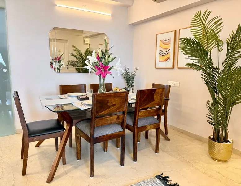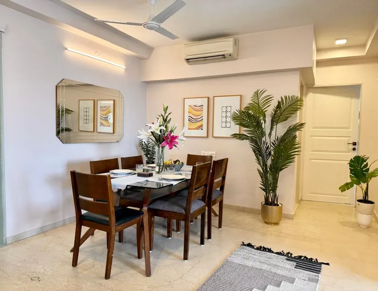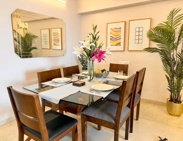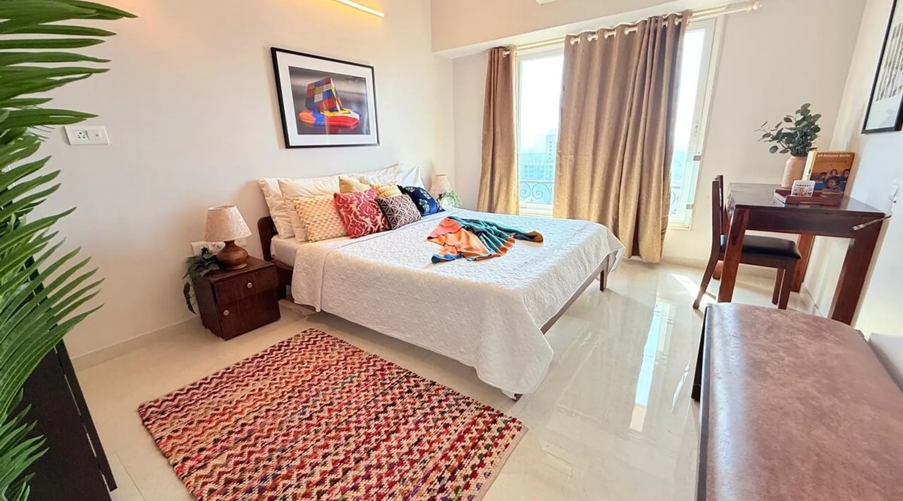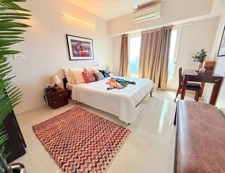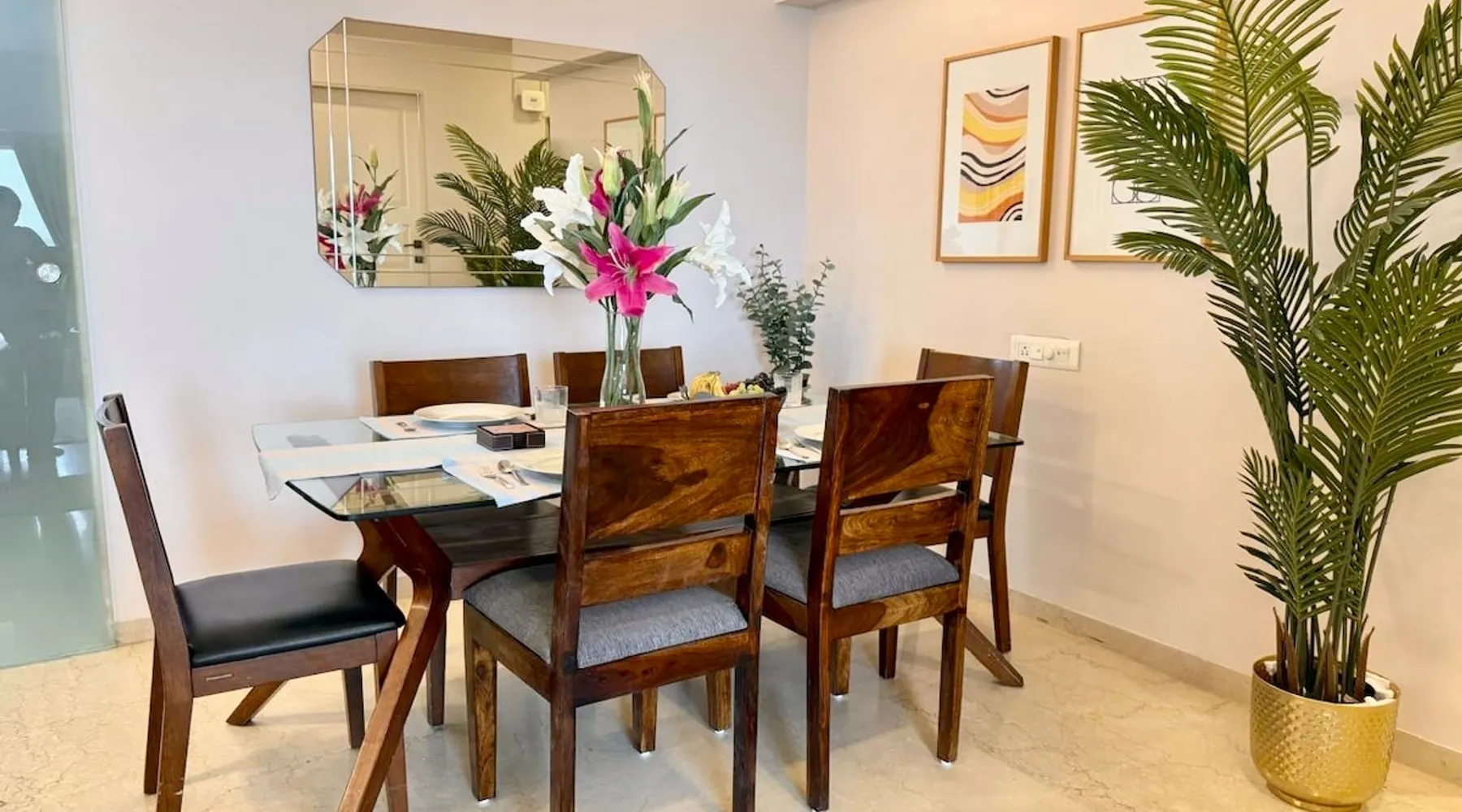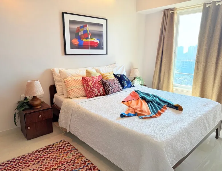 The apartment shares the exclusive benefit of a home away from home with luxurious amenities of a hotel with style. Our endeavour is to make your stay luxurious -Star Hotel-like modern & upscale, clean room with all high-end amenities -3 Bedrm & 3 Bath with all essentials provided -Early check-in & Late check-out (subject to availability) -New Building with pool, gym & salon -Smart TV & Wifi -Regular housekeeping provided -15th floor flat with lift The space ★ “We had a fantastic stay at this beautiful property in BKC for a month while relocating to Mumbai! The apartment was modern and well-equipped with all the amenities I needed, from a spacious living area to a fully equipped kitchen. The pool and gym facilities were top-notch, offering a perfect…” Living Room • Comfort with a cozy 6 -seater dining space • Comfy 5-seater sofa • 43'' Smart TV • Air-conditioned with large windows that let in plenty of natural light • An extra mattress can be used in the living room to accommodate additional Guest • A perfect spot for relaxing or remote work Bedroom 1 • King-size bed with plush mattress and 300+ thread count Egyptian cotton linens • Air-conditioned with naturally cool interiors • Spacious wardrobes — perfect for extended stays • Work desk & chair — perfect WFH setup • Ensuite bathroom • Wide windows with black out curtains Bedroom 2 • Queen-size bed with plush mattress and 300+ thread count Egyptian cotton linens • Air-conditioned with naturally cool interiors • Spacious wardrobes — perfect for extended stays • Work desk & chair — perfect WFH setup • Bathroom right opposite to bedroom • Wide windows with black out curtains Bedroom 3 • Queen-size bed with plush mattress and 300+ thread count Egyptian cotton linens • Air-conditioned with naturally cool interiors • Spacious wardrobes — perfect for extended stays • Ensuite bathroom • Wide windows with black out curtains Bathrooms • Equipped with a geyser for consistent hot water • Western-style toilet with a half-glass panel separating shower and dry space • Includes shower gel, shampoo, toilet rolls, bath & face towels Kitchen • The kitchen is fully functional and equipped to prepare meals of any size includes Microwave, Fridge, Toaster, Kettle, Mixer grinder, Pressure cooker and Gas stove. • Stocked with cookware, utensils, dishes, silverware, etc. Amenities • Fresh linens provided • Housekeeping every day Guest access The Entire House Other things to note INR 10,000 move in charges will be additional. This is required by the society