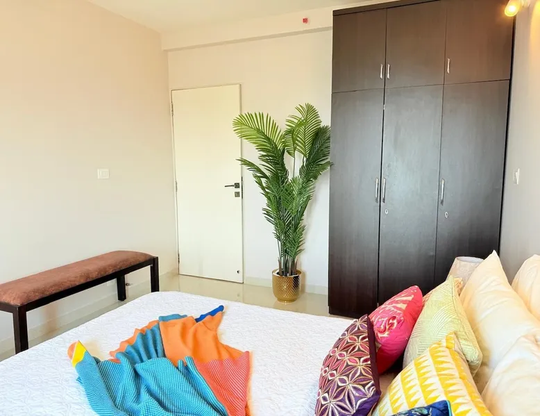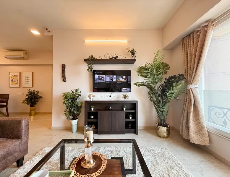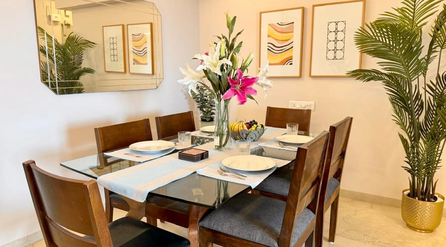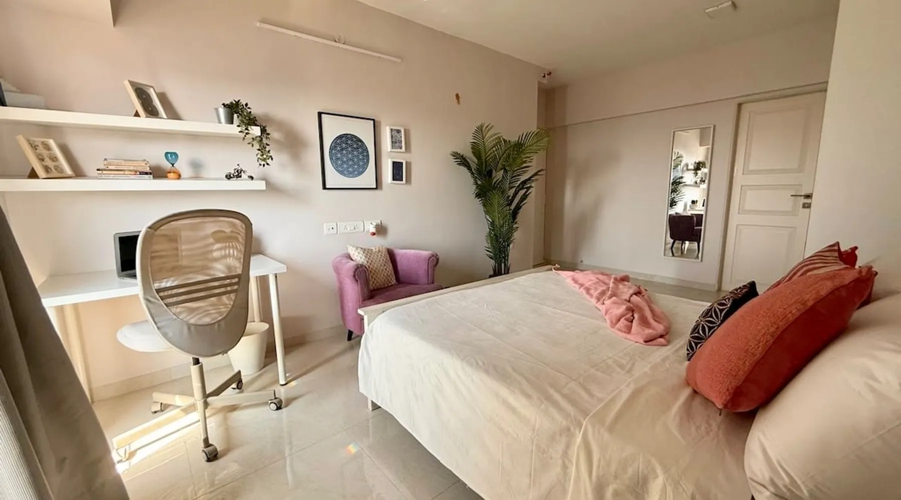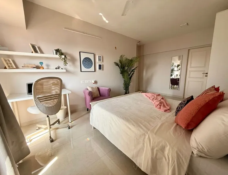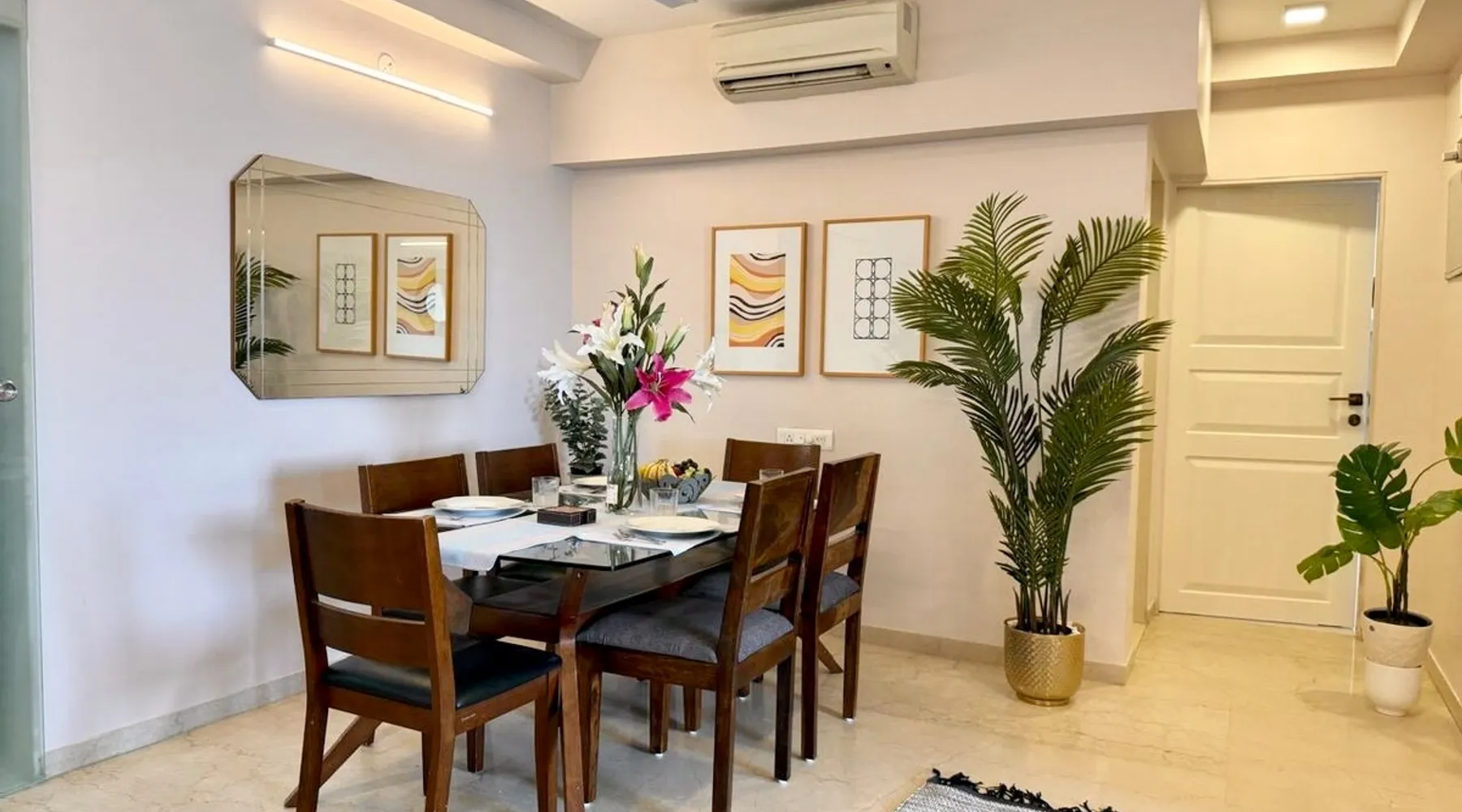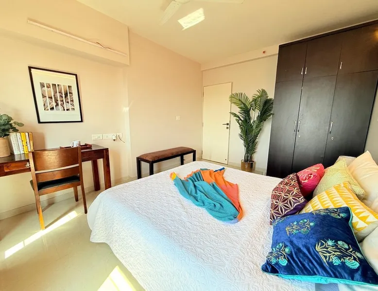 The apartment shares the exclusive benefit of a home away from home with luxurious amenities of a hotel with style. Our endeavour is to make your stay luxurious -Star Hotel-like modern & upscale, clean room with all high-end amenities -3 Bedrm & 3 Bath with all essentials provided -Early check-in & Late check-out (subject to availability) -New Building with pool, gym & salon -Smart TV & Wifi -Regular housekeeping provided -15th floor flat with lift The space ★ “We had a fantastic stay at this beautiful property in BKC for a month while relocating to Mumbai! The apartment was modern and well-equipped with all the amenities I needed, from a spacious living area to a fully equipped kitchen. The pool and gym facilities were top-notch, offering a perfect…” Living Room • Comfort with a cozy 6 -seater dining space • Comfy 5-seater sofa • 43'' Smart TV • Air-conditioned with large windows that let in plenty of natural light • An extra mattress can be used in the living room to accommodate additional Guest • A perfect spot for relaxing or remote work Bedroom 1 • King-size bed with plush mattress and 300+ thread count Egyptian cotton linens • Air-conditioned with naturally cool interiors • Spacious wardrobes — perfect for extended stays • Work desk & chair — perfect WFH setup • Ensuite bathroom • Wide windows with black out curtains Bedroom 2 • Queen-size bed with plush mattress and 300+ thread count Egyptian cotton linens • Air-conditioned with naturally cool interiors • Spacious wardrobes — perfect for extended stays • Work desk & chair — perfect WFH setup • Bathroom right opposite to bedroom • Wide windows with black out curtains Bedroom 3 • Queen-size bed with plush mattress and 300+ thread count Egyptian cotton linens • Air-conditioned with naturally cool interiors • Spacious wardrobes — perfect for extended stays • Ensuite bathroom • Wide windows with black out curtains Bathrooms • Equipped with a geyser for consistent hot water • Western-style toilet with a half-glass panel separating shower and dry space • Includes shower gel, shampoo, toilet rolls, bath & face towels Kitchen • The kitchen is fully functional and equipped to prepare meals of any size includes Microwave, Fridge, Toaster, Kettle, Mixer grinder, Pressure cooker and Gas stove. • Stocked with cookware, utensils, dishes, silverware, etc. Amenities • Fresh linens provided • Housekeeping every day Guest access The Entire House Other things to note INR 10,000 move in charges will be additional. This is required by the society
