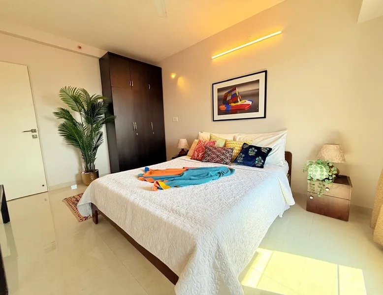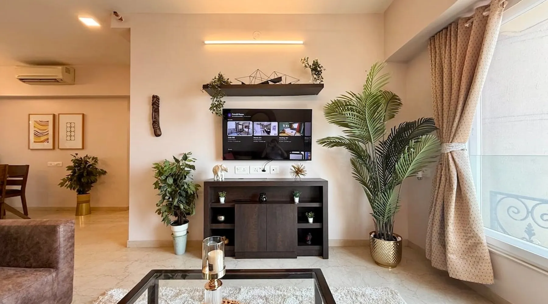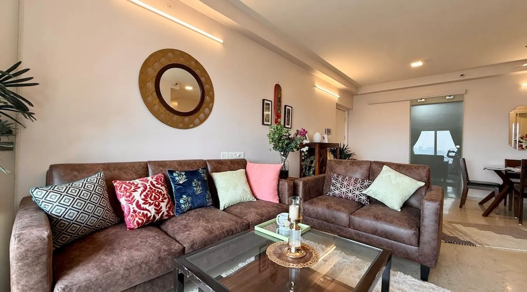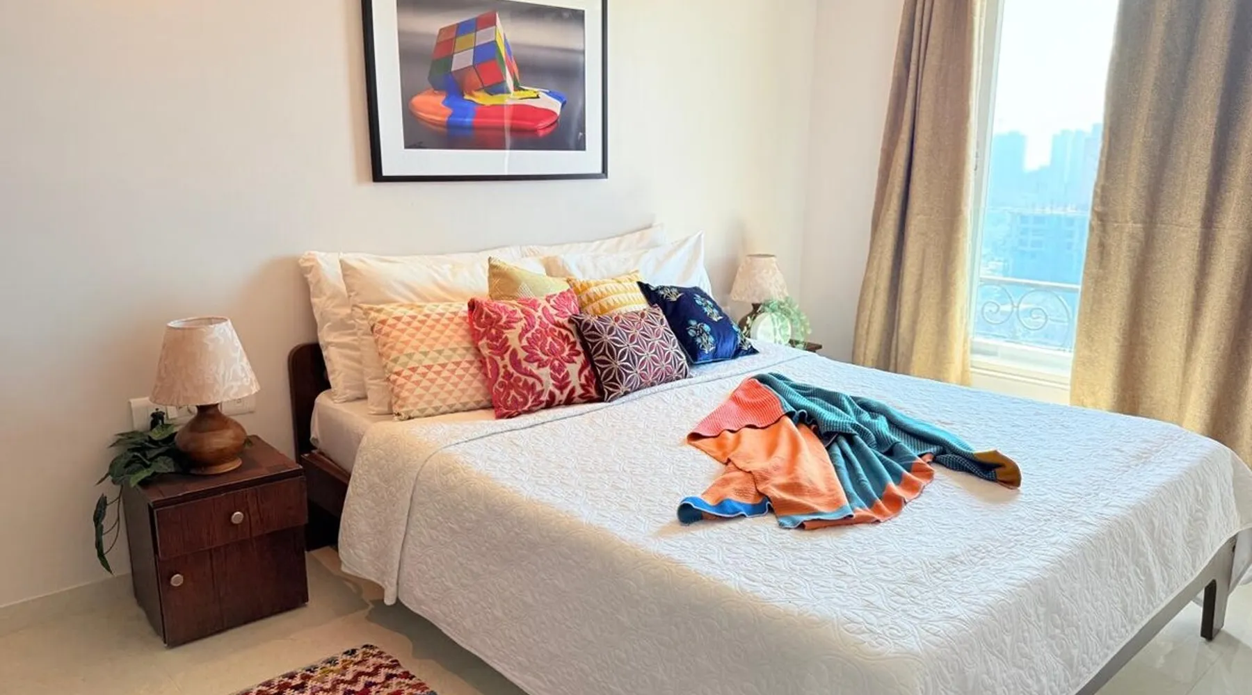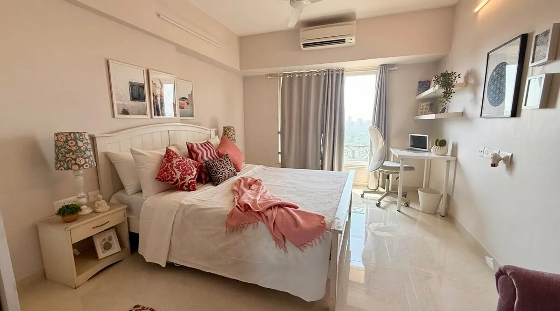 The apartment shares the exclusive benefit of a home away from home with luxurious amenities of a hotel with style. Our endeavour is to make your stay luxurious -Star Hotel-like modern & upscale, clean room with all high-end amenities -3 Bedrm & 3 Bath with all essentials provided -Early check-in & Late check-out (subject to availability) -New Building with pool, gym & salon -Smart TV & Wifi -Regular housekeeping provided -15th floor flat with lift The space ★ “We had a fantastic stay at this beautiful property in BKC for a month while relocating to Mumbai! The apartment was modern and well-equipped with all the amenities I needed, from a spacious living area to a fully equipped kitchen. The pool and gym facilities were top-notch, offering a perfect…” Living Room • Comfort with a cozy 6 -seater dining space • Comfy 5-seater sofa • 43'' Smart TV • Air-conditioned with large windows that let in plenty of natural light • An extra mattress can be used in the living room to accommodate additional Guest • A perfect spot for relaxing or remote work Bedroom 1 • King-size bed with plush mattress and 300+ thread count Egyptian cotton linens • Air-conditioned with naturally cool interiors • Spacious wardrobes — perfect for extended stays • Work desk & chair — perfect WFH setup • Ensuite bathroom • Wide windows with black out curtains Bedroom 2 • Queen-size bed with plush mattress and 300+ thread count Egyptian cotton linens • Air-conditioned with naturally cool interiors • Spacious wardrobes — perfect for extended stays • Work desk & chair — perfect WFH setup • Bathroom right opposite to bedroom • Wide windows with black out curtains Bedroom 3 • Queen-size bed with plush mattress and 300+ thread count Egyptian cotton linens • Air-conditioned with naturally cool interiors • Spacious wardrobes — perfect for extended stays • Ensuite bathroom • Wide windows with black out curtains Bathrooms • Equipped with a geyser for consistent hot water • Western-style toilet with a half-glass panel separating shower and dry space • Includes shower gel, shampoo, toilet rolls, bath & face towels Kitchen • The kitchen is fully functional and equipped to prepare meals of any size includes Microwave, Fridge, Toaster, Kettle, Mixer grinder, Pressure cooker and Gas stove. • Stocked with cookware, utensils, dishes, silverware, etc. Amenities • Fresh linens provided • Housekeeping every day Guest access The Entire House Other things to note INR 10,000 move in charges will be additional. This is required by the society