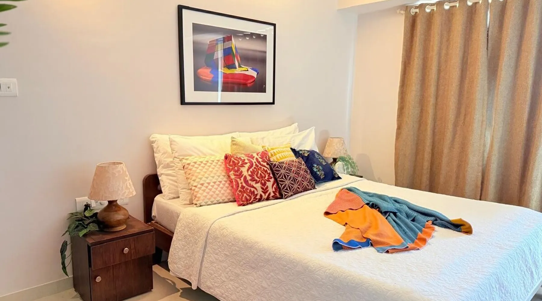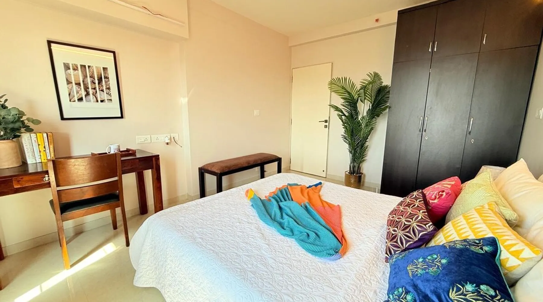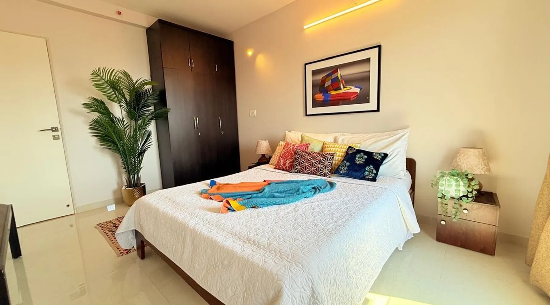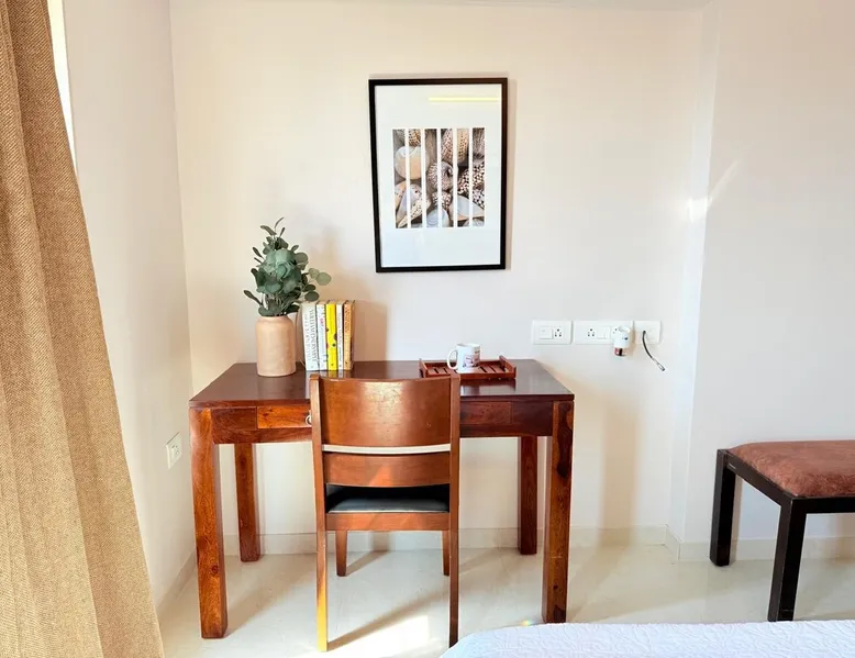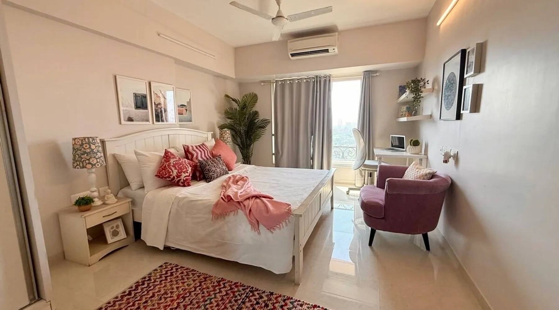 The apartment shares the exclusive benefit of a home away from home with luxurious amenities of a hotel with style. Our endeavour is to make your stay luxurious -Star Hotel-like modern & upscale, clean room with all high-end amenities -3 Bedrm & 3 Bath with all essentials provided -Early check-in & Late check-out (subject to availability) -New Building with pool, gym & salon -Smart TV & Wifi -Regular housekeeping provided -15th floor flat with lift The space ★ “We had a fantastic stay at this beautiful property in BKC for a month while relocating to Mumbai! The apartment was modern and well-equipped with all the amenities I needed, from a spacious living area to a fully equipped kitchen. The pool and gym facilities were top-notch, offering a perfect…” Living Room • Comfort with a cozy 6 -seater dining space • Comfy 5-seater sofa • 43'' Smart TV • Air-conditioned with large windows that let in plenty of natural light • An extra mattress can be used in the living room to accommodate additional Guest • A perfect spot for relaxing or remote work Bedroom 1 • King-size bed with plush mattress and 300+ thread count Egyptian cotton linens • Air-conditioned with naturally cool interiors • Spacious wardrobes — perfect for extended stays • Work desk & chair — perfect WFH setup • Ensuite bathroom • Wide windows with black out curtains Bedroom 2 • Queen-size bed with plush mattress and 300+ thread count Egyptian cotton linens • Air-conditioned with naturally cool interiors • Spacious wardrobes — perfect for extended stays • Work desk & chair — perfect WFH setup • Bathroom right opposite to bedroom • Wide windows with black out curtains Bedroom 3 • Queen-size bed with plush mattress and 300+ thread count Egyptian cotton linens • Air-conditioned with naturally cool interiors • Spacious wardrobes — perfect for extended stays • Ensuite bathroom • Wide windows with black out curtains Bathrooms • Equipped with a geyser for consistent hot water • Western-style toilet with a half-glass panel separating shower and dry space • Includes shower gel, shampoo, toilet rolls, bath & face towels Kitchen • The kitchen is fully functional and equipped to prepare meals of any size includes Microwave, Fridge, Toaster, Kettle, Mixer grinder, Pressure cooker and Gas stove. • Stocked with cookware, utensils, dishes, silverware, etc. Amenities • Fresh linens provided • Housekeeping every day Guest access The Entire House Other things to note INR 10,000 move in charges will be additional. This is required by the society