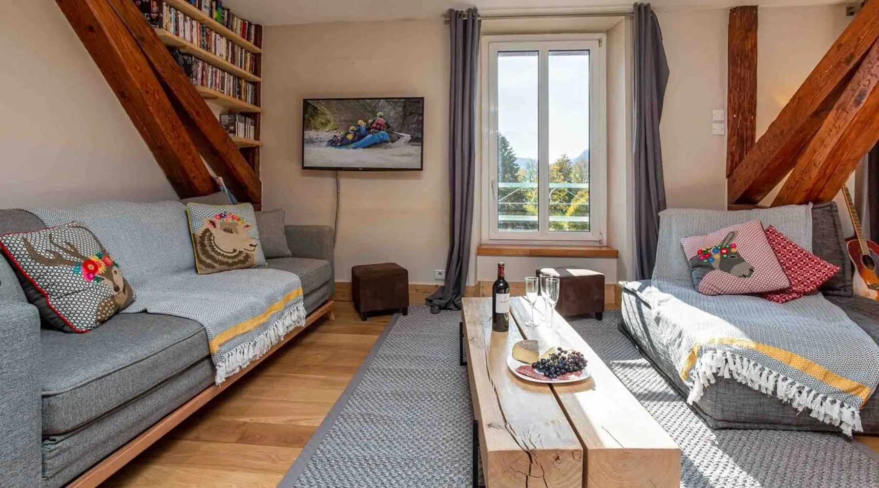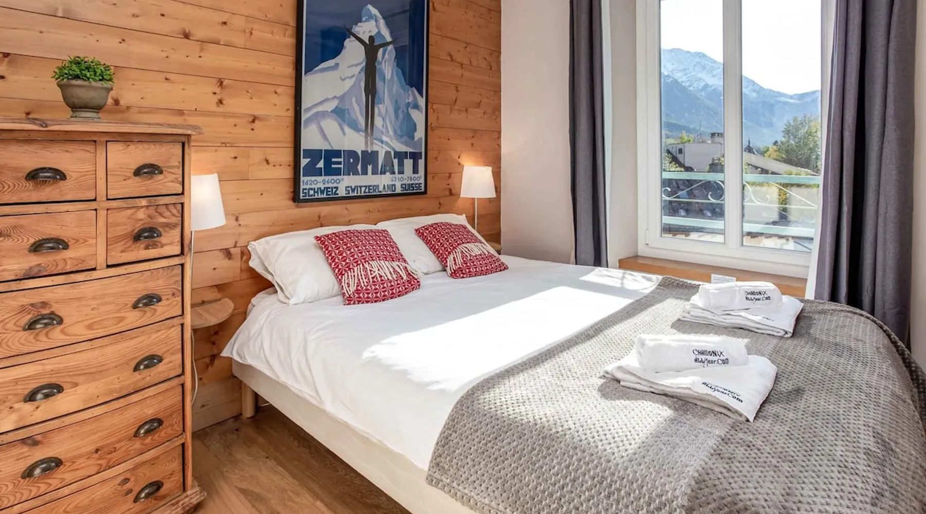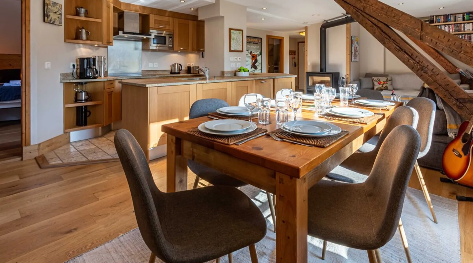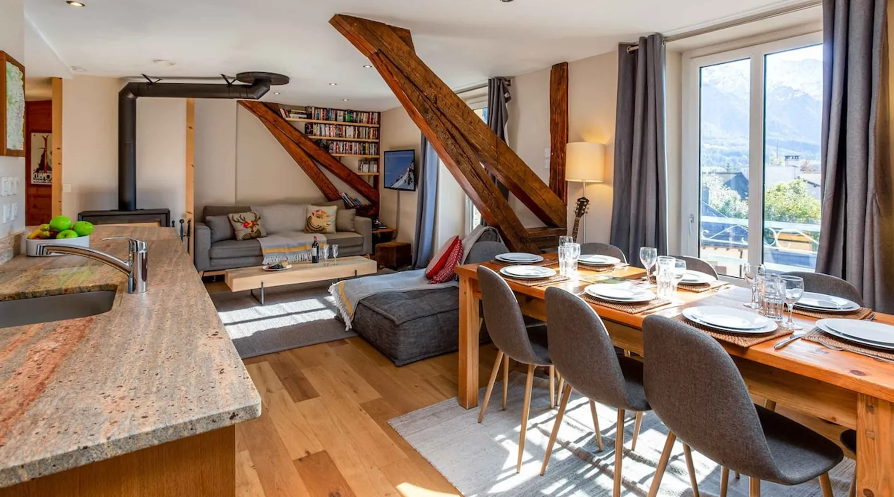The Belle Epoque apartment is a modern, airy 3 bedroom 2 bathroom Chamonix holiday rental in the center of Chamonix. Sleeps 8 with sofa bed, fireplace, Wi-Fi, parking, dishwasher, washing machine. The La Belle Epoque apartment is modern and spacious with 3 bedrooms and 2 bathrooms, this Chamonix vacation rental is in the heart of the city center. It accommodates up to 8 people with sofa bed, fireplace, Wi-Fi, parking, dishwasher and washing machine. The space La Belle Epoque apartment is a Chamonix holiday rental located right in the heart of the town centre, opposite Chamonix's main train station. This apartment is located on the top floor of a traditional Chamonix building, meaning it benefits from spectacular Mont Blanc views as well as a lovely airy feeling thanks to the large and newly fitted triple glazed windows. With three bedrooms and a sofabed, as well as 2 bathrooms, La Belle Epoque can accommodate 6-8 people, with many facilities to make your stay more enjoyable. The living area at La Belle Epoque apartment has comfortable sofas, a wood burning stove, a flatscreen TV with French channels and Blueray DVD player while there is also a large dining table with seating for 8 people and a modern, well-equipped kitchen. There is wifi internet throughout and La Belle Epoque apartment also benefits from private underground parking, washing machine and dishwasher. La Belle Epoque apartment has one master bedroom which can be made up as double or twin beds. The master bedroom benefits from an ensuite bathroom with WC, bath and handheld shower too. The 2nd bedroom has a double bed and the 3rd bedroom has full-size bunk beds. The second bathroom is just off the 3rd bedroom and has a shower, plus there is also a separate WC. Key Features 3 bedrooms, 2 bathrooms Sleeps 6-8 65m2 Master bedroom with double or twin beds and ensuite bath 2nd bedroom with double bed 3rd bedroom with full-size bunk beds Shared bathroom with shower and WC Triple glazed windows Wifi internet access Wood burning stove TV, Blueray Library of DVDs and games Mont Blanc & panoramic mountain views Dishwasher, microwave, oven / grill Washing machine & tumble dryer Ski locker Underground parking Other things to note Check-in times Normal check-in time is from 5pm, if you are arriving after 10pm please let us know in advance. Check-out times Normal check-out time is by 10am. Flexible check-in / check-out times If these times don’t suit your holiday arrangements, you can book our flexible early check-in / late check-out service (subject to availability). This must be booked with us in advance, and may be subject to a fee of 40€ for apartments and 80€ for chalets so that we can prepare the property in time. Late check-in after hours Check-in is possible until midnight, but please try to arrive before 9pm. For those arriving after 9pm there is a 40€ late check-in fee, which must be paid on arrival at your Chamonix Accommodation. Children Travel cots & high chairs / booster seats can be hired through us for 35€ to include cot mattress, bed linen and a towel. You can add this to your booking at the time of booking. What's included One set of bed linen and towels is provided at your accommodation for your stay. If you are staying for 2 weeks or more you will have a mid-stay linen change. Tourist guest cards will be left in the property for you on arrival to give you free travel on the local train and buses and more. End of stay cleaning is included at your accommodation, but we do expect you to follow our check out instructions on departure. If you prefer you can book an additional cleaning service. Chamonix All Year Resort Shop Order everything you need for your Chamonix holiday now via our Chamonix Resort Shop: Geneva Airport transfers Chamonix lift passes Discounted ski hire Additional Accommodation Details Bike Storage Bikes can be stored in the underground parking area on the private parking space allocated to the apartment. Pets Pets are welcome at this property but permission must be obtained in advance and a charge will be applied at time of booking. The additional fee is 40€. Parking Bear in mind that the underground parking has restricted height, so we don't recommend coming with a large 4x4 or roof box. If your car is too tall for the car park, our Resort Team can advise on the closest free and payable parking options. Lift access The lift goes from the ground floor up to the apartment; the basement for ski locker and parking is accessed via the staircase. Registration Details 74056002191C4