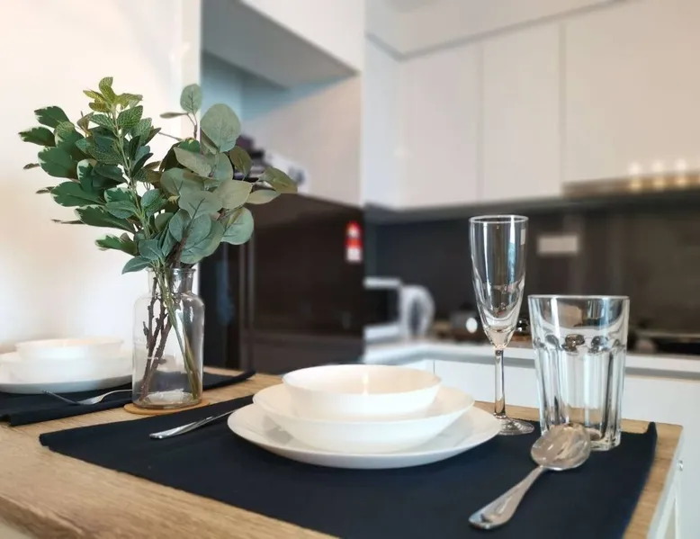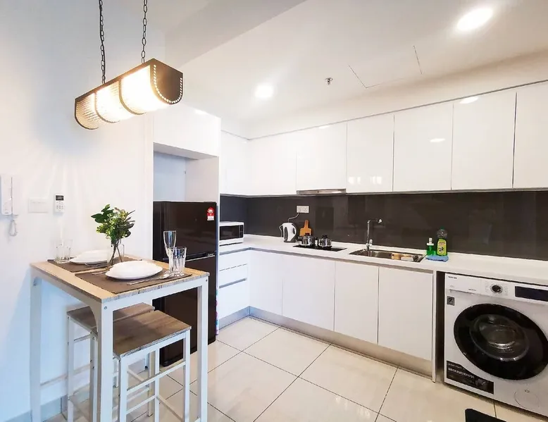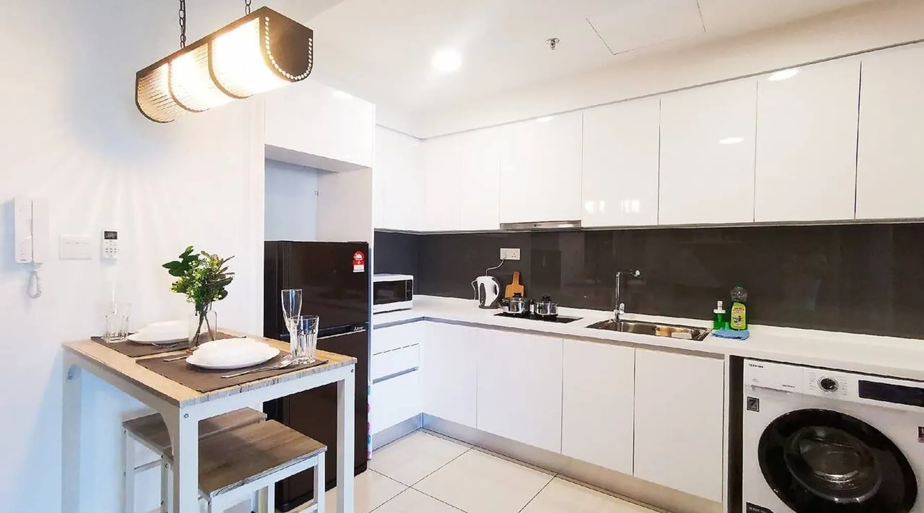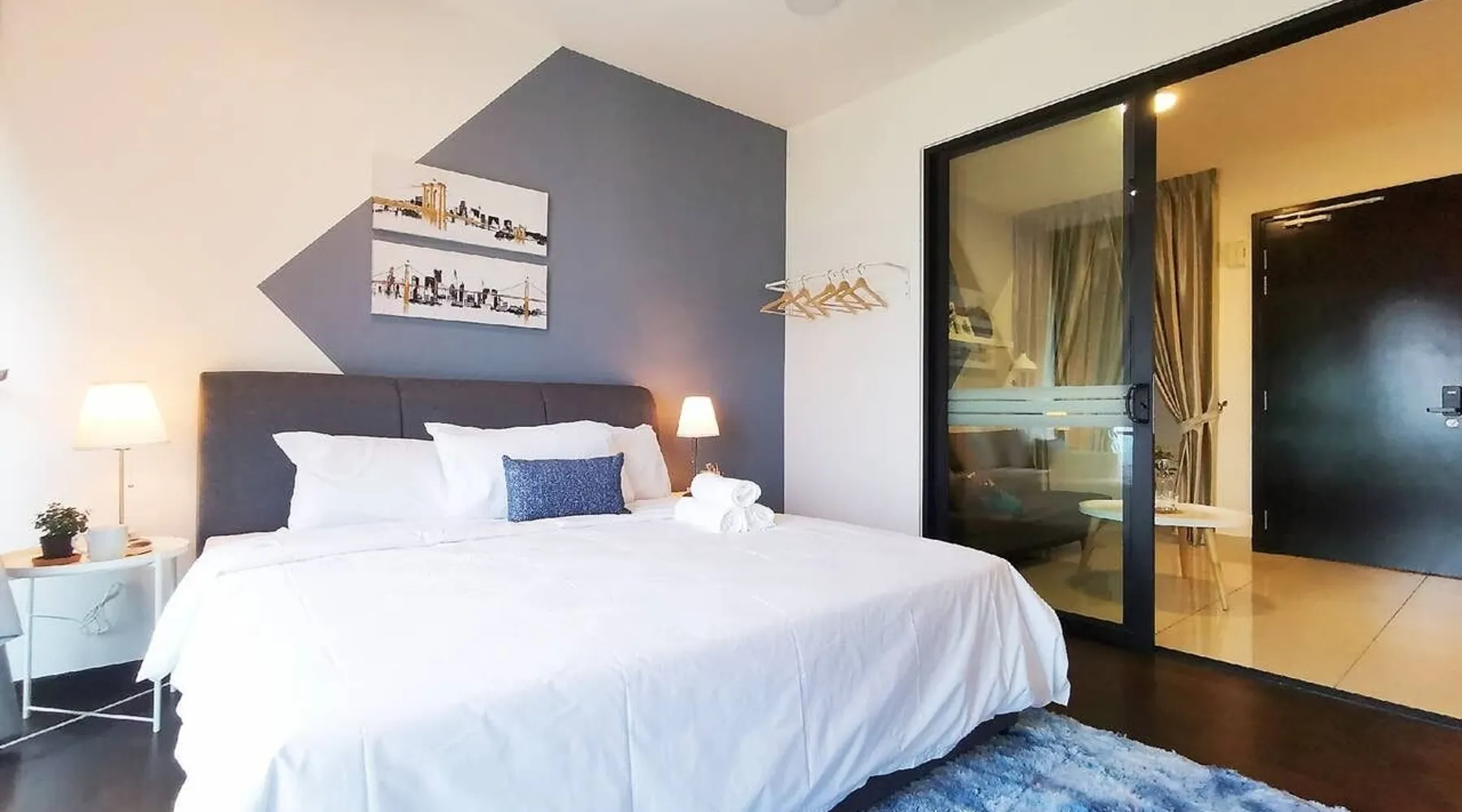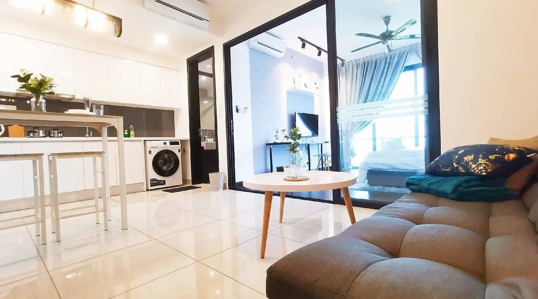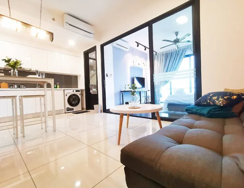 Almas Suites is a NEW 1 bedroom unit in Puteri Harbour, Iskandar Puteri. The luxurious condo with an iconic design in Johor Bahru. Enjoy the euphoria of luxurious living by staying at our place now! The space ★ The Home ★ Modern design and comfortable 1 Bedroom just for you: - Bedroom 1: King size bed Extra comfortable 3-seater sofa bed provided. Fully equipped kitchen with electric stove and cooker hood, provided with basic cooking tools such as Frying pan, Sauce pot, Kettle and utensils. Fast unlimited wireless Internet available for smooth surfing and streaming. Clean and spacious bathroom equipped with hot shower, body and hair shampoo. Hotel-grade linens and towels are supplied just for you. Washing machine and dryer is provided here, hassle free cleaning solution! This 1 bedroom Apartment is situated on the 25th floor of Almas Puteri Harbour, balcony overlooks the Harbourside and beyond the horizon.. Guest access Common facilities at Level P6 where you can spend time and soaking in the breath-taking sunset with your loved ones: - The Skydeck with Outdoor Garden (Level 34) - Air conditioned Gym (Level P6) - Indoor Basketball court (Level P6- booking required) - Jacuzzi and Sauna (Level P6) - Lap Pool & Kids Pools (Level P6- Proper and decent swimming attire required, No shorts/beach wear etc) - Children’s Playground (Level P6) Other things to note Other things to note We can arrange transport service to/from Singapore or Senai airport. Let us know if you need one with reasonable price. - Extra mattress, pillow, blanket (set) will be charged rm20 per day - Room cleaning will be charged RM40 (per request) - Smoking is allowed BUT please confine it to the balcony with glass door shut. - All electronic items can be used by guest, please use with care