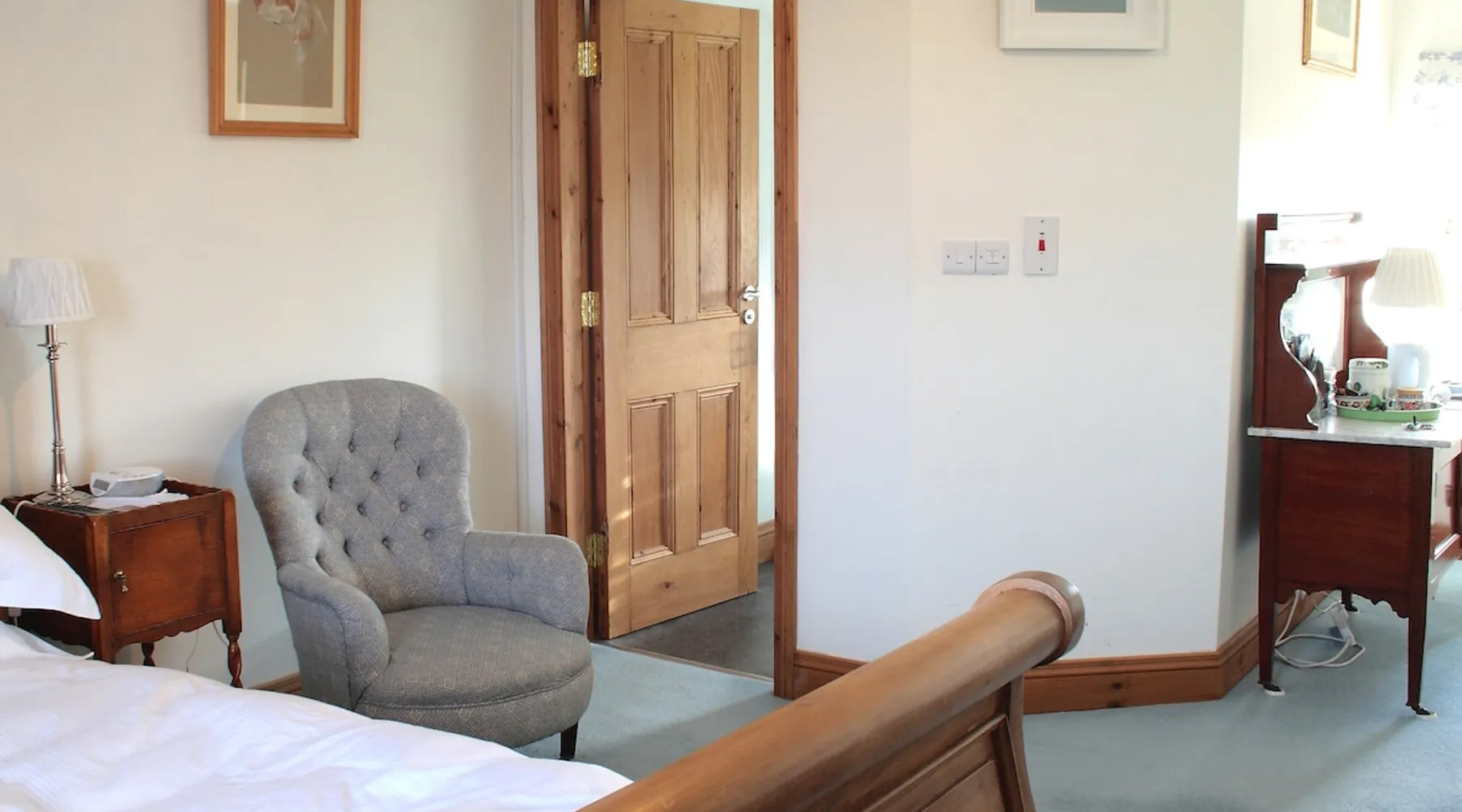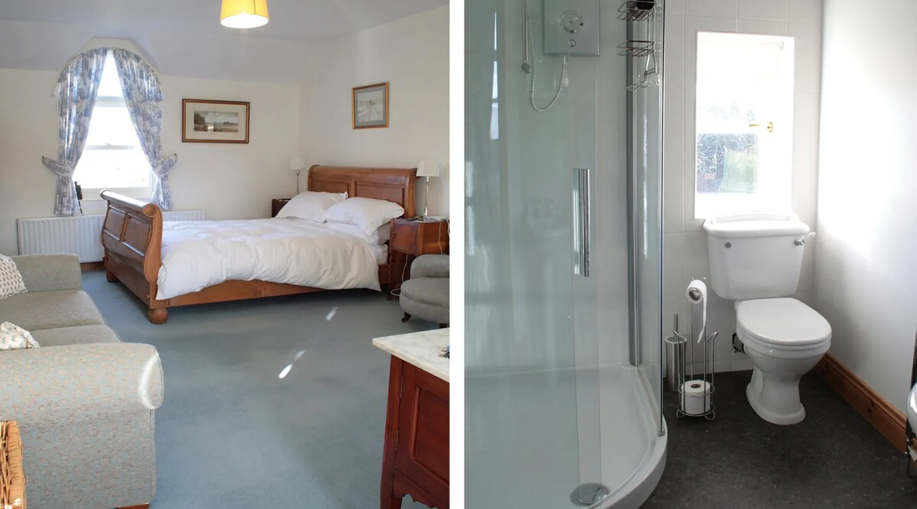 We are on the shores of Lough Neagh with excellent views of the Lough. We use local produce for our breakfasts and can offer evening meals if arranged in advance. It is easy to explore Northern Ireland from here as we are 30 minutes from Belfast and you can reach the North Coast in under an hour. It staying more than one night you really need your own transport. We can offer parking for cars, storage for motorbikes and bikes and even canoes! Look forward to welcoming you to Bay Cottage. The space We have two bedrooms (both have lovely views of Lough Neagh) and guests have use of our lovely big sitting room, but this listing concentrates on the Blue Room. The Blue Room is en suite, has a large double bed and a sofa which opens into a standard double so the room is excellent for couples or families with young children. It has a TV, binoculars, hairdryer and a hospitality tray. There is a library available for guests and there are magazines in the sitting room. The sitting room has a multi fuel stove (for chilly evenings), large TV, extensive selection of tourist information, and most important of all, comfortable chairs and sofas. All meals are served in the dining room and guests are welcome to bring their own wine or beer if having an evening meal. Breakfast uses our own free range eggs, (you can meet the hens), rare breed pig products, home made Irish bread and preserves, and Elizabeth uses local produce whenever possible. Local produce is also used for the evening meals which are by arrangement. Guests are welcomed with the offer of tea or coffee and home made scones or cake. There is off street parking for cars and covered storage for bikes, motorbikes and canoes and storage for sports equipment such as golf clubs. We also have a kennel and run for visiting dogs. Outside there is an area for guests to sit and admire the view. We can offer guests WiFi. The house and garden are 70 yds from the lough and have uninterrupted views. The field in front of the house is home to our hens and geese, whilst we have ducks in the back garden. It is a very rural area, so very peaceful despite close proximity to Belfast International Airport. Public transport is nearby and we are happy to collect guests from the airport or the nearby towns of Antrim and Crumlin. Both have public transport links to Belfast and other areas of N.I. We are on cycle route - Sustrans 94. We are 30 minutes from Belfast City Centre (apart from rush hour), 25 minutes from Ballymena and Lisburn, 45 minutes from the Giant's Causeway (direct route), 45 minutes to mid-Ulster with its wonderful National Trust properties. We are 15 minutes from the uniques Patterson's Spade Mill, and 10 minutes from either Antrim or Crumlin. We like people and will be delighted to welcome you to our home. Guest access Guests have access to their bedroom, the sitting room, a gazebo area with chairs and a table outside. There is free Wifi, lots of books and a selection of jigsaws and board games. Other things to note We do have a cat who lives in the house. We also have poultry in the field across the road and ducks in the back garden.