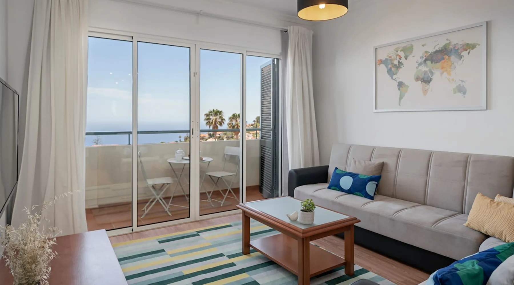 Located in Garajau, the apartment has a nice view of the Atlantic Ocean. The space Beach, diving and close to several points of tourist interest. The area of Garajau is known for its calmness and proximity to the sea. Situated between the city of Funchal and the airport, it has several services and restaurants close to the property. The apartment is spacious and has two bedrooms; one with a double bed and the other with two single beds. The pleasant living room has a sofa bed and good natural light thanks to the access to the balcony which offers you a great sea view. Its central location, ten minutes drive from the airport and the city of Funchal, is a real advantage for those who want to be close to the city and near the east side of the island. With a maximum capacity of six people, the apartment is fully equipped with all amenities. The property has a free parking place. THE NEIGHBORHOOD OVERVIEW The Garajau area offers you many restaurants, shops and supermarkets options. Furthermore, a beach can be reached within a five minutes walk, and there is a small trail for your morning walks, right next to the Cristo-Rei monument. Renting a car at the airport may be a good option to discover the island at your own pace. You can also choose to relax in Garajau and walk through its residential streets, going to the beach or reading a book in your private garden; these are just a few of the privileges in staying in this area. GETTING AROUND The private transfer service is the best option to get to the flat. Contact us in advance to schedule a private transfer car with our local partners. It is cheaper than taking a taxi on your own in the airport! GUEST ACCESS Guests have access to all areas of the flat. INTERACTION WITH GUESTS We are always at your disposal to help or to answer your questions. You can contact us via our mobile numbers or by email. We will do our best to meet your requests. OTHER OBSERVATIONS - According to Portuguese law, all guests are required to present a valid ID. (E.g. passport, identity card). - Check-in must be scheduled in advance. In case the check-in is not scheduled within a maximum of 48 hours prior arrival, guests will be subject to the availability of our team. - All bed linen and towels are provided. We can also provide a crib, a baby high chair and a baby bathtub if needed. First aid kit, fire extinguisher and fire blanket are available in all properties. ATTENTION We inform that a Municipal Tourist Ecotax will be charged for person staying overnight in the municipality of Santa Cruz. All guests staying in tourist developments and / or accommodation establishments, aged 13 or over, will be charged 2,00€ per person/night, up to a maximum 7 nigths stay/ 14€ per person. Close to your arrival, you will receive the link to pay this fee. HOUSE RULES We want you to feel right at home! Thank you for respecting the neighbours and for not smoking inside the properties. Registration Details 96327/AL
