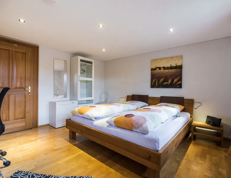 Welcome to the beautiful Hinterthurgau! Comfortably furnished 1.5-room apartment Royal: fully furnished kitchen, high-quality double bed with comfort mattresses, large curved TV, modern bathroom, balcony with table and chairs. Free fast WiFi, parking space. Nearby: Jakobsweg, Fischingen Monastery, hiking and cycling trails. It is also possible to book the Royal apartment together with Studio Bijou: Maximum number of people: 5 adults and 1 toddler. Price on request. The space Apartment details: - 1 1/2-room apartment with high-quality double bed with comfort mattresses - Extra bed possible - Fully equipped kitchen-living room with dishwasher, ceramic hob, oven, Nespresso coffee machine, kettle, etc. - Large curved TV satellite and cable, radio, free fast Wi-Fi (Wifi) - Modernly furnished bathroom with shower, toilet, washbasin - Direct access to the balcony with a table and chairs - Private parking next to the house - Crib and Tripp Trapp available It is also possible to book the apartment Royal together with the Studio Bijou: 2 1/2-room apartment. Amenities: 2 bedrooms, 2 TVs, fully equipped kitchen-living room, 2 bathrooms. Maximum number of people: 5 adults and 1 infant. Price upon request. Non-smoking house, smoking is allowed on the balcony. We live on a village main street, especially in the morning and evening hours, street noise must be expected. The host couple lives on the 2nd floor of the house. Languages: D, E, F Guest access Private parking next to the house. The guest room is on the raised ground floor and can be reached via 4 steps. Highway A1, exit Münchwilen/Sirnach 5 min. away. The "Oberwangen Grueb" bus station is a 2-minute walk away. The nearest train stations are in Sirnach and Wil/SG Other things to note The homeowners live on the two floors above the guest rooms. We live on a village main street, especially in the morning and evening hours, street noise must be expected. Pets are not allowed. No events allowed We are not an hourly hotel.