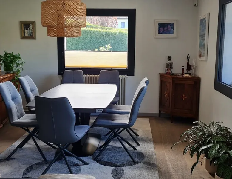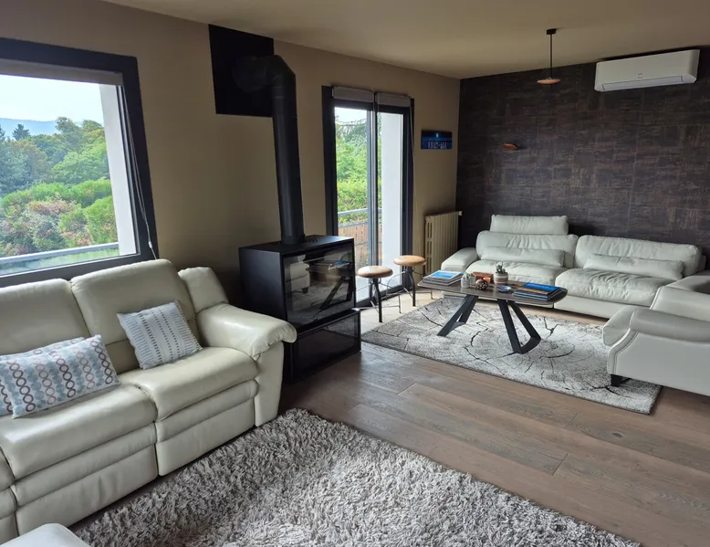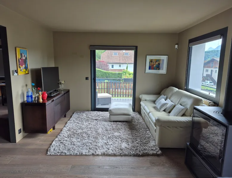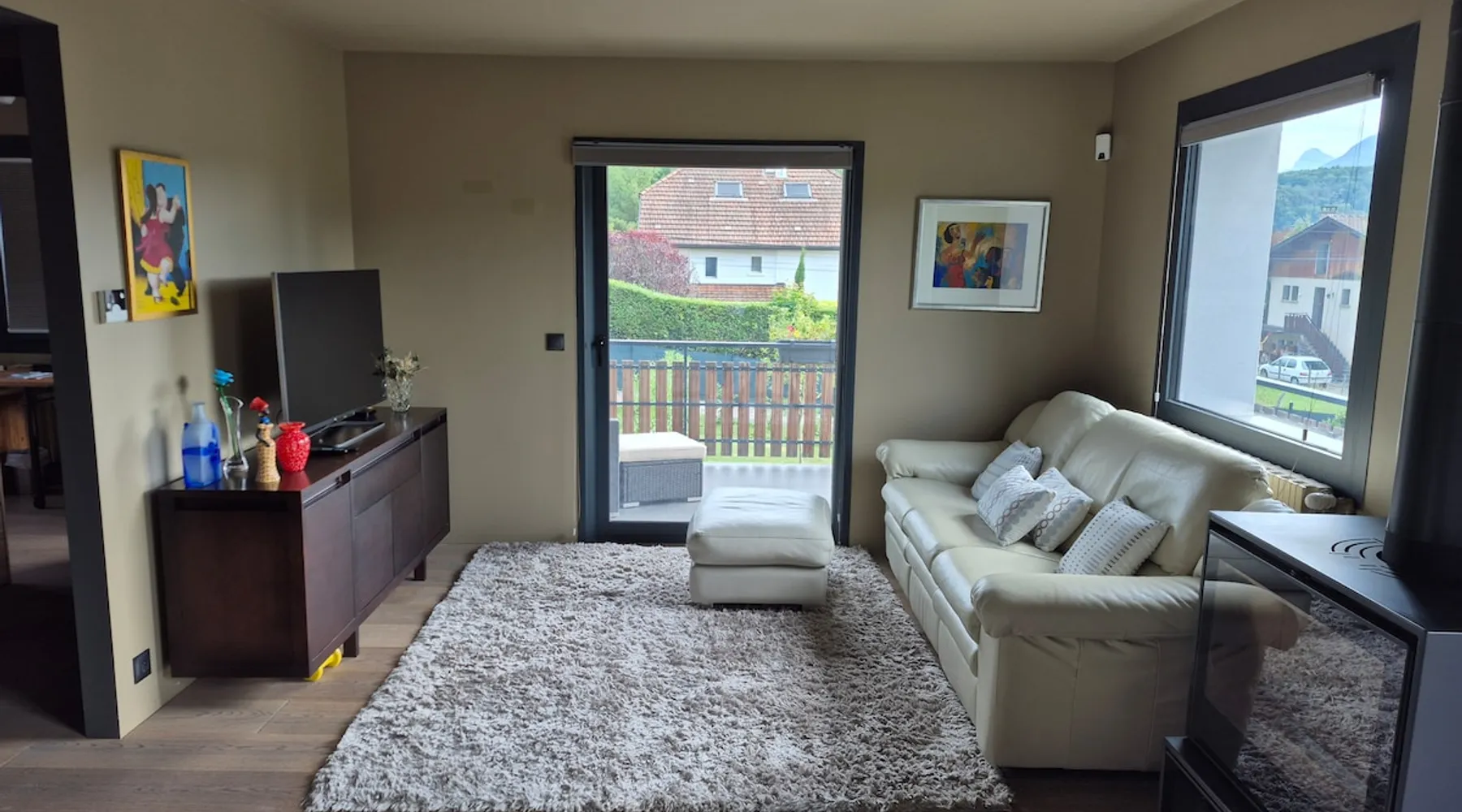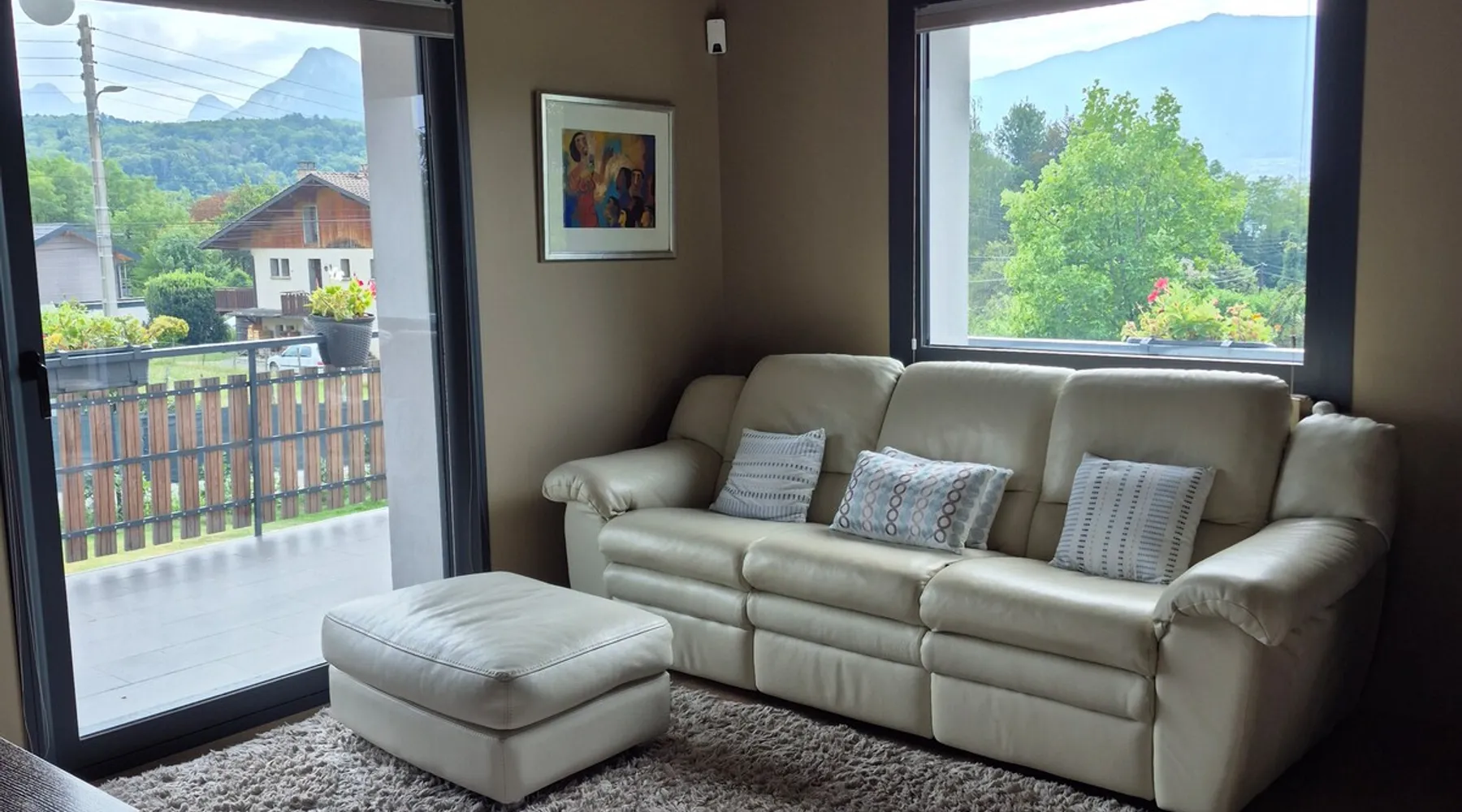 House on 3 levels, with terrace, beautiful swimming pool 10x3 meters, very beautiful view, charm, contemporary and refined decoration. Balcony with views of Menthon Castle. Very quiet and pleasant place, beautiful garden with trees giving shade nooks. Kitchen overlooking the pool, making pleasant moments for aperitifs and meals. Garden furniture with outdoor sofas and umbrella. The house is air-conditioned. City center and lake 5 and 7 minutes walk. The space Fully renovated high-end house. Proximity lake (8min walk), center of Menthon (5min walk). Stunning views of the mountains and Menthon Castle. Kitchen and dining room overlooking pool of 10x3 meters Guest access All spaces are accessible except the garage and attic Registration Details 74176000149PA