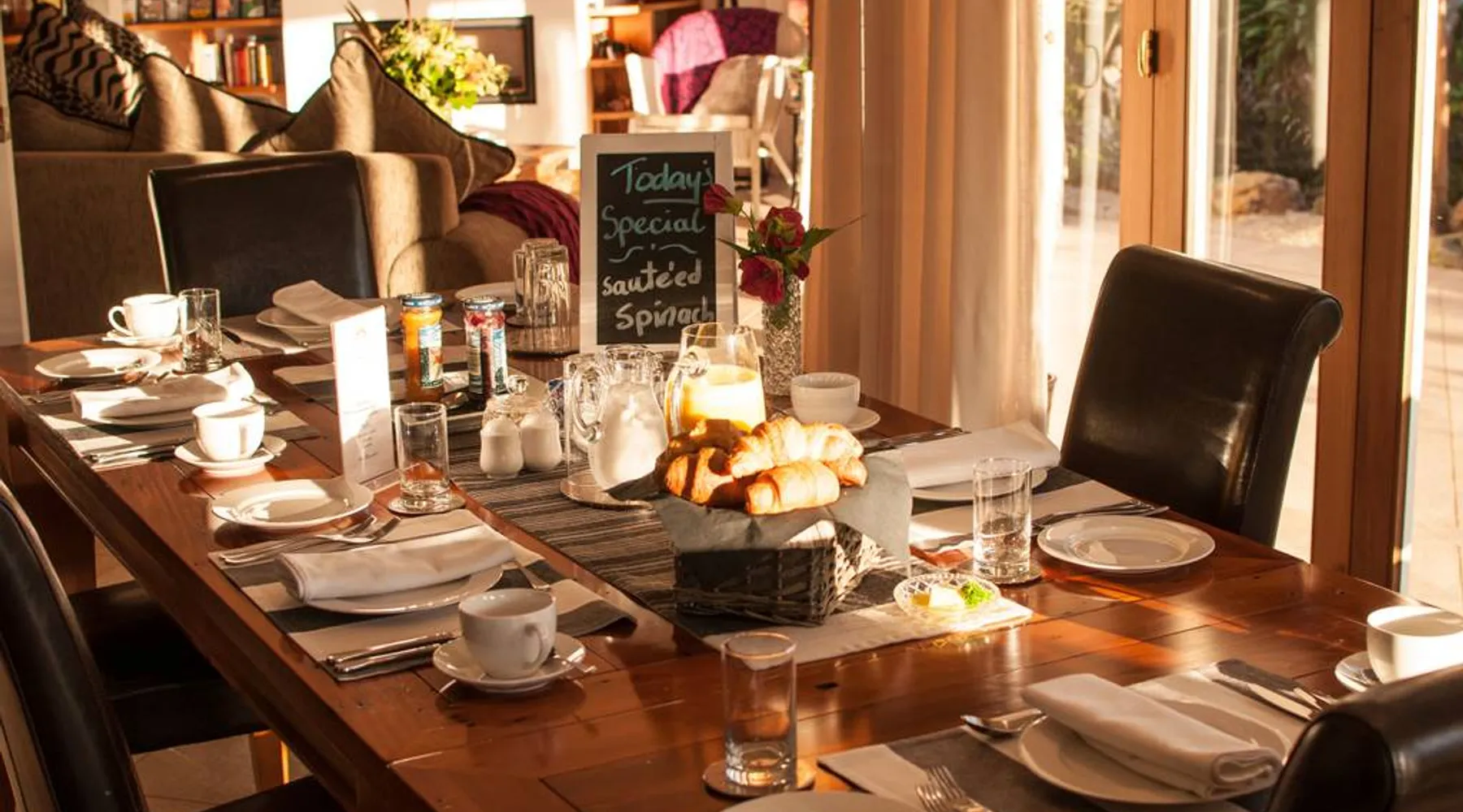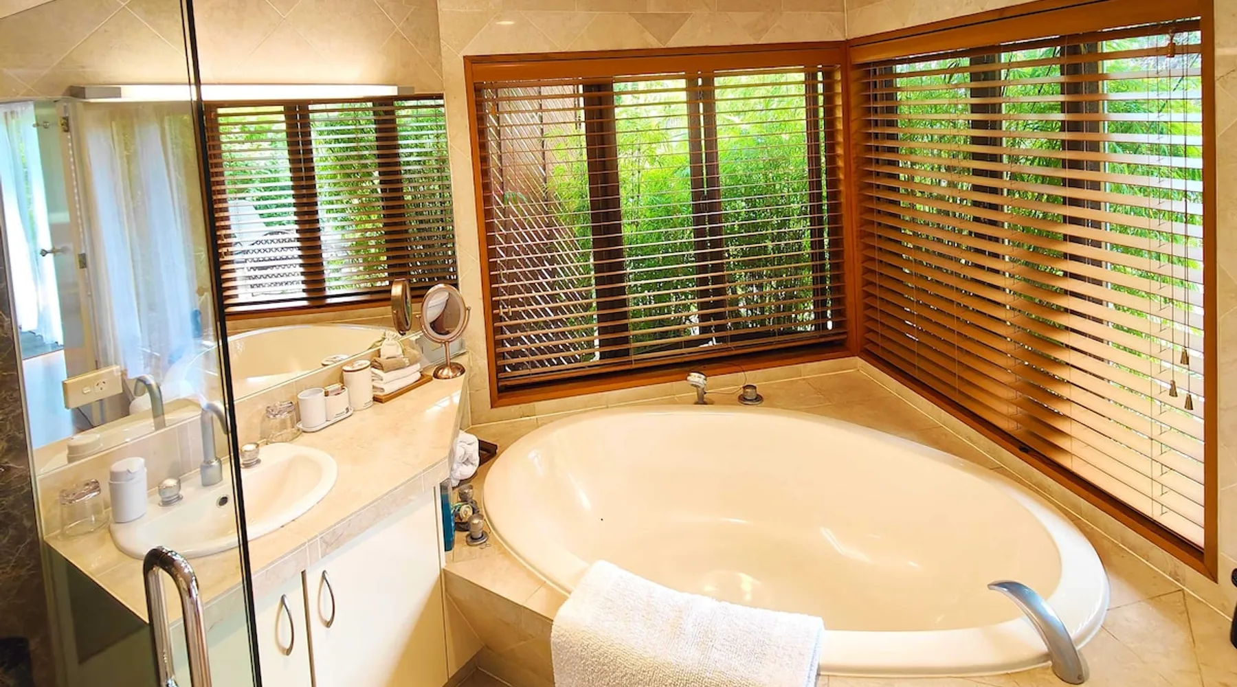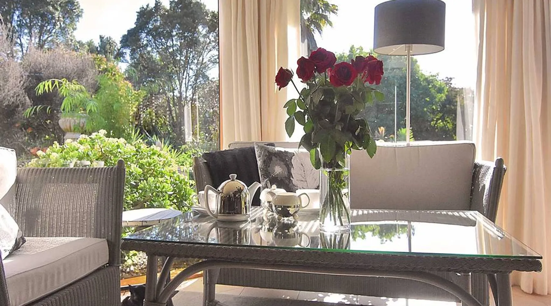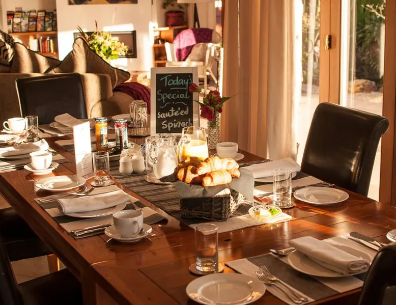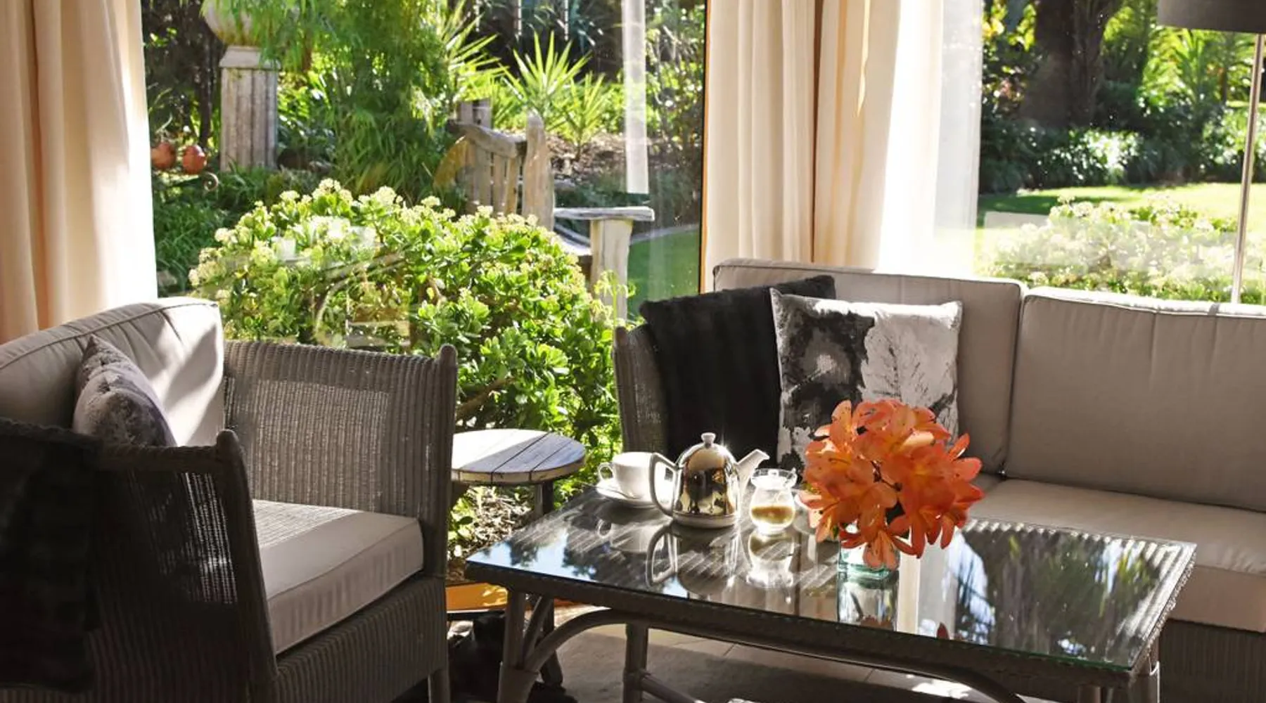 Moon Gate Villa is an elegant country lodge built just outside Kerikeri township amongst traditional orchard hedges. The grounds feature 1.5 acres of open lawns and lush, tropical gardens with hidden destinations to relax and enjoy this private retreat. We are only 4 minutes walk to the weekend markets, and close to many restaurants and cafes. The space Accommodation is either in the spacious villa guest rooms with large windows and doors overlooking the gardens, or the traditional orchard cottage in a private corner and garden area. All guests have access to our public spaces; a large guest lounge and terrace, our solar heated lagoon swimming pool and garden spaces. Dedicated, off-street parking is available to all guests. Guest access The "Writer's Retreat" is our most special room, with views over the terrace ponds and gardens. It has a walk in wardrobe, and a full size marble bathroom with a deep soaker bath. A huge super-king size double bed with a luxury topper and quality linens ensures a brilliant night's sleep. The suite has private outside and inside living/dining areas complete with large smart TV, surround sound and complimentary Netflix, Amazon Prime and Disney TV. A mini bar area has a bar fridge, microwave, glassware & dishes. Complimentary tea and coffee area replensihed daily. Other things to note Unless specified, breakfast and daily rooms servicing is included in your rates: there are no extra fees. Note that the main villa kitchen is used to prepare our guest breakfast and is not available for guest use for health and safety reasons.
