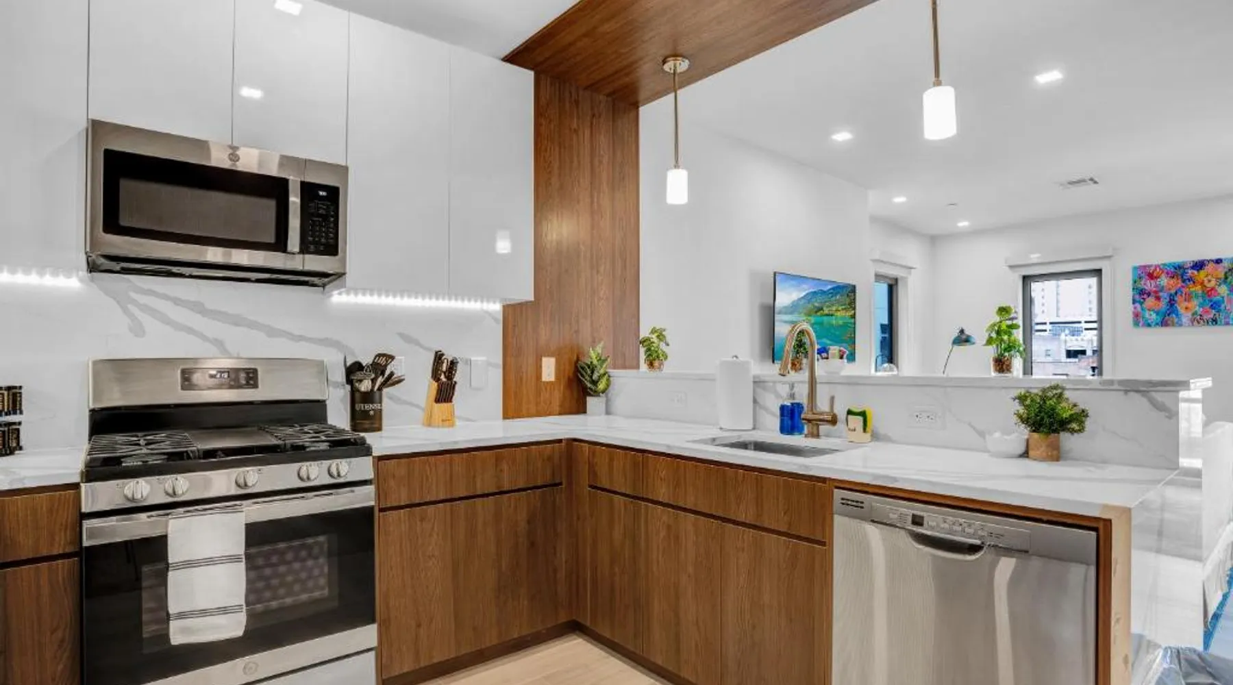 Spacious Living: The NEW! Vibrant Large Studio Dwntwn 18 Mins to NYC in Newark offers a spacious apartment with one bedroom and one bathroom. The property is pet-friendly and includes a lounge, elevator, and family rooms. Modern Amenities: Guests enjoy free WiFi, air-conditioning, a washing machine, and a fully equipped kitchen with a refrigerator, oven, stovetop, microwave, dishwasher, and tea and coffee maker. Additional amenities include a work desk, TV, and free toiletries. Prime Location: Located 3.7 mi from Newark Liberty International Airport, the apartment is a 7-minute walk from Prudential Center and 0.6 mi from New Jersey Performing Arts Center. Nearby attractions include Ellis Island (8.7 mi) and the Statue of Liberty (11 mi). In the well-equipped kitchen, guests will find a stovetop, a refrigerator, a dishwasher and an oven. The spacious apartment offers air conditioning, a washing machine, a private entrance, a tea and coffee maker and a flat-screen TV. The unit has 1 bed.