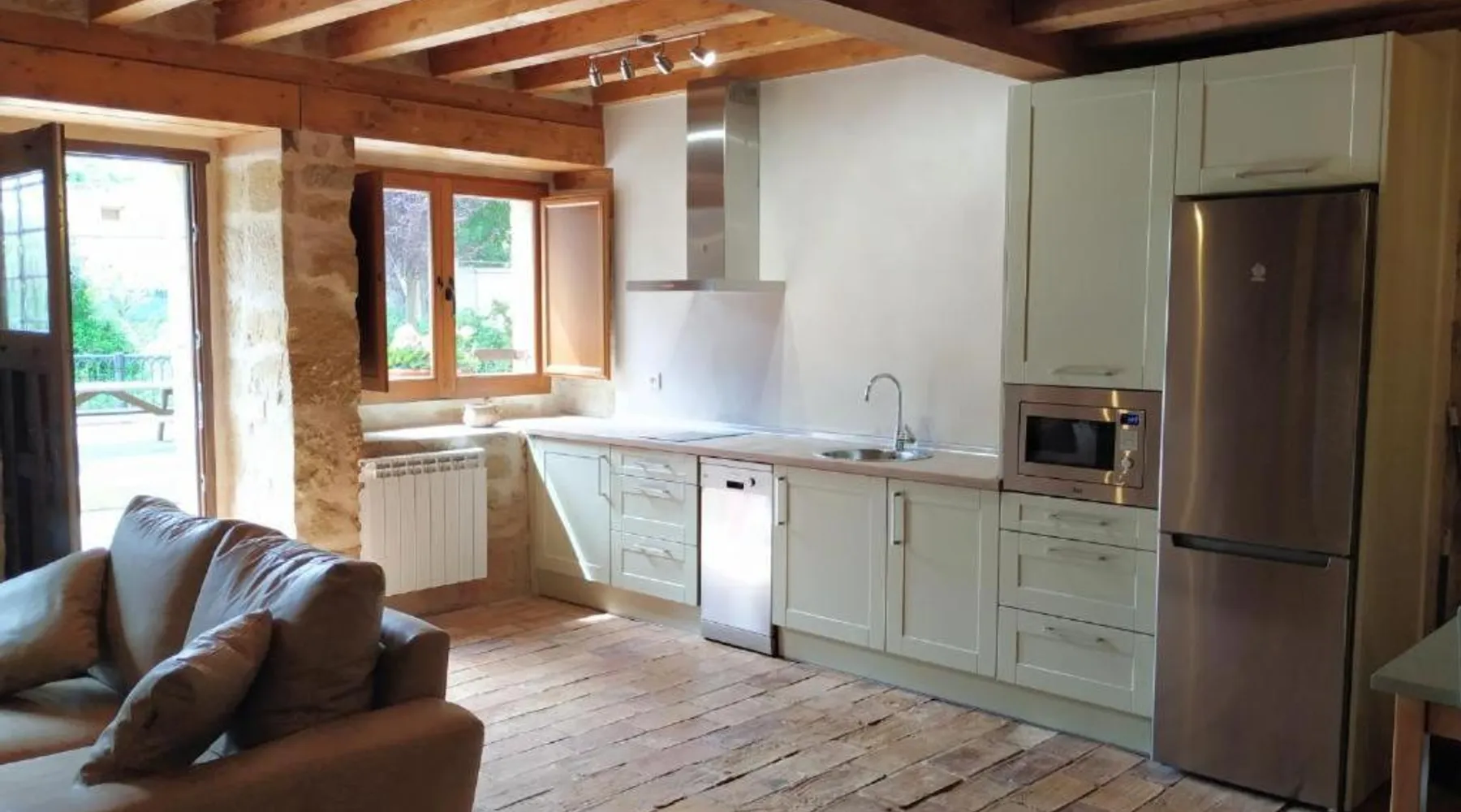 Sun Terrace and Garden: La Casa de las Tinas in Sajazarra offers a sun terrace and a lush garden. Guests can relax in the outdoor spaces and enjoy the serene surroundings. Comfortable Accommodations: The holiday home features family rooms with private bathrooms. Each room includes a kitchenette, balcony, and garden views. Additional amenities include a sofa bed, TV, and wardrobe. Convenient Facilities: Private check-in and check-out services, a 24-hour front desk, and bicycle parking enhance the stay. Express services and a tour desk are also available. Local Attractions: Located 27 mi from Vitoria Airport, the property is near Rioja Alta (17 mi), Mendizorroza Stadium (28 mi), and the Basque House of Parliament (29 mi). Skiing opportunities are nearby. Highly rated by guests. Featuring a private entrance, this holiday home also is consisted of of 1 living room, 3 separate bedrooms and 2 bathrooms with a hairdryer. The holiday home's kitchen, which features kitchenware, is available for cooking and storing food. Boasting a terrace with garden views, this holiday home also offers a seating area and a flat-screen TV. The unit offers 5 beds.