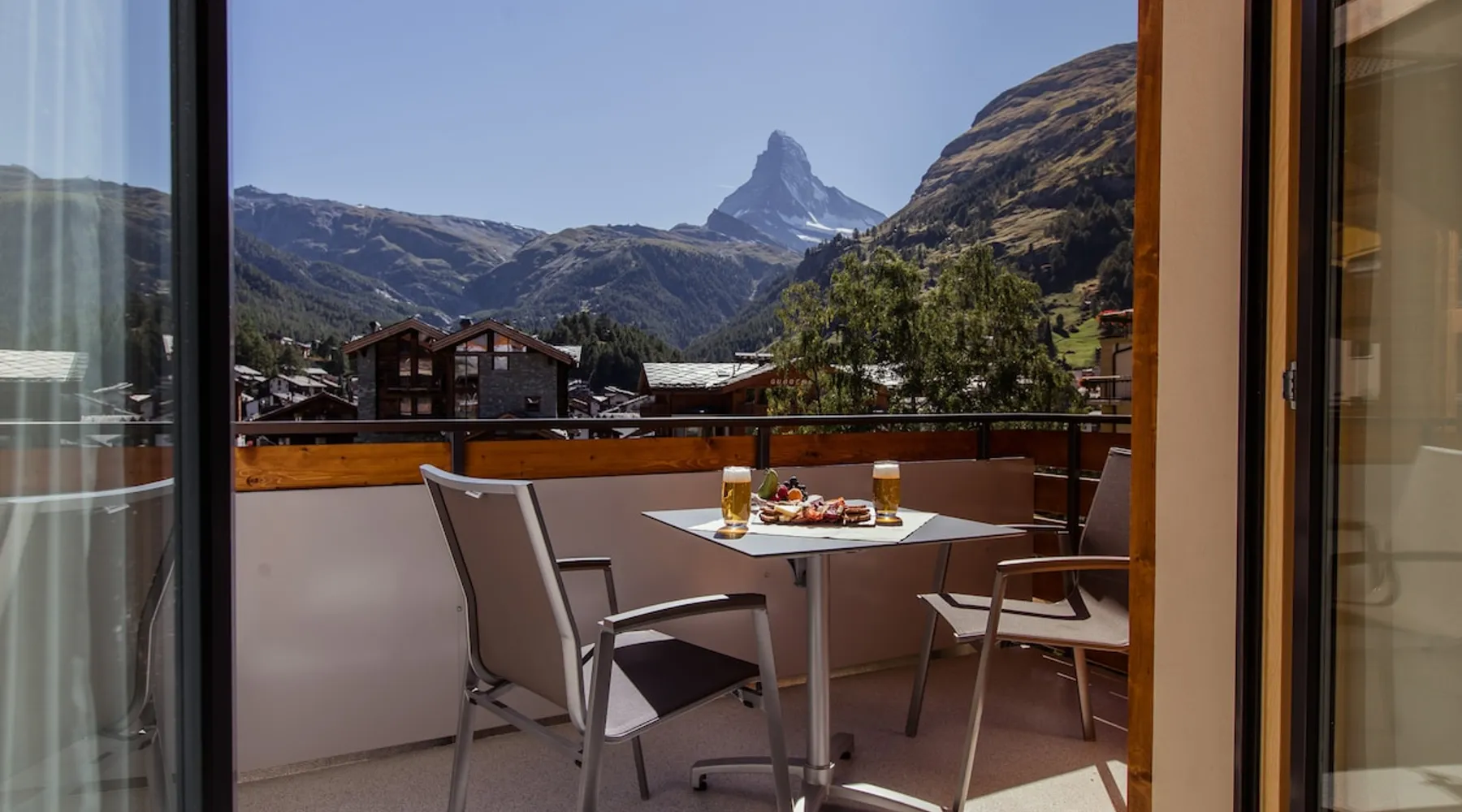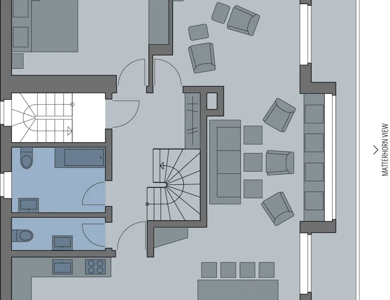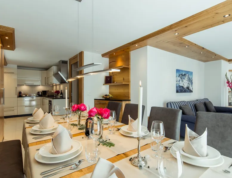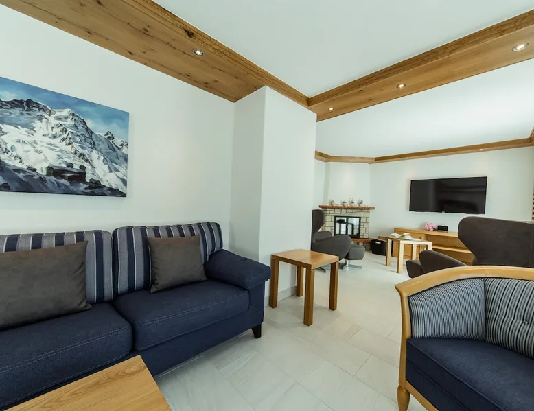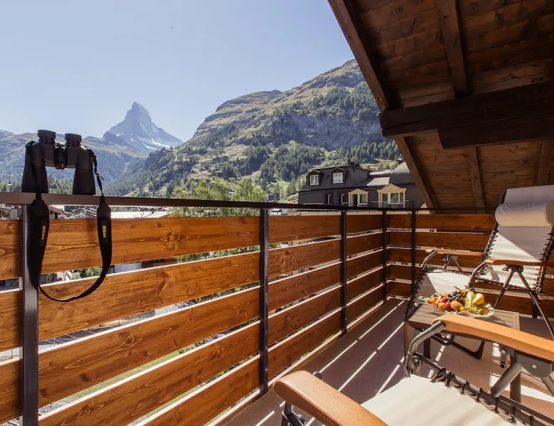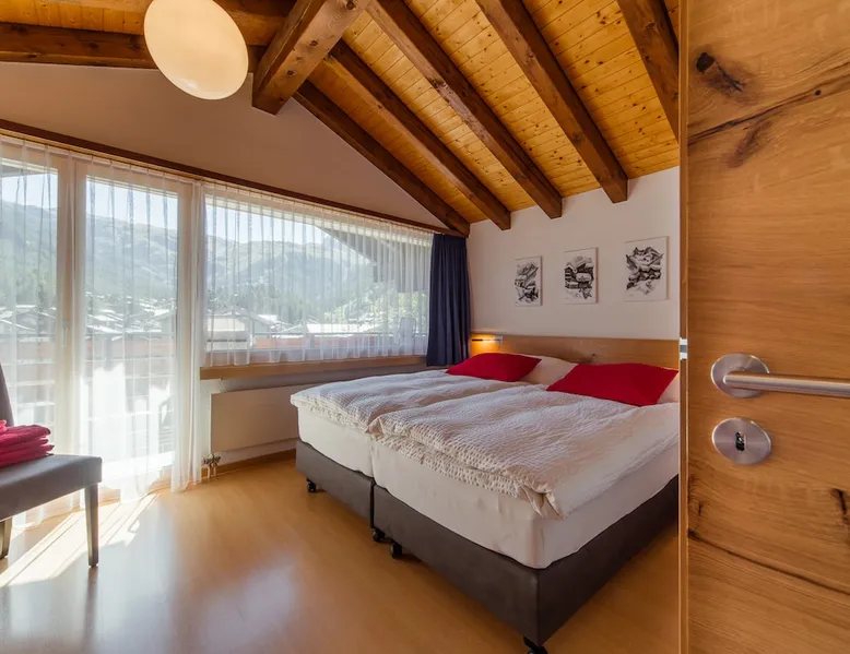 Our accommodation is near the train station and shopping centers. You will love our accommodation because it offers free view of the Matterhorn and Zermatt. It is quiet and centrally located. Our accommodation is suitable for families with children and small groups. Our guests receive a special discount of 50% on the entrance to the SPA & WELLNESS of the Beausite Zermatt. The space Spacious living room with fireplace (wood free of charge) 2 south-facing balconies Fully equipped kitchen with Nespresso machine Bathroom WC, shower WC, day WC and additional shower in the south bedroom 4 bedrooms with double or single beds Free WLAN Ski boot heating and lockable bicycle shelter Guest access The whole living space is only for guests.