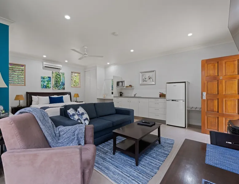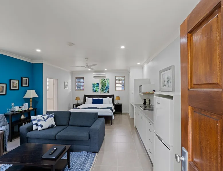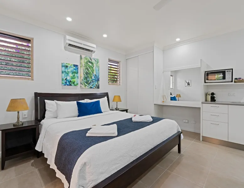 Luxury Blue Summit Hideaway Spa Villas, secluded and quiet, yet located in the heart of the heritage, tiny country town of Yungaburra, approx. 1 hours’ drive from Cairns. Set in breathtaking surroundings of lush, green, colourful and fragrant gardens, will capture your sense of a true holiday escape. The five-star standard Villas are ideal for a romantic weekend away, for busy executives, individuals, families or friends wanting to visit Yungaburra’s uniqueness. The space Featuring all the comforts imaginable. - Luxury comfy king bed - Kitchenette with toaster & microwave - Nespresso Coffee Machine with Tea / Coffee Facilities - Wall mounted HD TV with NETFLIX and STAN - Cosy sitting area with ambient electric fireplace - Free fast WiFi - Modern Ensuite - Reverse cycle air-conditioner - courtyard - Free off street allocated parking Guest access This property is located at 22 Gillies Range Road, Yungaburra, QLD, 4884 - Please Check in here. Self-check-in is possible for example if you're arriving late. Prior to arrival we will send you our pre-arrival check-in. Please complete and let us know your arrival time. Check-in is from 2pm and call us to arrange a contactless check-in. Other things to note Blue Summit Hideaway is perfect for Couples, but can also accommodate Children. Children must be declared when booking regardless of whether they are sharing a bed with the Adults, sleeping on Guest supplied bedding, or if the bedding is to be provided by us. Any guests who wish to bring an infant that requires a porta cot with sheets/blanket and/or a highchair will be charged an extra fee of $20. This additional cost will not show in your AirBnB reservation but can be paid on arrival. Please let us know if you require the baby equipment, thanks.