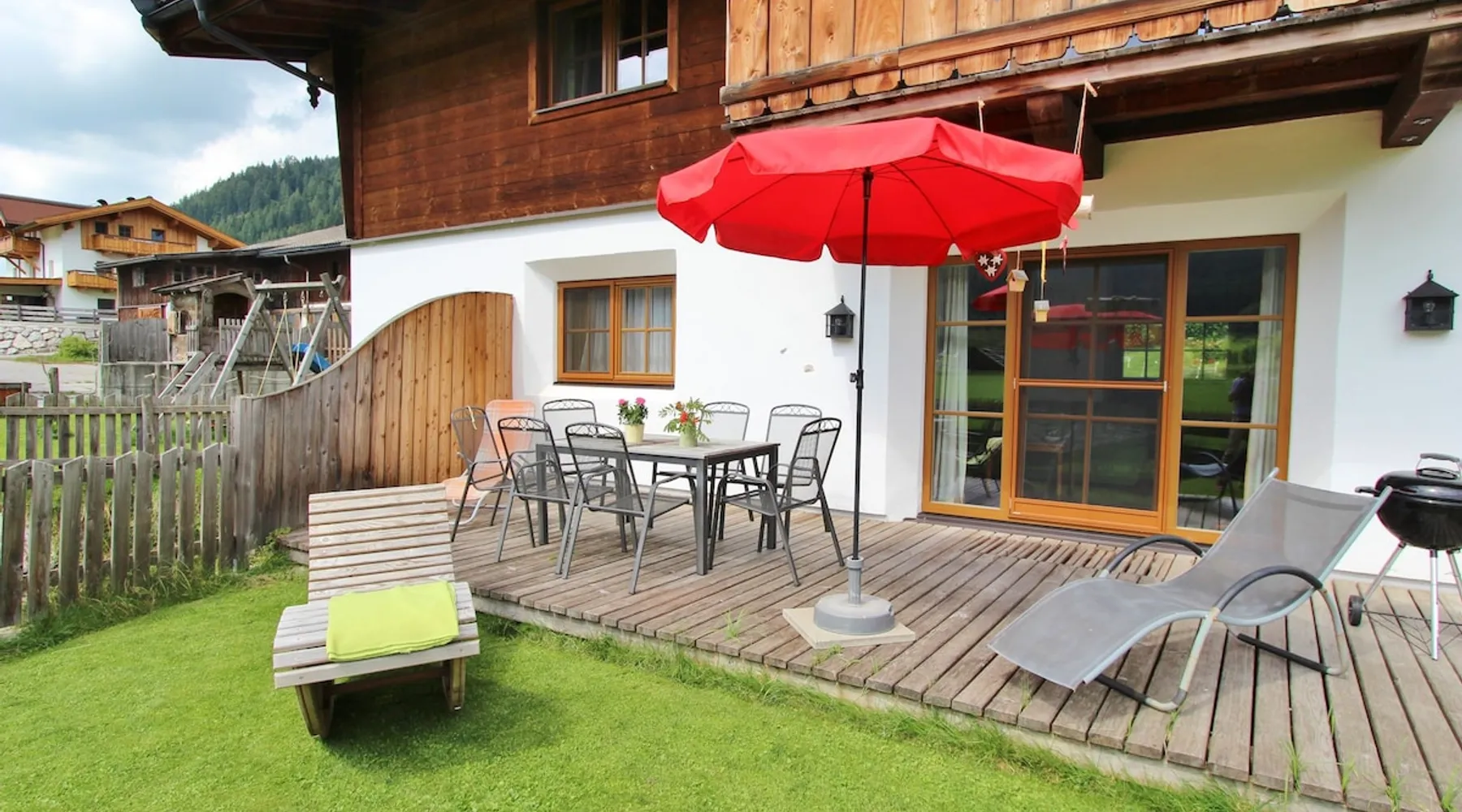 Chalet in Leogang near Ski Slopes The space This rustic, detached holiday home for a maximum of 12 people is located directly outside the well-known and centrally located village of Leogang in Salzburgerland and on the sunny side of the Leogang Valley, surrounded by the Leoganger Steinberge and the Kitzbühel Alps. The house is divided into two apartments, one on the ground floor and one on the first floor: ideal for families or friends traveling together. The apartments are both identically furnished, with plenty of space and privacy. On each floor you have access to a cozy and spacious living room with TV, sitting area and dining area, a fully equipped kitchen, and two bedrooms, each with a double and single bed, which share access to a modern bathroom. From the sunny balcony or the large terrace you have a beautiful view of the surrounding mountain landscape. In the basement there is a wonderful wellness area (shared use and for a fee). There are parking spaces directly at the house. In winter you can quickly take the free ski bus in approx. 600 m to the famous Skicircus Saalbach-Hinterglemm - Leogang - Fieberbrunn ski area, with 270 kilometers of slopes and the Nitro Snowpark, one of the largest ski areas in Austria. Of course, there are also plenty of outdoor activities for those who don't like skis, wonderfully cleared hiking trails, tobogganing, cross-country skiing - the trails lead right past the front door. In summer, the Sonnrain leisure facility in Leogang, the idyllic natural swimming lake Ritzensee or the Obsmarkt adventure pool in Saalfelden offer lots of swimming fun! As a guest of this apartment, you will receive the Löwen Alpin Card from the owner upon arrival, which offers you various benefits. Guest access Layout: Ground floor: (hallway, Living room(double sofa bed), open kitchen(dining table, electric kettle, cooker(ceramic), coffee machine, oven, dishwasher, fridge-freezer), bedroom(single bed, double bed), bedroom(single bed, double bed), bathroom(bath tub, shower, washbasin, toilet), toilet) On the 1st floor: (hallway, Living room(double sofa bed, TV), open kitchen(cooker, oven, dishwasher, fridge-freezer), bedroom(single bed, double bed, BBQ), bedroom(single bed, bunk bed), bathroom(bath tub, shower, washbasin, toilet), toilet) Basement: (relaxation area(shower, infrared sauna(paid), sauna(paid), toilet), ski storage, ski boot heaters) balcony, heating(floor heating), terrace, garden, garden furniture, parking, deckchairs, parasol, play equipment Other things to note To be paid at the holiday home: Note: If applicable some fees may need to be paid upon your arrival. Please find an overview of these possible costs below - Final Cleaning: € 140.00 Group/Stay - Pets: Not allowed - Bed linen: € 12.00 Person/Stay - Tourist tax: € 2.50 Person/Night Additional services which can be booked: - Bath towels: Present - Linen: Extra bed linen change € 12 p.p. - Kitchen linen: Present - Miscellaneous: Breadservice - Wifi: Free