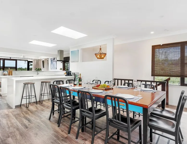 Immaculate Gerroa beach house for 8 with fantastic, central location and views! The space Seven Smiles, Gerroa - 4pm check out Sundays and Public Holidays, except Summer Season Seven Smiles is the perfect Gerroa beach house. Located two doors down from the famous Blue Swimmer Restaurant and a 3 minute walk to Seven Mile Beach, you can enjoy the best that Gerroa has to offer, all on foot. The property can accommodate up to 8 people, with 4 bedrooms and 4 bathrooms. The heart of the home is the open plan living, dining and kitchen area, with beautiful views over the estuary to Seven Mile Beach. Children will love the games room with mini table tennis and pool table. Please note: - Strictly no parties at this property – please. You will be evicted if this rule is broken. Summer Season 25/26 (19 December to 22 January) 7 night minimums apply for the 3 week blocks below. To book, select these exact dates: - Arrive: Friday 19 Dec | Depart: Friday 26 Dec - Arrive: Saturday 27 Dec | Depart: Saturday 3 Jan - Arrive: Sunday 4 Jan | Depart: Sunday 11 Jan For the rest of Summer Season, a 3 night minimum applies. Where will I be? Seven Smiles enjoys an outstanding position, 2 doors down from the Blue Swimmer Restaurant, 3 minutes walk from Seven Mile Beach, and a 7 minute drive to Gerringong. Why choose Seven Smiles? Seven Smiles allows you to enjoy the best of Gerroa. You will never tire of the beautiful ocean views and will love the proximity to the beach. How is the property laid out? Seven Smiles is a renovated two storey brick house. Entry via the back deck takes you into the second level. Here you will walk into the main kitchen, living and dining area. This large open plan space enjoys beautiful views of Seven Mile Beach. There are two bedrooms on this level, including the master with a queen bed and ensuite. The other bedroom has two single beds. There is also a bathroom with bathtub and separate shower. Heading downstairs you will find a kitchenette, two bedrooms, one with a queen bed and the other with two singles, a living room, games room, bathroom and laundry. There is also a downstairs patio area. The large deck at the back of the property features a gas BBQ, outdoor setting and outdoor lounge. WiFi, Netflix, Pay TV – will I have it? This property provides complimentary WiFi and a password will be provided in your pre-arrival email. The property also has two smart TVs. Please bring your own login details for streaming services. Please note however that neither The Holidays Collection nor the owner guarantee 100% that the WiFi will work, and no compensation will be payable if problematic. If important, please therefore always have a back up plan. What about outdoors? Seven Smiles has a large back deck, with gas BBQ, outdoor dining setting and outdoor lounge. Emery park, with playground and lawns is 120 metres away and Seven Mile Beach a short stroll. Staying warm or keeping cool? There is reverse cycle air conditioning and ceiling fans in the upstairs open plan area. What about sheets, towels and other supplies? High quality sheets and towels are provided at Seven Smiles Parking for cars, boats etc? There is undercover parking for 2 vehicles in the carport, with space for another 2 vehicles on the driveway Is my dog or cat also welcome to stay? Sorry, Seven Smiles is not pet friendly. Is there any special information I should know about? Please be aware that there are external security cameras at Seven Smiles. This will not impact your privacy at all and is purely for security purposes when the house is vacant. What are the minimum stay rules? - Summer Season: Between 2 and 7 nights, depending on the property - Easter: 4 nights - Long Weekends: 3 nights - All other times: 2 nights Are there any special Summer Season rules? Please note that during Summer Season, our properties may have designated changeover days so as to make the cleaning rosters manageable. We also do not schedule arrivals on the Christmas, Boxing, and New Years Day public holidays. About The Holidays Collection This property is professionally managed by a dedicated holiday rental agency with offices in Gerringong, Hyams Beach and Bowral. We have over 270 properties in Kiama, Gerringong, Gerroa, Berry, Huskisson, Vincentia, Hyams Beach and the Southern Highlands. We offer guests 24/7 customer service - emergency calls only after hours, please. Registration Details PID-STRA-19651