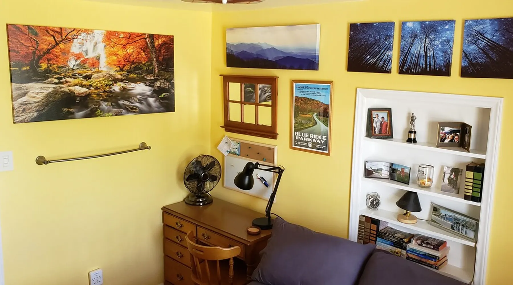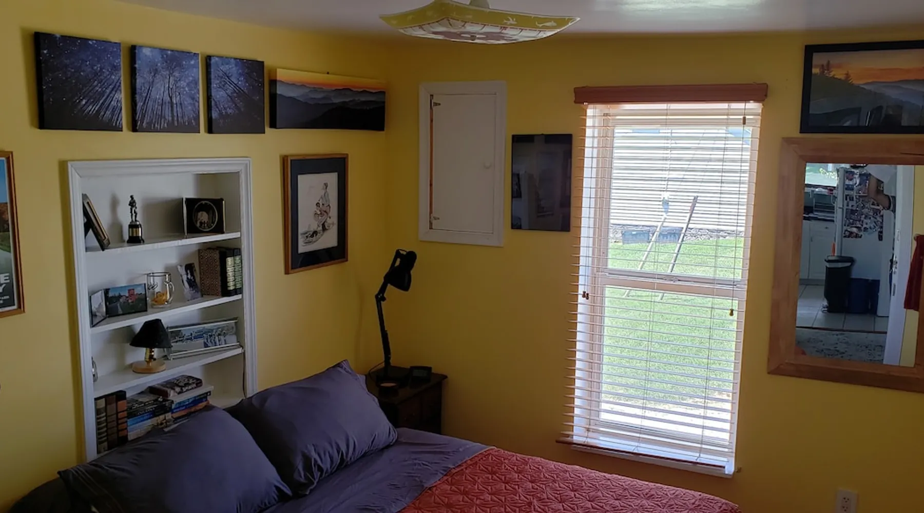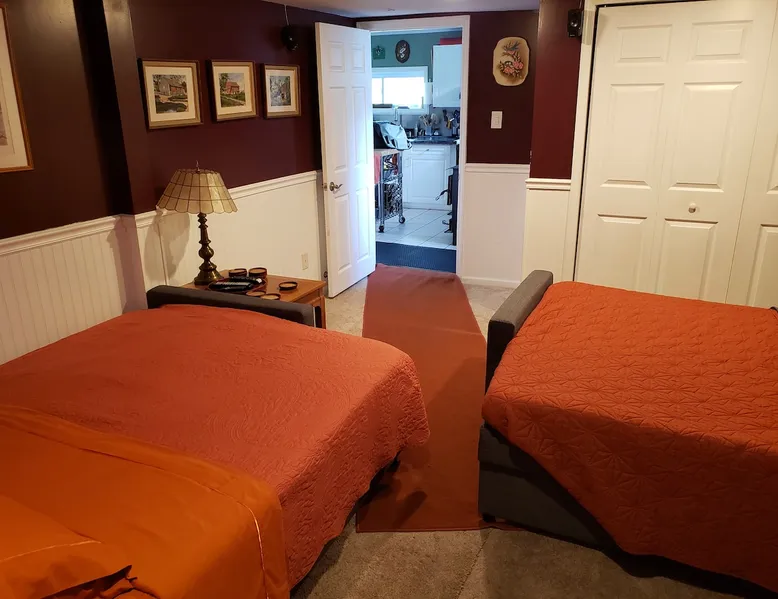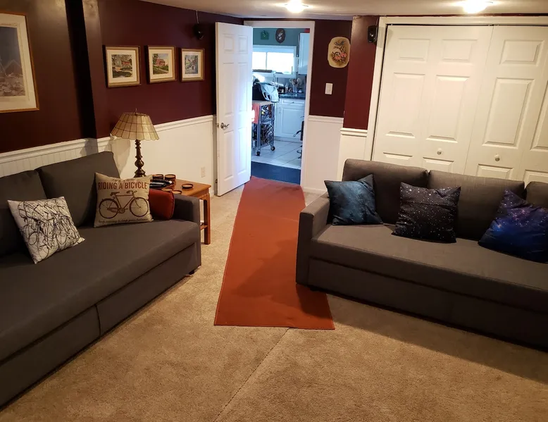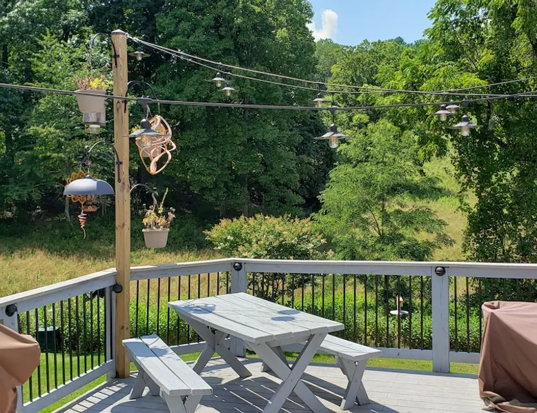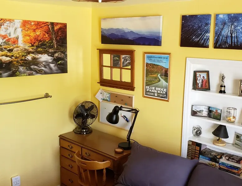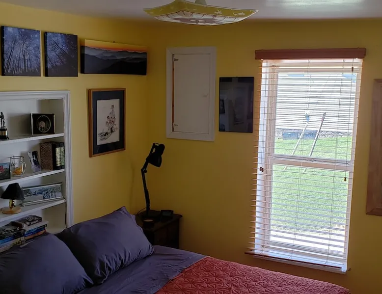 Over the hill from the bustle of downtown, enjoy country quiet, with easy access to Blacksburg and VT campus. Welcome to my home, I live here. I am offering the first floor of my home for your stay. For your arrival, the first floor will be cleaned, beds prepared with fresh linens & fresh towels hung in the bathroom Booking is for: -Private area: Guest bedroom -Common space: Front room, Kitchen & Dining area, Backroom, Laundry, Bathroom, Deck Parking: paved driveway that leads to my garage The space Harding Hideaway is a single family bungalow that contains 1,552 sq ft and was built in 1950, with and effective year build date of 1970. Home has been updated with central Air and Heating. This booking is for my guest bed room with access to the first floor of my house which includes the following: - Private guest bedroom, with queen bed. * Pocket door provides privacy Common space: - Front room/living room 1 * The front door opens into the front room, and there are steps leading to my master bedroom. (The master bedroom is not part of the booking as it is my private space. ) - Kitchen, with amenities (Coffee maker, pots/pans, dishes, cooking utensils) - Dining area, table with 4 chairs - Backroom/Living room 2, with two queen-sized pull-out couches. *The interior door can be closed to provide privacy to this space. - Laundry room with washer and dryer - Bathroom, with tub/shower. - Deck, two tables, seating area, propane grill, and hillside view. Parking: -Ample parking on the property. Please feel free to park anywhere on the paved driveway as long as you are not blocking the garage. Do not park in the neighbor's yard or on the gravel road (Fleet's Way) that is adjacent to the house. Not part of Airbnb Booking: -Second floor/upstairs of my home -Garage: Not part of the Airbnb booking -I do not provide food. Feel free to use the kitchen and refrigerator, please clean up after yourself. Guest access Guests will have access through the front and/or back doors via a keypad. A unique code to the door will be sent to you the day before your booking. Please lock doors when you leave for the day/night. Guests will have private and sole access to the first floor guest bedroom which includes a queen bed and pocket door for privacy. Guests will have shared access (with the homeowner) to the following common spaces: -First floor which includes the following areas: -Front room/Living room 1, the front door opens into the front room -Kitchen/dining area -Backroom/Living room 2, with two queen-sized pull-out couches, has a door -Laundry room, washer and dryer -First Floor Bathroom -Deck, two tables, seating area, propane grill, and hillside view. Guests may park on the property. Please park on the paved driveway area and ensure you are not blocking the garage. Do not park in the neighbor's yard or on the gravel road (Fleet's Way) that is adjacent to the house. During your stay I hope to welcome you and help make your stay enjoyable. I live in this home. The upstairs/second floor of the home is not part of the booking, The upstairs/second floor is a bedroom and bathroom. I do not interact with guests much, I may be around. Other things to note -Please do not park on the private road next to my house, Fleets Way. It leads to 4 houses, this is their only access. Do not park in my neighbor's yard. -Please indicate the number of guests in your party. This will allow me to prepare for your stay and set up the appropriate number of beds. -If you need to adjust the number of guests, please message the host before your arrival so that an adjustment can be made (maximum of 6 total guests). -Please do not smoke in the home or bring pets into my home.