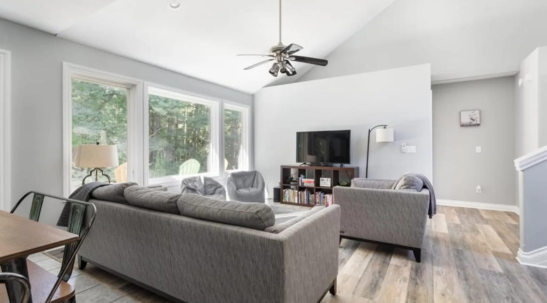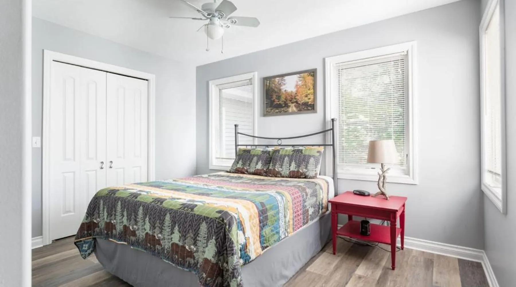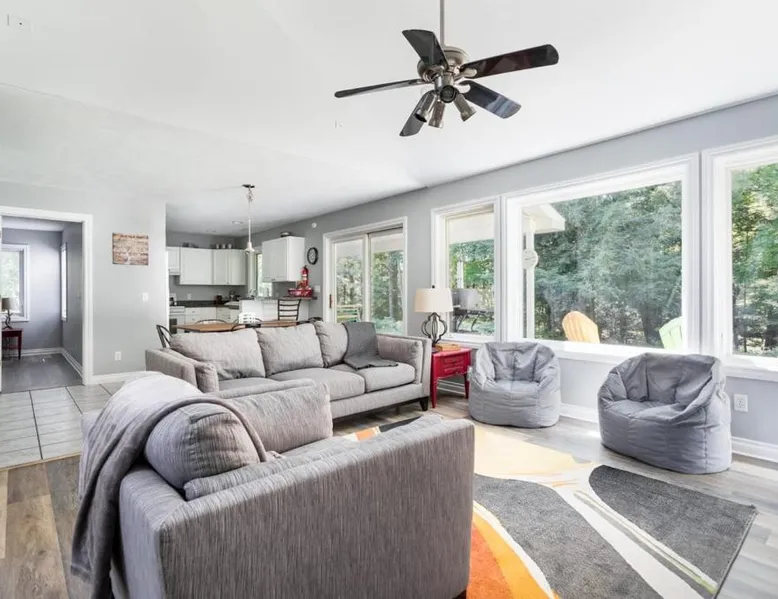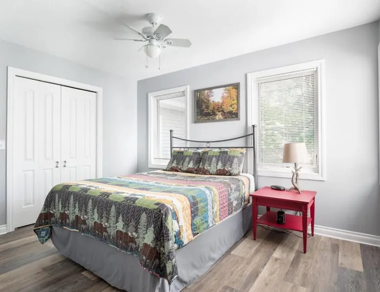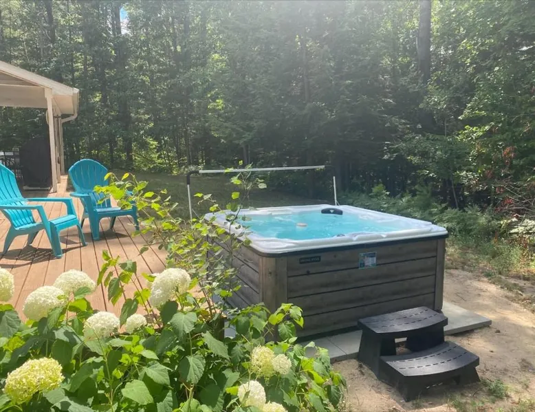 Spacious Holiday Home: Bissell Creek Woodside Cottage in Williamsburg offers a spacious layout with four bedrooms and three bathrooms. The property includes a private entrance and a fully equipped kitchen with modern appliances. Modern Amenities: Guests enjoy free WiFi, air-conditioning, a hot tub, washing machine, and a patio. Additional amenities include a barbecue, tea and coffee maker, hairdryer, refrigerator, microwave, dishwasher, oven, and stovetop. Convenient Location: Located 11 mi from Cherry Capital Airport, the cottage is near attractions such as Dennos Museum Center (12 mi), Clinch Park (13 mi), Great Wolf Lodge Traverse City (16 mi), and Mission Point Lighthouse (30 mi). This holiday home's standout feature is the hot tub. Featuring a private entrance, this spacious holiday home also is consisted of of 4 separate bedrooms and 3 bathrooms with a bath and a hairdryer. Guests will find a stovetop, a refrigerator, a dishwasher and kitchenware in the kitchen. The holiday home also has a barbecue. Boasting a patio, this holiday home also offers air conditioning, a washing machine and a TV. The unit offers 6 beds.