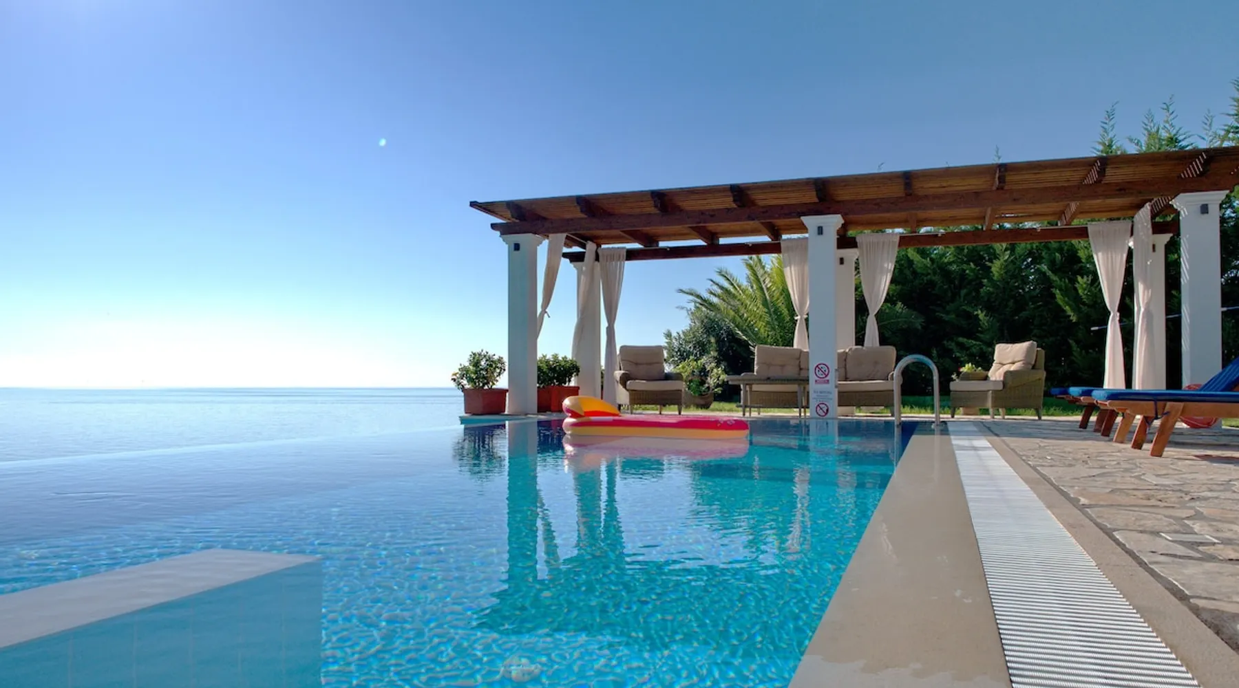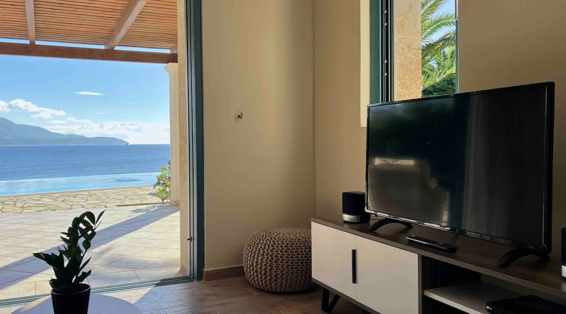 Amazing Villa with infinity pool and sea views, set almost at the tip of the Liakis peninsular, which points south across the sea towards Zante. A rocky platform down by the sea, and furnished with sun beds and parasols is accessed via a short footpath. Swim and snorkel in crystal clear water. A sandy beach is just a short 5 mins drive away. The space Villa Penelope, Spartia, Kefalonia Almost at the tip of the Liakis peninsular, which points south across the sea towards Zante, Villa Penelope enjoys peerless sea views. A well laid out, smart and beautifully finished Villa inside, the outside really steals the show with a variety of areas from which to enjoy those views, day and night. There's a rocky platform down by the sea, accessed via a short footpath and a sandy beach for bathing just short 5 mins drive away. Location If you are eating out, there are tavernas just 5 mins drive away in the village of Spartia, where there is also a minimarket and above the arc of sandy beach down on the coast there are another couple of tavernas. For a wider choice it is not much more than a 10 min drive to Argostoli where an evening walking the promenade and around the square before making choice of restaurants is not to be missed. Outside Villa Penelope Swimming Pool - Tiled, 9m x 4m private pool with roman step entry and jacuzzi jets. Depth 1m - 1.70m. Sea View Pool Terrace - tiled terrace with sun beds and pergola sun shade, furnished with rattan sofa set. Sea View Covered Terrace - spacious tiled terrace with 2nd rattan sofa set and swinging tear drop seat. Covered Barbecue Terrace - purpose built stone barbecue with bench and sink plus wooden dining table with chairs. Garden - Generous area of lawn, edged with cyprus and palm trees. Inside Villa Penelope Ground Floor-Open plan living room Sitting area - comfortable L shaped sofa, sat TV (restricted English programmes), DVD, floor to ceiling patio sliding windows (with screen) that overlook the terrace, pool and sea. Air con unit. Dining Area – Large wooden table and seating for 6. Kitchen Area – smart white cupboards with black counter tops, double sink, Nespresso Espresso maker, 4 ring electric hob, electric oven, microwave, fridge freezer, dishwasher and window with sea and pool view. Door to barbecue terrace. Double Bedroom 1, en suite shower room – Double bed, bedside tables, dresser with mirror, wardrobe and chair. Window with screen towards the garden. Air con unit. Family Bathroom - Full bath with air jets plus rain shower attachment overhead, wash hand basin with large mirror, WC. Washing machine. *There is a door between the living area & this bedroom with bathroom, so it could be used as an ensuite instead of a family bathroom. First Floor Double Bedroom with en suite shower room - 1 double bed, bedside tables with lamps, dresser with mirror, ample wardrobe space and chair. Smartly tiled shower, wash hand basin, on marble counter, very large mirror & WC. Sliding doors (with screen) to sea view balcony which has a table and chairs. Air-con Unit. Twin Bedroom with en suite shower room - 2 single beds, bedside table and lamp, dresser with mirror, wardrobe and chair. Tiled shower room with walk in rain shower , wash basin and WC. French sliding doors (screen) to sea view balcony with chairs and table plus window. Air con unit. Parking - There is a covered parking space next to the villa. Complimentary Welcome Pack - on arrival you will find drinks & a few snacks in your fridge, to begin your holiday, inside your very own cotton shopping bag. Essential Information: Sleeps (Max) 6 Bedrooms 3 Shower Rooms 3 Maid Service Included Pool Private 9.5m x 4.5m A/C Included Floor Area m² 120 Booking Information: Check-In Any day (after 16:00) Check-Out Any day (before 10:00) Minimum stay 5 nights Villa Equipment: DVD TV Satellite TV Dish Washer Washing Machine Hair Dryer Iron Toaster Kettle Sun Lounger Microwave WiFi Safe BBQ Mosquito Blind Filter Coffee Machine Iron & Board Pool Towels Internet connection Fridge Freezer Hob Cooking Utensils Oven Nespresso* Machine Guest access The villa and pool is for your private use only as well as the garden. Bed linen & towels are provided as well as pool towels. The cleaner will come in during your stay & change them, depending on how many days you are staying. All of this is included in the price. Other things to note Housekeeping Your Villa will be prepared for you on arrival with fresh bath and hand towels and all beds made up. For stays of 7 nights or more - house towels will be changed every 3 - 4 days. For stays of 14 nights or more - bed linen will be changed every 7 days. Pool/beach towels - one per person for the duration of your stay. If you need a ‘travel’ cot or a high chair (usually for children up to 2 years old), please request when booking so we can have it in the villa for you ready. Optional chargeable services: - Second High Chair - Second Cot Note that this is a professionally run rental villa which has been licensed by the Greek National Tourist Organization (EOT), which is required by the Greek law. This license allows the property owners to legally rent their accommodation to holiday makers, so that they comply to a set of standards and specific conditions for the safety & comfort of its paying customers. Registration Details 1237144