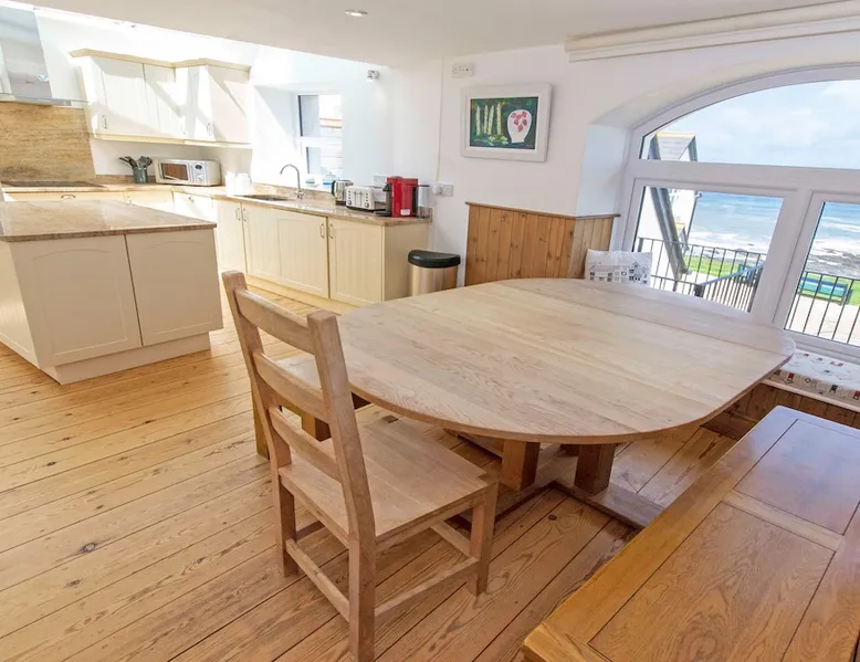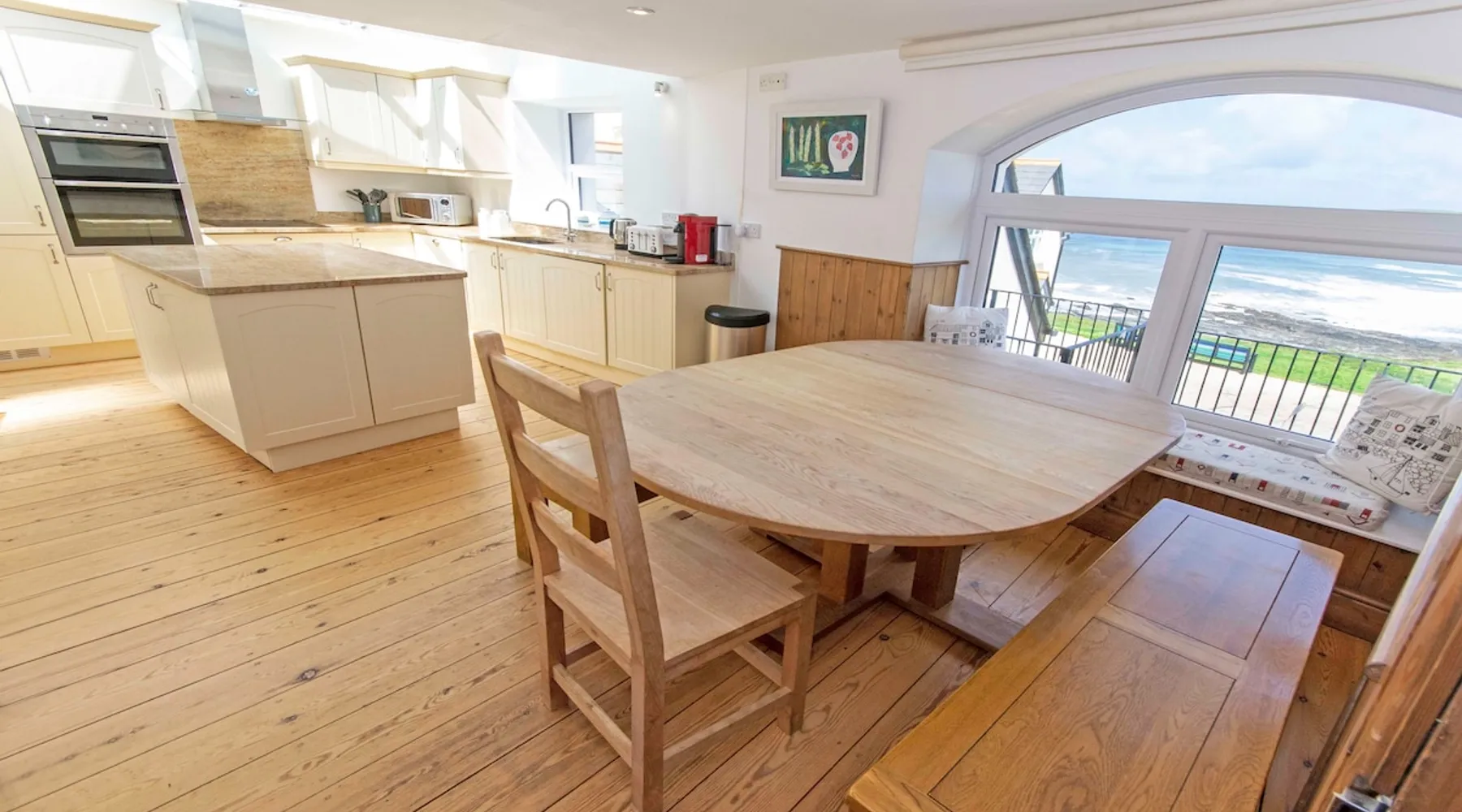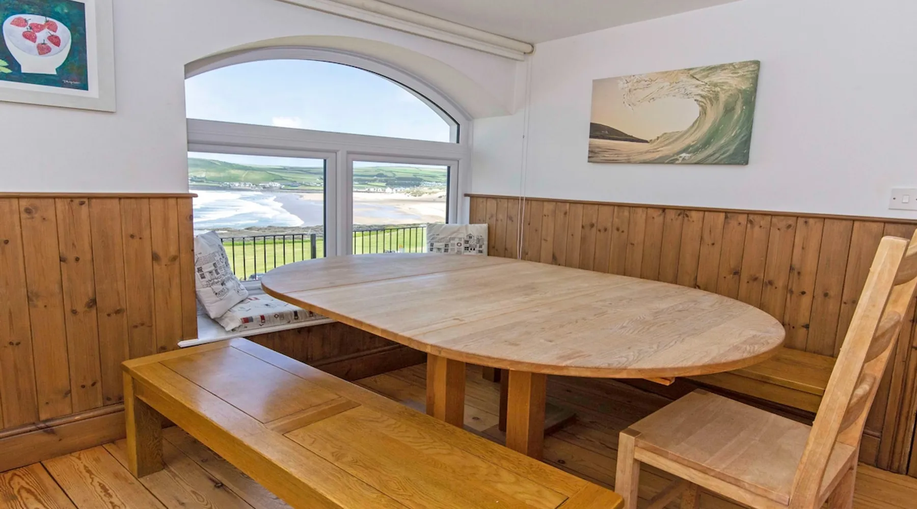 Looking for beachside living in a spectacular location with unrivalled panoramic elevated seaviews, Stables is just what you're looking for. Magical moments are made here with magnificent uninterrupted sea views. Enjoy four lovely bedrooms (Two benefitting from sea views) and beach themed styled living with a cosy log burner. The space Stables is set in one of the most desirable areas of Croyde with the Beach on your doorstep, soak up the sea breeze on the decking area and take in those splendid 180 degree views of the beach. Whether you want to have a family day on the beach or try your hand at surfing, you really couldn't be in a better position. The village is a short walk away with pubs and cafes to suit every taste, perfect for those lazy evenings where you don't feel like cooking. PROPERTY Kitchen diner with a dual oven/grill, touch sensor hob, large fridge freezer, dishwasher, coffee machine, washing machine. Good supply of crockery, cutlery, and kitchenware along with BBQ tools. Large wooden oval table with bench seating nestles in front of the picture window overlooking the beach. Lounge with a large Smart LCD TV (surround sound) Netflix (subject to guest subscription) DVD player, music system and Wifi. Brickwork fireplace with a modern log burner for cosy nights in, 2 large sofas, coffee table footstall, 2 tub chairs and French doors opening onto a small balcony terrace seating area for enjoying the wonderful views of Croyde Beach. Shower room with large walk in shower, wc, washbasin, heated towel rail, wall mounted mirror and vanity unit. • Bedroom Four - Twin beds and is located on the ground floor (great for limited mobility). Freestanding full-length mirror, bedside table and wooden wardrobe. Hallway cupboard with drying rack and other essentials. 1ST FLOOR • Master Bedroom - Superkingsize bed with a wonderful beach view! Bedside tables, small wardrobe, full length mirror and 2 tub chairs for enjoying peaceful moments. • Bedroom Two - kingsize bed, bedside tables, chest of drawers, full length mirror and hanging hooks. Enjoy lazy mornings in bed with a spectacular view of the beach at your feet! • Bedroom Three - Twin beds, chest of drawers with TV and a bedside unit. Family bathroom - Bath with shower over, wc, washbasin, heated towel rail, wall mounted mirror and storage. OUTSIDE SPACE Stables has an impressive private raised decking area with glass panelling, wooden seating, tables and a brick-built BBQ. Enjoy the lovely landscaped grassed garden and unrivalled views of Croyde beach at 180 degrees. Outside tap and To the rear of the house is a shady area with hanging space for wetsuits and a small cupboard houses a tumble dryer. PROPERTY NOTES: • Driveway parking bay for 2 cars Unloading and offloading available at the top of the shared driveway. INCLUDED: • Heating, Lighting and water • Bed linen (2 Kingsize & 4 singles) • Bath Mats, 2 handtowels, Tea Towels • Bath Towel per guest (Max 8) • Wifi Internet • High Chair • Travel Cot (Excludes linen and towel) • Baby bath BOOKING DETAILS: It is not possible to add extras when booking via an advertising channel like this one, therefore the costs of any extras will not be included within the price shown, these must be requested at the time of booking and paid for directly with Croyde Holidays Agency. By making a booking via this channel we will require some extra booking details from you, this will be requested via email at the time of booking in order for us to finalize your provisional booking request. HOLIDAY EXTRAS • Late Departure (6pm) - £80 (Short breaks departing on a Sunday)