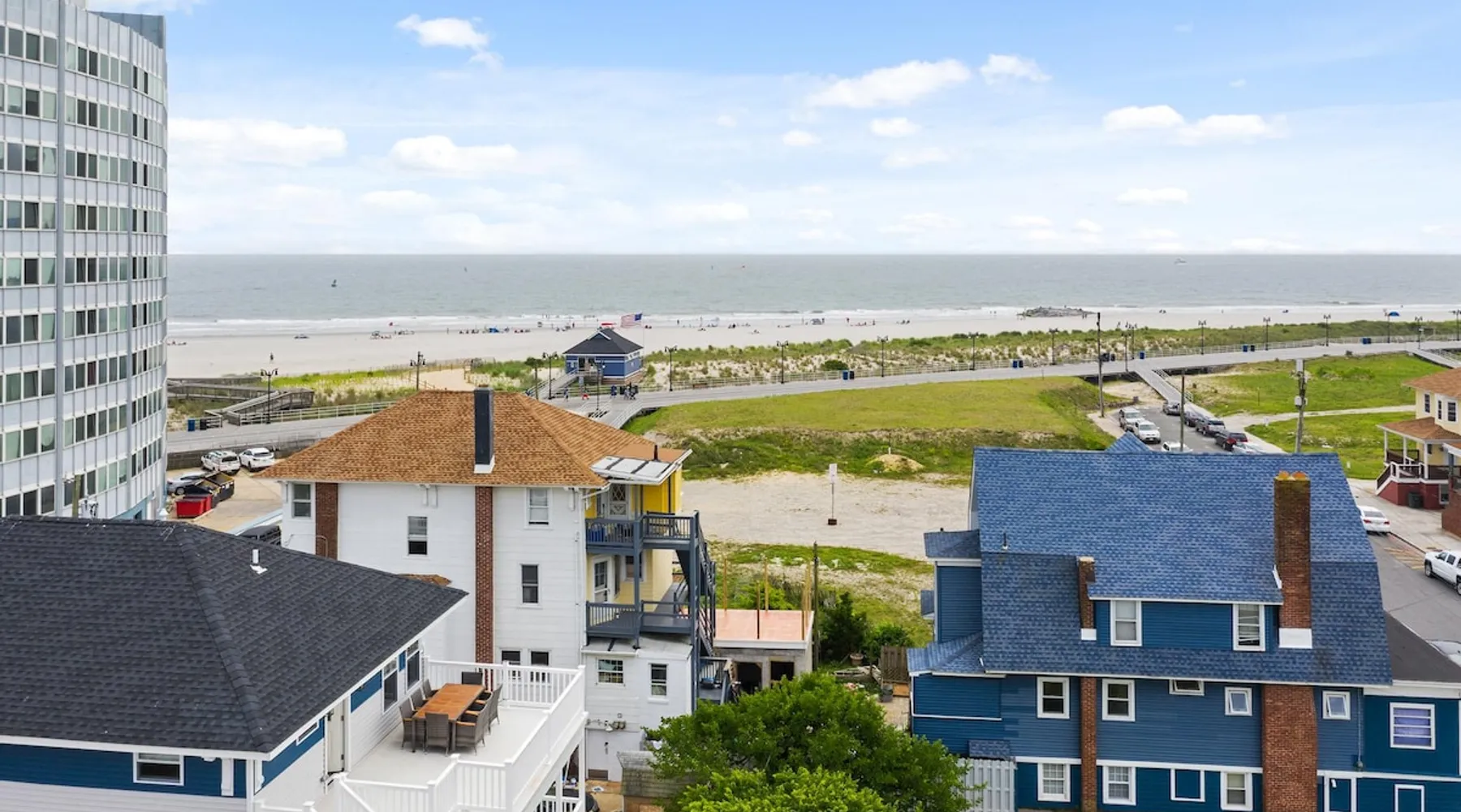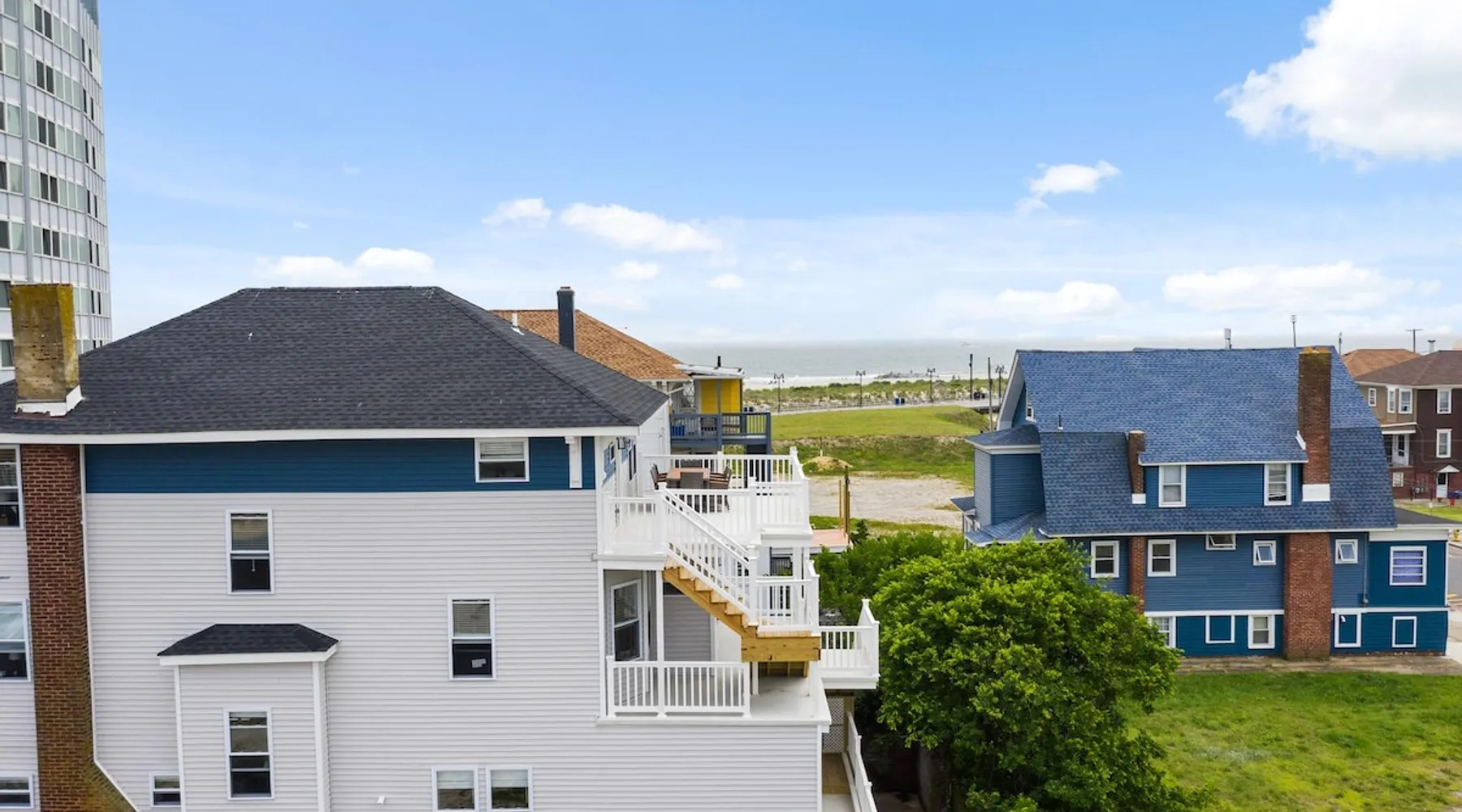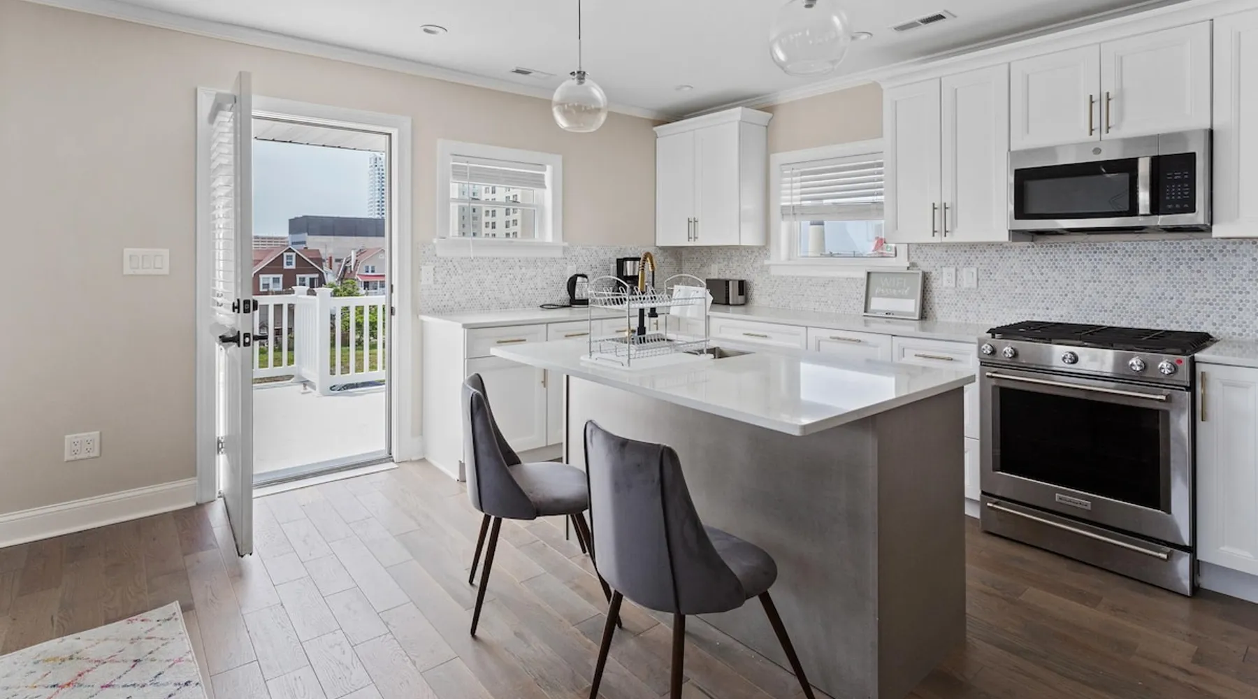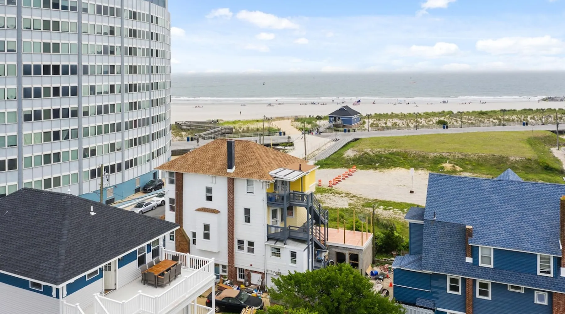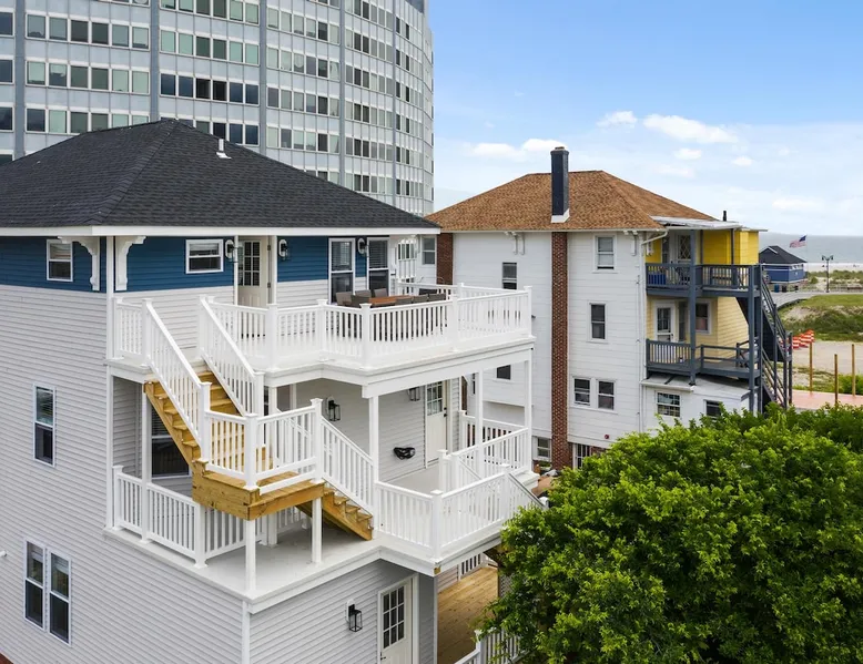 FRESH OFF A GUT RENOVATION IN SUMMER 2021 NEW Hot Tub installed March 2022 Located within the unique landscape of Southeast Inlet / North Beach is this stunning 3-story home that offers the perfect blend of modern, contemporary design with original heritage charm. Perfect for groups & families, the home encompasses 7 spacious bedrooms, 2 living areas, a high-end gourmet kitchen, beautiful hardwood floors and sweeping ocean views. Stay just steps from the beach, a 5-minute walk to the Ocean Casino and Hard Rock, the perfect home base for all of AC’s fun and attractions. We're also right around the corner from the brand new North Beach Mini Golf, located right on the Boardwalk along Euclid Ave! The space Make your way up the brick steps and into the grand beach house that has been fully updated with a fresh contemporary design while still embracing the rich history and heritage features that make this home special. The spacious rooms are filled with natural light from the bay windows that wrap around the house giving it a light and airy feel. The main living area features a lowline chaise lounge that surrounds the huge smart tv with a soundbar and is the perfect place to catch up on all your favorite shows. Behind are two comfortable reading chairs that sit by the window and opposite is a chic table set for 4 ideal for setting up a boardgame or playing cards with friends. Also on the first floor is the wet bar where you can mix drinks, keep your wine chilled or just use this space to whip up some snacks. Head upstairs to the main floor where you will find the large gourmet kitchen complete with custom cabinetry, sleek calacatta quartz countertops, high-end appliances and an island breakfast bar. There is a full size fridge/freezer with a filtered water and ice dispenser, a slide-in oven with a gas cooktop, a built in microwave, a coffee maker and a dishwasher to take care of all the cleaning up. Serve up your meals at the contemporary dining space set for eight (with an available leaf to extend the capacity) or eat alfresco style on a warm sunny day out on the deck with an outdoor table and stunning ocean views. There is a second living space with a plush sofa and armchair where you can catch up with friends before dinner as well as a handy half bath. Within the home there are 7 elegant bedrooms each with comfortable beds topped with hotel quality linen and bedding for a restful nights sleep along with plenty of storage space for you to unpack and make yourself at home. On the first floor, there are (2) bedrooms compromising of (2) queen beds along with a sparkling bathroom stocked with all the essentials along with a laundry room equipped with a washer and dryer. On the second floor there are another (4) spacious bedrooms with queen beds and (2) shared renovated bathrooms. Finally, on the top floor, there is the “penthouse suite” with an additional full bathroom offering a walk in shower and a his and her vanity stocked with soft fluffy towels. Outside guests are spoiled for choice with 4 decks / balconies to choose from. Relax in the swinging hammock seats or practice your morning yoga on the first shady level, then head up to the main deck that’s equipped with a BBQ and an outdoor dining setting or just chill out on the third level with plenty of comfortable seating options and picture perfect views across the city. The home also offers an oversized 2nd floor deck with the ocean so close you can hear the waves crashing on the sandy beach. The house is ideally located just half a minutes’ walk to one of Atlantic City’s most desirable free, public beaches where you can swim, paddle board, learn to surf or just lay on the sand and take it all in. Back at the house there is a handy outdoor shower where you can wash off before making your way back inside, or just brush the sand off and walk along the boardwalk to the many casinos, restaurants, shops and attractions that make Atlantic City the fun and exciting place to be. If you’re looking for a truly unique property that offers all the luxuries of the nearby resorts, you simply can’t pass up this elegant beach house for your next getaway to bustling Atlantic City. Guest access Guests have private access to the entire house as well as free Wi-Fi, free parking, and access to the laundry with a washing machine and dryer. Other things to note A few things to note about the house: 1) Pets are welcome for an additional pet fee. Please advise before booking your reservation. 2) There is one 70" Smart TV in the living room. Please note that we do not have cable TV. 3) In an effort to combat noise concerns and out of consideration for our neighbors, we have noise sensors installed at the property to monitor noise levels. We do not record audio of any type. This is strictly to ensure that noise does not eclipse a reasonable level, particularly in the evening hours. All we receive is a time-stamped decibel reading. You should have nothing to worry about as long as you're not engaging in excessive partying. 4) Please note that per Atlantic City's rules, we are not permitted to rent to groups under the age of 21. 5) The house is located adjacent to a large apartment building, and the neighborhood gets somewhat crowded in the summer due to the proximity to the beach, but much less so than other areas of Atlantic City. 6) Please also note that while fully renovated, the home was built over 100 years ago, so it may have some quirks to embrace.