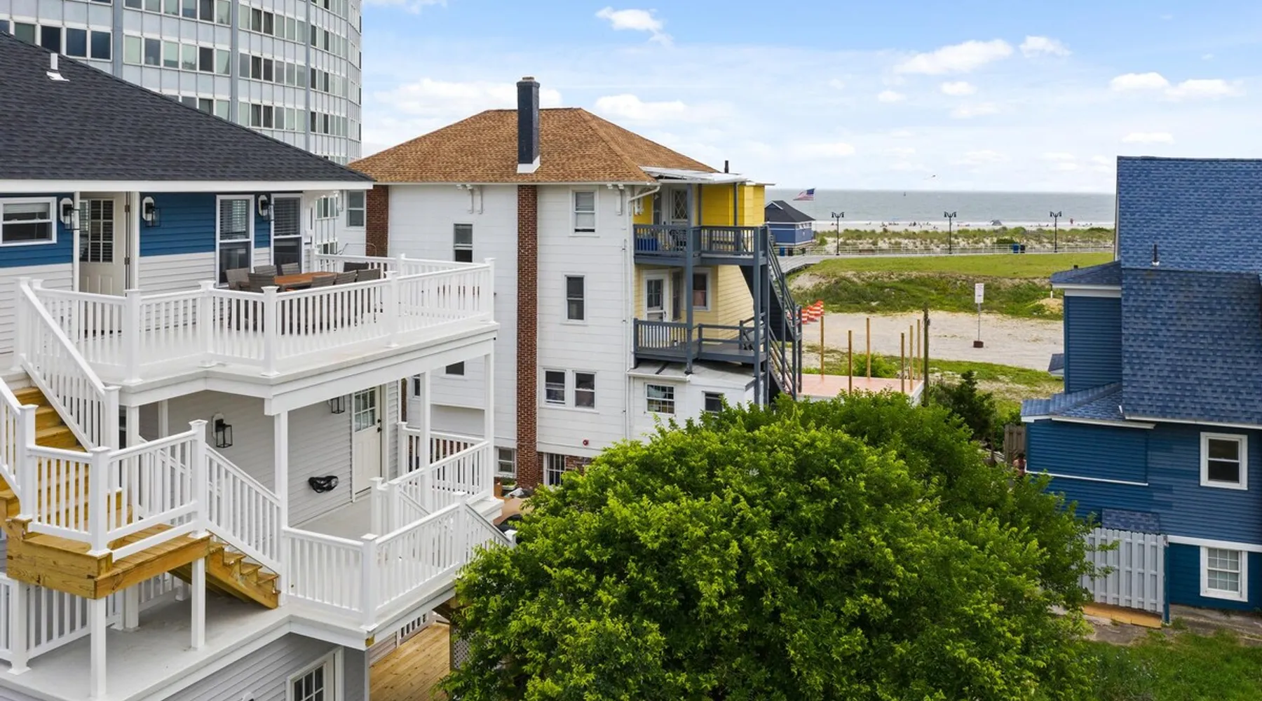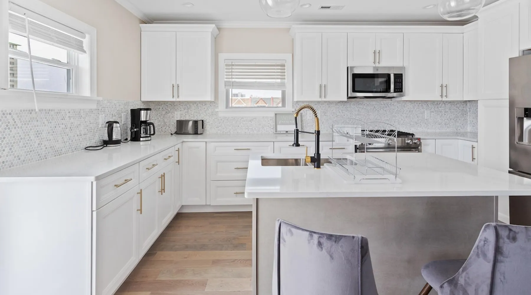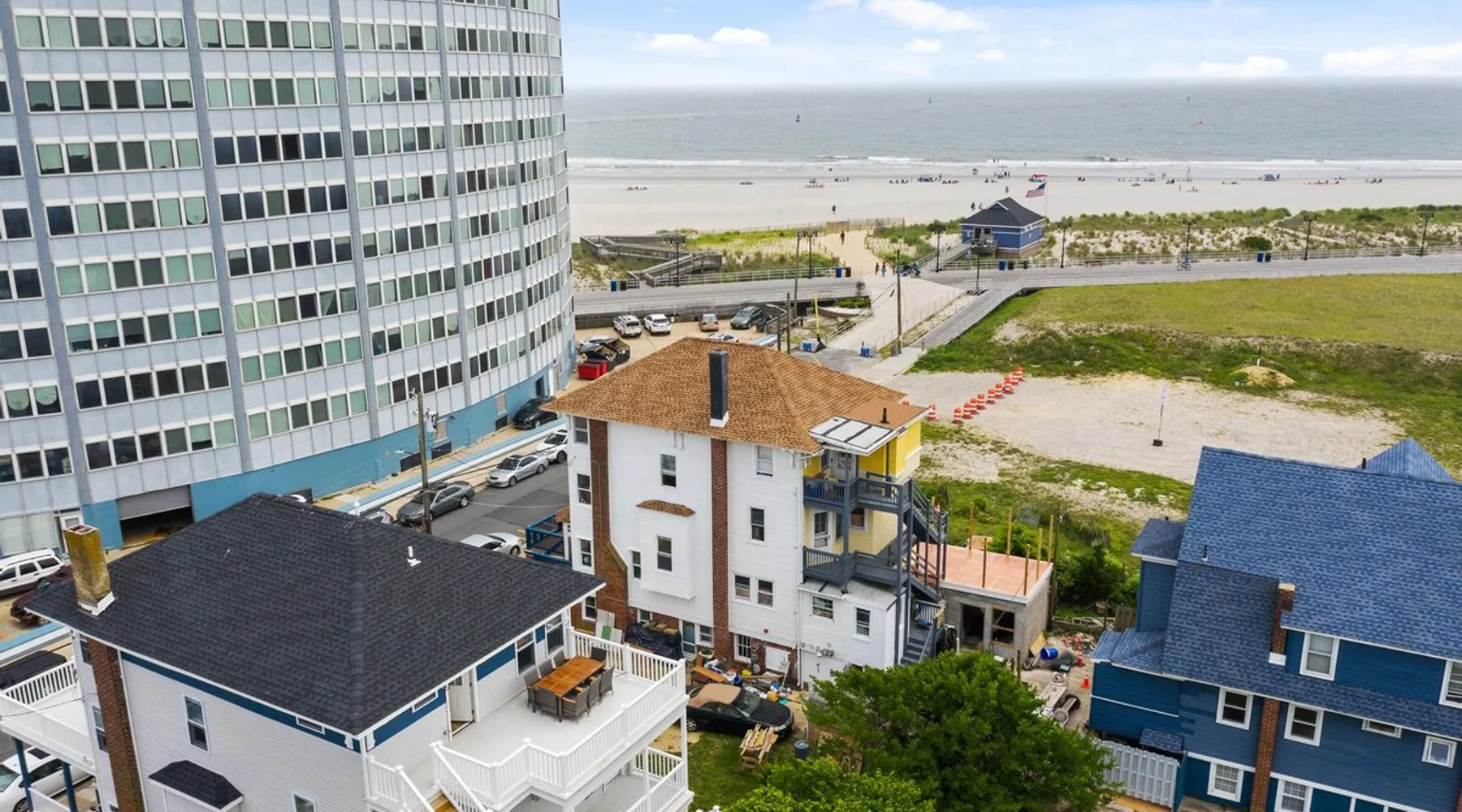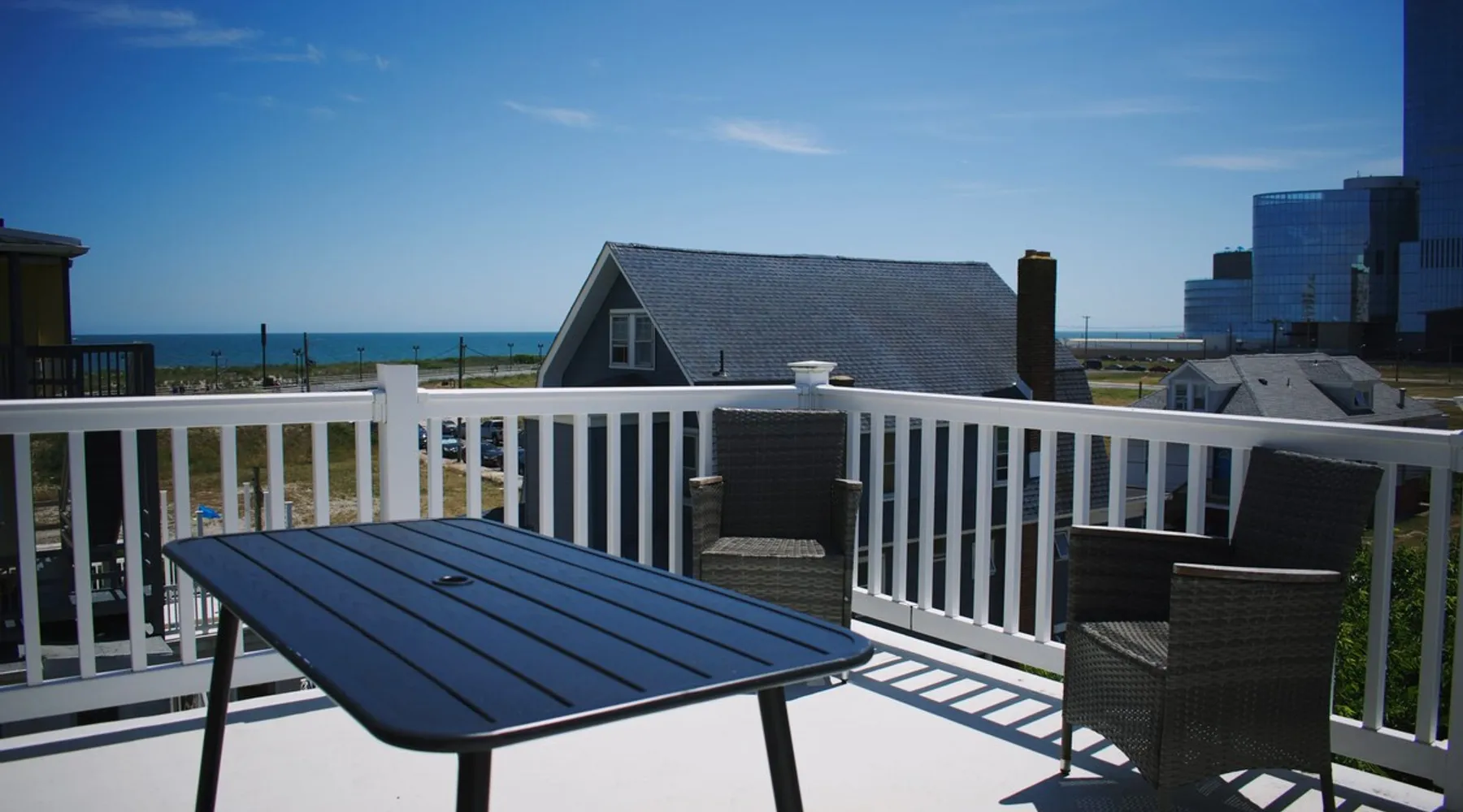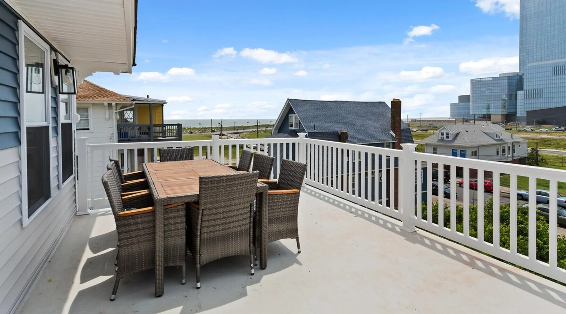 FRESH OFF A GUT RENOVATION IN SUMMER 2021 NEW Hot Tub installed March 2022 Located within the unique landscape of Southeast Inlet / North Beach is this stunning 3-story home that offers the perfect blend of modern, contemporary design with original heritage charm. Perfect for groups & families, the home encompasses 7 spacious bedrooms, 2 living areas, a high-end gourmet kitchen, beautiful hardwood floors and sweeping ocean views. Stay just steps from the beach, a 5-minute walk to the Ocean Casino and Hard Rock, the perfect home base for all of AC’s fun and attractions. We're also right around the corner from the brand new North Beach Mini Golf, located right on the Boardwalk along Euclid Ave! The space Make your way up the brick steps and into the grand beach house that has been fully updated with a fresh contemporary design while still embracing the rich history and heritage features that make this home special. The spacious rooms are filled with natural light from the bay windows that wrap around the house giving it a light and airy feel. The main living area features a lowline chaise lounge that surrounds the huge smart tv with a soundbar and is the perfect place to catch up on all your favorite shows. Behind are two comfortable reading chairs that sit by the window and opposite is a chic table set for 4 ideal for setting up a boardgame or playing cards with friends. Also on the first floor is the wet bar where you can mix drinks, keep your wine chilled or just use this space to whip up some snacks. Head upstairs to the main floor where you will find the large gourmet kitchen complete with custom cabinetry, sleek calacatta quartz countertops, high-end appliances and an island breakfast bar. There is a full size fridge/freezer with a filtered water and ice dispenser, a slide-in oven with a gas cooktop, a built in microwave, a coffee maker and a dishwasher to take care of all the cleaning up. Serve up your meals at the contemporary dining space set for eight (with an available leaf to extend the capacity) or eat alfresco style on a warm sunny day out on the deck with an outdoor table and stunning ocean views. There is a second living space with a plush sofa and armchair where you can catch up with friends before dinner as well as a handy half bath. Within the home there are 7 elegant bedrooms each with comfortable beds topped with hotel quality linen and bedding for a restful nights sleep along with plenty of storage space for you to unpack and make yourself at home. On the first floor, there are (2) bedrooms compromising of (2) queen beds along with a sparkling bathroom stocked with all the essentials along with a laundry room equipped with a washer and dryer. On the second floor there are another (4) spacious bedrooms with queen beds and (2) shared renovated bathrooms. Finally, on the top floor, there is the “penthouse suite” with an additional full bathroom offering a walk in shower and a his and her vanity stocked with soft fluffy towels. Outside guests are spoiled for choice with 4 decks / balconies to choose from. Relax in the swinging hammock seats or practice your morning yoga on the first shady level, then head up to the main deck that’s equipped with a BBQ and an outdoor dining setting or just chill out on the third level with plenty of comfortable seating options and picture perfect views across the city. The home also offers an oversized 2nd floor deck with the ocean so close you can hear the waves crashing on the sandy beach. The house is ideally located just half a minutes’ walk to one of Atlantic City’s most desirable free, public beaches where you can swim, paddle board, learn to surf or just lay on the sand and take it all in. Back at the house there is a handy outdoor shower where you can wash off before making your way back inside, or just brush the sand off and walk along the boardwalk to the many casinos, restaurants, shops and attractions that make Atlantic City the fun and exciting place to be. If you’re looking for a truly unique property that offers all the luxuries of the nearby resorts, you simply can’t pass up this elegant beach house for your next getaway to bustling Atlantic City. Guest access Guests have private access to the entire house as well as free Wi-Fi, free parking, and access to the laundry with a washing machine and dryer. Other things to note A few things to note about the house: 1) Pets are welcome for an additional pet fee. Please advise before booking your reservation. 2) There is one 70" Smart TV in the living room. Please note that we do not have cable TV. 3) In an effort to combat noise concerns and out of consideration for our neighbors, we have noise sensors installed at the property to monitor noise levels. We do not record audio of any type. This is strictly to ensure that noise does not eclipse a reasonable level, particularly in the evening hours. All we receive is a time-stamped decibel reading. You should have nothing to worry about as long as you're not engaging in excessive partying. 4) Please note that per Atlantic City's rules, we are not permitted to rent to groups under the age of 21. 5) The house is located adjacent to a large apartment building, and the neighborhood gets somewhat crowded in the summer due to the proximity to the beach, but much less so than other areas of Atlantic City. 6) Please also note that while fully renovated, the home was built over 100 years ago, so it may have some quirks to embrace.