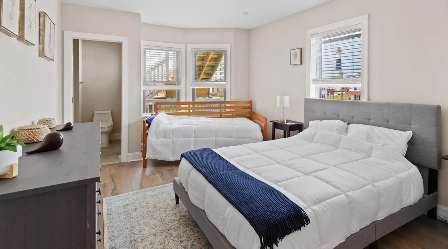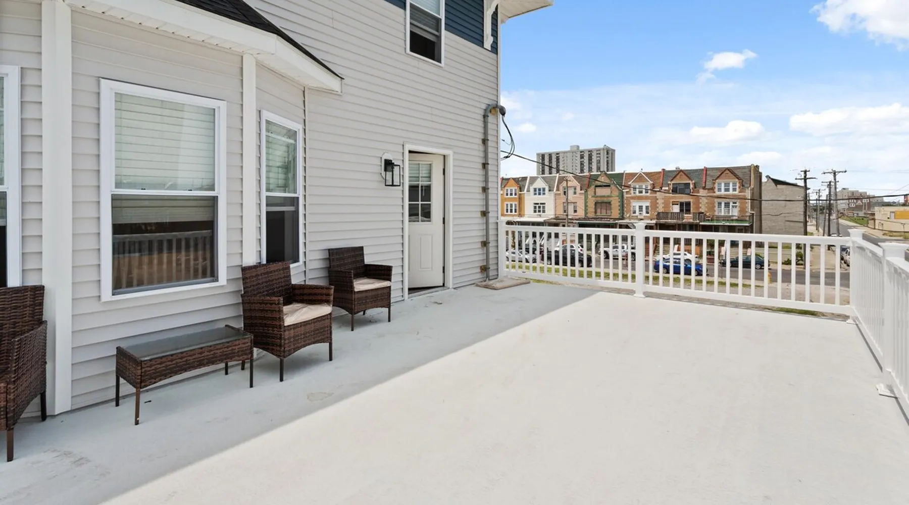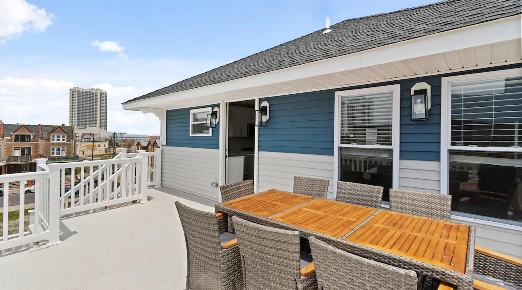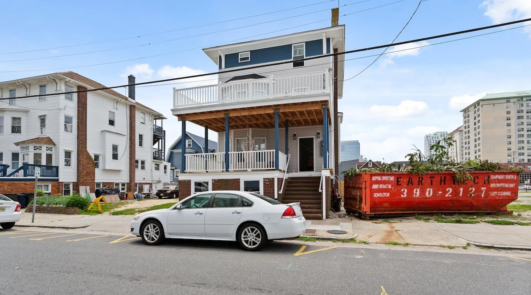 FRESH OFF A GUT RENOVATION IN SUMMER 2021 NEW Hot Tub installed March 2022 Located within the unique landscape of Southeast Inlet / North Beach is this stunning 3-story home that offers the perfect blend of modern, contemporary design with original heritage charm. Perfect for groups & families, the home encompasses 7 spacious bedrooms, 2 living areas, a high-end gourmet kitchen, beautiful hardwood floors and sweeping ocean views. Stay just steps from the beach, a 5-minute walk to the Ocean Casino and Hard Rock, the perfect home base for all of AC’s fun and attractions. We're also right around the corner from the brand new North Beach Mini Golf, located right on the Boardwalk along Euclid Ave! The space Make your way up the brick steps and into the grand beach house that has been fully updated with a fresh contemporary design while still embracing the rich history and heritage features that make this home special. The spacious rooms are filled with natural light from the bay windows that wrap around the house giving it a light and airy feel. The main living area features a lowline chaise lounge that surrounds the huge smart tv with a soundbar and is the perfect place to catch up on all your favorite shows. Behind are two comfortable reading chairs that sit by the window and opposite is a chic table set for 4 ideal for setting up a boardgame or playing cards with friends. Also on the first floor is the wet bar where you can mix drinks, keep your wine chilled or just use this space to whip up some snacks. Head upstairs to the main floor where you will find the large gourmet kitchen complete with custom cabinetry, sleek calacatta quartz countertops, high-end appliances and an island breakfast bar. There is a full size fridge/freezer with a filtered water and ice dispenser, a slide-in oven with a gas cooktop, a built in microwave, a coffee maker and a dishwasher to take care of all the cleaning up. Serve up your meals at the contemporary dining space set for eight (with an available leaf to extend the capacity) or eat alfresco style on a warm sunny day out on the deck with an outdoor table and stunning ocean views. There is a second living space with a plush sofa and armchair where you can catch up with friends before dinner as well as a handy half bath. Within the home there are 7 elegant bedrooms each with comfortable beds topped with hotel quality linen and bedding for a restful nights sleep along with plenty of storage space for you to unpack and make yourself at home. On the first floor, there are (2) bedrooms compromising of (2) queen beds along with a sparkling bathroom stocked with all the essentials along with a laundry room equipped with a washer and dryer. On the second floor there are another (4) spacious bedrooms with queen beds and (2) shared renovated bathrooms. Finally, on the top floor, there is the “penthouse suite” with an additional full bathroom offering a walk in shower and a his and her vanity stocked with soft fluffy towels. Outside guests are spoiled for choice with 4 decks / balconies to choose from. Relax in the swinging hammock seats or practice your morning yoga on the first shady level, then head up to the main deck that’s equipped with a BBQ and an outdoor dining setting or just chill out on the third level with plenty of comfortable seating options and picture perfect views across the city. The home also offers an oversized 2nd floor deck with the ocean so close you can hear the waves crashing on the sandy beach. The house is ideally located just half a minutes’ walk to one of Atlantic City’s most desirable free, public beaches where you can swim, paddle board, learn to surf or just lay on the sand and take it all in. Back at the house there is a handy outdoor shower where you can wash off before making your way back inside, or just brush the sand off and walk along the boardwalk to the many casinos, restaurants, shops and attractions that make Atlantic City the fun and exciting place to be. If you’re looking for a truly unique property that offers all the luxuries of the nearby resorts, you simply can’t pass up this elegant beach house for your next getaway to bustling Atlantic City. Guest access Guests have private access to the entire house as well as free Wi-Fi, free parking, and access to the laundry with a washing machine and dryer. Other things to note A few things to note about the house: 1) Pets are welcome for an additional pet fee. Please advise before booking your reservation. 2) There is one 70" Smart TV in the living room. Please note that we do not have cable TV. 3) In an effort to combat noise concerns and out of consideration for our neighbors, we have noise sensors installed at the property to monitor noise levels. We do not record audio of any type. This is strictly to ensure that noise does not eclipse a reasonable level, particularly in the evening hours. All we receive is a time-stamped decibel reading. You should have nothing to worry about as long as you're not engaging in excessive partying. 4) Please note that per Atlantic City's rules, we are not permitted to rent to groups under the age of 21. 5) The house is located adjacent to a large apartment building, and the neighborhood gets somewhat crowded in the summer due to the proximity to the beach, but much less so than other areas of Atlantic City. 6) Please also note that while fully renovated, the home was built over 100 years ago, so it may have some quirks to embrace.