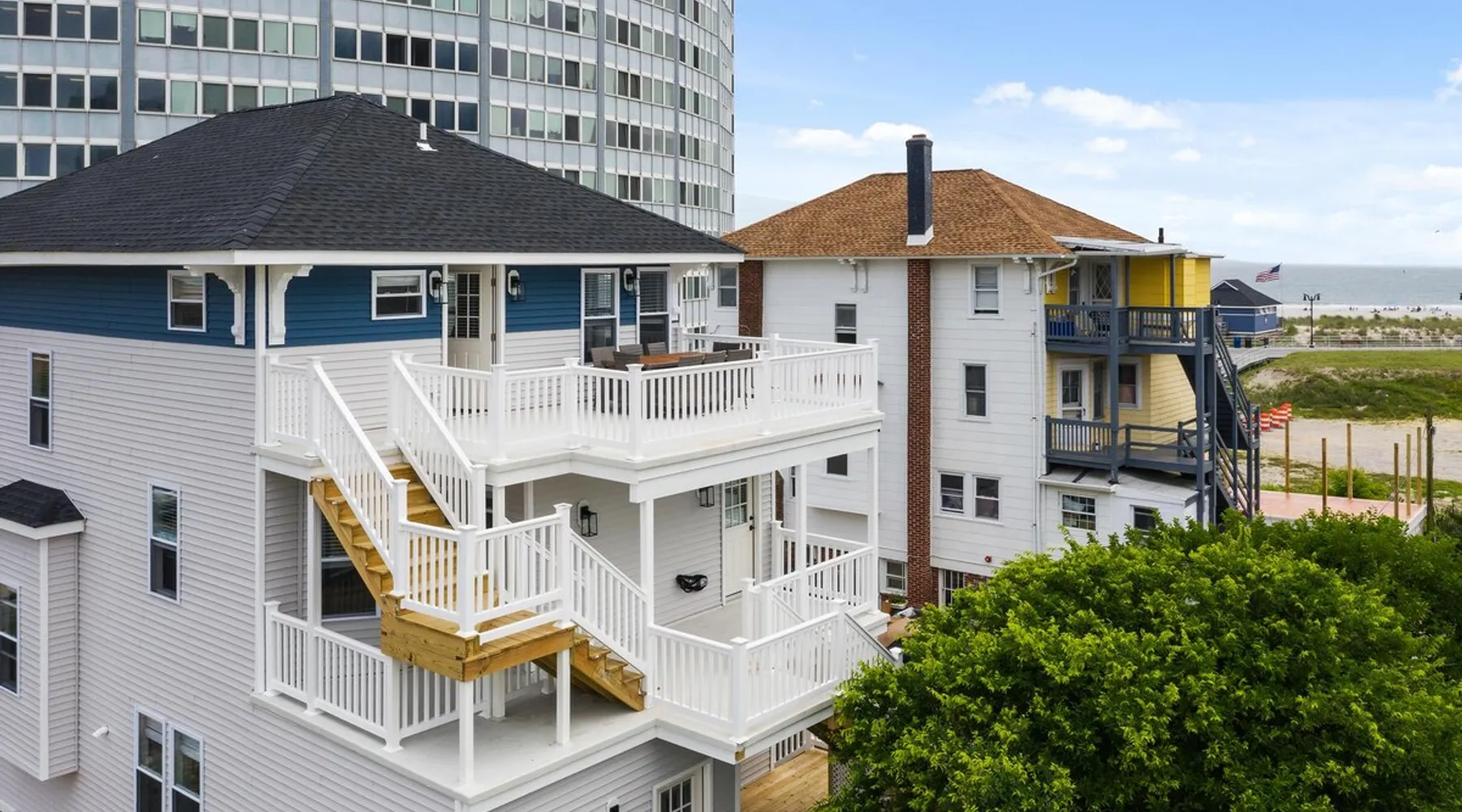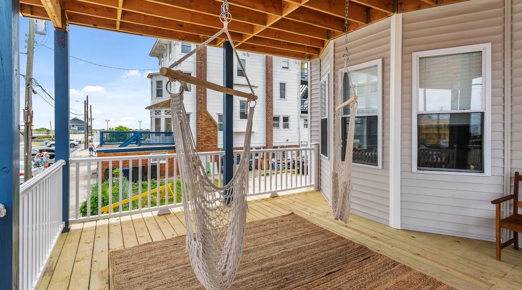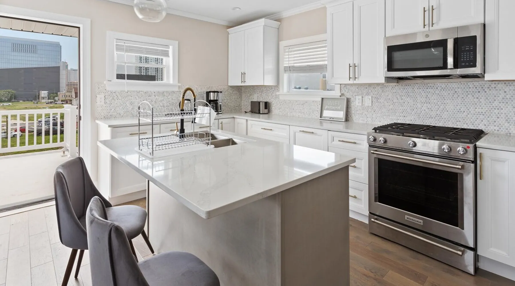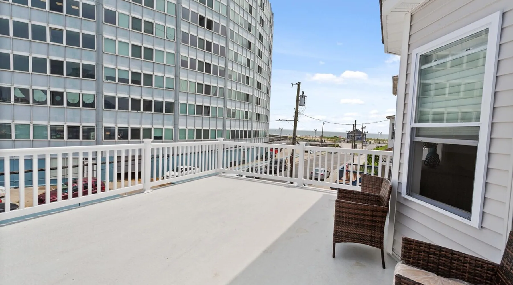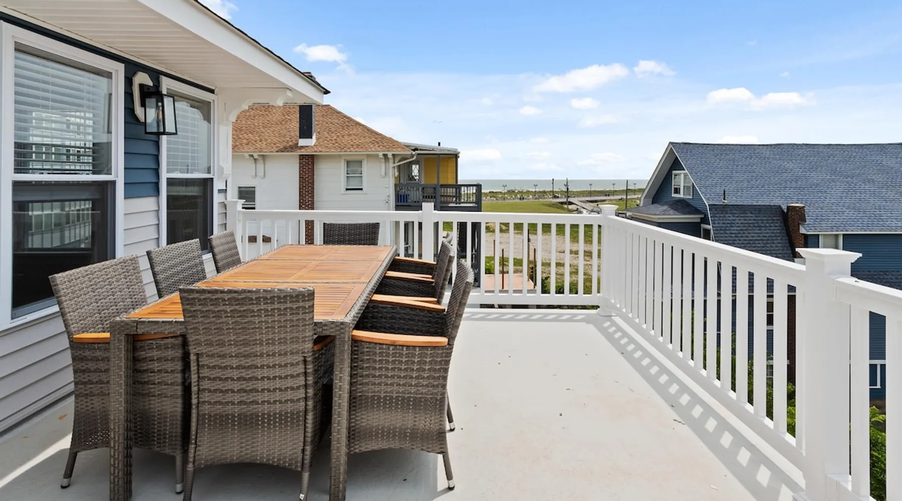 FRESH OFF A GUT RENOVATION IN SUMMER 2021 NEW Hot Tub installed March 2022 Located within the unique landscape of Southeast Inlet / North Beach is this stunning 3-story home that offers the perfect blend of modern, contemporary design with original heritage charm. Perfect for groups & families, the home encompasses 7 spacious bedrooms, 2 living areas, a high-end gourmet kitchen, beautiful hardwood floors and sweeping ocean views. Stay just steps from the beach, a 5-minute walk to the Ocean Casino and Hard Rock, the perfect home base for all of AC’s fun and attractions. We're also right around the corner from the brand new North Beach Mini Golf, located right on the Boardwalk along Euclid Ave! The space Make your way up the brick steps and into the grand beach house that has been fully updated with a fresh contemporary design while still embracing the rich history and heritage features that make this home special. The spacious rooms are filled with natural light from the bay windows that wrap around the house giving it a light and airy feel. The main living area features a lowline chaise lounge that surrounds the huge smart tv with a soundbar and is the perfect place to catch up on all your favorite shows. Behind are two comfortable reading chairs that sit by the window and opposite is a chic table set for 4 ideal for setting up a boardgame or playing cards with friends. Also on the first floor is the wet bar where you can mix drinks, keep your wine chilled or just use this space to whip up some snacks. Head upstairs to the main floor where you will find the large gourmet kitchen complete with custom cabinetry, sleek calacatta quartz countertops, high-end appliances and an island breakfast bar. There is a full size fridge/freezer with a filtered water and ice dispenser, a slide-in oven with a gas cooktop, a built in microwave, a coffee maker and a dishwasher to take care of all the cleaning up. Serve up your meals at the contemporary dining space set for eight (with an available leaf to extend the capacity) or eat alfresco style on a warm sunny day out on the deck with an outdoor table and stunning ocean views. There is a second living space with a plush sofa and armchair where you can catch up with friends before dinner as well as a handy half bath. Within the home there are 7 elegant bedrooms each with comfortable beds topped with hotel quality linen and bedding for a restful nights sleep along with plenty of storage space for you to unpack and make yourself at home. On the first floor, there are (2) bedrooms compromising of (2) queen beds along with a sparkling bathroom stocked with all the essentials along with a laundry room equipped with a washer and dryer. On the second floor there are another (4) spacious bedrooms with queen beds and (2) shared renovated bathrooms. Finally, on the top floor, there is the “penthouse suite” with an additional full bathroom offering a walk in shower and a his and her vanity stocked with soft fluffy towels. Outside guests are spoiled for choice with 4 decks / balconies to choose from. Relax in the swinging hammock seats or practice your morning yoga on the first shady level, then head up to the main deck that’s equipped with a BBQ and an outdoor dining setting or just chill out on the third level with plenty of comfortable seating options and picture perfect views across the city. The home also offers an oversized 2nd floor deck with the ocean so close you can hear the waves crashing on the sandy beach. The house is ideally located just half a minutes’ walk to one of Atlantic City’s most desirable free, public beaches where you can swim, paddle board, learn to surf or just lay on the sand and take it all in. Back at the house there is a handy outdoor shower where you can wash off before making your way back inside, or just brush the sand off and walk along the boardwalk to the many casinos, restaurants, shops and attractions that make Atlantic City the fun and exciting place to be. If you’re looking for a truly unique property that offers all the luxuries of the nearby resorts, you simply can’t pass up this elegant beach house for your next getaway to bustling Atlantic City. Guest access Guests have private access to the entire house as well as free Wi-Fi, free parking, and access to the laundry with a washing machine and dryer. Other things to note A few things to note about the house: 1) Pets are welcome for an additional pet fee. Please advise before booking your reservation. 2) There is one 70" Smart TV in the living room. Please note that we do not have cable TV. 3) In an effort to combat noise concerns and out of consideration for our neighbors, we have noise sensors installed at the property to monitor noise levels. We do not record audio of any type. This is strictly to ensure that noise does not eclipse a reasonable level, particularly in the evening hours. All we receive is a time-stamped decibel reading. You should have nothing to worry about as long as you're not engaging in excessive partying. 4) Please note that per Atlantic City's rules, we are not permitted to rent to groups under the age of 21. 5) The house is located adjacent to a large apartment building, and the neighborhood gets somewhat crowded in the summer due to the proximity to the beach, but much less so than other areas of Atlantic City. 6) Please also note that while fully renovated, the home was built over 100 years ago, so it may have some quirks to embrace.
