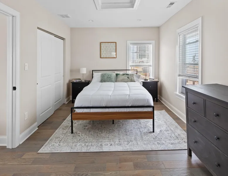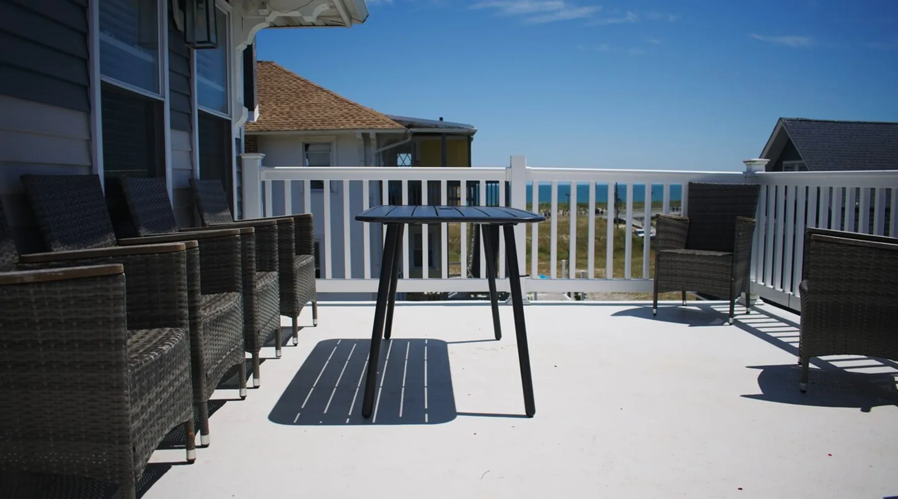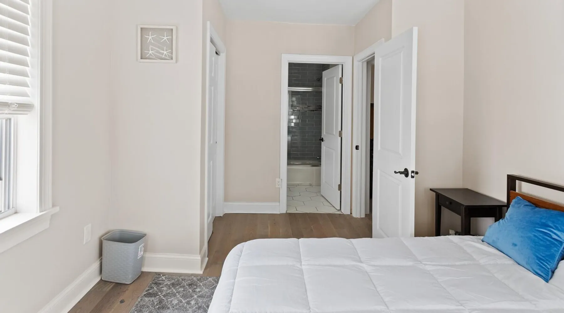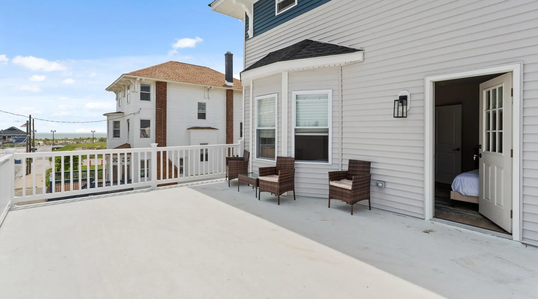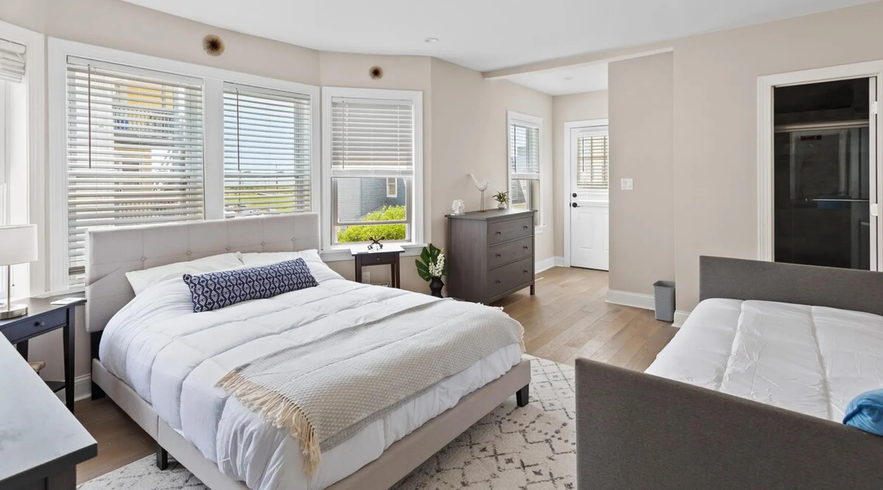FRESH OFF A GUT RENOVATION IN SUMMER 2021 NEW Hot Tub installed March 2022 Located within the unique landscape of Southeast Inlet / North Beach is this stunning 3-story home that offers the perfect blend of modern, contemporary design with original heritage charm. Perfect for groups & families, the home encompasses 7 spacious bedrooms, 2 living areas, a high-end gourmet kitchen, beautiful hardwood floors and sweeping ocean views. Stay just steps from the beach, a 5-minute walk to the Ocean Casino and Hard Rock, the perfect home base for all of AC’s fun and attractions. We're also right around the corner from the brand new North Beach Mini Golf, located right on the Boardwalk along Euclid Ave! The space Make your way up the brick steps and into the grand beach house that has been fully updated with a fresh contemporary design while still embracing the rich history and heritage features that make this home special. The spacious rooms are filled with natural light from the bay windows that wrap around the house giving it a light and airy feel. The main living area features a lowline chaise lounge that surrounds the huge smart tv with a soundbar and is the perfect place to catch up on all your favorite shows. Behind are two comfortable reading chairs that sit by the window and opposite is a chic table set for 4 ideal for setting up a boardgame or playing cards with friends. Also on the first floor is the wet bar where you can mix drinks, keep your wine chilled or just use this space to whip up some snacks. Head upstairs to the main floor where you will find the large gourmet kitchen complete with custom cabinetry, sleek calacatta quartz countertops, high-end appliances and an island breakfast bar. There is a full size fridge/freezer with a filtered water and ice dispenser, a slide-in oven with a gas cooktop, a built in microwave, a coffee maker and a dishwasher to take care of all the cleaning up. Serve up your meals at the contemporary dining space set for eight (with an available leaf to extend the capacity) or eat alfresco style on a warm sunny day out on the deck with an outdoor table and stunning ocean views. There is a second living space with a plush sofa and armchair where you can catch up with friends before dinner as well as a handy half bath. Within the home there are 7 elegant bedrooms each with comfortable beds topped with hotel quality linen and bedding for a restful nights sleep along with plenty of storage space for you to unpack and make yourself at home. On the first floor, there are (2) bedrooms compromising of (2) queen beds along with a sparkling bathroom stocked with all the essentials along with a laundry room equipped with a washer and dryer. On the second floor there are another (4) spacious bedrooms with queen beds and (2) shared renovated bathrooms. Finally, on the top floor, there is the “penthouse suite” with an additional full bathroom offering a walk in shower and a his and her vanity stocked with soft fluffy towels. Outside guests are spoiled for choice with 4 decks / balconies to choose from. Relax in the swinging hammock seats or practice your morning yoga on the first shady level, then head up to the main deck that’s equipped with a BBQ and an outdoor dining setting or just chill out on the third level with plenty of comfortable seating options and picture perfect views across the city. The home also offers an oversized 2nd floor deck with the ocean so close you can hear the waves crashing on the sandy beach. The house is ideally located just half a minutes’ walk to one of Atlantic City’s most desirable free, public beaches where you can swim, paddle board, learn to surf or just lay on the sand and take it all in. Back at the house there is a handy outdoor shower where you can wash off before making your way back inside, or just brush the sand off and walk along the boardwalk to the many casinos, restaurants, shops and attractions that make Atlantic City the fun and exciting place to be. If you’re looking for a truly unique property that offers all the luxuries of the nearby resorts, you simply can’t pass up this elegant beach house for your next getaway to bustling Atlantic City. Guest access Guests have private access to the entire house as well as free Wi-Fi, free parking, and access to the laundry with a washing machine and dryer. Other things to note A few things to note about the house: 1) Pets are welcome for an additional pet fee. Please advise before booking your reservation. 2) There is one 70" Smart TV in the living room. Please note that we do not have cable TV. 3) In an effort to combat noise concerns and out of consideration for our neighbors, we have noise sensors installed at the property to monitor noise levels. We do not record audio of any type. This is strictly to ensure that noise does not eclipse a reasonable level, particularly in the evening hours. All we receive is a time-stamped decibel reading. You should have nothing to worry about as long as you're not engaging in excessive partying. 4) Please note that per Atlantic City's rules, we are not permitted to rent to groups under the age of 21. 5) The house is located adjacent to a large apartment building, and the neighborhood gets somewhat crowded in the summer due to the proximity to the beach, but much less so than other areas of Atlantic City. 6) Please also note that while fully renovated, the home was built over 100 years ago, so it may have some quirks to embrace.