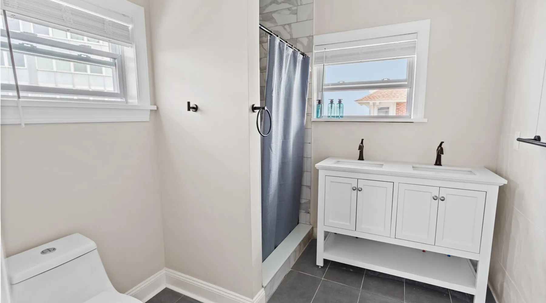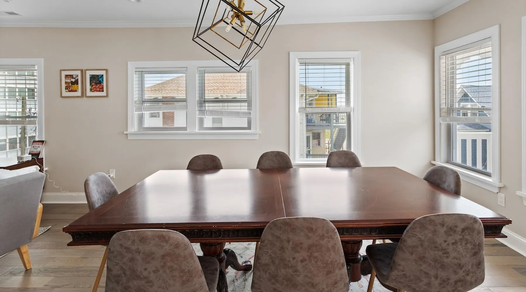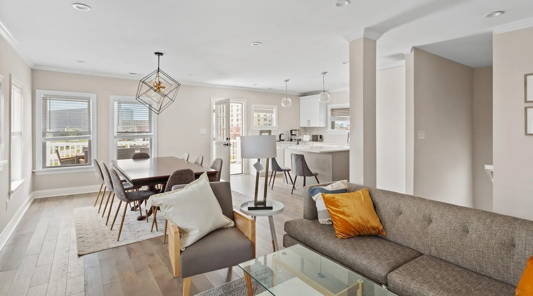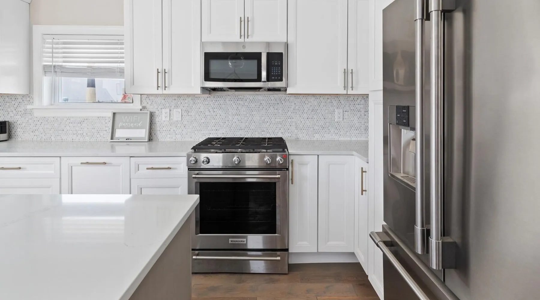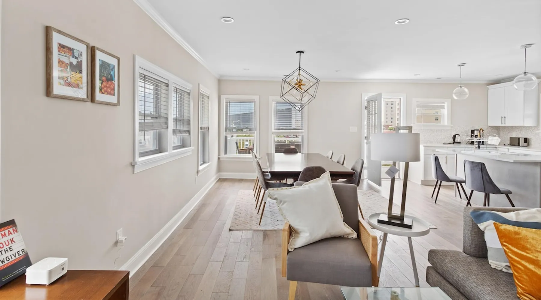 FRESH OFF A GUT RENOVATION IN SUMMER 2021 NEW Hot Tub installed March 2022 Located within the unique landscape of Southeast Inlet / North Beach is this stunning 3-story home that offers the perfect blend of modern, contemporary design with original heritage charm. Perfect for groups & families, the home encompasses 7 spacious bedrooms, 2 living areas, a high-end gourmet kitchen, beautiful hardwood floors and sweeping ocean views. Stay just steps from the beach, a 5-minute walk to the Ocean Casino and Hard Rock, the perfect home base for all of AC’s fun and attractions. We're also right around the corner from the brand new North Beach Mini Golf, located right on the Boardwalk along Euclid Ave! The space Make your way up the brick steps and into the grand beach house that has been fully updated with a fresh contemporary design while still embracing the rich history and heritage features that make this home special. The spacious rooms are filled with natural light from the bay windows that wrap around the house giving it a light and airy feel. The main living area features a lowline chaise lounge that surrounds the huge smart tv with a soundbar and is the perfect place to catch up on all your favorite shows. Behind are two comfortable reading chairs that sit by the window and opposite is a chic table set for 4 ideal for setting up a boardgame or playing cards with friends. Also on the first floor is the wet bar where you can mix drinks, keep your wine chilled or just use this space to whip up some snacks. Head upstairs to the main floor where you will find the large gourmet kitchen complete with custom cabinetry, sleek calacatta quartz countertops, high-end appliances and an island breakfast bar. There is a full size fridge/freezer with a filtered water and ice dispenser, a slide-in oven with a gas cooktop, a built in microwave, a coffee maker and a dishwasher to take care of all the cleaning up. Serve up your meals at the contemporary dining space set for eight (with an available leaf to extend the capacity) or eat alfresco style on a warm sunny day out on the deck with an outdoor table and stunning ocean views. There is a second living space with a plush sofa and armchair where you can catch up with friends before dinner as well as a handy half bath. Within the home there are 7 elegant bedrooms each with comfortable beds topped with hotel quality linen and bedding for a restful nights sleep along with plenty of storage space for you to unpack and make yourself at home. On the first floor, there are (2) bedrooms compromising of (2) queen beds along with a sparkling bathroom stocked with all the essentials along with a laundry room equipped with a washer and dryer. On the second floor there are another (4) spacious bedrooms with queen beds and (2) shared renovated bathrooms. Finally, on the top floor, there is the “penthouse suite” with an additional full bathroom offering a walk in shower and a his and her vanity stocked with soft fluffy towels. Outside guests are spoiled for choice with 4 decks / balconies to choose from. Relax in the swinging hammock seats or practice your morning yoga on the first shady level, then head up to the main deck that’s equipped with a BBQ and an outdoor dining setting or just chill out on the third level with plenty of comfortable seating options and picture perfect views across the city. The home also offers an oversized 2nd floor deck with the ocean so close you can hear the waves crashing on the sandy beach. The house is ideally located just half a minutes’ walk to one of Atlantic City’s most desirable free, public beaches where you can swim, paddle board, learn to surf or just lay on the sand and take it all in. Back at the house there is a handy outdoor shower where you can wash off before making your way back inside, or just brush the sand off and walk along the boardwalk to the many casinos, restaurants, shops and attractions that make Atlantic City the fun and exciting place to be. If you’re looking for a truly unique property that offers all the luxuries of the nearby resorts, you simply can’t pass up this elegant beach house for your next getaway to bustling Atlantic City. Guest access Guests have private access to the entire house as well as free Wi-Fi, free parking, and access to the laundry with a washing machine and dryer. Other things to note A few things to note about the house: 1) Pets are welcome for an additional pet fee. Please advise before booking your reservation. 2) There is one 70" Smart TV in the living room. Please note that we do not have cable TV. 3) In an effort to combat noise concerns and out of consideration for our neighbors, we have noise sensors installed at the property to monitor noise levels. We do not record audio of any type. This is strictly to ensure that noise does not eclipse a reasonable level, particularly in the evening hours. All we receive is a time-stamped decibel reading. You should have nothing to worry about as long as you're not engaging in excessive partying. 4) Please note that per Atlantic City's rules, we are not permitted to rent to groups under the age of 21. 5) The house is located adjacent to a large apartment building, and the neighborhood gets somewhat crowded in the summer due to the proximity to the beach, but much less so than other areas of Atlantic City. 6) Please also note that while fully renovated, the home was built over 100 years ago, so it may have some quirks to embrace.