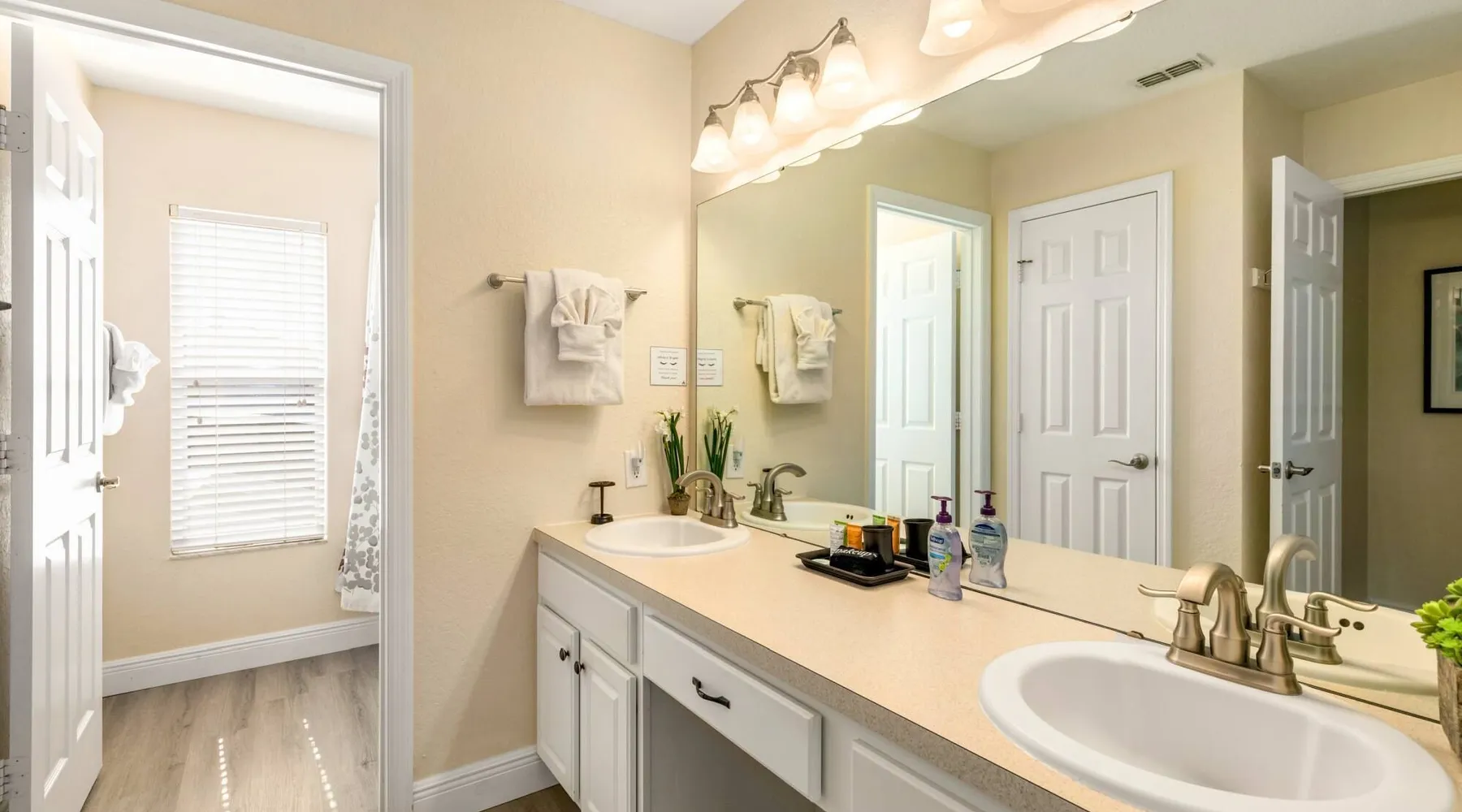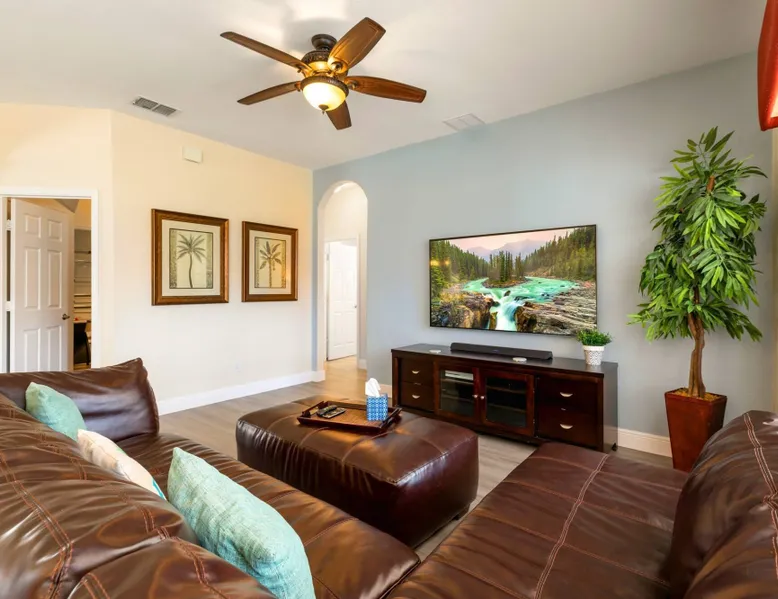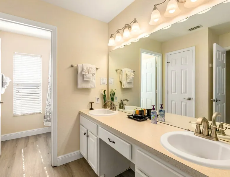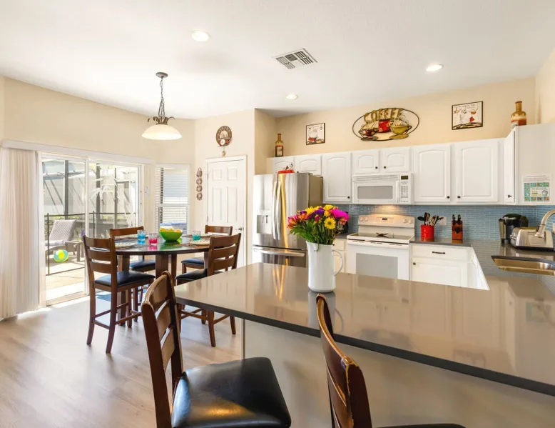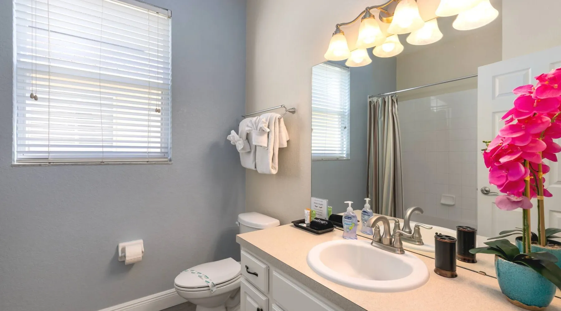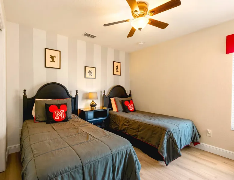 🎈Villa By The Castle stands out as the vacation home in Windsor Hills with the most reviews. It's the ideal accommodation for a multigenerational family vacation -- perfect for making lifelong memories with loved ones that will last a lifetime. 🎈 If your dates aren't available, no worries! One of our other beautiful Villas in the area may be the perfect spot for your stay. #2326262 & #3695022 are both stunning 8-bedroom Villas in Champions Gate, just minutes from all the local attractions! DISNEY AND BEYOND This welcoming Villa is 5 minutes from Disney and 20 minutes from Universal Studios & Sea World. Less than 2 miles from Disney - so close that you'll explore every whimsy and ride Disney has to offer before the famous nightly fireworks. BE OUR GUEST This stylish and spacious private Villa is perfect for accommodating larger groups, multiple families, reunions, and golfers, as it offers ample room for up to 14 guests. Keyless check-in & check-out make your Orlando stay as breezy as it should be. The theme parks in the area do get lots of attention – but there's plenty more to discover! In fact, we take pride in our diverse offerings, from world-class golf courses like Mystic Dunes right next door to stunning beaches like Cocoa & Clearwater Beach – only an hour's drive from the Villa. There is a smorgasbord of choices! THE VILLA WITH IT ALL Start your day with breakfast, eating al fresco in your private poolside lanai. Indulge in vacation-worthy meals with ease in the well-appointed eat-in kitchen, which comes fully equipped with everything you need -- the gas grill is also at the ready on the lanai. The kitchen overlooks the pool and both living rooms -- great spaces for unwinding after a day of adventure. Enjoy flexible seating arrangements at the dining/breakfast nook with a table that can seat up to 6 and a breakfast bar that seats 2. For larger gatherings, the dining table can expand to seat up to 10, while the outdoor dining table in the lanai can accommodate up to 8 guests. FUN IN THE SUN Step outside to your own personal oasis & discover a screened private pool with a spillover spa, comfortable sun loungers, and a covered lanai for shaded relaxation. Whether you choose to lounge in the sun and soak up its rays or take a break from the heat in the lanai under the cooling fan, you'll find the ideal space to unwind. With pool towels at the ready, jump in and enjoy a refreshing swim. It doesn't get much better than this! A PLACE FOR EVERYONE There are plenty of comfortable gathering spaces for everyone. Settle into the great room with a pool view for a cinematic experience on the 70" HDTV with an Xbox and surround sound. Or, carve out a little quiet time, and retreat into the living room to watch a relaxing movie or read your favorite book. The Villa is perfect for the days you spend indoors or out. With a super-fast 500Mps fiber internet connection, you can stay connected while enjoying a fun and relaxing getaway with the perfect blend of work and play. GAME ROOM Fancy a game of pool? Foosball? Air hockey? Darts? The game room delights kids and adults alike. BABY GEAR🍼 If you're traveling with little ones, we have you covered. You'll have everything from strollers to playpens to cribs & high chairs. SIX BEAUTIFUL BEDROOMS MADE FOR SWEET DREAMS The kids have their pick of two playful bedrooms: the Mickey and Flower bedrooms, which are whimsically decorated, and each furnished with two twin-sized beds and a single Cortesi bed. Sleep like those in the Magic Kingdom do in the primary bedroom, detailed with a handsome four-poster King bed and a deluxe en-suite bath with double sinks, a soaking tub, and a walk-in shower. Another heavenly King en-suite awaits on the second floor, along with a 3rd King bedroom and a bright shared bath. You'll also have a King bedroom and guest bath on the first floor, offering stair-free access - although not wheelchair accessible - perfect for grandparents or guests with mobility challenges. All King beds are US Kings (UK Super King) THE WONDER OF WINDSOR HILLS Windsor Hills is one of the most sought-after gated resorts in the Disney area. The Villa is walking distance to the clubhouse, though you may want to run to get there more quickly! The Windsor Hills Water Park is the latest addition, with dueling water slides, a splash zone with 2 slides, a huge water wheel, water cannons, and sprays. The massive heated pool wows with fountains, a hot tub, and a two-story water slide, but the thrills don't end there. There's also a fitness center, Ping-Pong, a 12-game arcade, and a 48-seat HD movie theater. The children's playground is right around the corner from the Villa, less than a 2-minute walk. YOUR VACATION EXPERIENCE Looking for fun activities during your stay? There is a ton to do in the area. You'll receive a huge activity list with top things to see and do during your stay. There is something for everyone. Space adventurers can take a trip to the Kennedy Space Center and watch a rocket launch. Swimming up close to manatees at Crystal River is also a crowd favorite. We are proud to be a Premier Partner host with oodles of happy reviews! You'll enjoy a happy & welcoming vacation home during your stay. All the little touches in the Villa are there, so all you'll have to do is focus on your vacation. We're here through the whole experience, from booking, to arrival and during your entire stay. THE ORLANDO EXPERIENCE Families from all over the world travel to Disney World seeking an unforgettable experience, and it never disappoints. From shops to great restaurants to Lego Land, Sea World, Discovery cove, Gatorland, Margaritaville, and Universal Studios, the Disney mecca leaves visitors with a smile on their faces and a swell in their hearts. Whether you choose to see it all or spend your days unwinding by the pool, this incredible Windsor Hills Villa will inspire you to visit Orlando again and again and again… During your stay, you're not on
