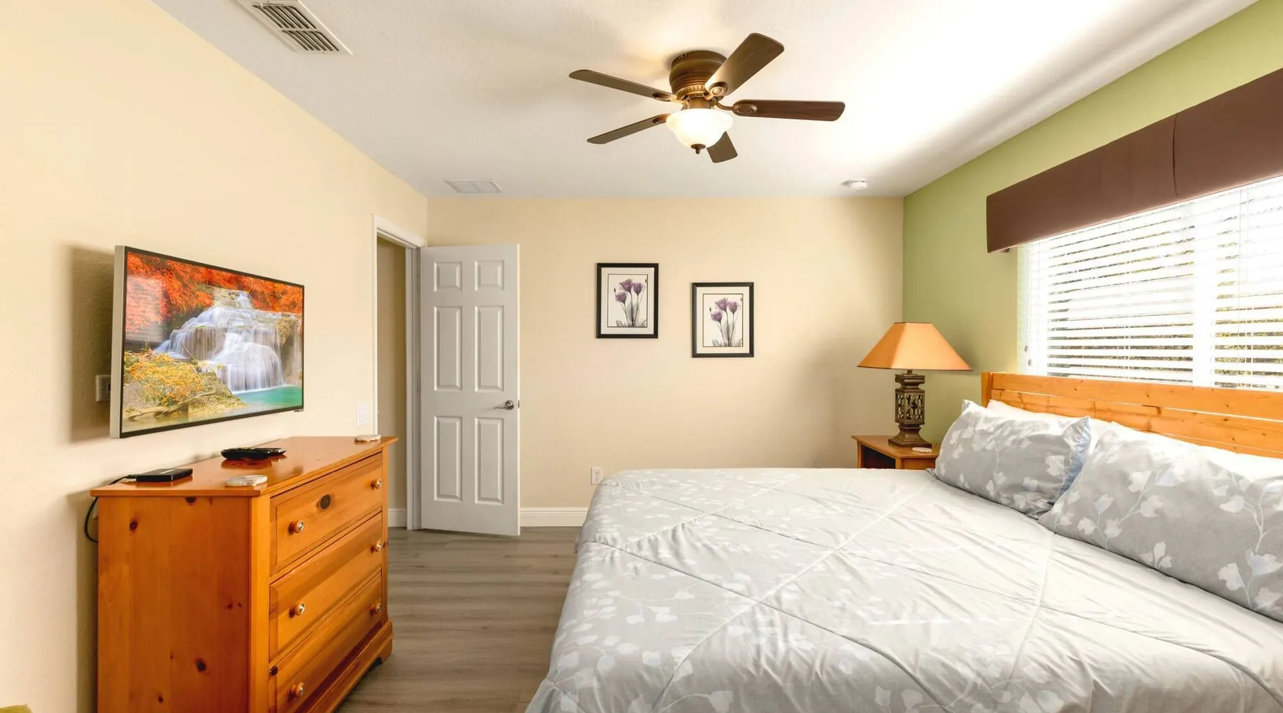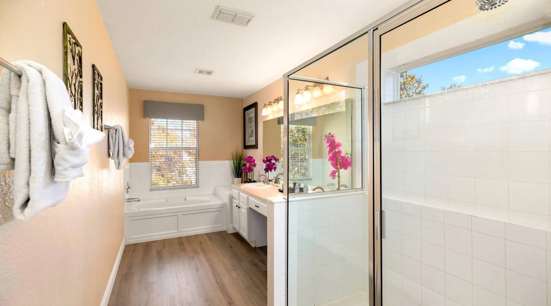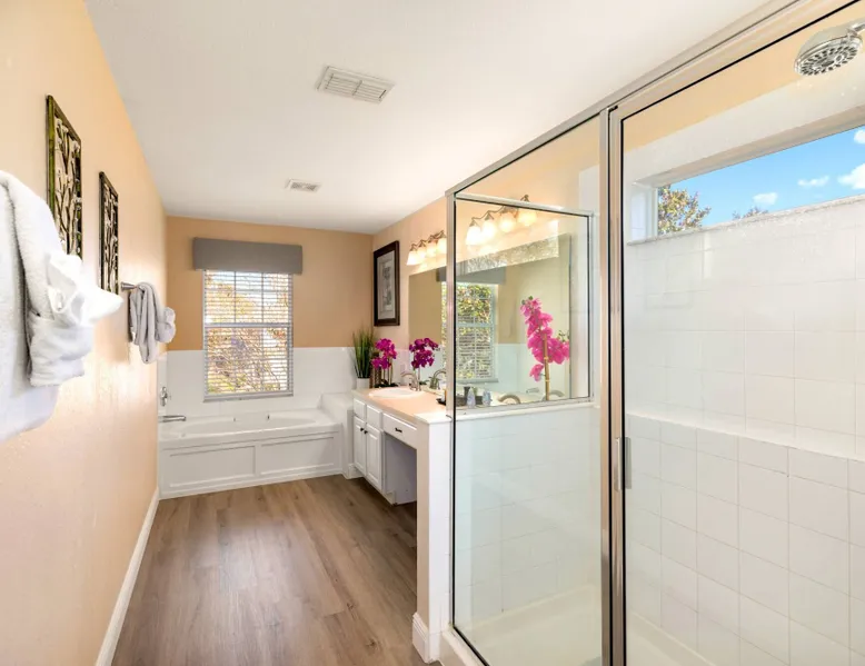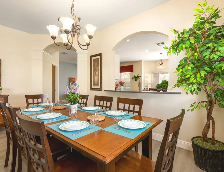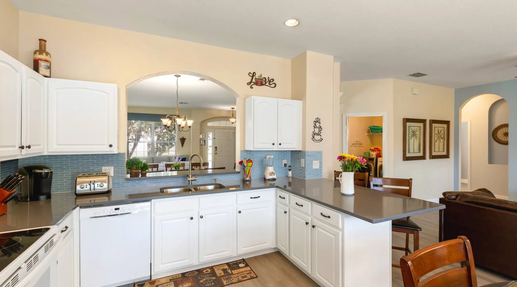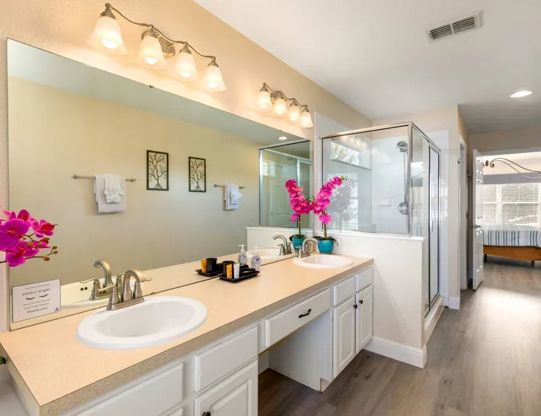 🎈Villa By The Castle stands out as the vacation home in Windsor Hills with the most reviews. It's the ideal accommodation for a multigenerational family vacation -- perfect for making lifelong memories with loved ones that will last a lifetime. 🎈 If your dates aren't available, no worries! One of our other beautiful Villas in the area may be the perfect spot for your stay. #2326262 & #3695022 are both stunning 8-bedroom Villas in Champions Gate, just minutes from all the local attractions! DISNEY AND BEYOND This welcoming Villa is 5 minutes from Disney and 20 minutes from Universal Studios & Sea World. Less than 2 miles from Disney - so close that you'll explore every whimsy and ride Disney has to offer before the famous nightly fireworks. BE OUR GUEST This stylish and spacious private Villa is perfect for accommodating larger groups, multiple families, reunions, and golfers, as it offers ample room for up to 14 guests. Keyless check-in & check-out make your Orlando stay as breezy as it should be. The theme parks in the area do get lots of attention – but there's plenty more to discover! In fact, we take pride in our diverse offerings, from world-class golf courses like Mystic Dunes right next door to stunning beaches like Cocoa & Clearwater Beach – only an hour's drive from the Villa. There is a smorgasbord of choices! THE VILLA WITH IT ALL Start your day with breakfast, eating al fresco in your private poolside lanai. Indulge in vacation-worthy meals with ease in the well-appointed eat-in kitchen, which comes fully equipped with everything you need -- the gas grill is also at the ready on the lanai. The kitchen overlooks the pool and both living rooms -- great spaces for unwinding after a day of adventure. Enjoy flexible seating arrangements at the dining/breakfast nook with a table that can seat up to 6 and a breakfast bar that seats 2. For larger gatherings, the dining table can expand to seat up to 10, while the outdoor dining table in the lanai can accommodate up to 8 guests. FUN IN THE SUN Step outside to your own personal oasis & discover a screened private pool with a spillover spa, comfortable sun loungers, and a covered lanai for shaded relaxation. Whether you choose to lounge in the sun and soak up its rays or take a break from the heat in the lanai under the cooling fan, you'll find the ideal space to unwind. With pool towels at the ready, jump in and enjoy a refreshing swim. It doesn't get much better than this! A PLACE FOR EVERYONE There are plenty of comfortable gathering spaces for everyone. Settle into the great room with a pool view for a cinematic experience on the 70" HDTV with an Xbox and surround sound. Or, carve out a little quiet time, and retreat into the living room to watch a relaxing movie or read your favorite book. The Villa is perfect for the days you spend indoors or out. With a super-fast 500Mps fiber internet connection, you can stay connected while enjoying a fun and relaxing getaway with the perfect blend of work and play. GAME ROOM Fancy a game of pool? Foosball? Air hockey? Darts? The game room delights kids and adults alike. BABY GEAR🍼 If you're traveling with little ones, we have you covered. You'll have everything from strollers to playpens to cribs & high chairs. SIX BEAUTIFUL BEDROOMS MADE FOR SWEET DREAMS The kids have their pick of two playful bedrooms: the Mickey and Flower bedrooms, which are whimsically decorated, and each furnished with two twin-sized beds and a single Cortesi bed. Sleep like those in the Magic Kingdom do in the primary bedroom, detailed with a handsome four-poster King bed and a deluxe en-suite bath with double sinks, a soaking tub, and a walk-in shower. Another heavenly King en-suite awaits on the second floor, along with a 3rd King bedroom and a bright shared bath. You'll also have a King bedroom and guest bath on the first floor, offering stair-free access - although not wheelchair accessible - perfect for grandparents or guests with mobility challenges. All King beds are US Kings (UK Super King) THE WONDER OF WINDSOR HILLS Windsor Hills is one of the most sought-after gated resorts in the Disney area. The Villa is walking distance to the clubhouse, though you may want to run to get there more quickly! The Windsor Hills Water Park is the latest addition, with dueling water slides, a splash zone with 2 slides, a huge water wheel, water cannons, and sprays. The massive heated pool wows with fountains, a hot tub, and a two-story water slide, but the thrills don't end there. There's also a fitness center, Ping-Pong, a 12-game arcade, and a 48-seat HD movie theater. The children's playground is right around the corner from the Villa, less than a 2-minute walk. YOUR VACATION EXPERIENCE Looking for fun activities during your stay? There is a ton to do in the area. You'll receive a huge activity list with top things to see and do during your stay. There is something for everyone. Space adventurers can take a trip to the Kennedy Space Center and watch a rocket launch. Swimming up close to manatees at Crystal River is also a crowd favorite. We are proud to be a Premier Partner host with oodles of happy reviews! You'll enjoy a happy & welcoming vacation home during your stay. All the little touches in the Villa are there, so all you'll have to do is focus on your vacation. We're here through the whole experience, from booking, to arrival and during your entire stay. THE ORLANDO EXPERIENCE Families from all over the world travel to Disney World seeking an unforgettable experience, and it never disappoints. From shops to great restaurants to Lego Land, Sea World, Discovery cove, Gatorland, Margaritaville, and Universal Studios, the Disney mecca leaves visitors with a smile on their faces and a swell in their hearts. Whether you choose to see it all or spend your days unwinding by the pool, this incredible Windsor Hills Villa will inspire you to visit Orlando again and again and again… During your stay, you're not on