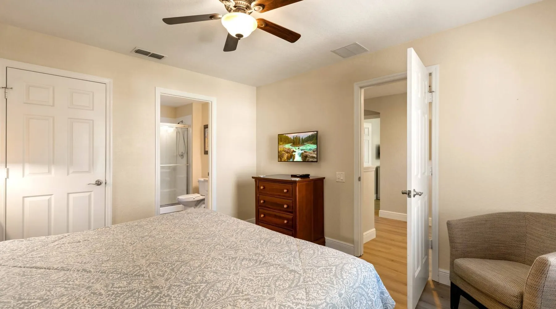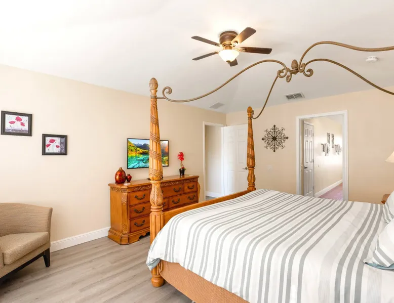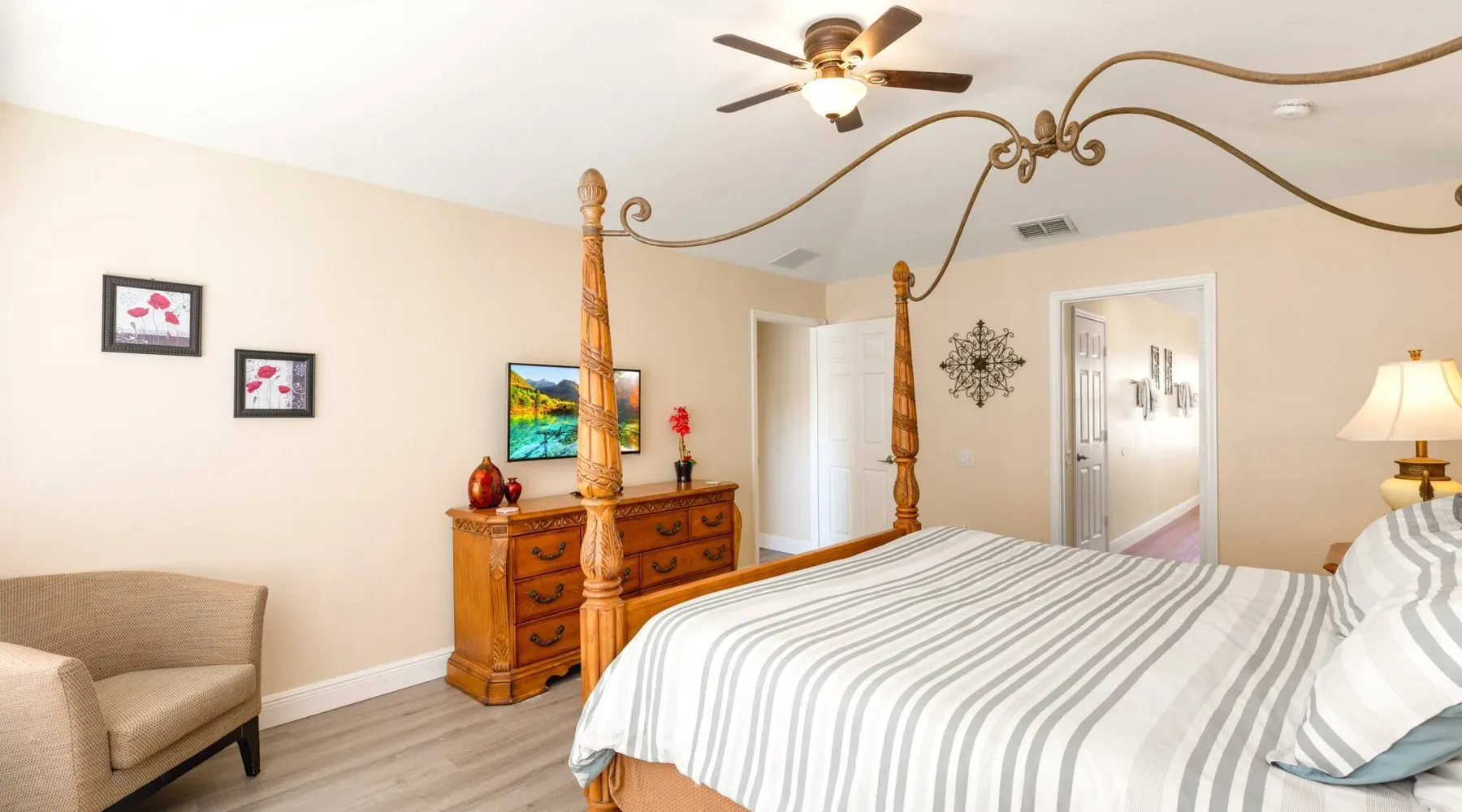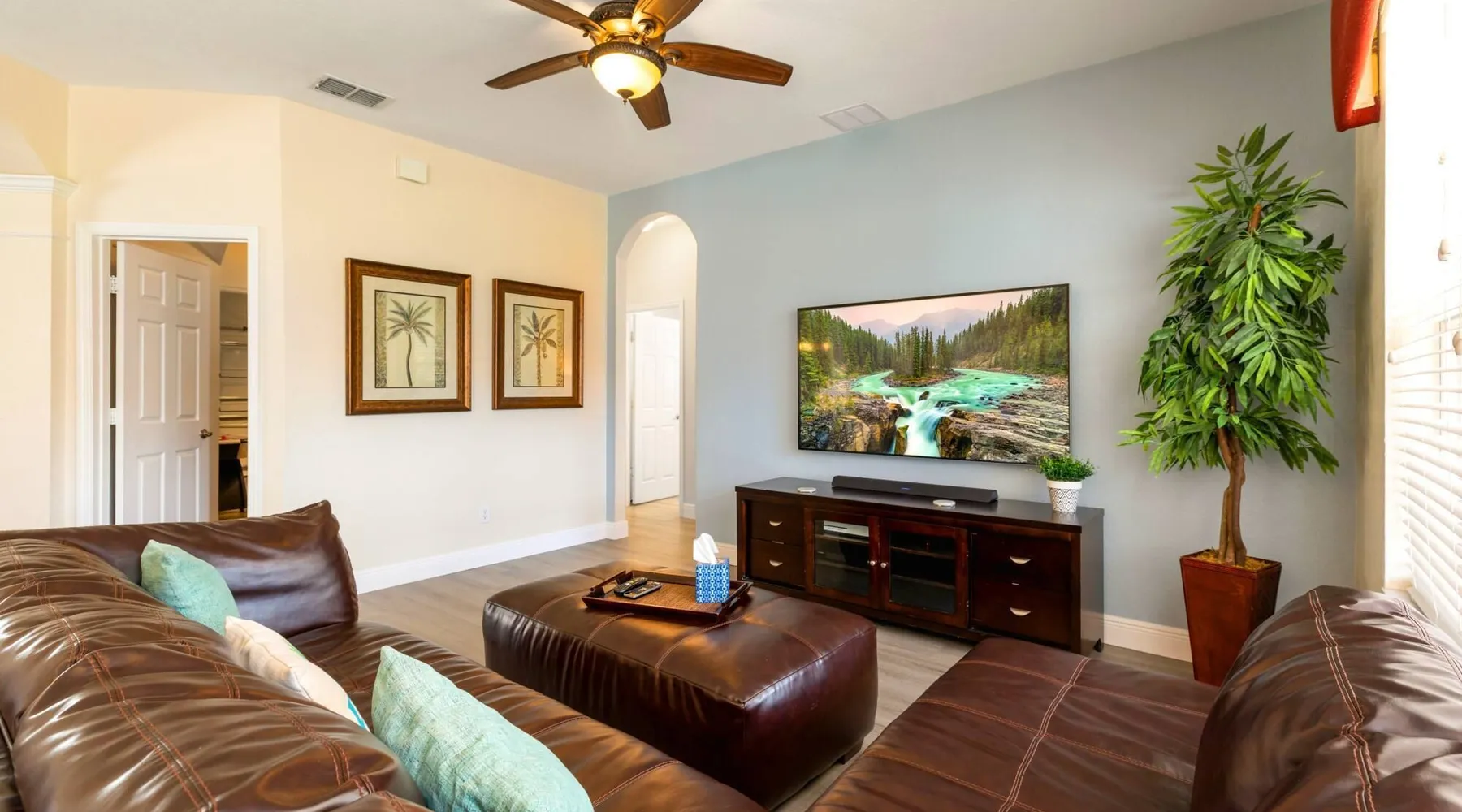 🎈Villa By The Castle stands out as the vacation home in Windsor Hills with the most reviews. It's the ideal accommodation for a multigenerational family vacation -- perfect for making lifelong memories with loved ones that will last a lifetime. 🎈 If your dates aren't available, no worries! One of our other beautiful Villas in the area may be the perfect spot for your stay. #2326262 & #3695022 are both stunning 8-bedroom Villas in Champions Gate, just minutes from all the local attractions! DISNEY AND BEYOND This welcoming Villa is 5 minutes from Disney and 20 minutes from Universal Studios & Sea World. Less than 2 miles from Disney - so close that you'll explore every whimsy and ride Disney has to offer before the famous nightly fireworks. BE OUR GUEST This stylish and spacious private Villa is perfect for accommodating larger groups, multiple families, reunions, and golfers, as it offers ample room for up to 14 guests. Keyless check-in & check-out make your Orlando stay as breezy as it should be. The theme parks in the area do get lots of attention – but there's plenty more to discover! In fact, we take pride in our diverse offerings, from world-class golf courses like Mystic Dunes right next door to stunning beaches like Cocoa & Clearwater Beach – only an hour's drive from the Villa. There is a smorgasbord of choices! THE VILLA WITH IT ALL Start your day with breakfast, eating al fresco in your private poolside lanai. Indulge in vacation-worthy meals with ease in the well-appointed eat-in kitchen, which comes fully equipped with everything you need -- the gas grill is also at the ready on the lanai. The kitchen overlooks the pool and both living rooms -- great spaces for unwinding after a day of adventure. Enjoy flexible seating arrangements at the dining/breakfast nook with a table that can seat up to 6 and a breakfast bar that seats 2. For larger gatherings, the dining table can expand to seat up to 10, while the outdoor dining table in the lanai can accommodate up to 8 guests. FUN IN THE SUN Step outside to your own personal oasis & discover a screened private pool with a spillover spa, comfortable sun loungers, and a covered lanai for shaded relaxation. Whether you choose to lounge in the sun and soak up its rays or take a break from the heat in the lanai under the cooling fan, you'll find the ideal space to unwind. With pool towels at the ready, jump in and enjoy a refreshing swim. It doesn't get much better than this! A PLACE FOR EVERYONE There are plenty of comfortable gathering spaces for everyone. Settle into the great room with a pool view for a cinematic experience on the 70" HDTV with an Xbox and surround sound. Or, carve out a little quiet time, and retreat into the living room to watch a relaxing movie or read your favorite book. The Villa is perfect for the days you spend indoors or out. With a super-fast 500Mps fiber internet connection, you can stay connected while enjoying a fun and relaxing getaway with the perfect blend of work and play. GAME ROOM Fancy a game of pool? Foosball? Air hockey? Darts? The game room delights kids and adults alike. BABY GEAR🍼 If you're traveling with little ones, we have you covered. You'll have everything from strollers to playpens to cribs & high chairs. SIX BEAUTIFUL BEDROOMS MADE FOR SWEET DREAMS The kids have their pick of two playful bedrooms: the Mickey and Flower bedrooms, which are whimsically decorated, and each furnished with two twin-sized beds and a single Cortesi bed. Sleep like those in the Magic Kingdom do in the primary bedroom, detailed with a handsome four-poster King bed and a deluxe en-suite bath with double sinks, a soaking tub, and a walk-in shower. Another heavenly King en-suite awaits on the second floor, along with a 3rd King bedroom and a bright shared bath. You'll also have a King bedroom and guest bath on the first floor, offering stair-free access - although not wheelchair accessible - perfect for grandparents or guests with mobility challenges. All King beds are US Kings (UK Super King) THE WONDER OF WINDSOR HILLS Windsor Hills is one of the most sought-after gated resorts in the Disney area. The Villa is walking distance to the clubhouse, though you may want to run to get there more quickly! The Windsor Hills Water Park is the latest addition, with dueling water slides, a splash zone with 2 slides, a huge water wheel, water cannons, and sprays. The massive heated pool wows with fountains, a hot tub, and a two-story water slide, but the thrills don't end there. There's also a fitness center, Ping-Pong, a 12-game arcade, and a 48-seat HD movie theater. The children's playground is right around the corner from the Villa, less than a 2-minute walk. YOUR VACATION EXPERIENCE Looking for fun activities during your stay? There is a ton to do in the area. You'll receive a huge activity list with top things to see and do during your stay. There is something for everyone. Space adventurers can take a trip to the Kennedy Space Center and watch a rocket launch. Swimming up close to manatees at Crystal River is also a crowd favorite. We are proud to be a Premier Partner host with oodles of happy reviews! You'll enjoy a happy & welcoming vacation home during your stay. All the little touches in the Villa are there, so all you'll have to do is focus on your vacation. We're here through the whole experience, from booking, to arrival and during your entire stay. THE ORLANDO EXPERIENCE Families from all over the world travel to Disney World seeking an unforgettable experience, and it never disappoints. From shops to great restaurants to Lego Land, Sea World, Discovery cove, Gatorland, Margaritaville, and Universal Studios, the Disney mecca leaves visitors with a smile on their faces and a swell in their hearts. Whether you choose to see it all or spend your days unwinding by the pool, this incredible Windsor Hills Villa will inspire you to visit Orlando again and again and again… During your stay, you're not on