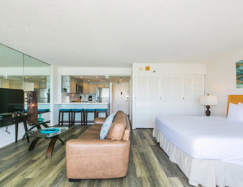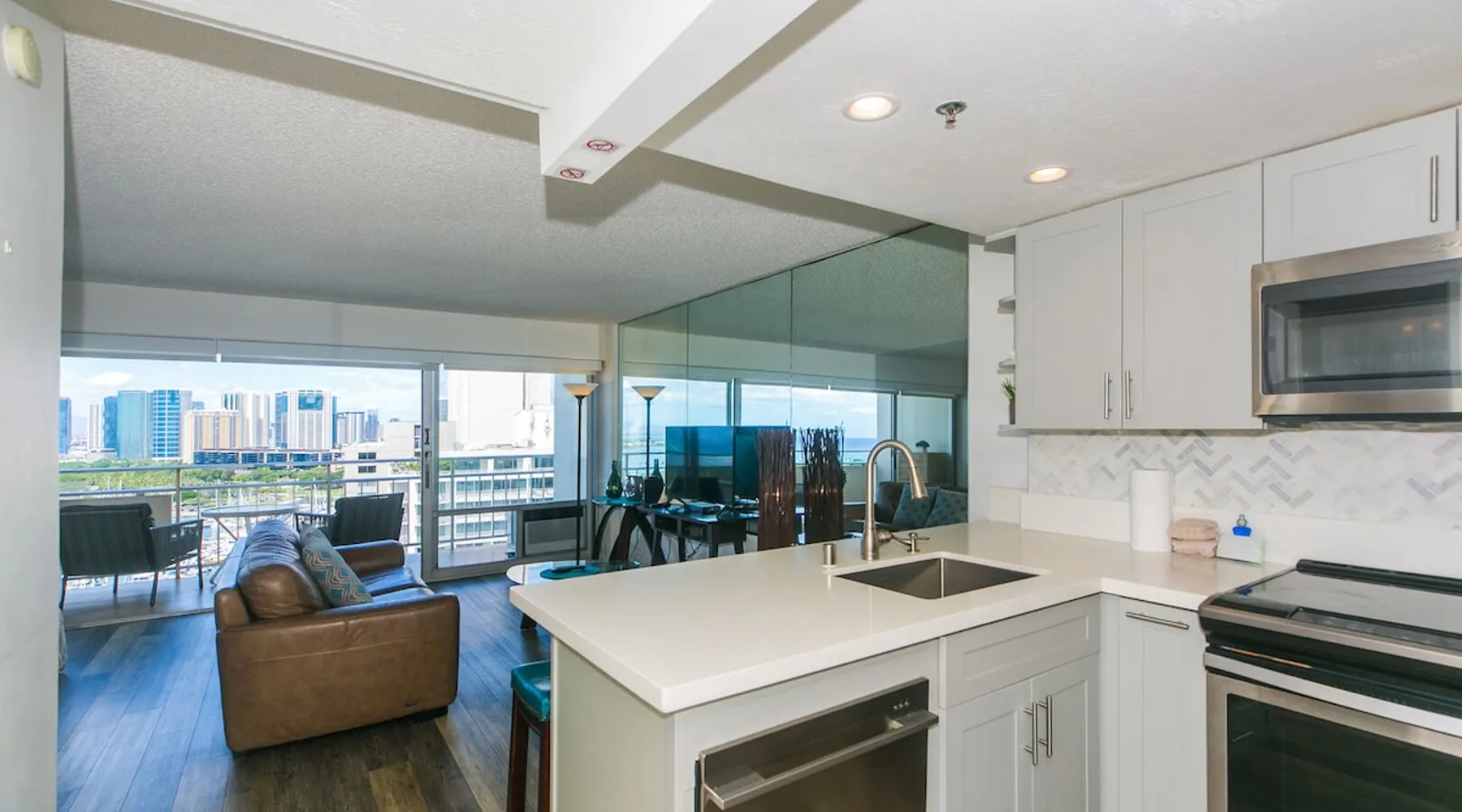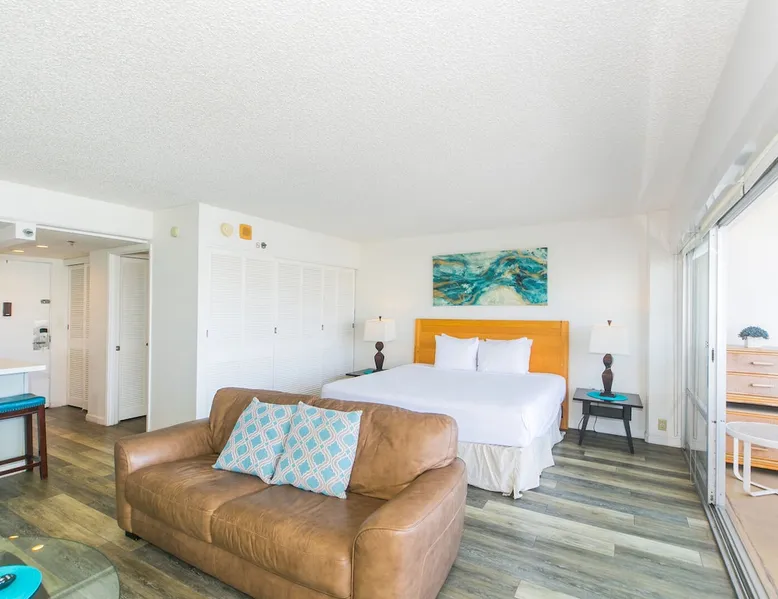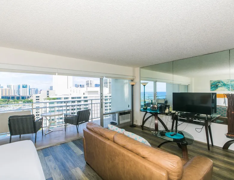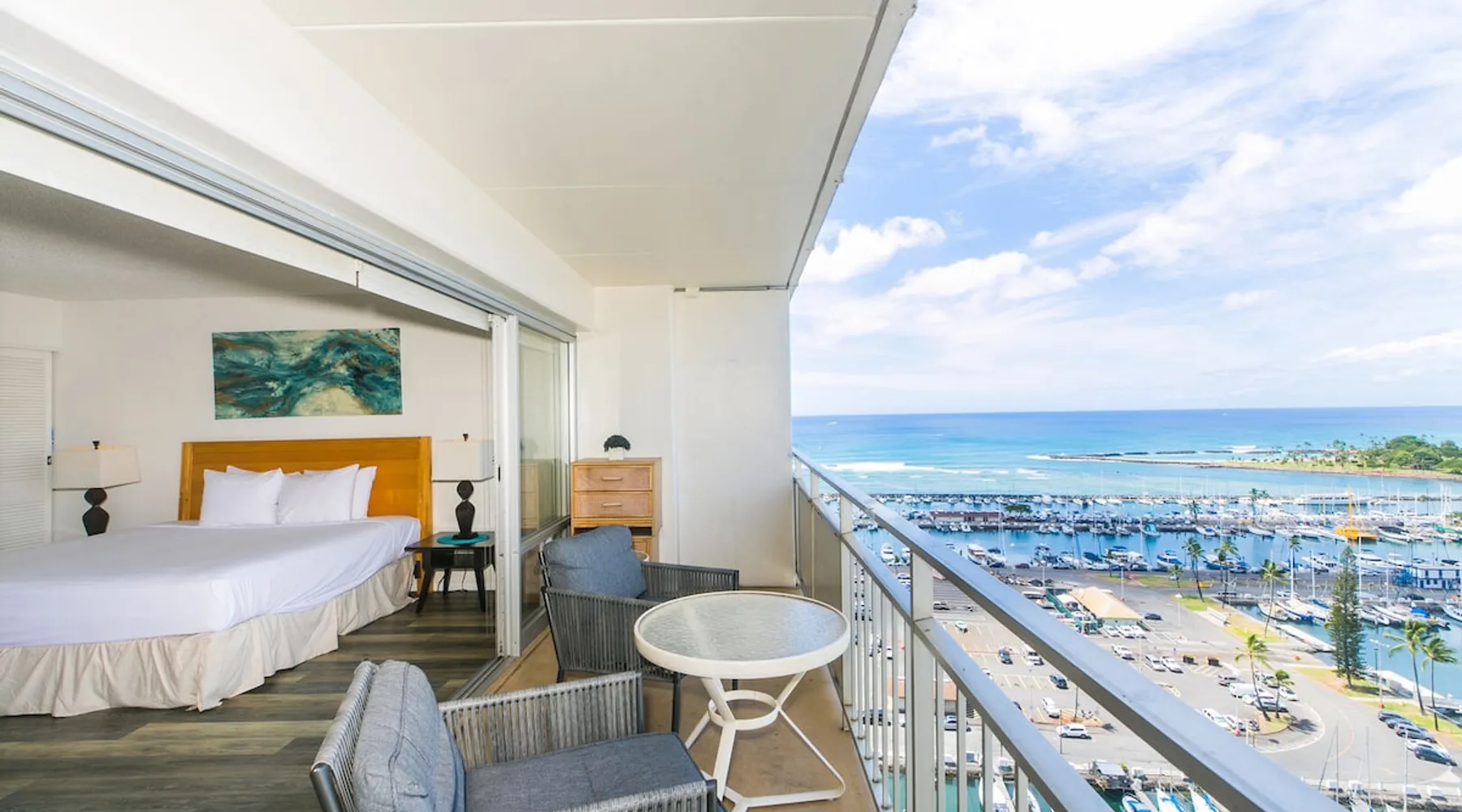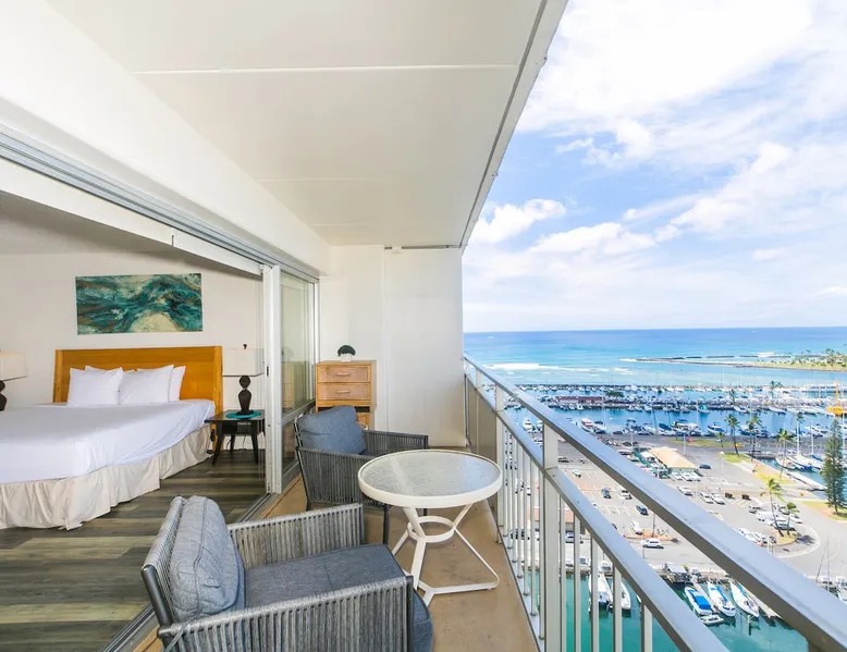 1 Bedroom Yacht Harbor View on the 18th Floor! NEWS FLASH! This condo was completely gutted & renovated with brand new stainless steel appliances and furniture! Nothing was spared when completing this upgrade, it checks off all the marks for everything you'll need to make this your home away from home while on vacation. This rare, high floor, and most sought after and in a spectacular location of the Ilikai Hotel with views of the Pacific Ocean overlooking the Ala Wai Yacht Harbor. This spacious 1-bedroom condo has 500 sq ft of living space & a huge lanai of 120 sq ft. Gaze toward the glittering blue waters & white sandy beaches. You’ll be able to watch the famous south shore surf breaks & exquisite sunsets over the harbor. The kitchen is open, spacious, and well stocked to provide you the comforts of home while traveling. This condo has a comfortable King bed and will put you right to sleep after the long days at the beach. The condo has a window AC unit to keep you cool during the warm summer nights. Cable TV & FREE high speed internet access with password protected WIFI, along with local, US and Canada phone service included. Beach Access? The walkway ramp from the hotel lobby leads directly to the Duke Kahanamoku Lagoon & the famous Waikiki beach! You'll be on the beach and in the sand in minutes! The Ilikai Hotel is well known as being the backdrop for the original Hawaii 5-0 television show, neat the Hawaii Convention Center, Ala Moana Shopping Center and-of course-the famous Waikiki Beach. The Ilikai offers two swimming pools, including a shallow pool with lounge chairs. Both pool decks along with the courtyard offers a space for you to lounge & sunbathe. There are coin-operated laundry facilities on each floor. Security is on property 24/7. Parking is available for an additional cost of $45/day, valet only or you can park at a nearby garage for $28/day. (Rates subject to change without advance notice). This building is perfect for snowbirds looking for an escape during the winter months, workers on temporary assignment, or residents relocating to Honolulu for work as the condos are fully furnished & ready for move in. Waikiki's large, white-sand beaches are minutes away. Ala Moana Beach Park is just a five-minute saunter away. World-renowned Ala Moana Shopping Center is only a ten-minute walk. There's also an abundance of night life in Waikiki! Hungry? Cinnamon’s at the Ilikai is located in the lobby & the perfect spot for you to enjoy their famous Guava Chiffon pancakes or Kalua Pig Benedict. Aroma Café offers high quality Italian coffee and great breakfast bagels, sandwiches and snacks. There is also Ku’ai Market, a convenience store that has hot/cold food, drinks, snacks and more! Nearby the Ilikai Hotel is a local favorite, Charthouse Waikiki, which overlooks the peaceful Ala Wai Yacht Harbor and offers live entertainment for a great night out! Other places you may be familiar with include Red Lobster and Outback Steakhouse nearby. Transportation? Honolulu’s island wide and top-rated public transportation system known as “The Bus” has stops bus stops in front of the Ilikai Hotel. There are always taxi’s waiting in front of the Ilikai as well. Discovery Bay, located across the street host an array of rental car options which makes it easy to rent a car for a day, week, or longer. Honolulu’s BIKI bike system has bike stations just minutes away from the Ilikai Hotel. We have been providing travelers with fully furnished condo rentals since 1965. Book with confidence as we only provide legal vacation rental in Waikiki & the surrounding areas. The condos are privately owned & constructions and/or other building shut downs may occur during your stay. Owners unfortunately have no control over the outside work and noise. The work hours are Monday – Friday, 8 AM – 4:30 PM, no weekends or holidays. We feel most guests will feel little to no impact on construction as many travelers are out exploring the island, enjoying the beaches, shopping or partaking in other activities on Oahu during these hours. If this concerns you, please speak with a vacation rental specialist for more information. Registration details 260100070419, 1837, TA-097-056-3584-01