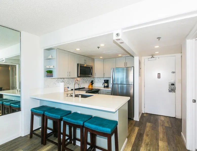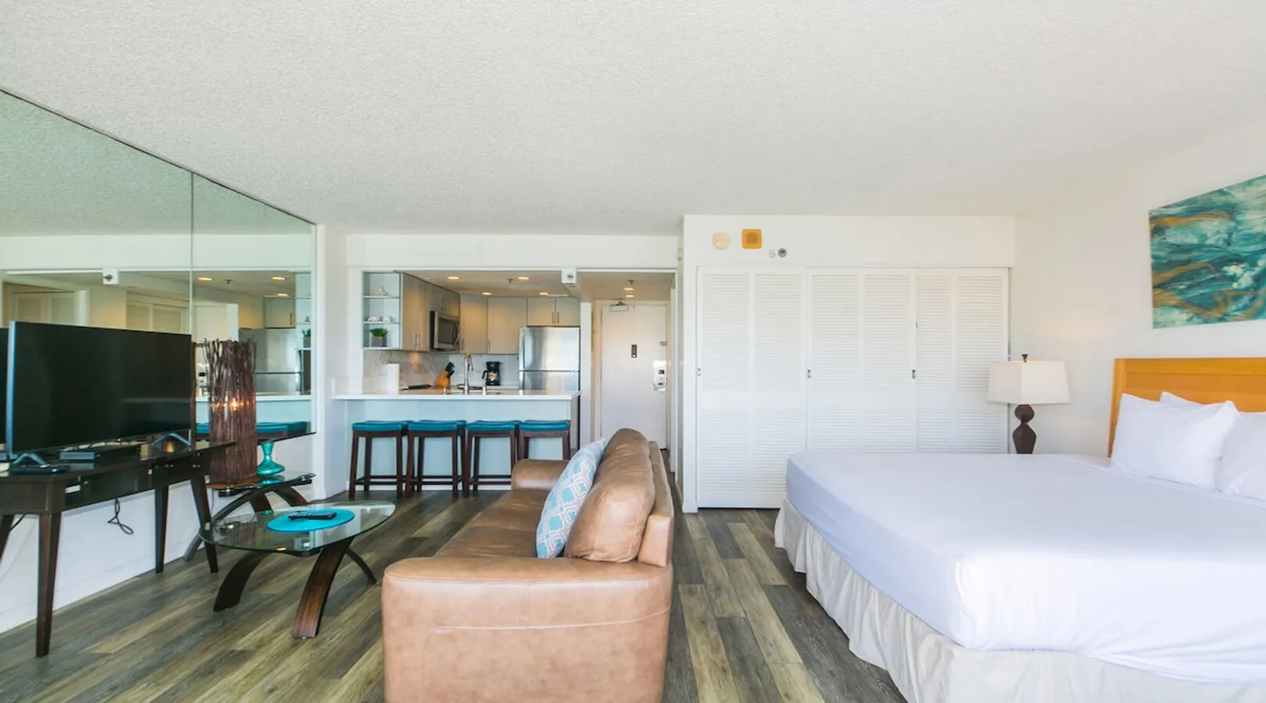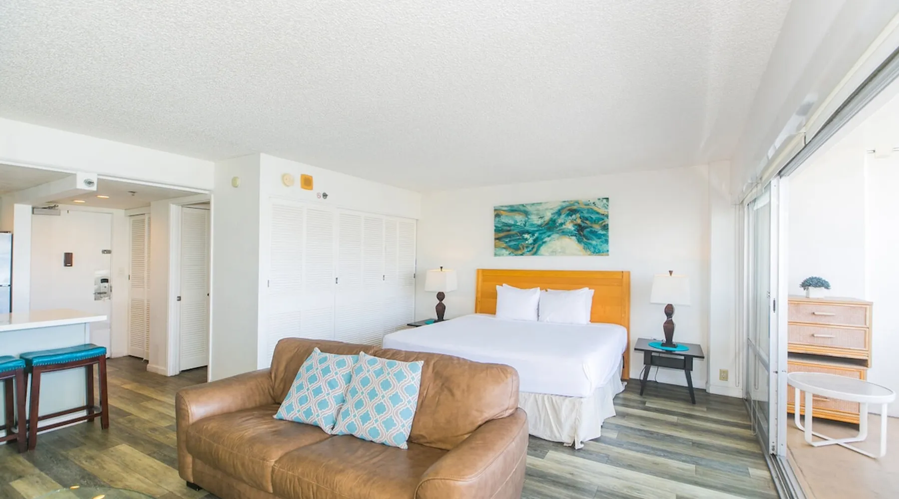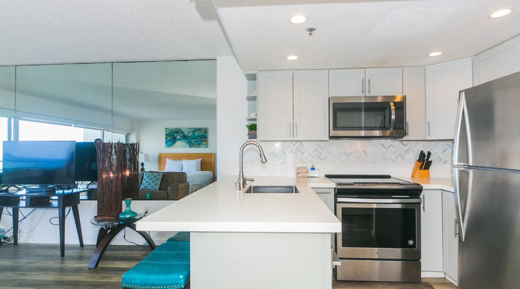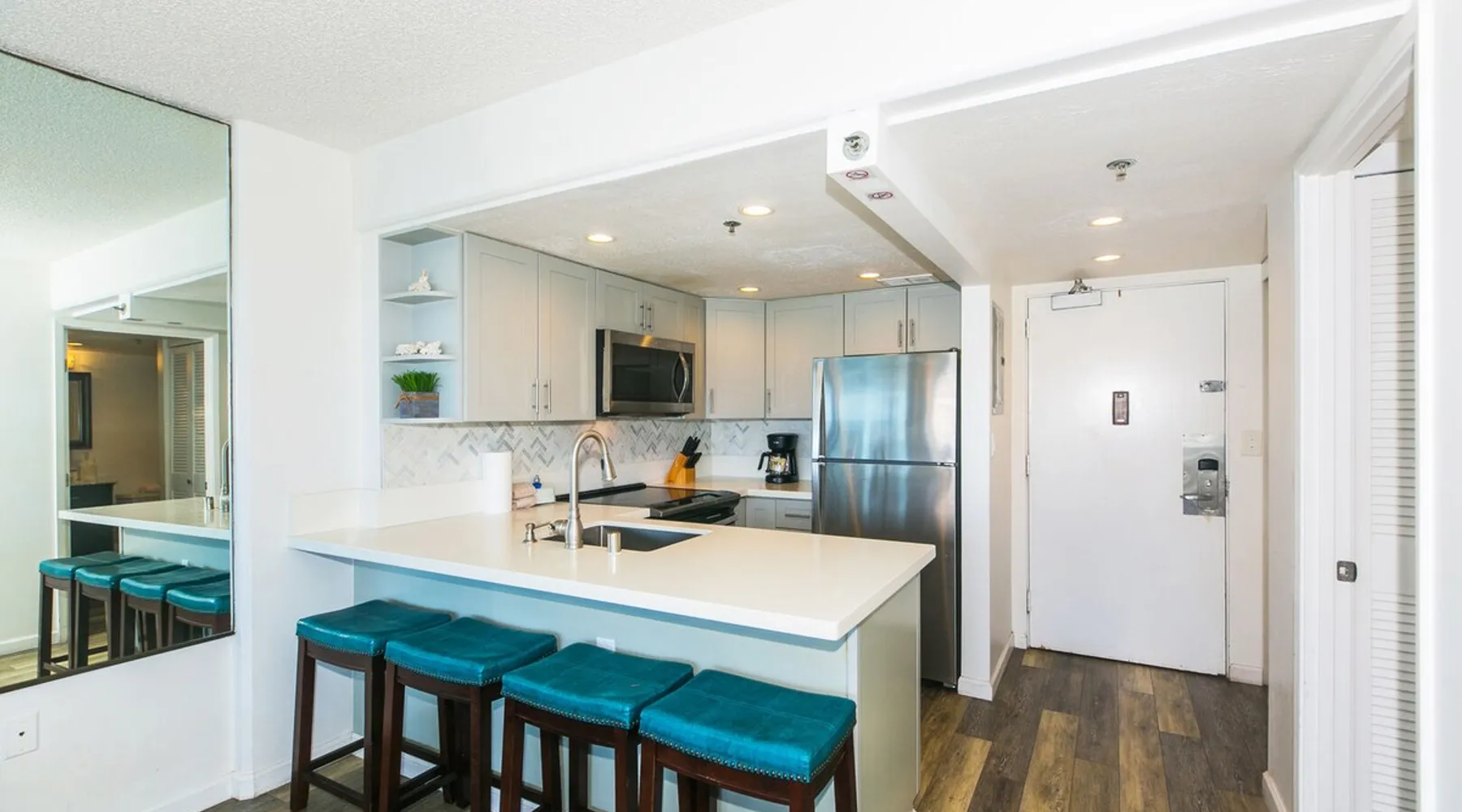 1 Bedroom Yacht Harbor View on the 18th Floor! NEWS FLASH! This condo was completely gutted & renovated with brand new stainless steel appliances and furniture! Nothing was spared when completing this upgrade, it checks off all the marks for everything you'll need to make this your home away from home while on vacation. This rare, high floor, and most sought after and in a spectacular location of the Ilikai Hotel with views of the Pacific Ocean overlooking the Ala Wai Yacht Harbor. This spacious 1-bedroom condo has 500 sq ft of living space & a huge lanai of 120 sq ft. Gaze toward the glittering blue waters & white sandy beaches. You’ll be able to watch the famous south shore surf breaks & exquisite sunsets over the harbor. The kitchen is open, spacious, and well stocked to provide you the comforts of home while traveling. This condo has a comfortable King bed and will put you right to sleep after the long days at the beach. The condo has a window AC unit to keep you cool during the warm summer nights. Cable TV & FREE high speed internet access with password protected WIFI, along with local, US and Canada phone service included. Beach Access? The walkway ramp from the hotel lobby leads directly to the Duke Kahanamoku Lagoon & the famous Waikiki beach! You'll be on the beach and in the sand in minutes! The Ilikai Hotel is well known as being the backdrop for the original Hawaii 5-0 television show, neat the Hawaii Convention Center, Ala Moana Shopping Center and-of course-the famous Waikiki Beach. The Ilikai offers two swimming pools, including a shallow pool with lounge chairs. Both pool decks along with the courtyard offers a space for you to lounge & sunbathe. There are coin-operated laundry facilities on each floor. Security is on property 24/7. Parking is available for an additional cost of $45/day, valet only or you can park at a nearby garage for $28/day. (Rates subject to change without advance notice). This building is perfect for snowbirds looking for an escape during the winter months, workers on temporary assignment, or residents relocating to Honolulu for work as the condos are fully furnished & ready for move in. Waikiki's large, white-sand beaches are minutes away. Ala Moana Beach Park is just a five-minute saunter away. World-renowned Ala Moana Shopping Center is only a ten-minute walk. There's also an abundance of night life in Waikiki! Hungry? Cinnamon’s at the Ilikai is located in the lobby & the perfect spot for you to enjoy their famous Guava Chiffon pancakes or Kalua Pig Benedict. Aroma Café offers high quality Italian coffee and great breakfast bagels, sandwiches and snacks. There is also Ku’ai Market, a convenience store that has hot/cold food, drinks, snacks and more! Nearby the Ilikai Hotel is a local favorite, Charthouse Waikiki, which overlooks the peaceful Ala Wai Yacht Harbor and offers live entertainment for a great night out! Other places you may be familiar with include Red Lobster and Outback Steakhouse nearby. Transportation? Honolulu’s island wide and top-rated public transportation system known as “The Bus” has stops bus stops in front of the Ilikai Hotel. There are always taxi’s waiting in front of the Ilikai as well. Discovery Bay, located across the street host an array of rental car options which makes it easy to rent a car for a day, week, or longer. Honolulu’s BIKI bike system has bike stations just minutes away from the Ilikai Hotel. We have been providing travelers with fully furnished condo rentals since 1965. Book with confidence as we only provide legal vacation rental in Waikiki & the surrounding areas. The condos are privately owned & constructions and/or other building shut downs may occur during your stay. Owners unfortunately have no control over the outside work and noise. The work hours are Monday – Friday, 8 AM – 4:30 PM, no weekends or holidays. We feel most guests will feel little to no impact on construction as many travelers are out exploring the island, enjoying the beaches, shopping or partaking in other activities on Oahu during these hours. If this concerns you, please speak with a vacation rental specialist for more information. Registration details 260100070419, 1837, TA-097-056-3584-01
