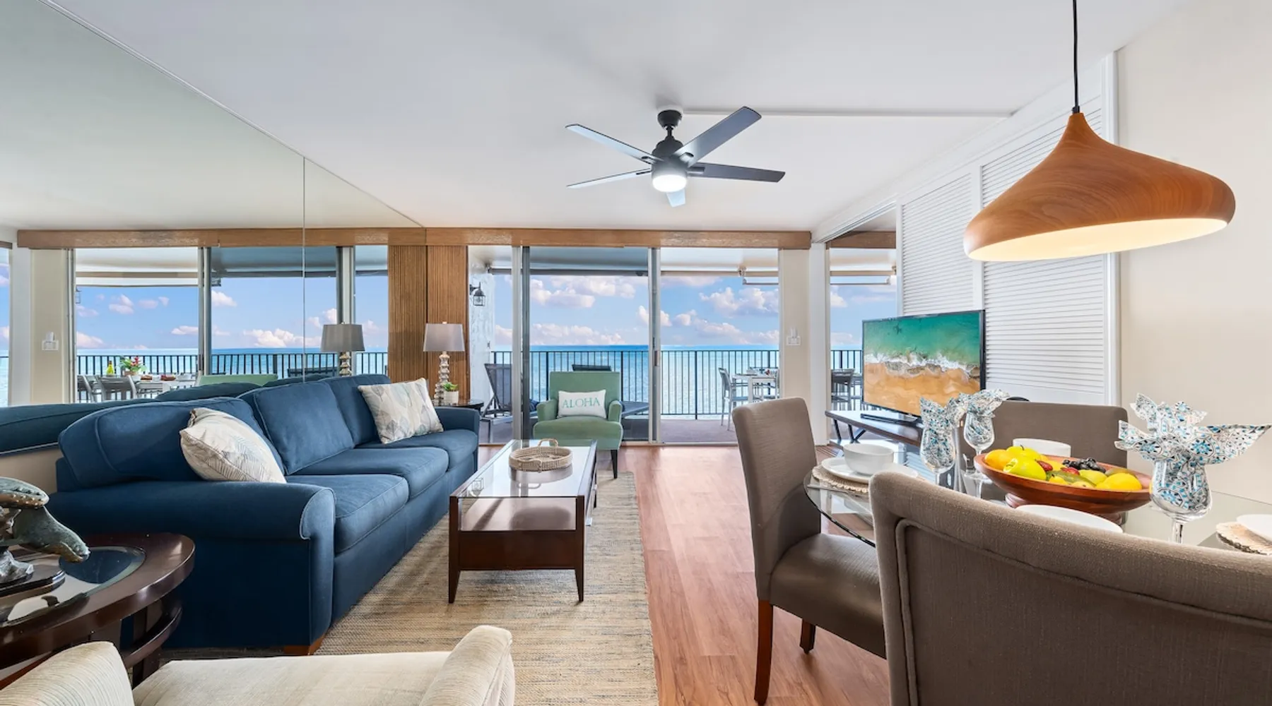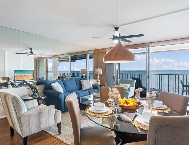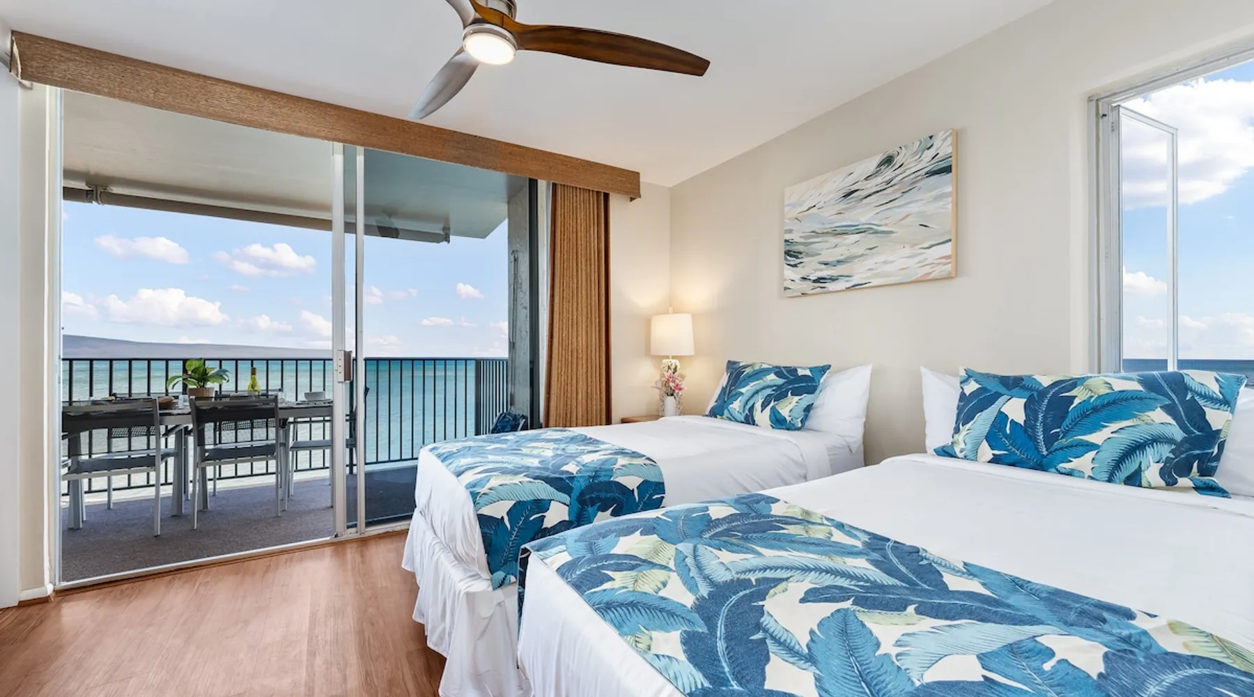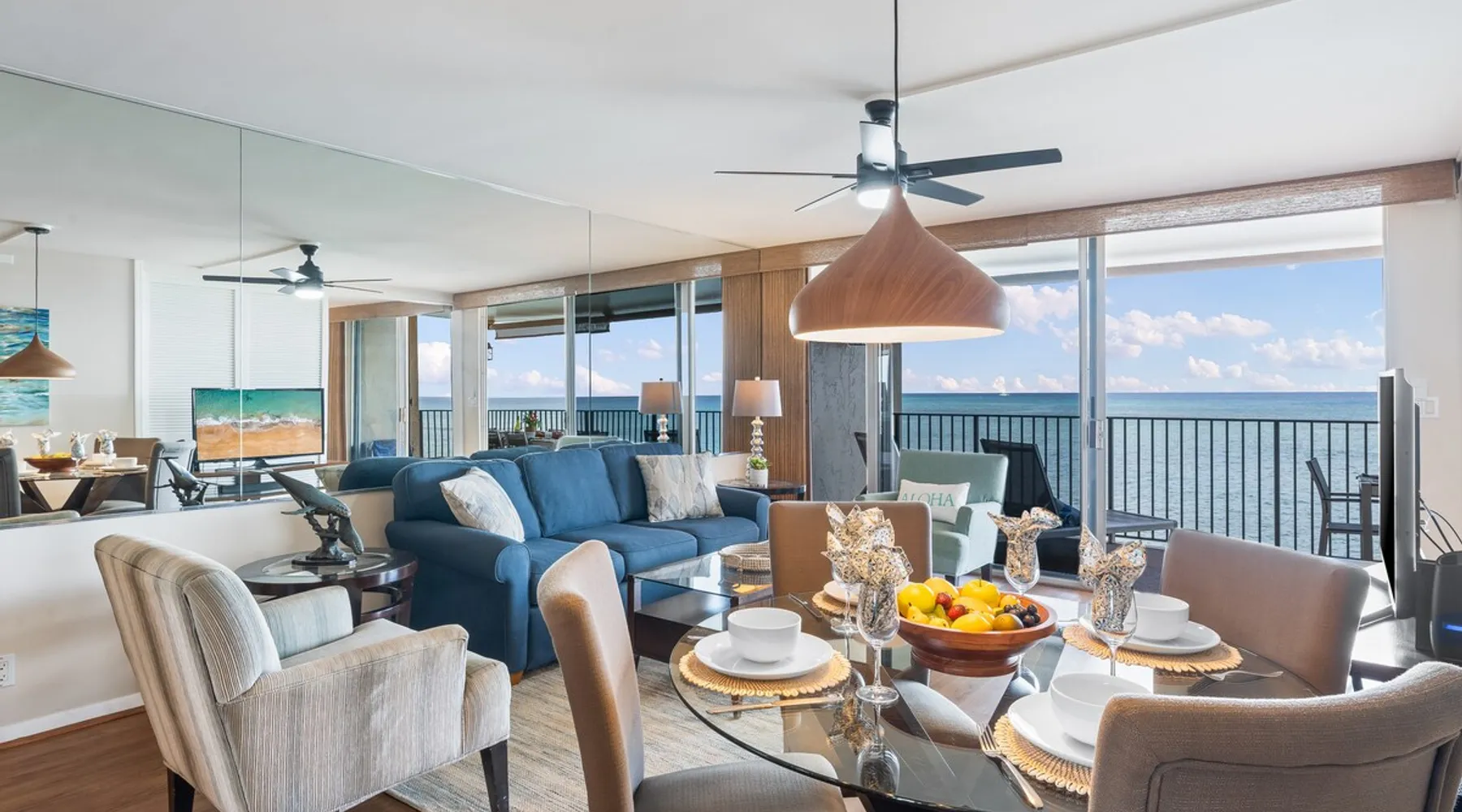 Hololani A204 Fully Remodeled OceanFront 2Bedroom with Unparalleled Ocean Views for Whale Watching and Sunsets. Your Dream Winter Escape to Paradise Came True The space FREE daily activities included with your stay value up to $570! Complimentary admission, every day of your stay*: Whale Watch (seasonal), Dinner Sunset Sail, Snorkel Sail, Alpaca Farm Tour, Pineapple Farm Tour, and All Day Electric Bike Rental. (W1) *One ticket per activity per day. Additional details provided after confirmed booking. Bright blue is all you see as you enter this amazing 2 bedroom, 2 bathroom oceanfront condo. There is a perfect view of Maui’s neighboring island of Molokai straight off of your private lanai. Ocean views are breathtaking from each bed. Hololani A204 is a spacious and comfortable vacation home in a great West Maui location. Condo Highlights: -2 Bedroom, 2 Bathroom, Sleeps 6 guests -No AC in condo -Ceiling fans throughout -Large, furnished lanai with breathtaking direct ocean and outer island views -King size bed in master bedroom -Second bedroom features 2 twin size beds (can be converted into a king upon request prior to arrival) and direct ocean views with lanai access -Sleeper-sofa in living room -Flat screen TV’s in living room and both bedrooms -Fully equipped kitchen(remodeled October 2023) -Interior dining table for 4 -Exterior dining table for 4 -New hardwood floors -2 Full bathrooms with step-in shower and combination tub/shower(remodeled April 2023) -In-unit washer/dryer Experience Hololani Oceanfront Resort located at the center of Kahana in West Maui! Minutes from all of West Maui’s best beaches, snorkel spots, restaurants, and shopping. Resort Highlights: • Ocean directly in front of the resort • Heated oceanfront pool, refurbished in 2019 along with brand new granite tiled pool deck • Outdoor BBQ grills • On-site parking included • Elevator • Walking distance to great local eateries: Dollies Pub & Cafe, Miso Phat Sushi, and Capt. Jack's Island Grill. Just around the corner from Hawaiian Village Coffee. • 5-minute drive to Kapalua Golf Course • Smoke free property No Mail Allowed: We are unable to receive USPS mail, including letters and packages at this rental. For medical-related items, please contact our Reservations Team for assistance. Minimum age of primary renter: 25 We provide the following in every unit: -First Aid Kit -High Speed Internet -Linens and towels -Iron and ironing board -Hair dryer -Beach towels, Beach chairs, and Hard sided cooler -Starter Kit: Starter supply of shampoo, conditioner, body wash, lotion, hand soap, dish soap, laundry detergent, dishwasher tabs, toilet paper, paper towels, trash bags *We don’t provide beach umbrellas, toys, or gears, such as snorkeling, due to safety, health, and hygiene risks. BEACHES & CRITTERS: The beach size in Hawaii varies month to month due to weather, heavy surf, strong currents, and tides. Due to Maui’s rural setting, you may experience the occasional rooster, as well as harmless geckos. Geckos are friendly, eat insects, and are considered good luck in Hawaii. Please don’t kill them. Although the HOA schedules regular professional pest control services, pests such as ants, roaches and rodents simply cannot be completely controlled in the tropics. Maui is in a tropical climate. If our guest spot more than the normal expected pests, we always make our best efforts to contact and work with the HOA to minimize your interactions with these pests. Any contact with such pests within or outside the unit does not constitute a breach of this Agreement or give Guest any right to any refund or rental adjustment. **We make no guarantee that properties adjacent to the Unit will be free from disturbances, including but not limited to noise or inconvenience from construction, traffic or other guests or neighbors. Any such disturbance shall not constitute a breach of this Agreement or give Guest any right to any refund or rental adjustment. By booking your stay with us, you accept that Host is not liable for any inconveniences arising from any temporary defect or stoppage in supply of water, electricity, air conditioning or plumbing that is beyond their control. Host is not liable for any loss or damage to Tenants’ personal property caused by weather conditions, natural disasters, or other events beyond their control. Tenants accept that the cable and internet service at the Rental can be sporadic and unreliable at times, and Tenant shall not be entitled to any refund of the rental fee in the event either of these services are unavailable or not operating properly during Tenants’ stay. Registration Details 430100090008, TA-091-324-0064-01