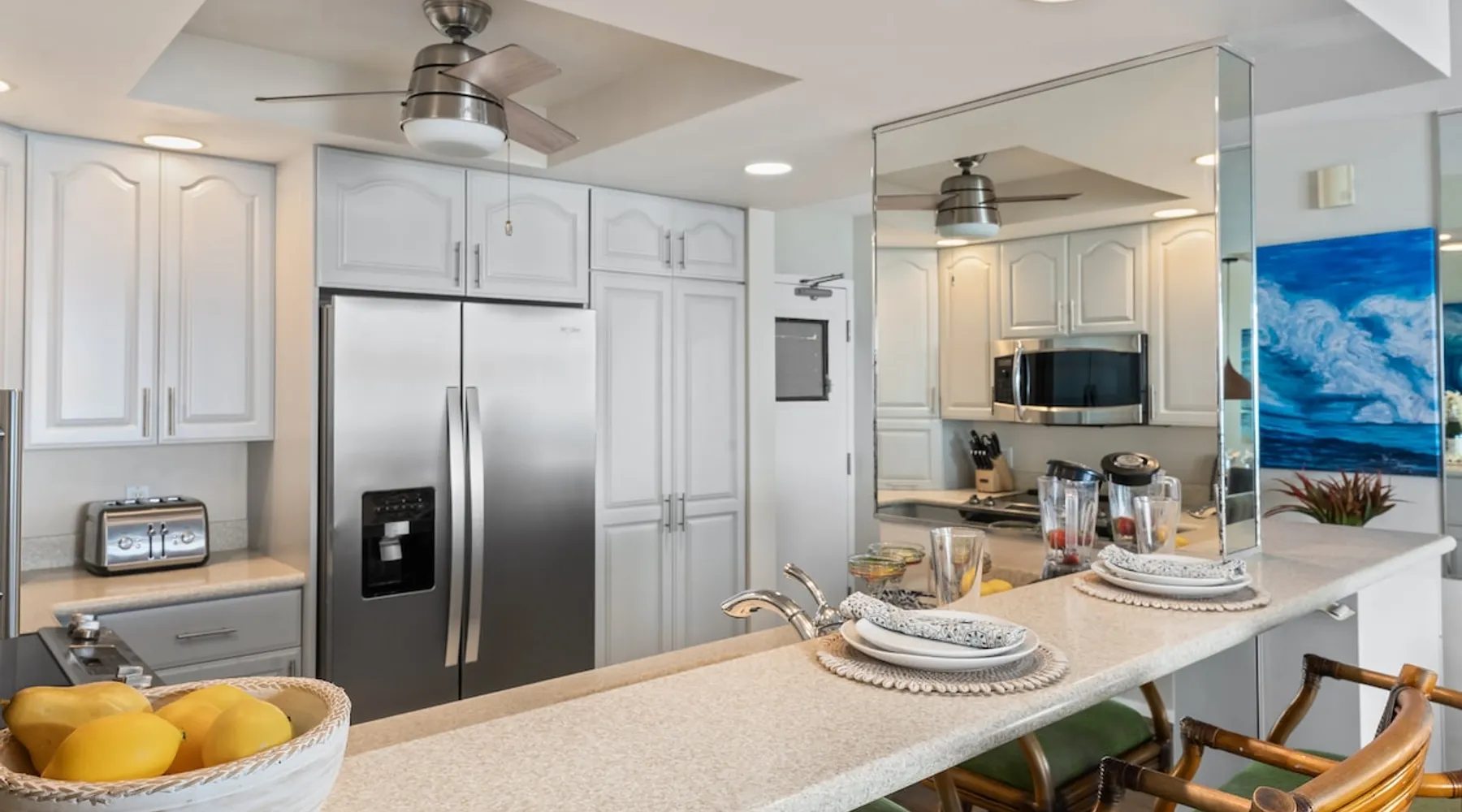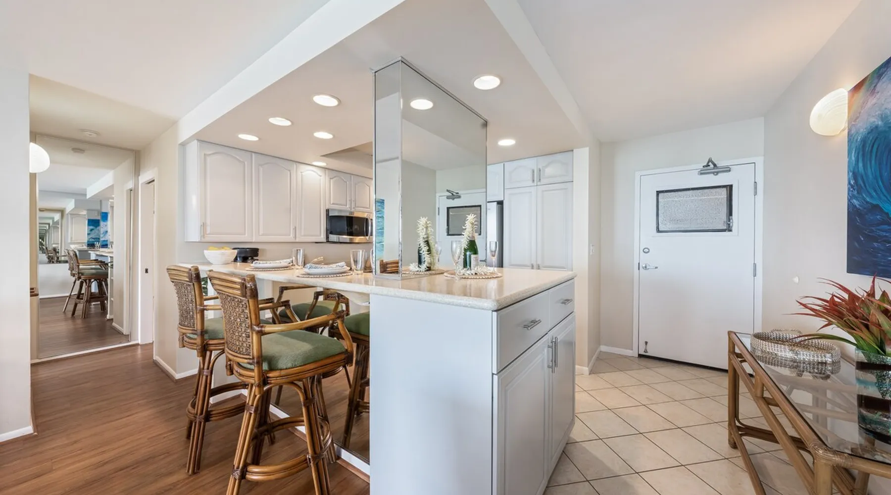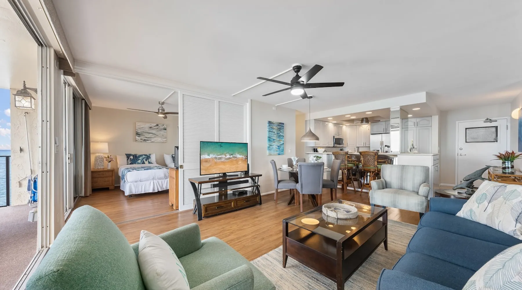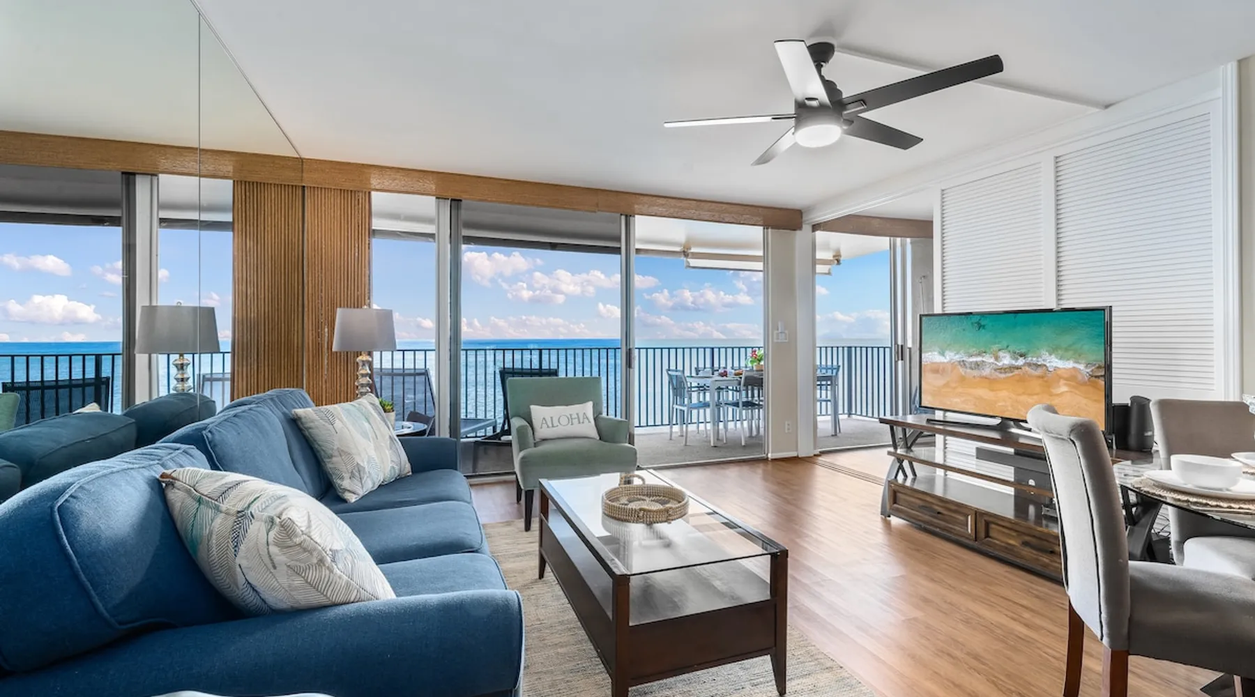 Hololani A204 Fully Remodeled OceanFront 2Bedroom with Unparalleled Ocean Views for Whale Watching and Sunsets. Your Dream Winter Escape to Paradise Came True The space FREE daily activities included with your stay value up to $570! Complimentary admission, every day of your stay*: Whale Watch (seasonal), Dinner Sunset Sail, Snorkel Sail, Alpaca Farm Tour, Pineapple Farm Tour, and All Day Electric Bike Rental. (W1) *One ticket per activity per day. Additional details provided after confirmed booking. Bright blue is all you see as you enter this amazing 2 bedroom, 2 bathroom oceanfront condo. There is a perfect view of Maui’s neighboring island of Molokai straight off of your private lanai. Ocean views are breathtaking from each bed. Hololani A204 is a spacious and comfortable vacation home in a great West Maui location. Condo Highlights: -2 Bedroom, 2 Bathroom, Sleeps 6 guests -No AC in condo -Ceiling fans throughout -Large, furnished lanai with breathtaking direct ocean and outer island views -King size bed in master bedroom -Second bedroom features 2 twin size beds (can be converted into a king upon request prior to arrival) and direct ocean views with lanai access -Sleeper-sofa in living room -Flat screen TV’s in living room and both bedrooms -Fully equipped kitchen(remodeled October 2023) -Interior dining table for 4 -Exterior dining table for 4 -New hardwood floors -2 Full bathrooms with step-in shower and combination tub/shower(remodeled April 2023) -In-unit washer/dryer Experience Hololani Oceanfront Resort located at the center of Kahana in West Maui! Minutes from all of West Maui’s best beaches, snorkel spots, restaurants, and shopping. Resort Highlights: • Ocean directly in front of the resort • Heated oceanfront pool, refurbished in 2019 along with brand new granite tiled pool deck • Outdoor BBQ grills • On-site parking included • Elevator • Walking distance to great local eateries: Dollies Pub & Cafe, Miso Phat Sushi, and Capt. Jack's Island Grill. Just around the corner from Hawaiian Village Coffee. • 5-minute drive to Kapalua Golf Course • Smoke free property No Mail Allowed: We are unable to receive USPS mail, including letters and packages at this rental. For medical-related items, please contact our Reservations Team for assistance. Minimum age of primary renter: 25 We provide the following in every unit: -First Aid Kit -High Speed Internet -Linens and towels -Iron and ironing board -Hair dryer -Beach towels, Beach chairs, and Hard sided cooler -Starter Kit: Starter supply of shampoo, conditioner, body wash, lotion, hand soap, dish soap, laundry detergent, dishwasher tabs, toilet paper, paper towels, trash bags *We don’t provide beach umbrellas, toys, or gears, such as snorkeling, due to safety, health, and hygiene risks. BEACHES & CRITTERS: The beach size in Hawaii varies month to month due to weather, heavy surf, strong currents, and tides. Due to Maui’s rural setting, you may experience the occasional rooster, as well as harmless geckos. Geckos are friendly, eat insects, and are considered good luck in Hawaii. Please don’t kill them. Although the HOA schedules regular professional pest control services, pests such as ants, roaches and rodents simply cannot be completely controlled in the tropics. Maui is in a tropical climate. If our guest spot more than the normal expected pests, we always make our best efforts to contact and work with the HOA to minimize your interactions with these pests. Any contact with such pests within or outside the unit does not constitute a breach of this Agreement or give Guest any right to any refund or rental adjustment. **We make no guarantee that properties adjacent to the Unit will be free from disturbances, including but not limited to noise or inconvenience from construction, traffic or other guests or neighbors. Any such disturbance shall not constitute a breach of this Agreement or give Guest any right to any refund or rental adjustment. By booking your stay with us, you accept that Host is not liable for any inconveniences arising from any temporary defect or stoppage in supply of water, electricity, air conditioning or plumbing that is beyond their control. Host is not liable for any loss or damage to Tenants’ personal property caused by weather conditions, natural disasters, or other events beyond their control. Tenants accept that the cable and internet service at the Rental can be sporadic and unreliable at times, and Tenant shall not be entitled to any refund of the rental fee in the event either of these services are unavailable or not operating properly during Tenants’ stay. Registration Details 430100090008, TA-091-324-0064-01