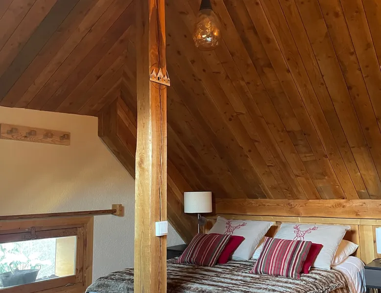 This south-east facing duplex of 70 m2, clad in wood with all modern comforts includes: living room dining area ( table with max extension cords 8 people) fully equipped kitchen a closed bedroom ( 1 double bed) a large mezzanine with 3 beds (1 double bed + 2 single beds) a bathroom with bathtub on the rendezvous a separate toilet at the rendezvous 2 balconies including a Tropezienne with splendid views of the mountains. WiFi access and free parking The space If you dream of a quiet stay, in the heart of the authentic hamlet of Clos Sorel, you will enjoy this comfortable and well-equipped duplex, in a mountain chalet, with magnificent views facing the mountains. Guest access It is 180 m from the Molanès intermediate cable car. Ski school and equipment rental shop accessible by gondola. Free shuttle to reach the heart of the resort . Other things to note Unusable chimney (condemned duct)