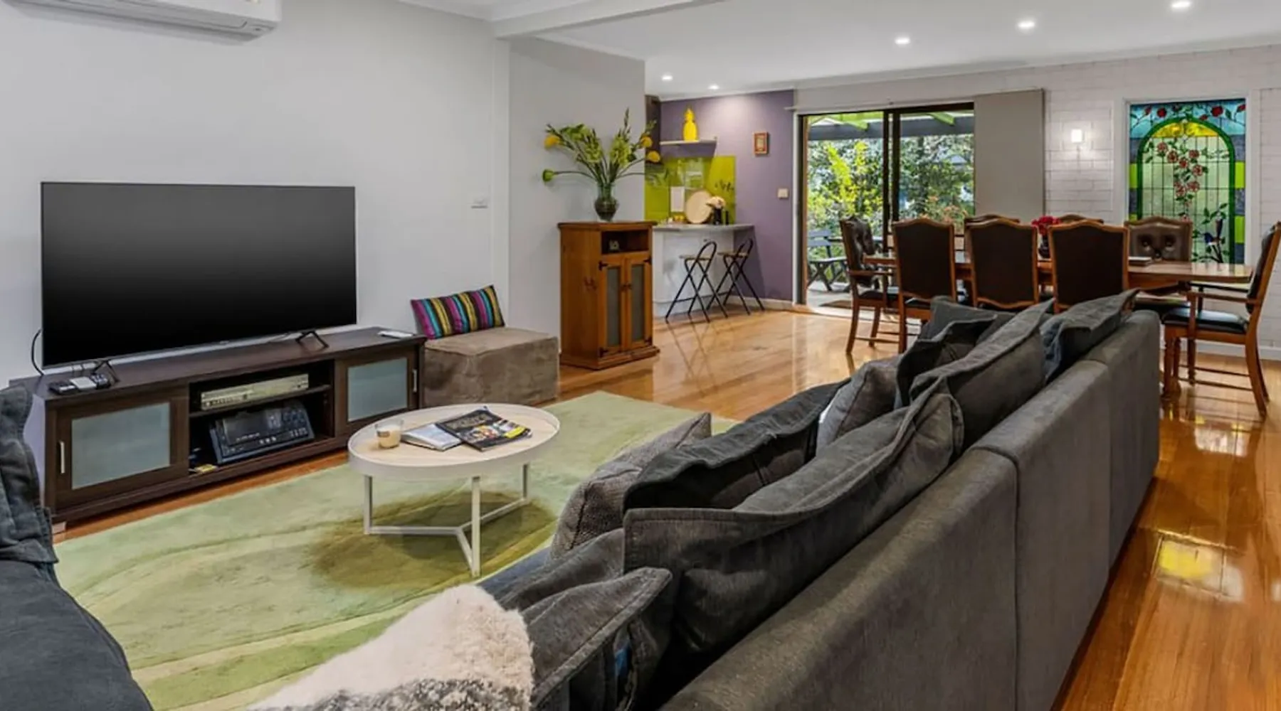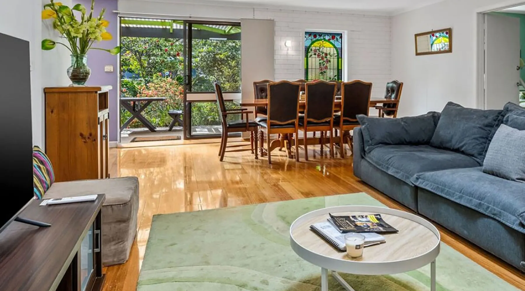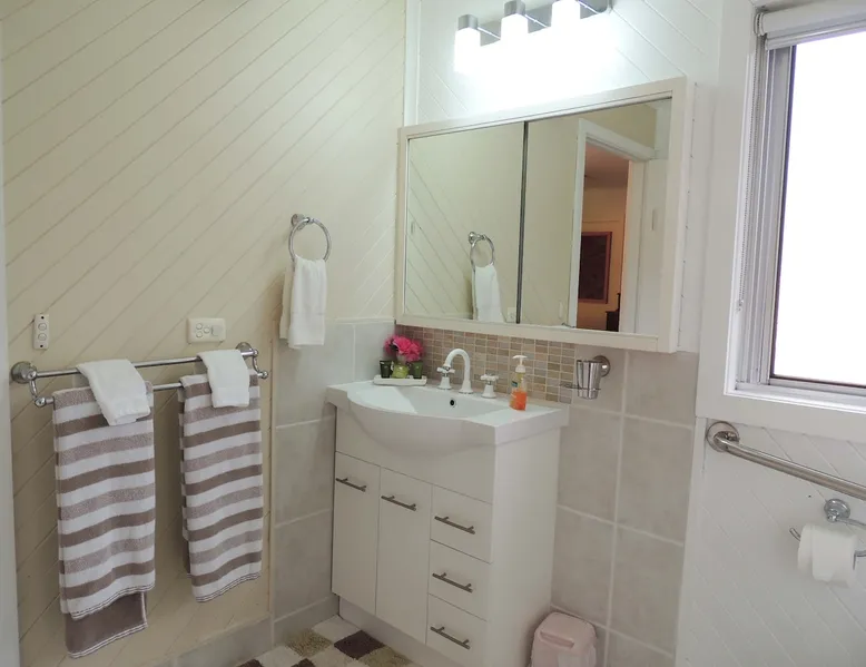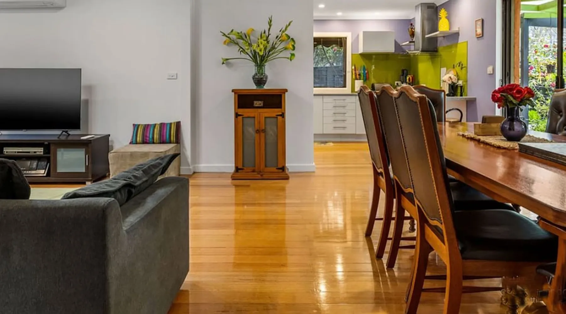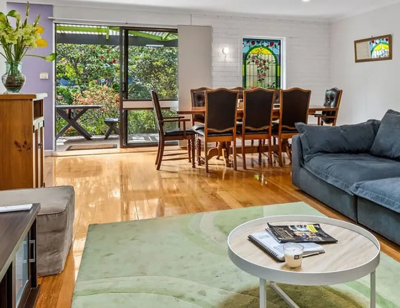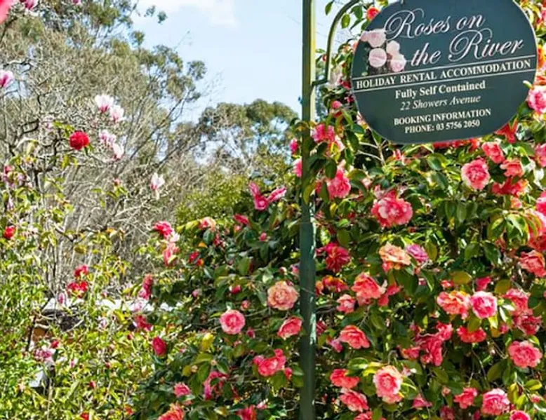 Roses On The River is a few minutes walk along the Ovens River Canyon Walk to access restaurants and family activities. The three bedroom fully self contained accommodation is great for couples, adventurers, business travellers, and families. The property is wheelchair and cycle friendly. Dine in, using the master chef style kitchen or enjoy the local eateries. Enjoy the relaxing garden, have a BBQ, swim in or sit by the mountain river adjacent. Free WiFi and smart TV keeps you connected. The space Roses On The River is situated on the Ovens River, a three minute walk to Bright township along the scenic Canyon Walk. Roses on The River is set in an established rose garden with absolute river frontage. The tariff is based on two adults using the master bedroom only. If requiring a bed in the second or third bedroom an extra tariff per bed per night applies. The spacious and cosy three bedroom house is fully self contained. Roses on The River provides a complete opportunity to relax, rejuvenate and enjoy the beauty of Bright and surrounds. "When was the last time you didn't stop to smell the roses?" Roses On The River now provides you with that opportunity. A wheel chair and cycle friendly property. A two night minimum stay is required with all bookings. Three nights over long weekends. Guest access Accommodation Features The tariff is based on two adults using the master bedroom only. If requiring a bed in the second or third bedroom an extra tariff per person, per bedding per night applies. Master Bedroom:- A Queen size bed in a spacious carpeted room with all linen, cosy pillows and blankets, large screen TV, DVD. Ensuite with shower, vanity and toilet - all providing wheelchair access. Mirrored built in robes and sofa. Second Bedroom:- A queen and single combined bunk bed and a stand alone single bed in a light and restful room. Built in robes, TV, all linen with doonas and blankets. A high chair and porta cot can be provided. Third Bedroom:- A single bed with built in robe, side table and lamp. Living:- Spacious open living with combined eight seat dining on polished hardwood floors. Split system heating and air conditioning. Cosy and large lounge suite. Wide screen smart television, DVD/VCR, CD & Ipod player. Comfortably furnished with a large seating and relaxing lounge and complimentary decor. Free Wifi keeps you connected and access to Netflix or Stan using your own account. Kitchen:- Fully appointed with electric stove and oven, microwave, fridge, freezer and dishwasher. All utensils and cooking implements. Coffee plungers , toaster and kettle. Breakfast bar, stools and ample cupboard space. Laundry:- Fully automatic washing machine, dryer, iron and board. Bathroom/Toilet:- Shower, vanity and separate toilet. Front Patio: Outdoor setting for dining and relaxing in the established garden. BBQ at rear deck Parking:- Secure large garage and carport. A Wheel Chair Friendly property and facilities. Complimentary sparkling wine and chocolates greet your arrival. Other things to note With swimming, fishing or river relaxing adjacent to the property, all guests can delight in the absolute river frontage. Walk through the rose garden to "Farrington's Poplars" that line the scenic Canyon Walk that takes you safely and unhindered into the Bright township to shop or dine. With a myriad of activities, including golf, canoeing, gold panning, bush walking, snow skiing and boarding and the joys of autumn, winter & spring colours, the Alpine region of Bright and surrounds offers a truly four season experience. Easy driving distance to enjoy the vistas and National Park of Mt. Buffalo. Roses on the River provides the comfort of home living for adults and any accompanying children. Wheel Chair accessible and friendly. Cycle friendly with our natural spring water provided for your refreshment. A two night minimum stay is required for all bookings. Three nights over long weekends.