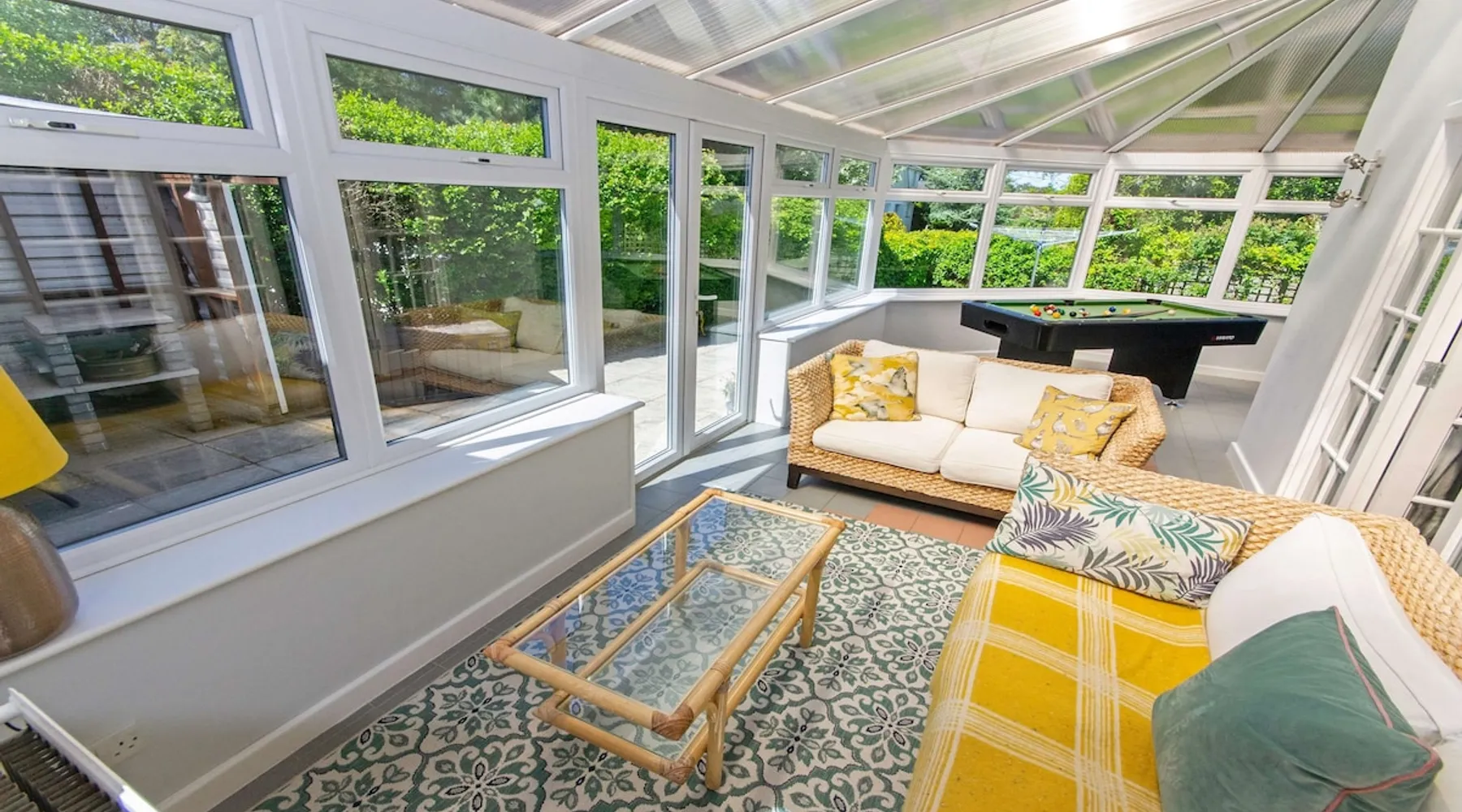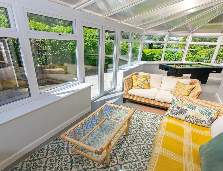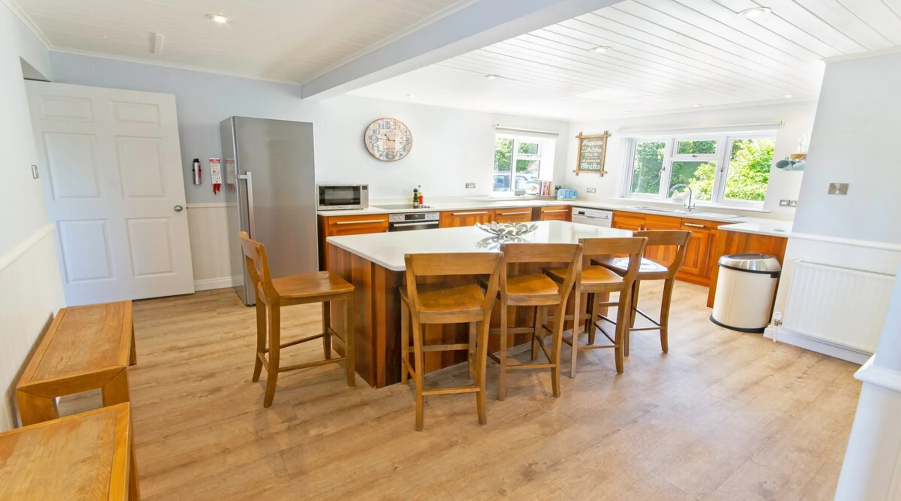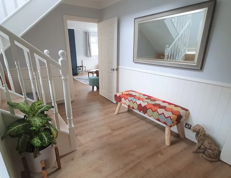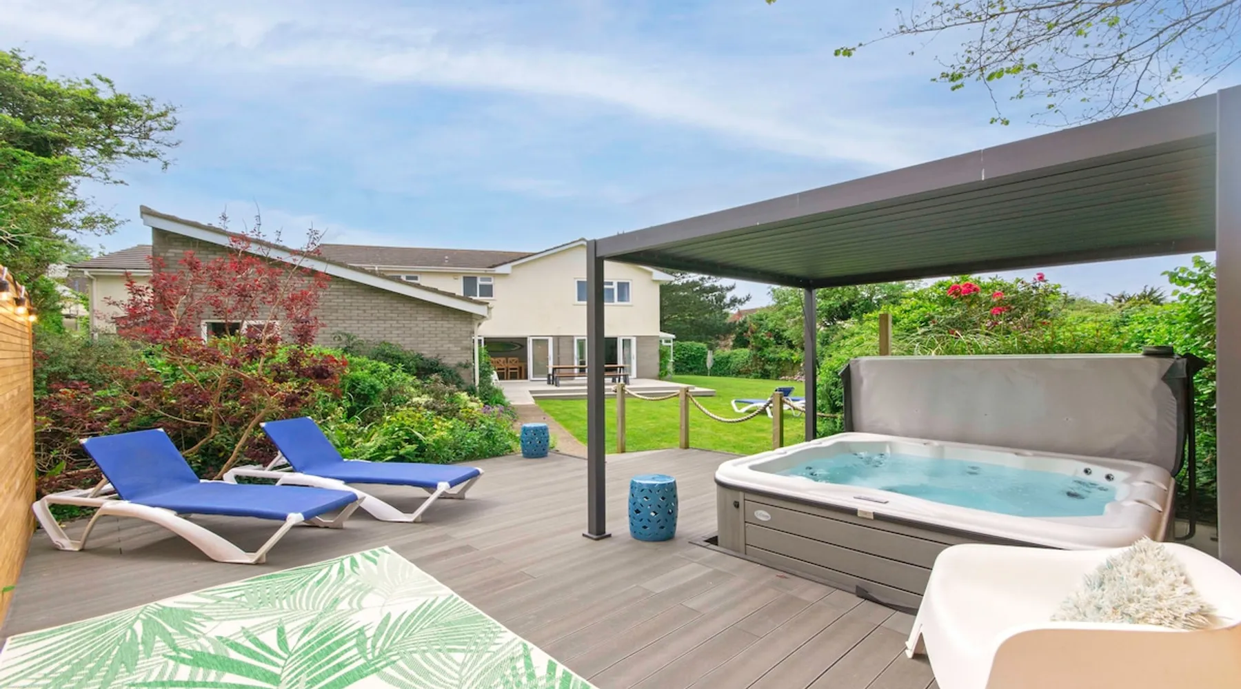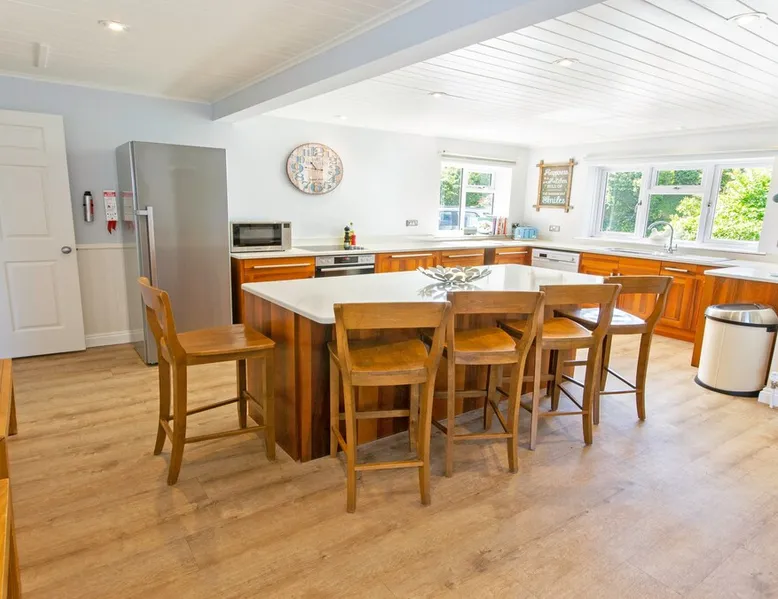 Introducing LADYWELL by CROYDEHOLIDAYS - Designed with family life in mind, this detached cottage that sleeps 12 is a stylish property offering something for everyone. Children will enjoy exploring the large enclosed garden, pool table and cinema room, with games console, whilst parents enjoy al fresco dining with the use of the pizza oven or the bubbles of the *hot tub. The space Inside, the house is finished to a beautifully high standard, you will discover a SKY Q Multiroom TV with sports and Netflix and a pool table. Ladywell makes the perfect place to dine and enjoy long leisurely meals made easy with the well equipped kitchen to cook up a culinary masterpiece and the dining room comfortably seats twelve so you can gather the group for that catch up dinner at last. For those days that are all about the beach enjoy a leisurely short stroll along the footpath to Croyde beach, that offers great surfing opportunities and time to unwind before returning home to relax. If you are looking for the perfect family holiday cottage that sleeps 12 with hot tub and that added dash of luxury, Ladywell is the choice for you. (Hot tub charges apply) PROPERTY Living room provides comfortable leather seating with log burner and a large flat screen SKY TV (sky package plus sports) Features include; Netflix movies with log in supplied, DVD player, selection of books, DVDS and iPod dock. French doors lead out onto the decked terrace and garden. Doors at the other end of the living room lead to the sunny L shaped conservatory with additional seating, board games and a large football table. Open plan kitchen, breakfast/dining room is well equipped for a large family and offers; 2 electric ovens, ceramic hob, dishwasher, DAB radio, toaster, coffee machine and large fridge. The centre island is a breakfast bar with 4 bar stools and opens into a beach themed dining room with large table and seating for 12. The utility room houses an under counter freezer, washing machine, tumble dryer and additional sink. Separate W.C and washbasin. The TV room with a large blue corner sofa, LCD flat screen TV with a DVD player and a Wii console with games and board games! • Bedroom Six - Superking sized bed (Twin on request) located on the ground floor. En-suite shower room with WC and washbasin. FIRST FLOOR; • Bedroom Two - Kingsize bed and beautiful views over the countryside. • Bedroom Three - Twin beds with bedside unit and built in wardrobe. • Bedroom Four – Bunk bed • Bedroom Five - Twin beds with bedside unit and chest of drawers. • Master bedroom - Super kingsized bed in a generously sized room with views over the countryside. En-suite with w.c, washbasin and shower cubicle. Family bathroom with a white bathroom suite; bath with shower over, W.C, washbasin, heated towel rail and mirror. Shower room with a white bathroom suite with a large shower cubicle, w.c, washbasin and mirror. OUTSIDE SPACE Large enclosed lawned garden which wraps around the side of the property with well-maintained shrubs and flowers. Enjoy 2 decked terraces with a selection of tables, chairs and sun loungers for 'al-fresco' dining with a built in BBQ or try your pizza skills with the brick built pizza oven! An outside shower for washing off after a day spent at the beach and storage for boards/bikes.For those more lazy afternoons relax in the jacuzzi hot tub*! PROPERTY NOTES: • Driveway parking for 4 cars • Hot tub not to be used after 10.30 PM • We regret we are unable to accept bookings that are; all adult groups under 23 years of age. • To comply with Health & Safety hot tubs are emptied and re-filled. Therefore, we are unable to provide any guarantees that the hot tub will be up to full working temperature until the morning after arrival. • We would respectfully ask that dog(s) are not permitted on furniture, in bedrooms, left unattended nor to cause a disturbance to neighbours. INCLUDED: • Heating, Electric and water • Bed linen (2 Super king size, 1 kingsize & 6 singles) • Bath mats, Tea towels and Ovenglove • Bath towels (Per person) (Max 12) • Hand towel per bathroom (5) • High Chair • Stair Gate • Travel Cot (Excludes linen) BOOKING DETAILS: It is not possible to add extras when booking via an advertising channel like this one, therefore the costs of any extras will not be included within the price shown, these must be requested at the time of booking and paid for directly with Croyde Holidays Agency. By making a booking via this channel we will require some extra booking details from you, this will be requested via email at the time of booking in order for us to finalize your provisional booking request. HOLIDAY EXTRAS • Pet Charge - £40 per dog per week/short break (Max 4) • Hot Tub Usage - £200 (4-7 nights) • Hot Tub Usage - £150 (short breaks 2-3 nights) • Late Departure (6pm) - £120 (short breaks departing on a Sunday) • Twin Beds - Request ground floor king into twin beds