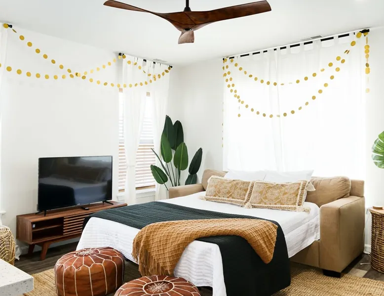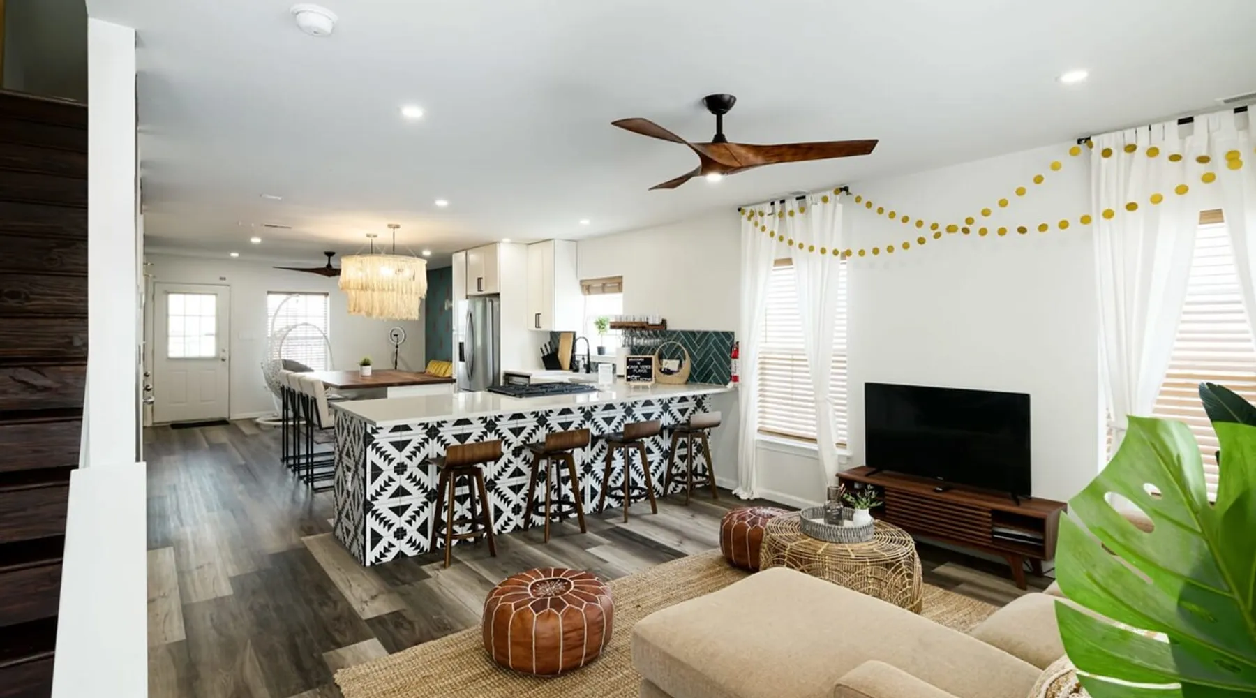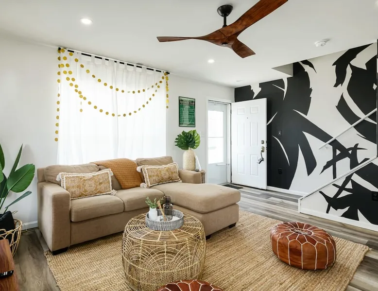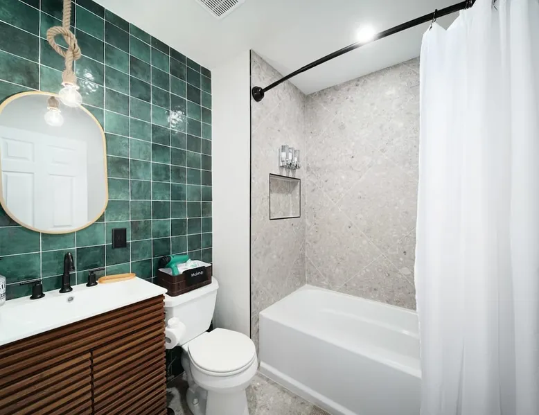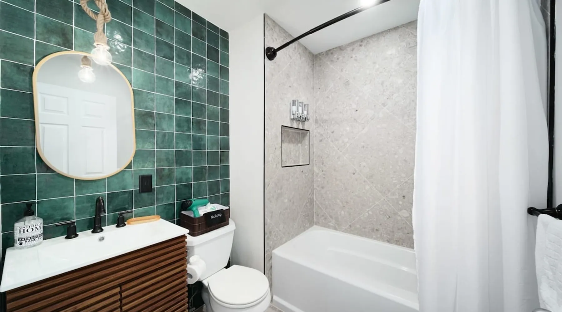 Yes, your Airbnb dreams have come true! Another Playce Collective boutique designer home! Welcome to Casa Verde Playce! Completely renovated from top to bottom in 2020, this uniquely designed home is an amazing Playce to have a memorable stay! Come enjoy the tasteful, vibrant decor and comforts at Casa Verde! Our prices are up to date and non-negotiable. Our houses are unique and unlike anything else in AC. Respectfully, requests for negotiations will not be answered. IF YOUR DATES ARE BOOKED, PLEASE ASK ABOUT OUR OTHER LISTINGS. LIVING ROOM: -Offers a smart tv (There is no cable for the TVs, just streaming apps) and comfortable seating. KITCHEN: -Fully equipped & great for entertaining and making meals. -There is a powder room off the kitchen. DEN: -Features a warm vibe with more seating to hang out. BACKYARD: -Fully fenced in, with a charcoal grill. -Please note that we do not supply charcoal. Guests must supply charcoal, supplies and please dispose of used charcoal. PARTY ROOM: This is a garage space (You may not park in here or remove furniture. We’ve spent a lot of time designing and furnishing this garage space). SLEEPING ARRANGEMENTS: -This house sleeps 9. -Please review bedding layouts when considering space and comfort. MASTER BEDROOM: -En suite full bathroom -1 Queen Sized bed -Futon MIDDLE BEDROOM: -2 Twin Sized beds BACK BEDROOM: -1 Queen Sized bed DEN: -1 futon LIVING ROOM: -Sleeper Sofa PETS: We will consider pets but they must be pre-approved, meet our insurance guidelines, and there is a $40/night fee. You are fully responsible for damages, stains, and abiding by our pet rules. Not all breeds are allowed. Failure to follow rules can result in loss of security deposit and/or immediate eviction. LOCATION: -Please keep in mind this is a city so there is potential for noise and other similar issues. Be aware of your surroundings. -This house is 1 block from the boardwalk & approximately 3.5 blocks to the inlet and ocean beach entrances. LARGER GROUPS: -This house sleeps 9. -Please review bedding layouts when considering space and comfort. -If you have groups larger than 9 people please consider renting 2+ houses. -Rockwell, Boho, Casa Verde, and Paloma Playce are all within a few steps of each other on the same street. Boho and Casa Verde actually adjoin. -The largest house, Bad & Beachy Playce, is a 4 bedroom 3 bath with ocean views, sleeps 13-16, and is a block and a half from this property. Check out our other listings on IG or #PlayceCollective BOOK WITH US and unlock discounts and special offers exclusive to Cozy Cohost guests. Take advantage of all that Atlantic City has to offer and enjoy savings at top local spots including famous restaurants, night clubs, spas, coffee shops, distilleries, breweries, boat tours, bike rentals, mini golf, and more... ACCESS & ENTRY: -Guests will have access to the entire house, garage (bonus room), yard and driveway. -Please be mindful that this is an attached unit. -Please be respectful to the neighbors and the surrounding homes and businesses. -Please note that check-out time is promptly at 11:00 AM. Failure to check out by this time may result in a $100 fee per hour. We appreciate your cooperation in ensuring a smooth transition for our next guests. Thank you for your understanding! KEYLESS ENTRY: -There is keyless entry. Your host will provide you with the door code approximately one hour prior to check in the day of your trip. PARKING: -There is driveway parking for 2 vehicles. ADDITIONAL PARKING: -There is free street parking on Grammercy Place in front of the house. -Street parking is on a first come, first serve basis! -Please be careful to not block neighbors driveways or the fire hydrant. -Guests are responsible for city street parking compliance; read & follow signage to avoid parking tickets. -We are not responsible for parking tickets due to negligence. MAIL: -Do not send packages to the property via mail as we do not have access to the locked street mailboxes for the property. -If there is something of priority that you need shipped please reach out to us directly for alternative options. -We are not responsible for any items shipped to the property. ENVIRONMENTAL NOTES: -Property located in a city environment; potential for noise from cars or foot traffic. SECURITY: -The home is protected by exterior ring camera security. This property is Hosted and operated by Cozy Cohost LLC, a short term rental management company based in Atlantic City. The inlet neighborhood is great area of Atlantic City. Right near Gardner's Basin with pretty landscaping, well kept properties and close to the inlet boardwalk. Still a short distance the main boardwalk, Casinos, piers, and the Ocean beach! -Cedar Market is 1/2 block away and has all of the necessities in case you forgot anything. -Gilchrist's is an AMAZING brunch spot (closes at 2) on the water, known for their famous pancakes -Kelsey & Kim's is 2 blocks away- delicious soul food -Little Water Distillery and The Seed Brewery is on the same street about .4 mi away for fun/different experience APPROXIMATE DRIVE TIMES TO LOCAL ATTRACTIONS: 1-10 mins to The Beach and Boardwalk, depending on the desired vicinity 2 mins to Ocean Resort and Casino 3 mins to Showboat Hotel 5 mins to Hard Rock Casino/Steel Pier 7 mins to Borgata 7 mins to Harrah's 7 mins to Golden Nugget 7 mins to Resorts 8 min to The Walk Tanger Outlet 8 mins to AC Convention Center 8 mins to the AC train and bus terminal 8 mins to AC Expressway 8 mins to Ballys and Caesars 10 mins to Boardwalk Hall 12 mins to Tropicana 14 mins to Stockton University 24 mins to Atlantic City International Airport There is a 2 car driveway and free street parking but can be limited. The closest 2 beaches are inlet side (smaller beach, smaller waves, has bathrooms, allows grills) or the ocean side (at N New Hampshire & Oriental Ave) both are about 3 blocks to the entrance. The boardwalk is just a block away and can be walked by crossing over 