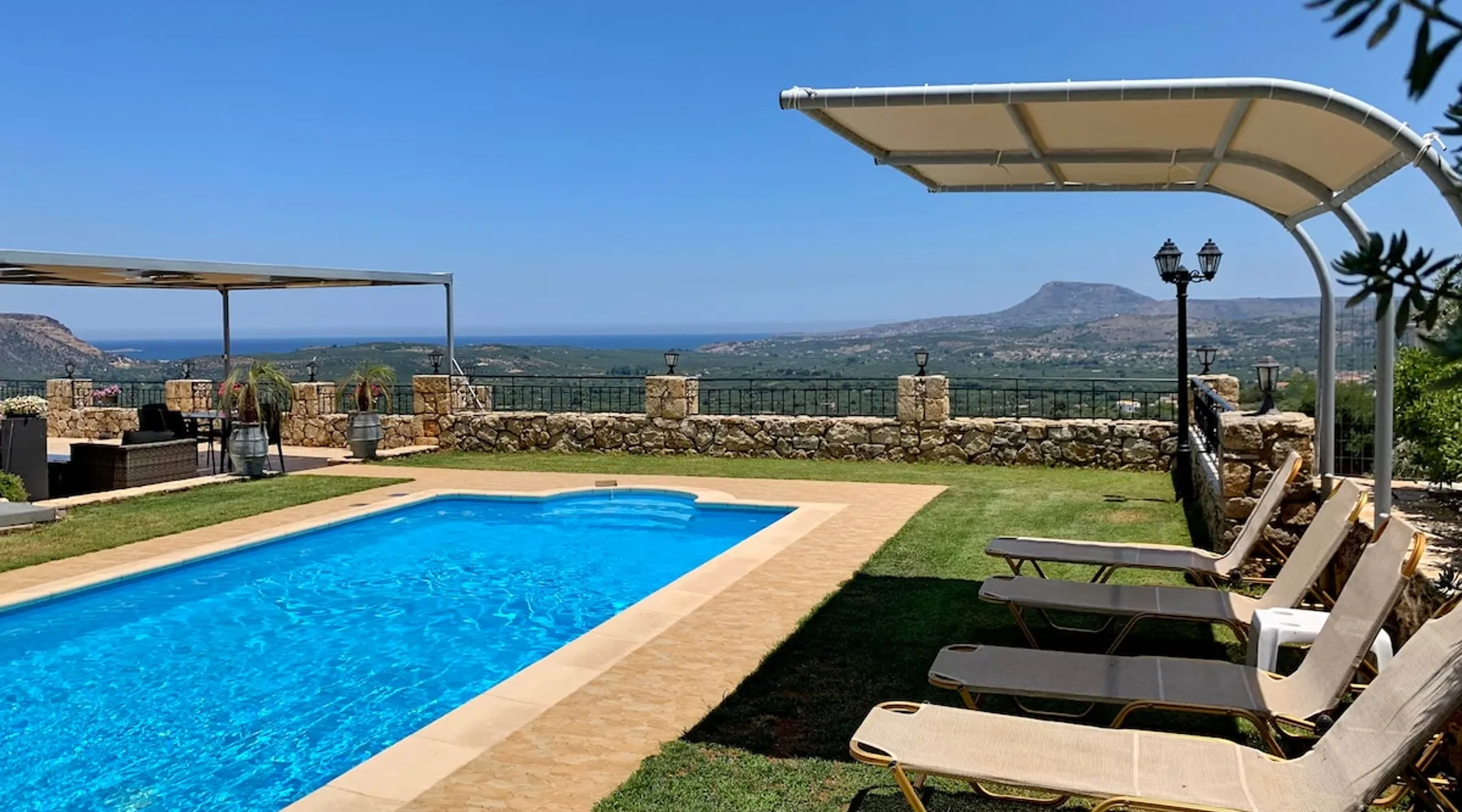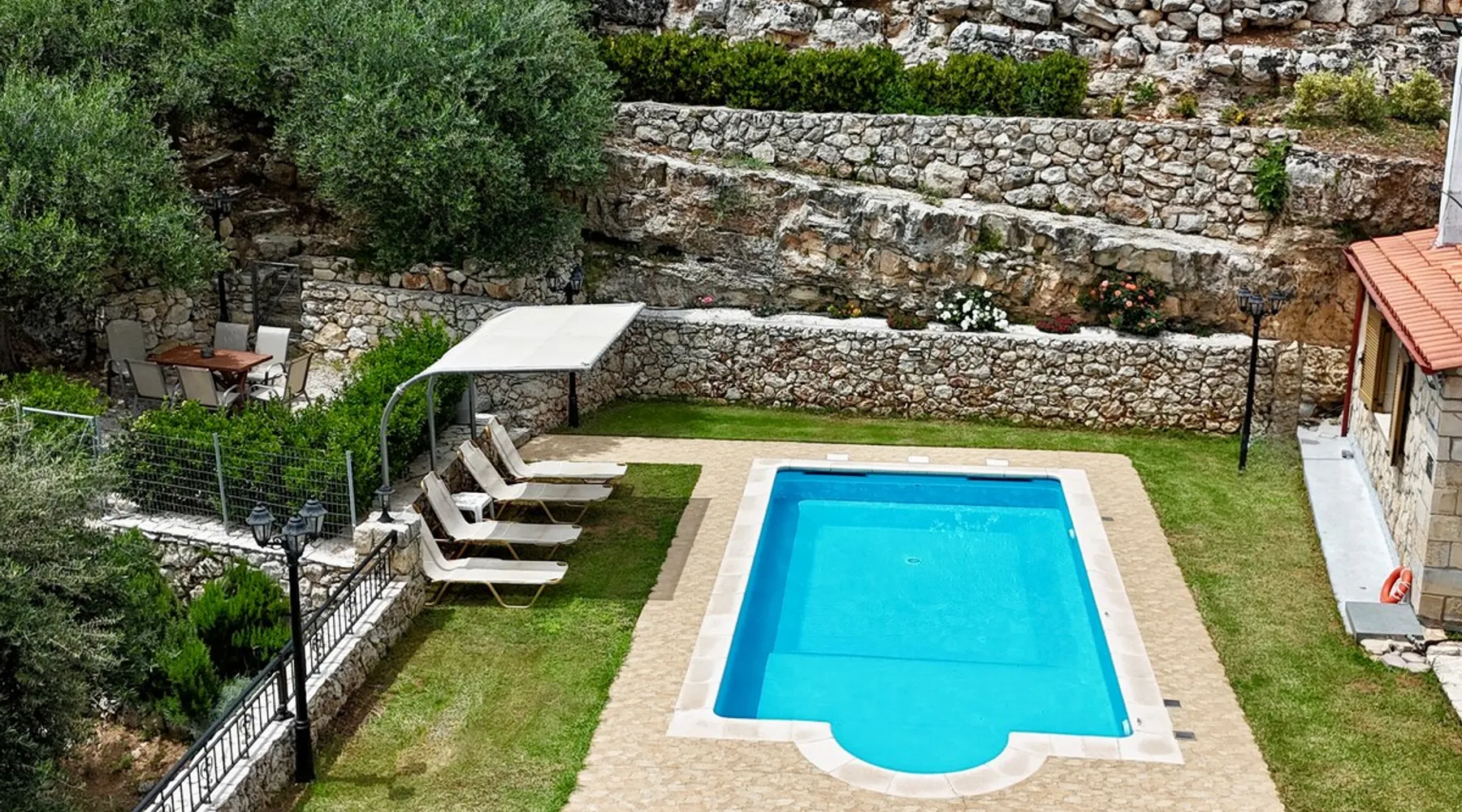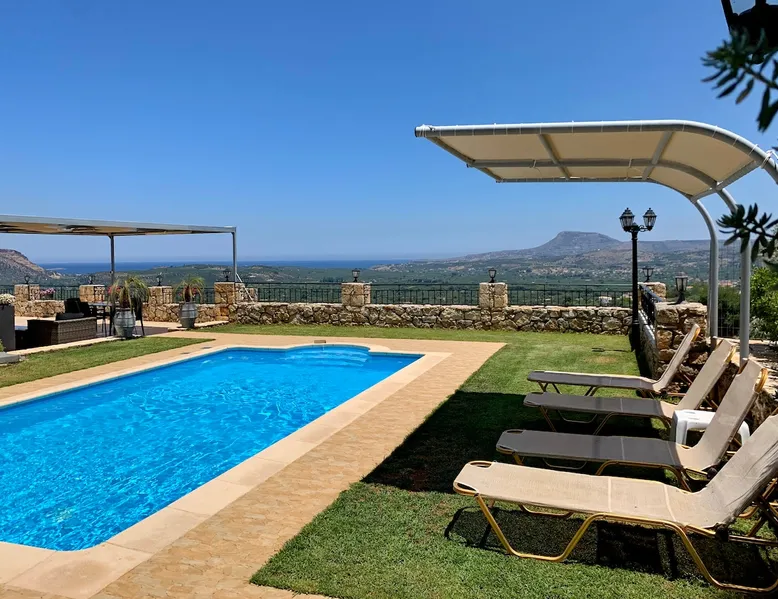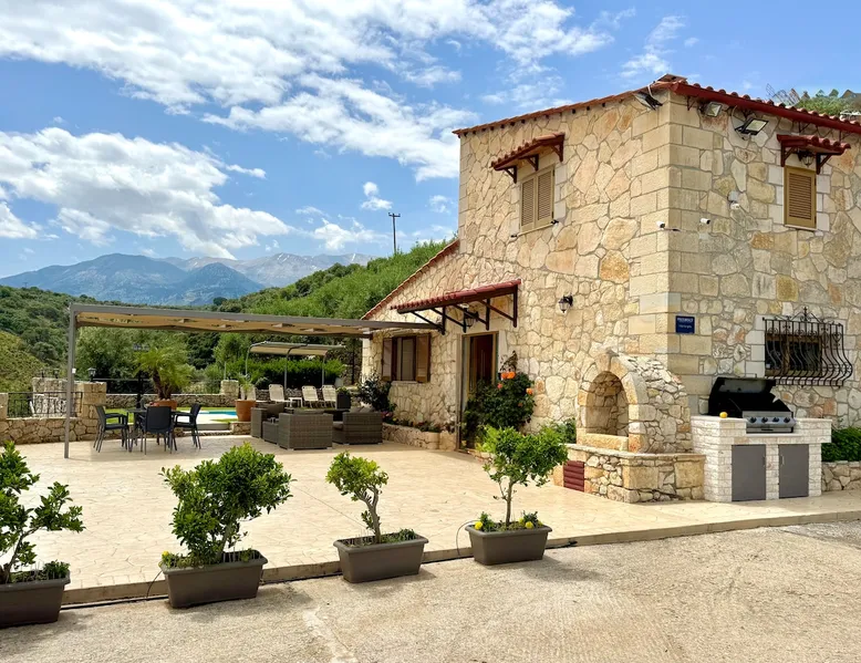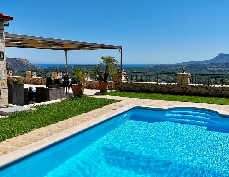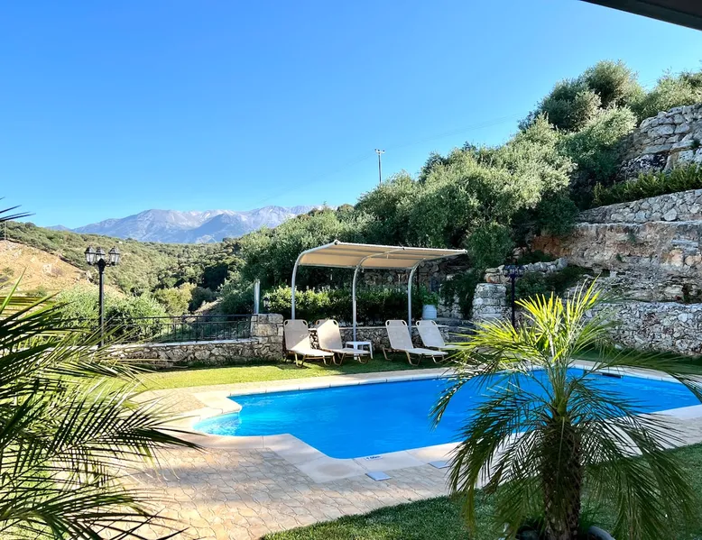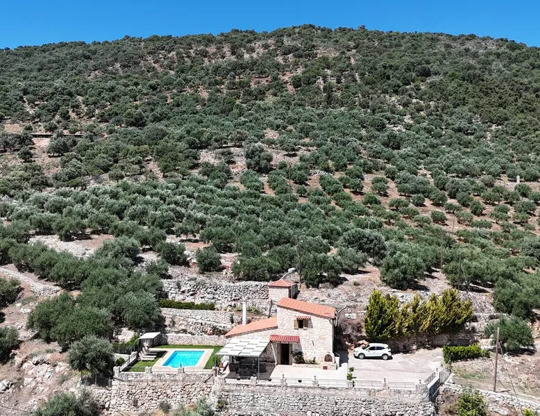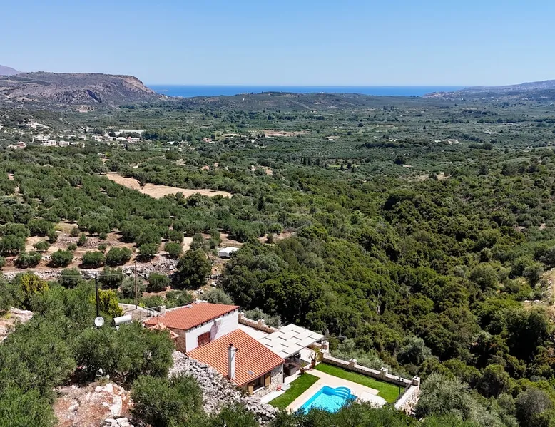 Cretan country life, sea view villa set in olive grove with fantastic pool. 9km from the beach. The space Villa Vangelis, Stylos, Crete This stone house with its private pool and shady dining area sits alone, on the hillside above Stylos with far reaching sea and mountain views from the Aptera Fortress to Cape Drapanos. Inside, traditional stone and wood has been given a light decorative touch and with the addition of a modern sofa and good quality beds Villa Vangelis is now a comfortable holiday Villa, just perfect for two or a family of four. Location The village of Stylos is just over 2 kms downhill, where there are two mini markets selling basic provisions as well as several very authentic Cretan tavernas (we ate the most delicious hortarina kaltisounia, the little pies filled with mountain greens, at the Faraggi Taverna). Enroute to the beach side village of Kalives, an approx. 10mins drive, the road passes though village of Armeni where there are few more tavernas, a little shop that sells fresh cheese and meat plus a baker who delivers to the cafeneon in the square. Outside Villa Vangelis Swimming Pool - 7.5m x 3.5m private pool with step entry Pool depths 0.90m -1.49m. Garden - Lawn surrounding pool, furnished with sun loungers. Steps up to rustic table and chairs under olive tree with sea view. Pergola Dining Terrace - Covered dining area with table and chairs. with comfortable rattan sofa and chairs, sea view. Built-in has BBQ. Inside Villa Vangelis Ground floor : Open plan living room – A comfy sofa with large stool, open fireplace, plasma TV with satellite, DVD player, a large window that look out to the covered dining terrace and sea views plus a second window that overlooks the pool area. Air Con Unit. Dining Area - Wooden table and seating for six. Kitchen Area - Wooden fitted cupboards, double sink, electric oven with hobs, microwave, dishwasher and fridge freezer. Window above the sink to the olive grove and driveway. Shower room - Bath with shower attachment, washbasin and WC. Storeroom under stairs - Washing machine. First Floor Double bedroom - Comfy double bed with bedside lamps, mirror with table and stool, wardrobe, TV with satellite connection, window with sea view. Air con unit. Twin bedroom – Two twin beds very comfy, bedside table, wardrobe and windows with views of countryside (olive grove). Air con Unit. Shower room - WC, sink with mirror & shower attachement (limited space to use the shower). Parking - There is ample parking. Welcome Pack - on arrival you will find a few drinks and snacks to begin your holiday. Wifi access - free. Note - If guests at Villa Vangelis are fortunate enough to be staying during one of the infrequent occasions when the Dimitra Kentro (a wedding and baptism venue on the opposite side of the valley) is hosting a celebration, they will be extended a warm invitation to take a table, enjoy a meal and join in the festivities - a rare opportunity to experience some famous Cretan hospitality with music and the locals 'kicking up their heels'. Greek celebrations often continue into the early hours but any sounds drifting across the valley to the Villa can be firmly kept out with closed windows and air con running. Essential Information: Sleeps (Max) 4 Bedrooms 2 Shower Rooms 2 Maid Service Included Pool Private 7.5m x 3.5m A/C Included Floor Area m²105 Booking Information: Check-In Any day (after 16:00) Check-Out Any day (before 10:00) Minimum stay 5 nights Local Facilities: Beach 7.5km Tavernas 2 km Distances: ChaniaAirport 33kms/45mins Heraklion Airport 130kms/ 2hours Villa Equipment: DVD Local TV Satellite TV Dish Washer Washing Machine Hair Dryer Toaster Kettle Sun Lounger WiFi Safe Filter Coffee Machine Iron & Board Pool Towels Fridge Freezer Hob Cooking Utensils Oven Nespresso* Machine Gas BBQ Guest access The villa and pool is for your private use only as well as the garden. Bed linen & towels are provided as well as pool towels. The cleaner will come in during your stay & change them, depending on how many days you are staying. All of this is included in the price. Other things to note Housekeeping Your Villa will be prepared for you on arrival with fresh bath and hand towels and all beds made up. For stays of 7 nights or more - house towels will be changed every 3 - 4 days. For stays of 14 nights or more - bed linen will be changed every 7 days. Pool/beach towels - one per person for the duration of your stay. If you need a baby cot or high chair, please request when booking so we can have it in the villa for you ready. Optional chargeable services: - Second High Chair - Second Cot Note that this is a professionally run rental villa which as been licensed by the Greek National Tourist Organization, EOT, which is required by the Greek law. This license allows the property owners to legally rent their accommodation to holiday makers, so that they comply to a set of standards and specific conditions for the safety & comfort of it's paying customers. Registration Details 1161067