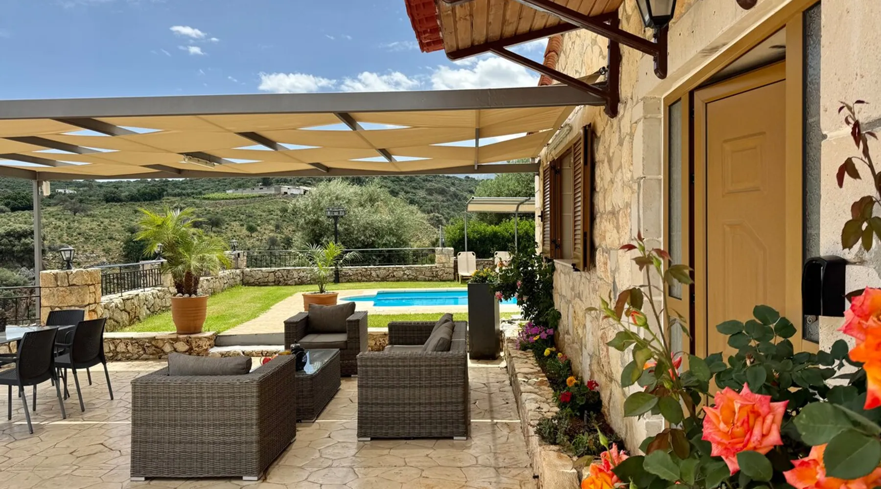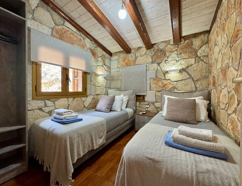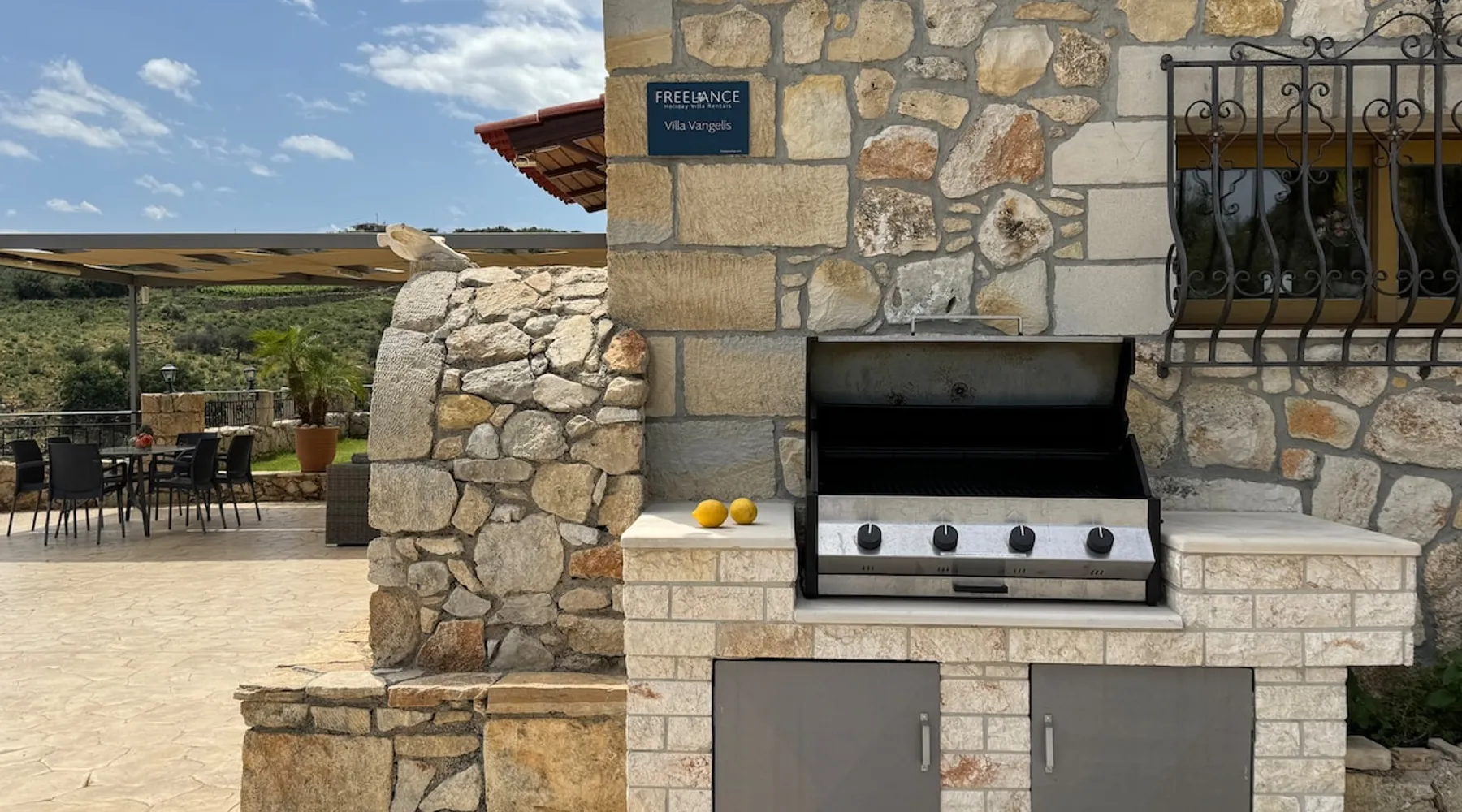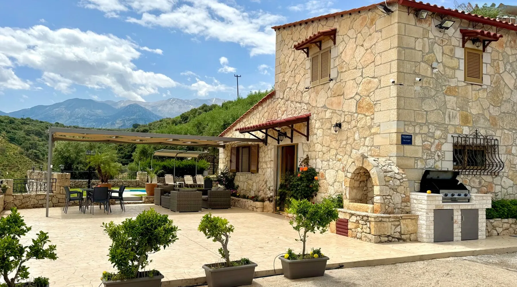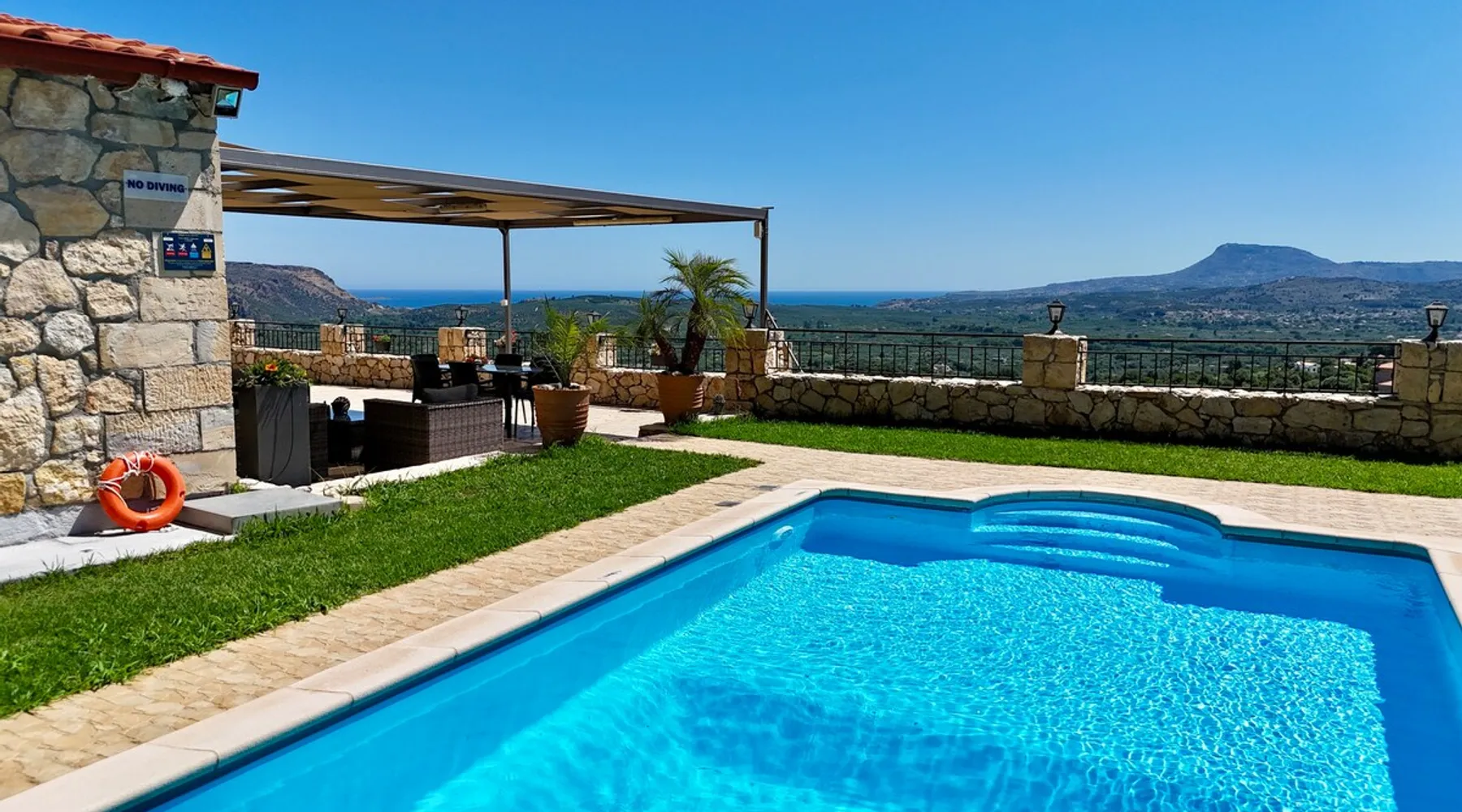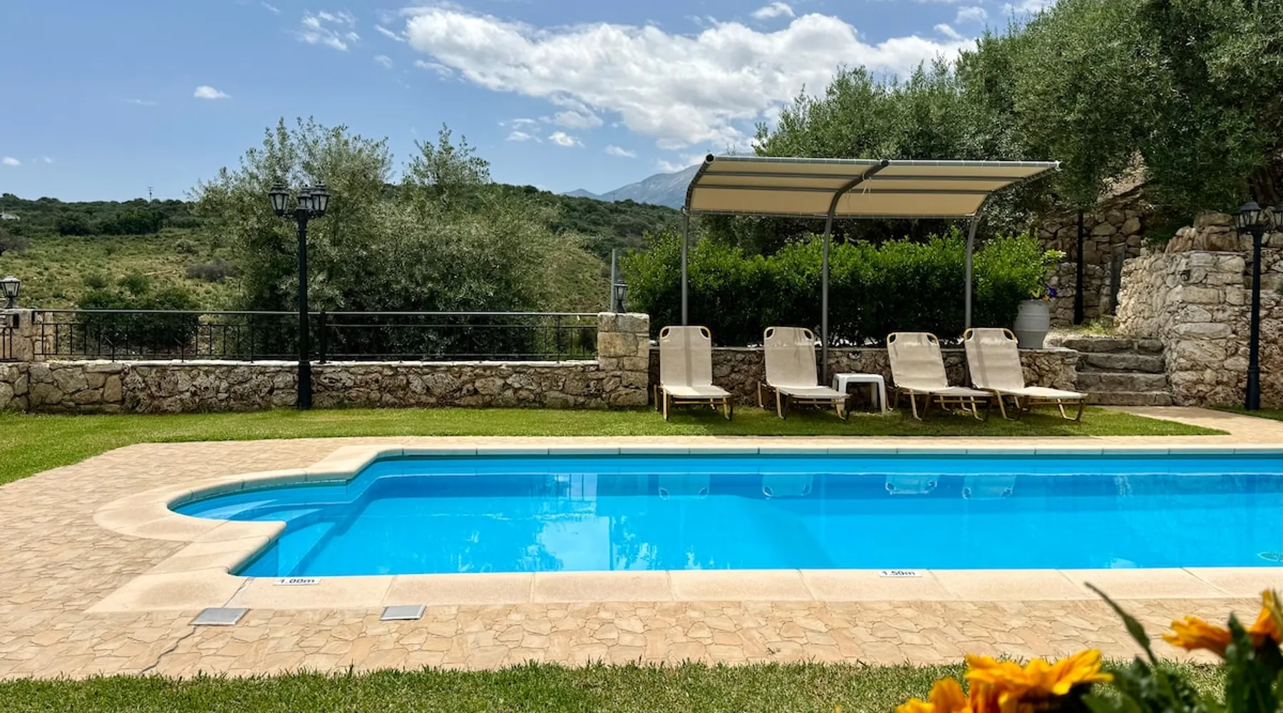 Cretan country life, sea view villa set in olive grove with fantastic pool. 9km from the beach. The space Villa Vangelis, Stylos, Crete This stone house with its private pool and shady dining area sits alone, on the hillside above Stylos with far reaching sea and mountain views from the Aptera Fortress to Cape Drapanos. Inside, traditional stone and wood has been given a light decorative touch and with the addition of a modern sofa and good quality beds Villa Vangelis is now a comfortable holiday Villa, just perfect for two or a family of four. Location The village of Stylos is just over 2 kms downhill, where there are two mini markets selling basic provisions as well as several very authentic Cretan tavernas (we ate the most delicious hortarina kaltisounia, the little pies filled with mountain greens, at the Faraggi Taverna). Enroute to the beach side village of Kalives, an approx. 10mins drive, the road passes though village of Armeni where there are few more tavernas, a little shop that sells fresh cheese and meat plus a baker who delivers to the cafeneon in the square. Outside Villa Vangelis Swimming Pool - 7.5m x 3.5m private pool with step entry Pool depths 0.90m -1.49m. Garden - Lawn surrounding pool, furnished with sun loungers. Steps up to rustic table and chairs under olive tree with sea view. Pergola Dining Terrace - Covered dining area with table and chairs. with comfortable rattan sofa and chairs, sea view. Built-in has BBQ. Inside Villa Vangelis Ground floor : Open plan living room – A comfy sofa with large stool, open fireplace, plasma TV with satellite, DVD player, a large window that look out to the covered dining terrace and sea views plus a second window that overlooks the pool area. Air Con Unit. Dining Area - Wooden table and seating for six. Kitchen Area - Wooden fitted cupboards, double sink, electric oven with hobs, microwave, dishwasher and fridge freezer. Window above the sink to the olive grove and driveway. Shower room - Bath with shower attachment, washbasin and WC. Storeroom under stairs - Washing machine. First Floor Double bedroom - Comfy double bed with bedside lamps, mirror with table and stool, wardrobe, TV with satellite connection, window with sea view. Air con unit. Twin bedroom – Two twin beds very comfy, bedside table, wardrobe and windows with views of countryside (olive grove). Air con Unit. Shower room - WC, sink with mirror & shower attachement (limited space to use the shower). Parking - There is ample parking. Welcome Pack - on arrival you will find a few drinks and snacks to begin your holiday. Wifi access - free. Note - If guests at Villa Vangelis are fortunate enough to be staying during one of the infrequent occasions when the Dimitra Kentro (a wedding and baptism venue on the opposite side of the valley) is hosting a celebration, they will be extended a warm invitation to take a table, enjoy a meal and join in the festivities - a rare opportunity to experience some famous Cretan hospitality with music and the locals 'kicking up their heels'. Greek celebrations often continue into the early hours but any sounds drifting across the valley to the Villa can be firmly kept out with closed windows and air con running. Essential Information: Sleeps (Max) 4 Bedrooms 2 Shower Rooms 2 Maid Service Included Pool Private 7.5m x 3.5m A/C Included Floor Area m²105 Booking Information: Check-In Any day (after 16:00) Check-Out Any day (before 10:00) Minimum stay 5 nights Local Facilities: Beach 7.5km Tavernas 2 km Distances: ChaniaAirport 33kms/45mins Heraklion Airport 130kms/ 2hours Villa Equipment: DVD Local TV Satellite TV Dish Washer Washing Machine Hair Dryer Toaster Kettle Sun Lounger WiFi Safe Filter Coffee Machine Iron & Board Pool Towels Fridge Freezer Hob Cooking Utensils Oven Nespresso* Machine Gas BBQ Guest access The villa and pool is for your private use only as well as the garden. Bed linen & towels are provided as well as pool towels. The cleaner will come in during your stay & change them, depending on how many days you are staying. All of this is included in the price. Other things to note Housekeeping Your Villa will be prepared for you on arrival with fresh bath and hand towels and all beds made up. For stays of 7 nights or more - house towels will be changed every 3 - 4 days. For stays of 14 nights or more - bed linen will be changed every 7 days. Pool/beach towels - one per person for the duration of your stay. If you need a baby cot or high chair, please request when booking so we can have it in the villa for you ready. Optional chargeable services: - Second High Chair - Second Cot Note that this is a professionally run rental villa which as been licensed by the Greek National Tourist Organization, EOT, which is required by the Greek law. This license allows the property owners to legally rent their accommodation to holiday makers, so that they comply to a set of standards and specific conditions for the safety & comfort of it's paying customers. Registration Details 1161067