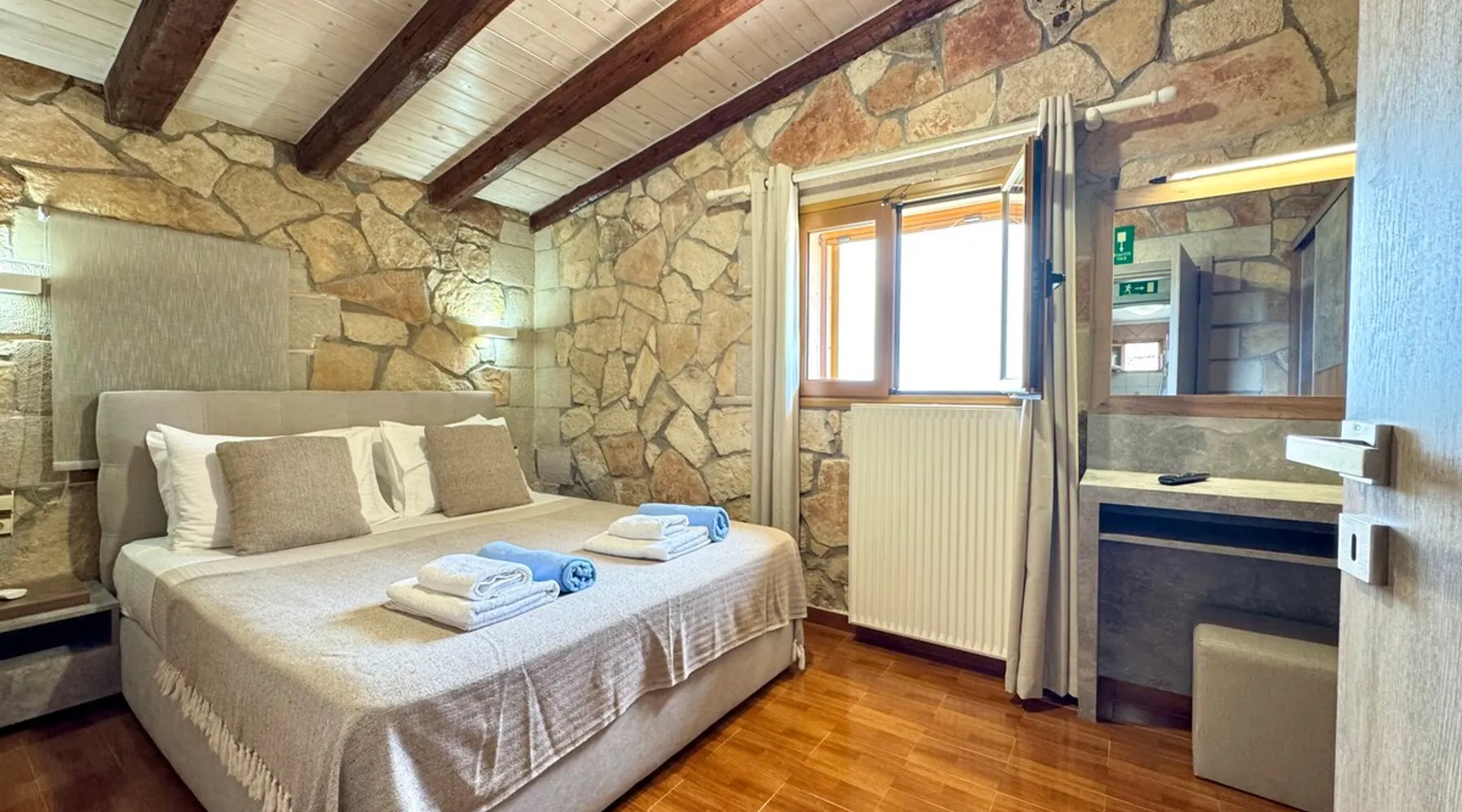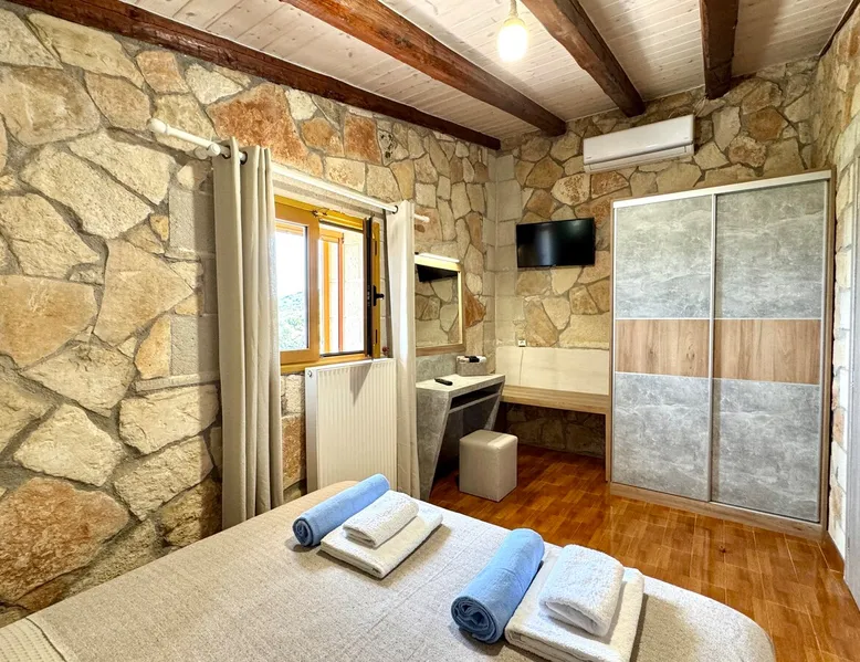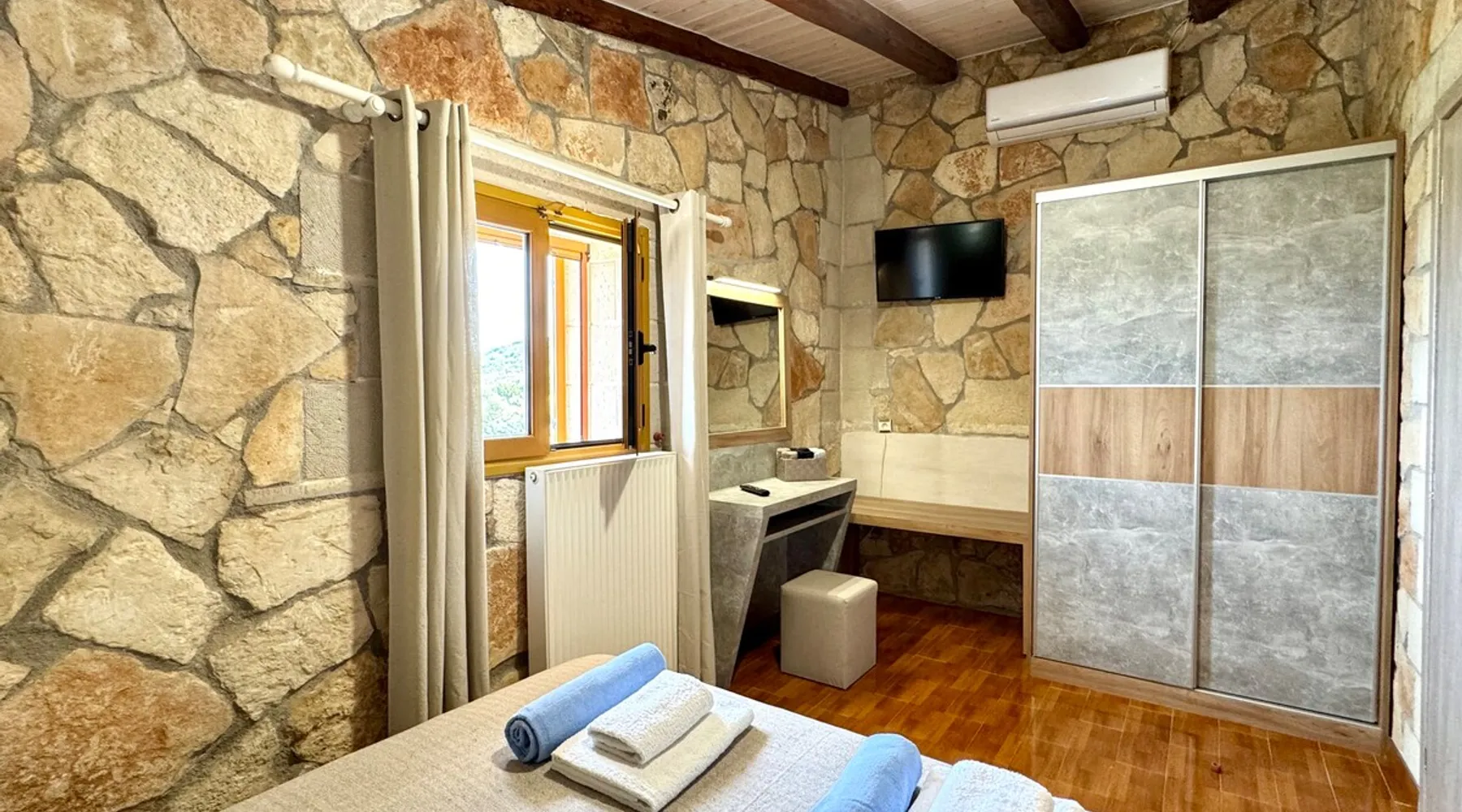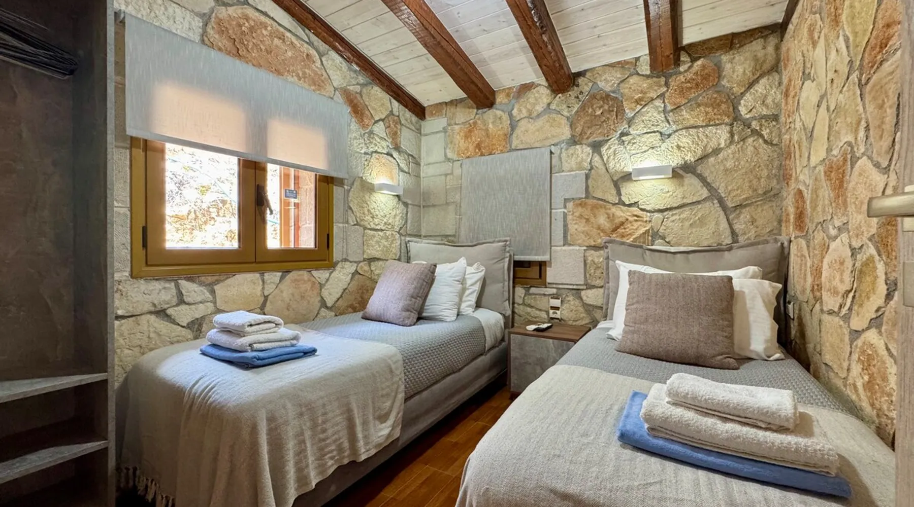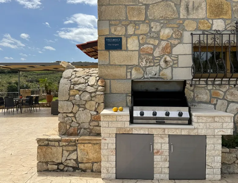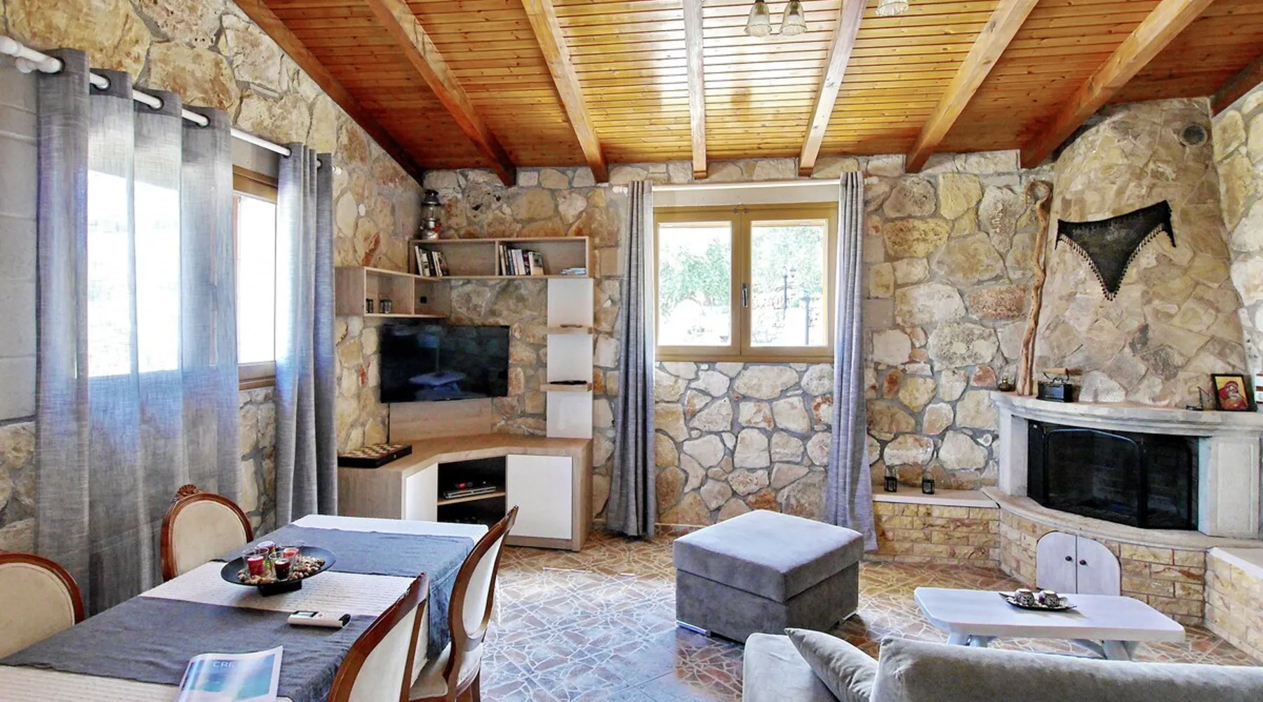 Cretan country life, sea view villa set in olive grove with fantastic pool. 9km from the beach. The space Villa Vangelis, Stylos, Crete This stone house with its private pool and shady dining area sits alone, on the hillside above Stylos with far reaching sea and mountain views from the Aptera Fortress to Cape Drapanos. Inside, traditional stone and wood has been given a light decorative touch and with the addition of a modern sofa and good quality beds Villa Vangelis is now a comfortable holiday Villa, just perfect for two or a family of four. Location The village of Stylos is just over 2 kms downhill, where there are two mini markets selling basic provisions as well as several very authentic Cretan tavernas (we ate the most delicious hortarina kaltisounia, the little pies filled with mountain greens, at the Faraggi Taverna). Enroute to the beach side village of Kalives, an approx. 10mins drive, the road passes though village of Armeni where there are few more tavernas, a little shop that sells fresh cheese and meat plus a baker who delivers to the cafeneon in the square. Outside Villa Vangelis Swimming Pool - 7.5m x 3.5m private pool with step entry Pool depths 0.90m -1.49m. Garden - Lawn surrounding pool, furnished with sun loungers. Steps up to rustic table and chairs under olive tree with sea view. Pergola Dining Terrace - Covered dining area with table and chairs. with comfortable rattan sofa and chairs, sea view. Built-in has BBQ. Inside Villa Vangelis Ground floor : Open plan living room – A comfy sofa with large stool, open fireplace, plasma TV with satellite, DVD player, a large window that look out to the covered dining terrace and sea views plus a second window that overlooks the pool area. Air Con Unit. Dining Area - Wooden table and seating for six. Kitchen Area - Wooden fitted cupboards, double sink, electric oven with hobs, microwave, dishwasher and fridge freezer. Window above the sink to the olive grove and driveway. Shower room - Bath with shower attachment, washbasin and WC. Storeroom under stairs - Washing machine. First Floor Double bedroom - Comfy double bed with bedside lamps, mirror with table and stool, wardrobe, TV with satellite connection, window with sea view. Air con unit. Twin bedroom – Two twin beds very comfy, bedside table, wardrobe and windows with views of countryside (olive grove). Air con Unit. Shower room - WC, sink with mirror & shower attachement (limited space to use the shower). Parking - There is ample parking. Welcome Pack - on arrival you will find a few drinks and snacks to begin your holiday. Wifi access - free. Note - If guests at Villa Vangelis are fortunate enough to be staying during one of the infrequent occasions when the Dimitra Kentro (a wedding and baptism venue on the opposite side of the valley) is hosting a celebration, they will be extended a warm invitation to take a table, enjoy a meal and join in the festivities - a rare opportunity to experience some famous Cretan hospitality with music and the locals 'kicking up their heels'. Greek celebrations often continue into the early hours but any sounds drifting across the valley to the Villa can be firmly kept out with closed windows and air con running. Essential Information: Sleeps (Max) 4 Bedrooms 2 Shower Rooms 2 Maid Service Included Pool Private 7.5m x 3.5m A/C Included Floor Area m²105 Booking Information: Check-In Any day (after 16:00) Check-Out Any day (before 10:00) Minimum stay 5 nights Local Facilities: Beach 7.5km Tavernas 2 km Distances: ChaniaAirport 33kms/45mins Heraklion Airport 130kms/ 2hours Villa Equipment: DVD Local TV Satellite TV Dish Washer Washing Machine Hair Dryer Toaster Kettle Sun Lounger WiFi Safe Filter Coffee Machine Iron & Board Pool Towels Fridge Freezer Hob Cooking Utensils Oven Nespresso* Machine Gas BBQ Guest access The villa and pool is for your private use only as well as the garden. Bed linen & towels are provided as well as pool towels. The cleaner will come in during your stay & change them, depending on how many days you are staying. All of this is included in the price. Other things to note Housekeeping Your Villa will be prepared for you on arrival with fresh bath and hand towels and all beds made up. For stays of 7 nights or more - house towels will be changed every 3 - 4 days. For stays of 14 nights or more - bed linen will be changed every 7 days. Pool/beach towels - one per person for the duration of your stay. If you need a baby cot or high chair, please request when booking so we can have it in the villa for you ready. Optional chargeable services: - Second High Chair - Second Cot Note that this is a professionally run rental villa which as been licensed by the Greek National Tourist Organization, EOT, which is required by the Greek law. This license allows the property owners to legally rent their accommodation to holiday makers, so that they comply to a set of standards and specific conditions for the safety & comfort of it's paying customers. Registration Details 1161067