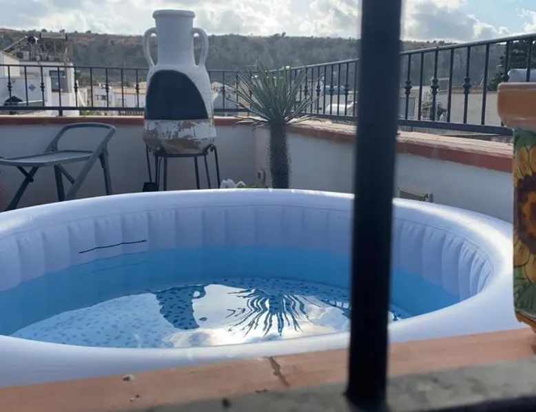 Elegant Accommodations: Apartment with terraces and hot tub with built-in massage jets in San Vito lo Capo offers a rooftop swimming pool, terrace, and open-air bath. Free WiFi is available throughout the property. Comfortable Amenities: Guests enjoy sea views, air-conditioning, balcony, spa bath, washing machine, kitchen, barbecue facilities, and free parking. Additional amenities include a solarium, dining area, and sofa bed. Prime Location: Located 35 mi from Trapani Airport, the apartment is a 5-minute walk from San Vito Lo Capo Beach. Nearby attractions include Segesta (30 mi) and Monte Cofano Natural Reserve (14 mi). Highly rated for its terrace and convenient location. This apartment's special features are the rooftop pool and the spa bath. Boasting a private entrance, this air-conditioned apartment features 1 living room, 1 separate bedroom and 1 bathroom with a shower and a bidet. Guests will find a refrigerator, kitchenware and a microwave in the kitchen. The apartment also comes with a barbecue. Featuring a terrace with sea views, this apartment also features a washing machine and a flat-screen TV. The unit has 5 beds.