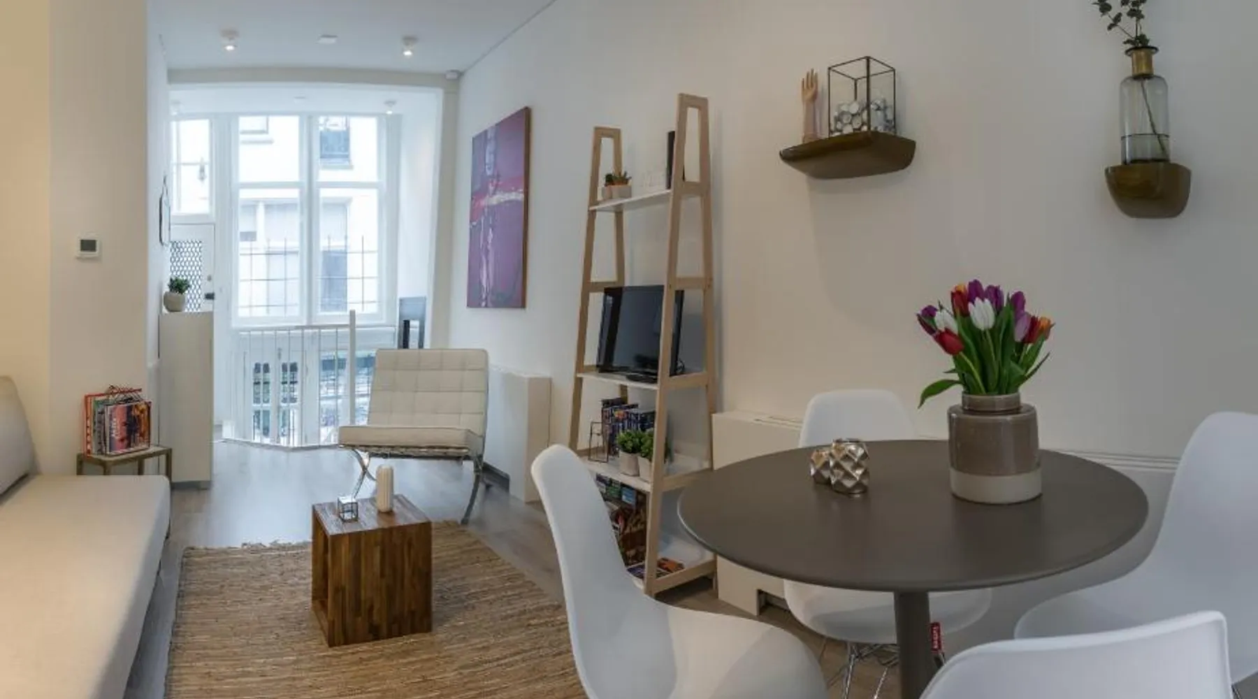 Historic Setting: Luxury Flower Market Apartment in Amsterdam is housed in a historic building, offering a unique and charming environment. Modern Amenities: Guests enjoy a terrace and free WiFi, ensuring a comfortable and connected stay. Comfortable Living: The apartment features a private bathroom, tea and coffee maker, city views, and a dining area. Additional amenities include a refrigerator, dishwasher, and TV. Prime Location: Located 9.9 mi from Schiphol Airport, the property is a short walk from Rembrandtplein and near attractions such as the Rijksmuseum and Anne Frank House. Guest Satisfaction: Highly rated for its friendly host, convenient location, and suitability for city trips. Featuring a private entrance, this apartment also consists of 1 bedroom, a seating area and 1 bathroom with a walk-in shower and a hairdryer. Boasting a terrace with city views, this apartment also provides a tea and coffee maker and a flat-screen TV with cable channels. The unit offers 1 bed.