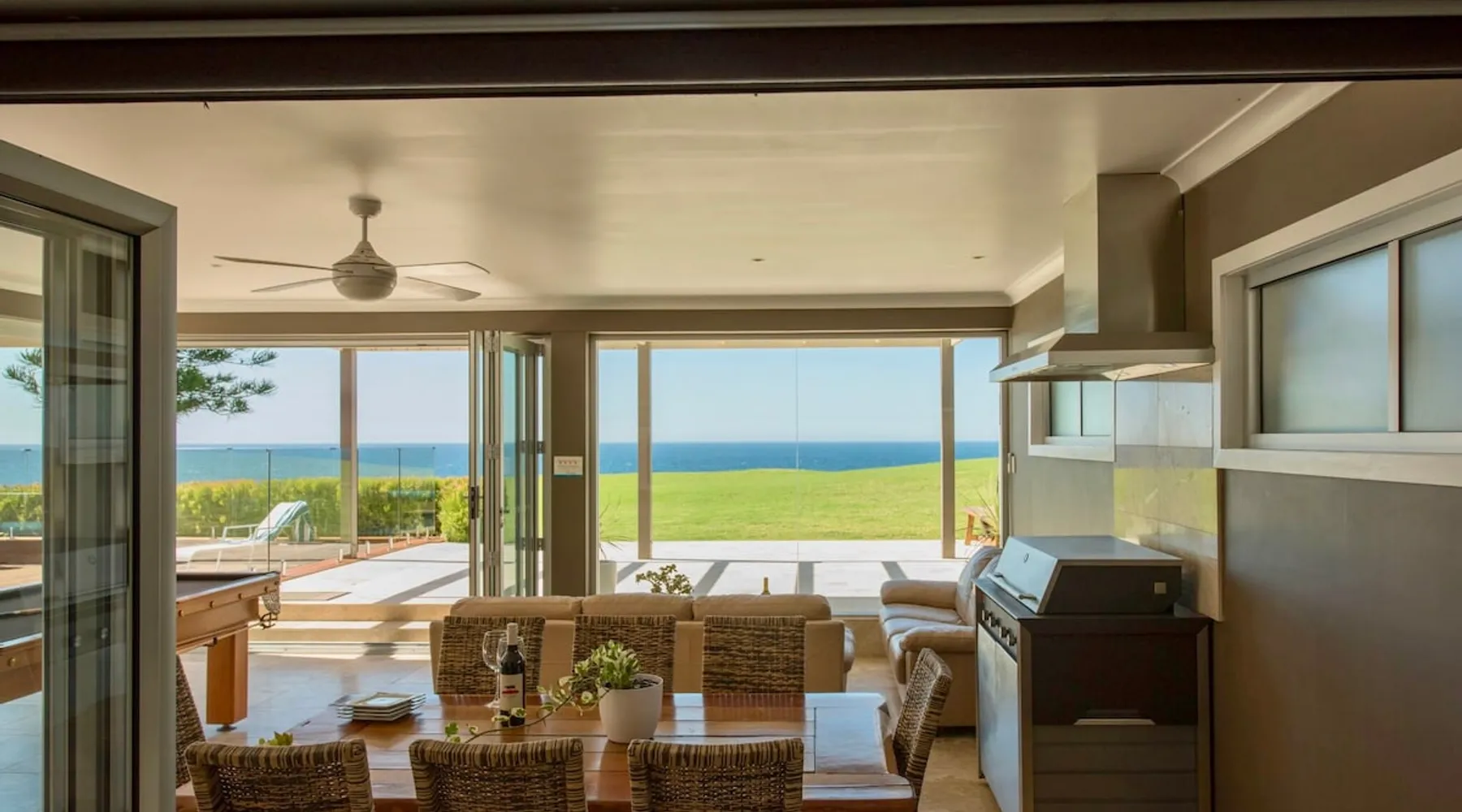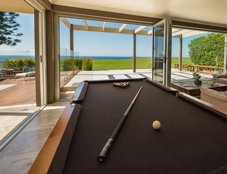 If you are looking for a luxurious waterfront holiday home in the perfect location with a glorious heated swimming pool look no further. (Pool not heated in Winter & weather dependent) Spectacular oceanfront location one of the best in Kiama. Read some of our 5* guest reviews below and be reassured that Amaroo will exceed your expectations & will deliver a 5 star stay. The space ‘Amaroo’ has been finished to the highest of standards, from the lavish marble tiled alfresco entertainment area right through to the highest quality linen and towels, ‘Amaroo’ has been thoughtfully prepared for the ultimate comfort and enjoyment. Perfect for all occasions, ‘Amaroo’ is ideal as a couples’ getaway or for two families wishing to holiday together, yet allowing each to have their own plush private space. With three distinct living spaces there is plenty of room for the whole family to relax and enjoy the entertainment of choice. Downstairs lounge is equipped with comfortable sofas, HDTV, DVD player and NETFLIX, while an adjoining rumpus room is also available to keep the children happy with board games and toys to be enjoyed. This area opens directly onto the alfresco and pool entertainments areas bringing the outside in. Upstairs provides for the cinema lovers in the family with the Media/Family room set up for the perfect big screen experience or PS4 entertainment. Relax in the beautiful entertainment areas and watch the whales go by, while the children take a dip in the heated 9 x 4 metre deluxe heated swimming pool which is seitting at comfortable 28 degrees. (Not heated during Winter months & may not reach full temperature in bad weather) ‘Amaroo’ has five luxuriously appointed and spacious bedrooms: - Bedroom Configuration:- Bedroom 1: King Size Bed with ensuite, featuring double shower, luxury toiletries and magnificent limestone tiles, a walk in wardrobe, remote controlled blinds and best of all unbelievable expansive ocean views from the private Juliette balcony. TV & DVD facilities and quality linen and towels. Bedroom 2: King Size Bed featuring unbelievable ocean and lighthouse views. A private Juliette balcony, ensuite with luxury toiletries and magnificent marble tiles. TV & DVD facilities and quality linen and towels. Bedroom 3: Queen Size Bed with two way bathroom access (huge bath+shower ), marble tiles and quality linen and towels & toiletries. Bedroom 4: Queen Size Bed, great ocean views, desk TV & DVD , quality linen & towels. Bedroom 5: Single bed with desk, quality linen & towels. Please note that pool & Beach towels are not provided. NOTICE: ‘Amaroo’ management have strict policy and procedure to ensure the quiet & good order of the community is maintained inline with Kiama Council requirements. This is NOT a party house. Strictly NO hens, bucks or group birthday parties. Tenancy involves strict vetting procedures. Booking guests must be 30+ years & staying guest.. Any breaches to house rules will result in guests being asked to leave the property immediately without refund. Photo Liscence Id will be required after booking confirmed due to Covid Rules Owner will personally Checkin all guests Covid 19 - We will refund guests 100% due to Government Travel Restrictions if cancelled prior to arrival date. Please feel free to ask any covid questions Feature include: Watch the NYE fireworks from the reserve. Magnificent uninterrupted ocean views. Marsden headland reserve for the family game of cricket or football. Walk to town via the walking track (3.5km) Walk to beach (500m) Wall to Little Blow Hole attraction (50m) Little Blow Hole Café Art bar for breakfast, lunch, tapas or drinks (150m) Backing onto the Kiama Coastal Walking Track (7km to Werri Lagoon one way ) Smeg appliances, Caesar stone bench tops and a Nespresso Coffee Machine (bring your own pods). Complimentary luxury toiletries from hotel style dispensers Alfresco area comes complete with highest quality Electrolux BBQ, outdoor dining table, leather lounges, pool table Ducted climate control Air-conditioning Games sets for reserve cricket and football, Board games and Children Toys NB: Pool & Beach towels are NOT provided There is No Smoking in or around the property Please Note: •Information during your stay can be found in the Guest Information Folder includng Fire Evacuation information •WiFi is not guaranteed. This is a service offered as a complimentary extra. As there is no charge for this service we will attempt to fix issues as they arise but cannot be held accountable Guest Reviews April 2018 Thank you for the opportunity to spend 3 magical days in your home. It was the perfect place to stay & celebrate our sons wedding. So many special memories have been made. We hope very much to be able to come again in the future to take in more of the beautiful views of this gorgeous place.★★★★★ The Armstrong Family January 2018 Thank You , What an amazing home you have...we created so many memories that will last a lifetime. The kids don’t want to leave, also the small gifts were really nice gestures. We hope to be back soon. Best wishes The Adele Family★★★★★ Dec 2017 Thank you for sharing your wonderful home with us. Your home was beautiful & perfect for our family weekend getaway. Our kids couldn't get enough of swimming in your pool & running around in your enormous backyard. waking up every morning to a breathtaking view from the master bedroom was picture perfect. We look forward to returning. The Lee Family★★★★★ Jan 2018 Amaroo was a slice of paradise!! Our 10 nights with our family was enjoyed by all as we relaxed by the pool with spectacular views & lovely ocean breeze. Thank you for sharing your luxury home with us. It is a Christmas & New Year holiday that certainly will not be forgotten. S&G★★★★★ Other things to note Linen: All quality linen (sheets and bath towels) is supplied for your stay and included in the tariff. Pool & Beach towels are no