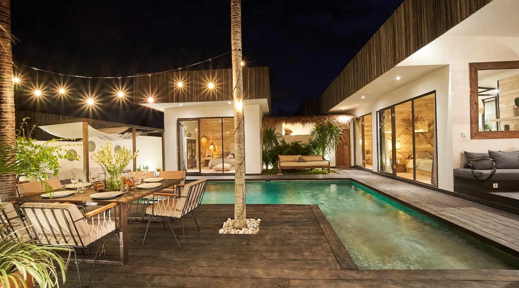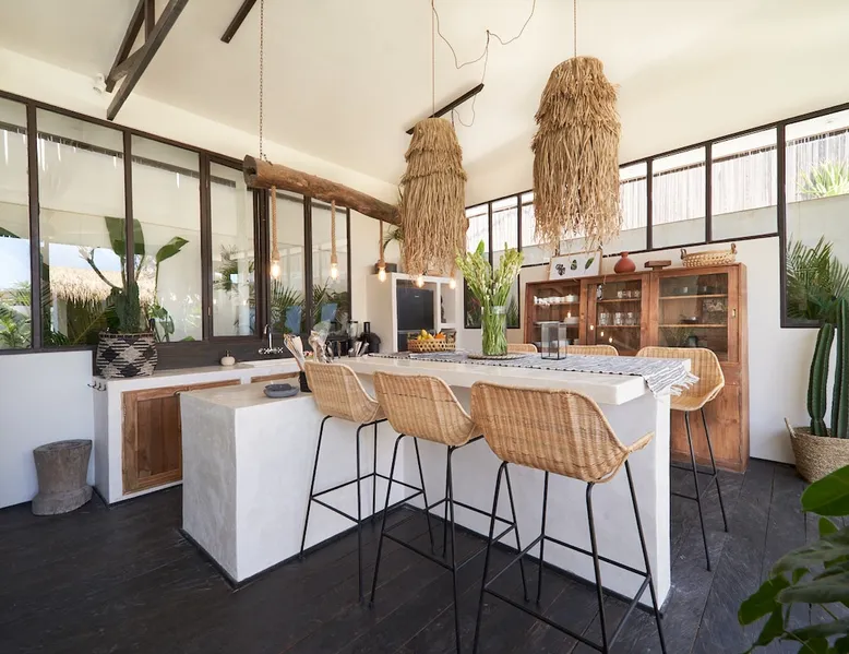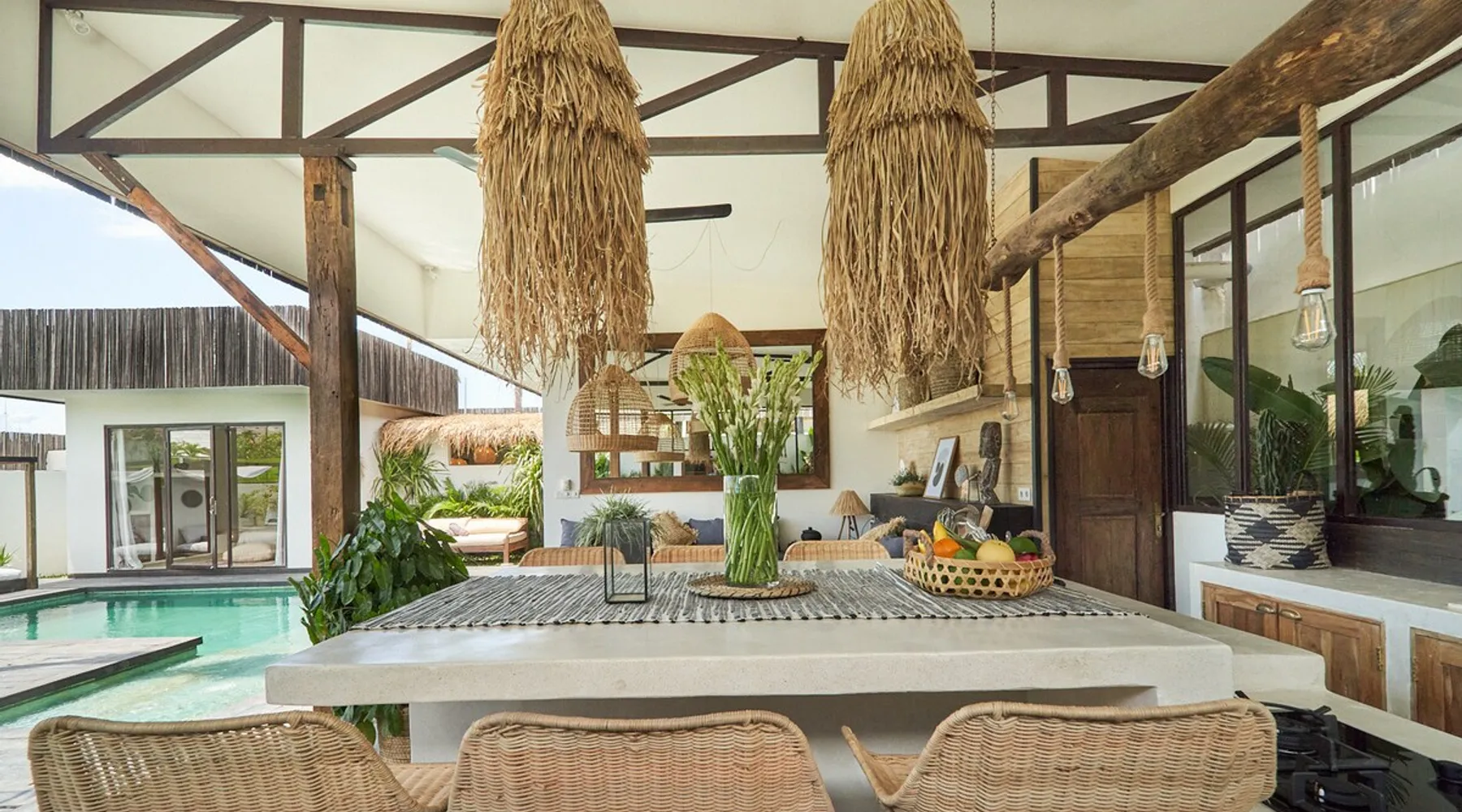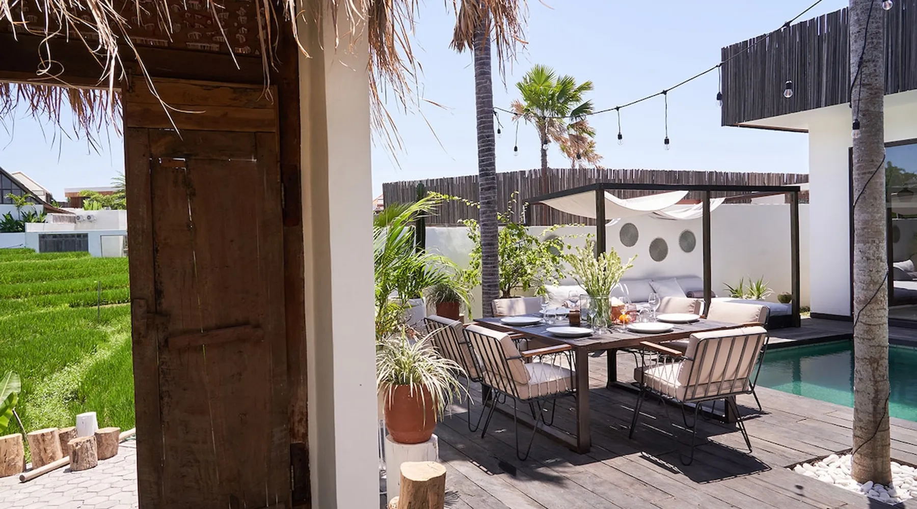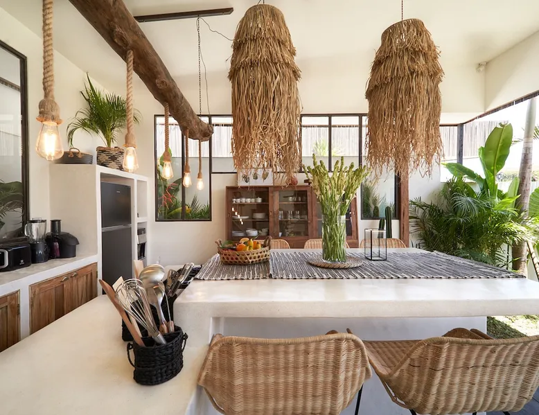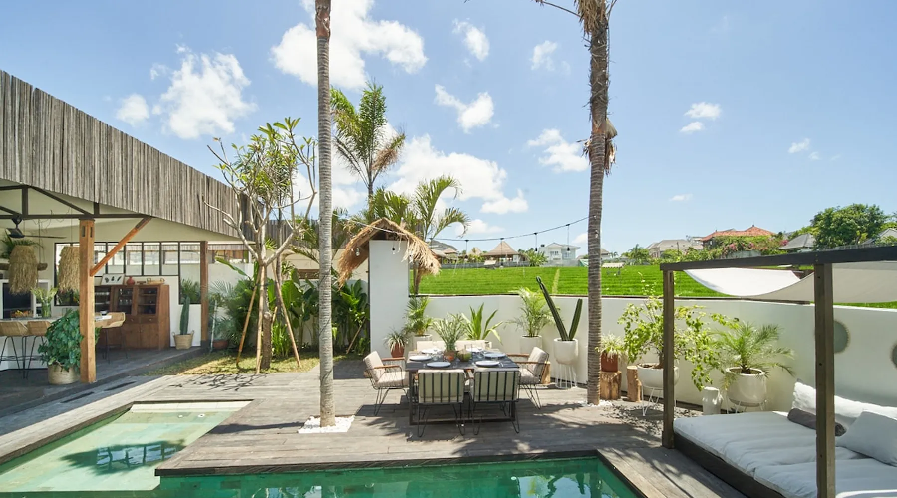 Villa Aetas – Contemporary Tropical Elegance in the Heart of Umalas Welcome to Villa Aetas, a modern tropical sanctuary nestled in the vibrant and leafy neighborhood of Umalas, perfectly located between Seminyak and Canggu. This stylish 3-bedroom villa is an ideal retreat for families, couples, or small groups of friends looking to unwind in privacy, comfort, and Balinese charm. The Villa • Location: Umalas, close to Canggu and the beach The space Villa Aetas – Contemporary Tropical Elegance in the Heart of Umalas Welcome to Villa Aetas, a modern tropical sanctuary nestled in the vibrant and leafy neighborhood of Umalas, perfectly located between Seminyak and Canggu. This stylish 3-bedroom villa is an ideal retreat for families, couples, or small groups of friends looking to unwind in privacy, comfort, and Balinese charm. The Villa • Location: Umalas, close to Canggu and the beach • Bedrooms: 3 air-conditioned suites with private bathrooms • Capacity: Up to 6 guests • Design: Open-air layout with tropical flair and colorful touches Thoughtfully designed for relaxation, Villa Aetas features bright open spaces flowing into a private pool surrounded by greenery. The open living area is perfect for reading, napping, or enjoying quality time with loved ones. Spaces & Amenities • Private swimming pool with sun loungers • Open-plan living and dining area • Fully equipped kitchen (stove, toaster, blender, fridge) • Air conditioning in all bedrooms • High-speed Wi-Fi throughout the villa • tv, cozy indoor sofas, dedicated work space • Scooter parking only (car access for drop-off only) Each bedroom features a comfortable double bed, en-suite bathroom, and serene design to ensure a restful stay. Included Services • Daily housekeeping • Fresh bed linen and towels • Complimentary Wi-Fi access Optional Services (upon Request) Wellness • In-villa massages • Private yoga sessions Dining • Private chef available for lunch and/or dinner • Home-cooked meals by villa staff Comfort & Family • Babysitting services • Baby cot available (advance notice & extra charge) Transportation • Airport transfer (usd 35 per car) • Car with driver (up to 8 hours per day) • Scooter rental Important Information • Maximum occupancy: 6 guests (extra bed possible with fee, space will be limited) • Parties, loud music, and events are strictly prohibited • Date modifications are not allowed • Please note that staff and management may access the villa at any time for daily maintenance and service purposes About Bali Bali is a tropical island rich in wildlife. While we conduct monthly fogging and daily cleaning, small animals like geckos, lizards, ants, or mosquitoes may occasionally appear. Mosquito spray and electric repellents are provided to ensure your comfort during your stay. Other things to note Included services - Swimming pool - Final Cleaning - Air conditioning - Towels: Change each 3 days - Bed linen: Change each 3 days - Internet Access Optional services - Parking: Price: Included in the booking.