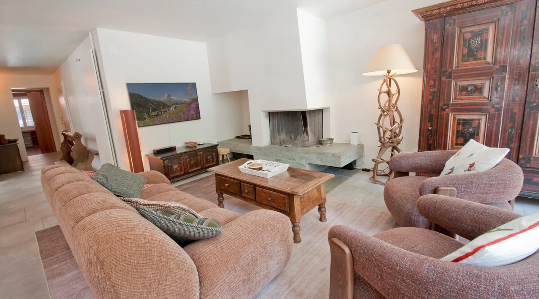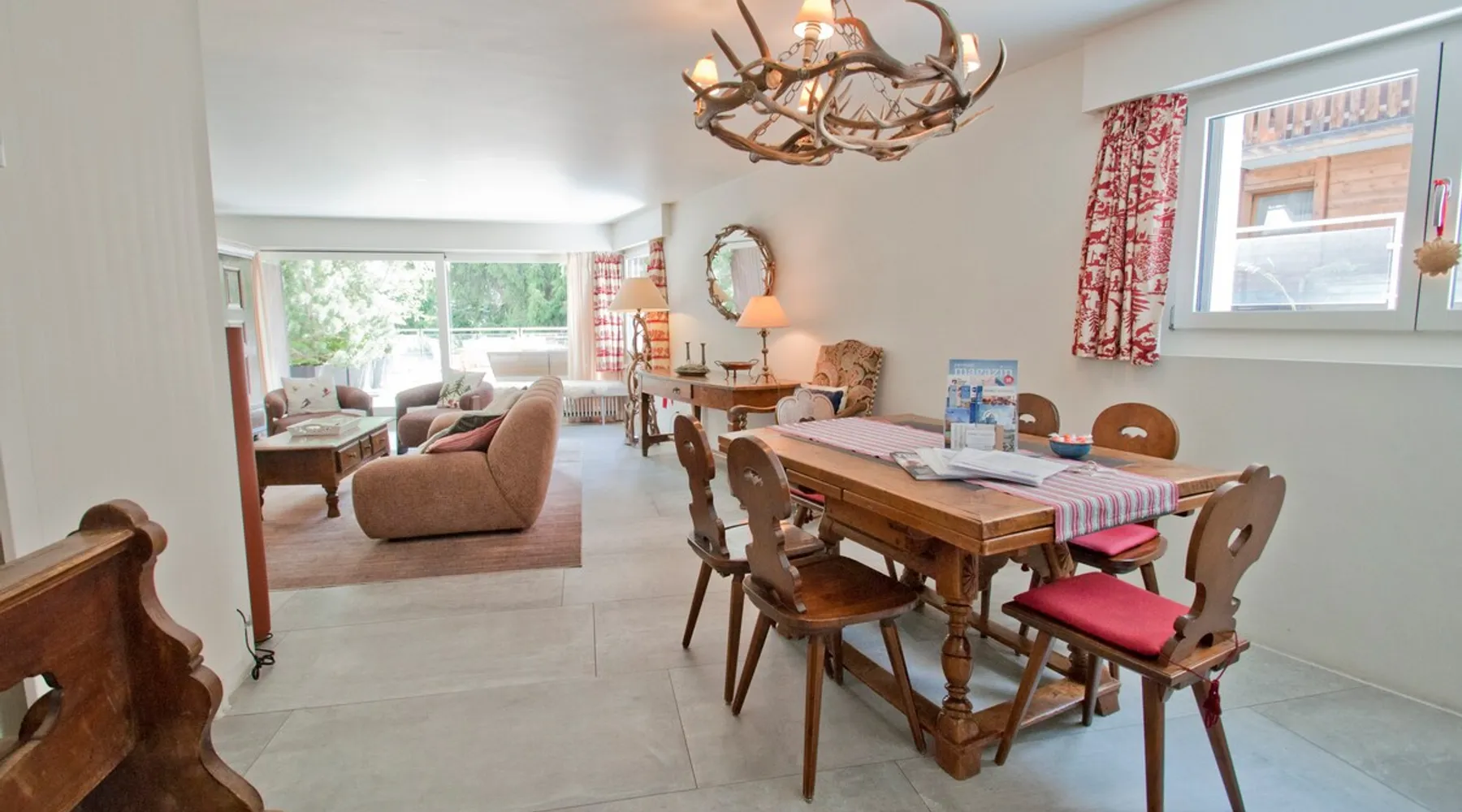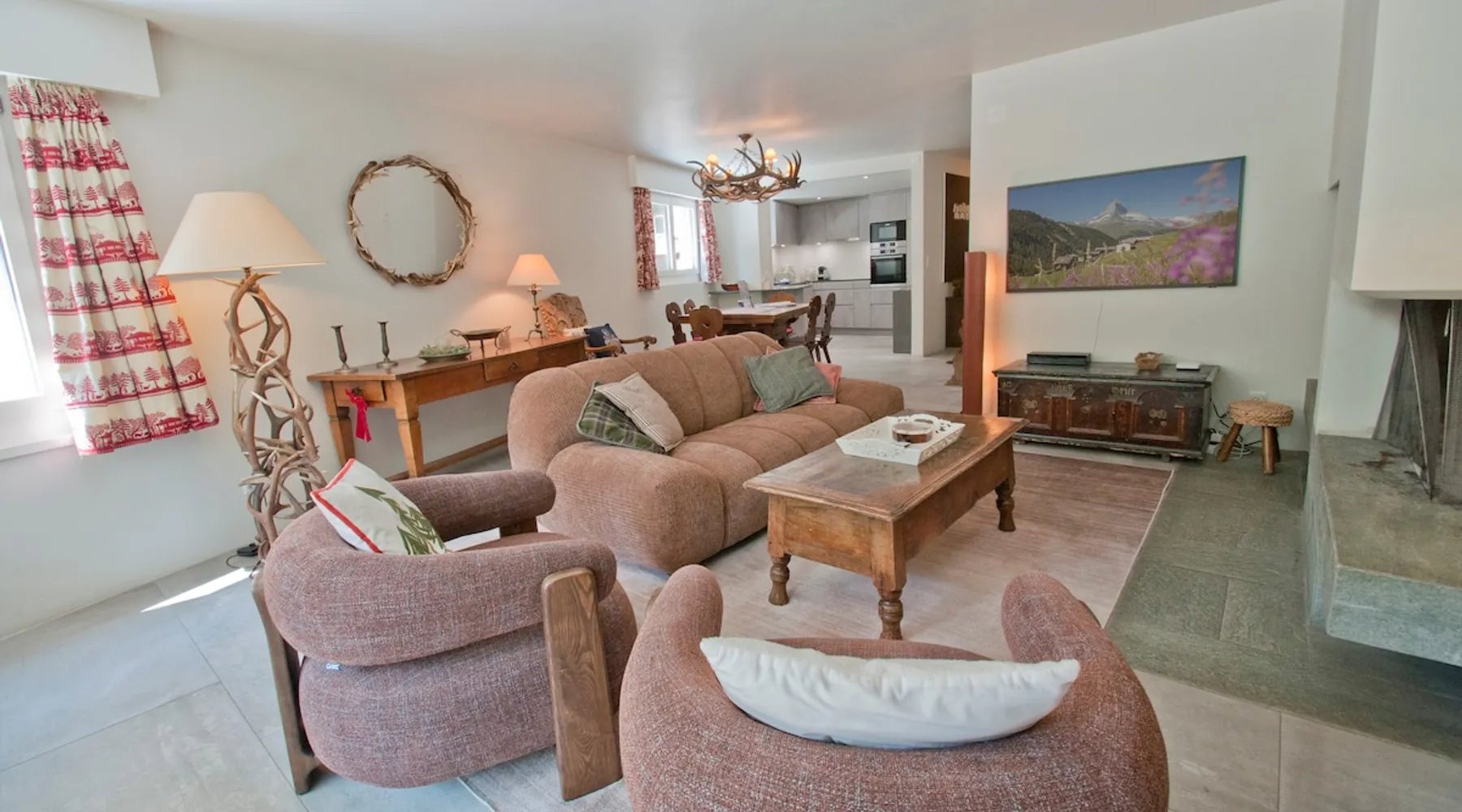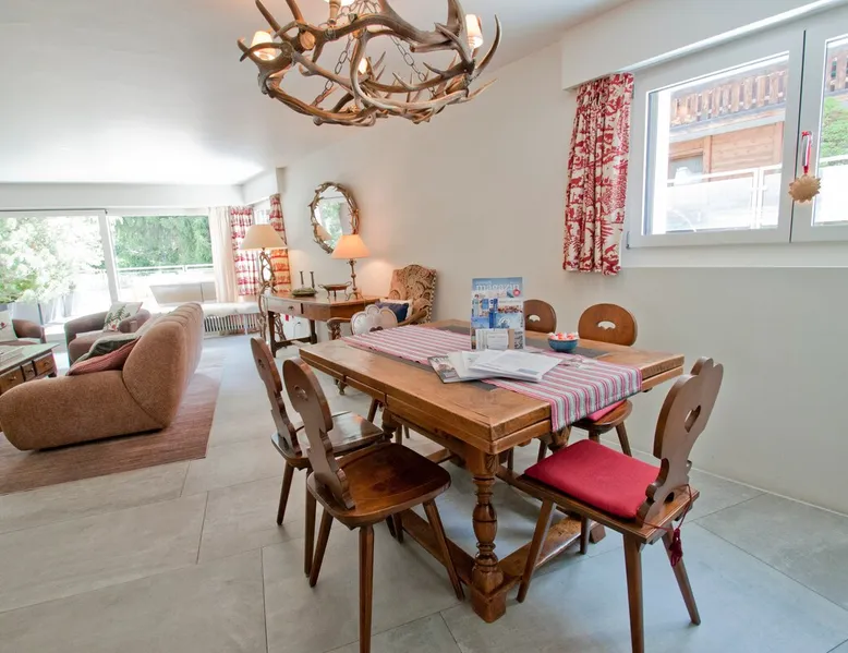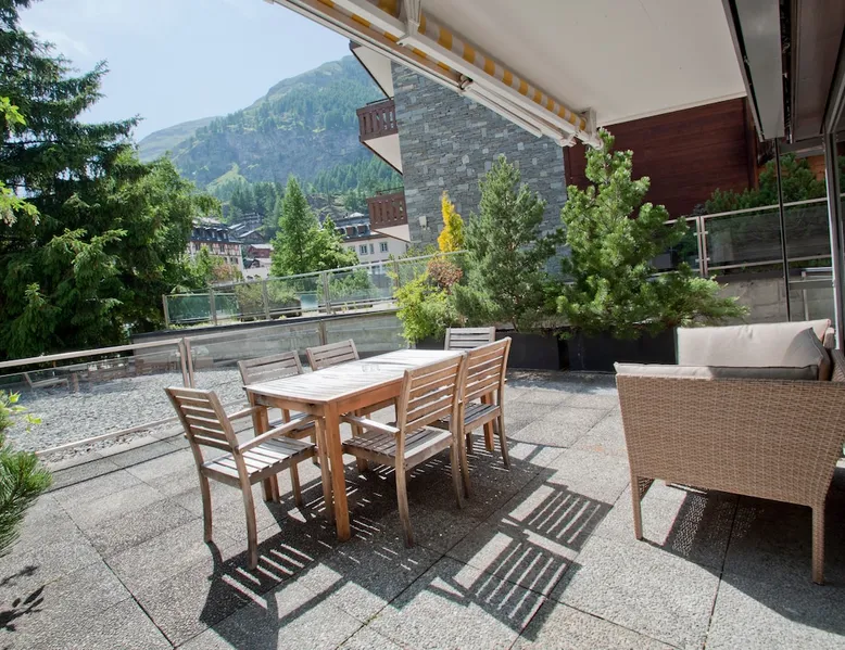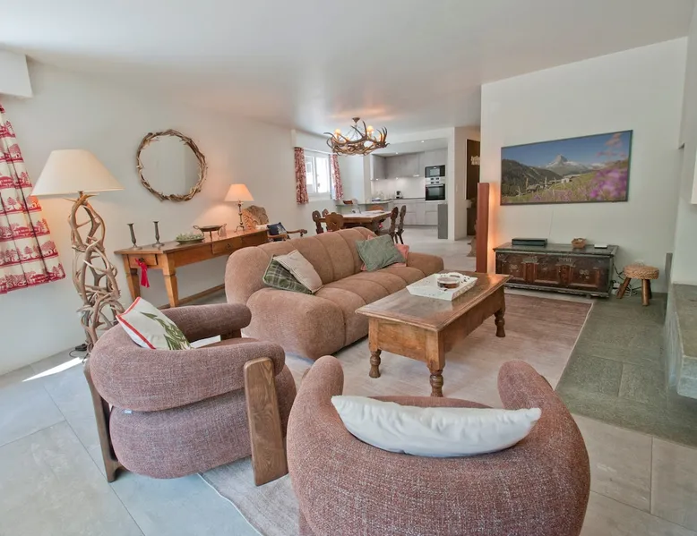 Apartment Emilie is a spacious apartment on the first floor of La Villa Emeline, located in the centre of Zermatt with exceptional Matterhorn views plus shops / restaurants on your doorstep. The apartment is very suitable for families, and the Obere Matten playgrounds are only 3 minutes of walking away. The space La Villa Emeline is located in the centre of the village just off the main street and about 150m from the Gornergrat Railway and Sunnegga valley station. The shops and restaurants are right on your doorstep! Apartment Emilie, accommodating up to 6 guests, is a spacious apartment on the 1st floor comprising 4 bedrooms, 2 bathrooms (bath/wc & shower/wc), spacious lounge / dining room with open wood-burning fireplace, fully-equipped kitchen, cable TV with English programmes and free WIFI connection and large south-facing terrace with exceptional Matterhorn views. Antique furniture and wooden floors throughout. Additional amenities include: Nespresso coffee maker, kitchen utilities provided, electric kettle, cot on request, elevator in building, bed linen and towels included. Free WiFi throughout the apartment. The Matterhorn Glacier Paradise Lift is a 15 minute walk or 5 minutes by bus away. Zermatt train station and the Gornergrat station is 350 meters away from the apartment. The Migros supermarket is next door to the apartment and the Matterhorn Museum can be reached in 5 minutes on foot. The nearest laundry facility is a minute of walking away from the apartment. Guest access The guests have full private use of the apartment. Contactless check-in / check-out is available. Other things to note • Check-in from 16:00 (4:00 PM), luggage drop off is possible on request. • The rates on this website include the final cleaning, bed linen, towels, free Wi-Fi, taxi on arrival and departure, and the local tourist taxes. • Please inform us prior to your arrival if you require a baby bed and / or high chair (available for a surcharge). A baby bed is available for children up to 3 years old, and a highchair for children up to 2 years old. • Pets are not allowed in this apartment. • The maximum allowed occupants is not to be exceeded unless agreed in writing prior to your arrival in Zermatt.