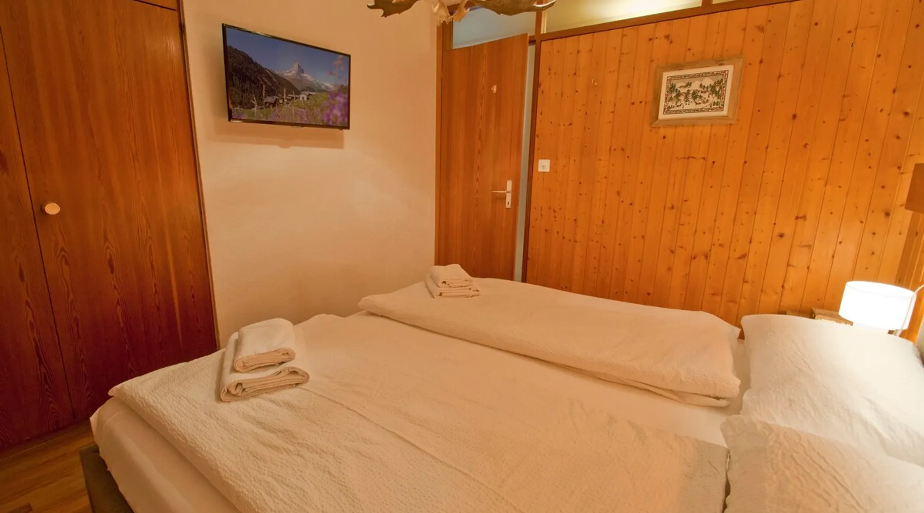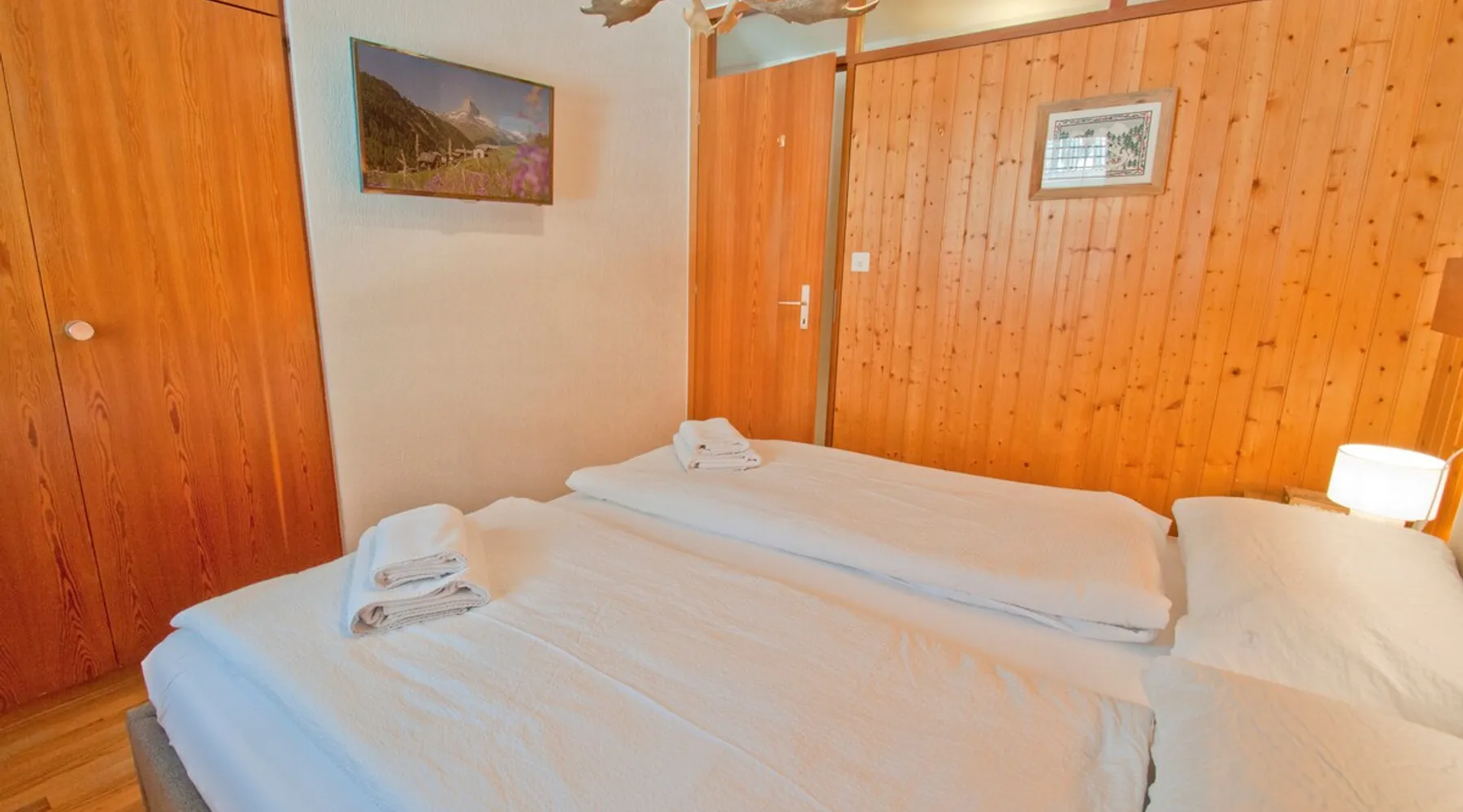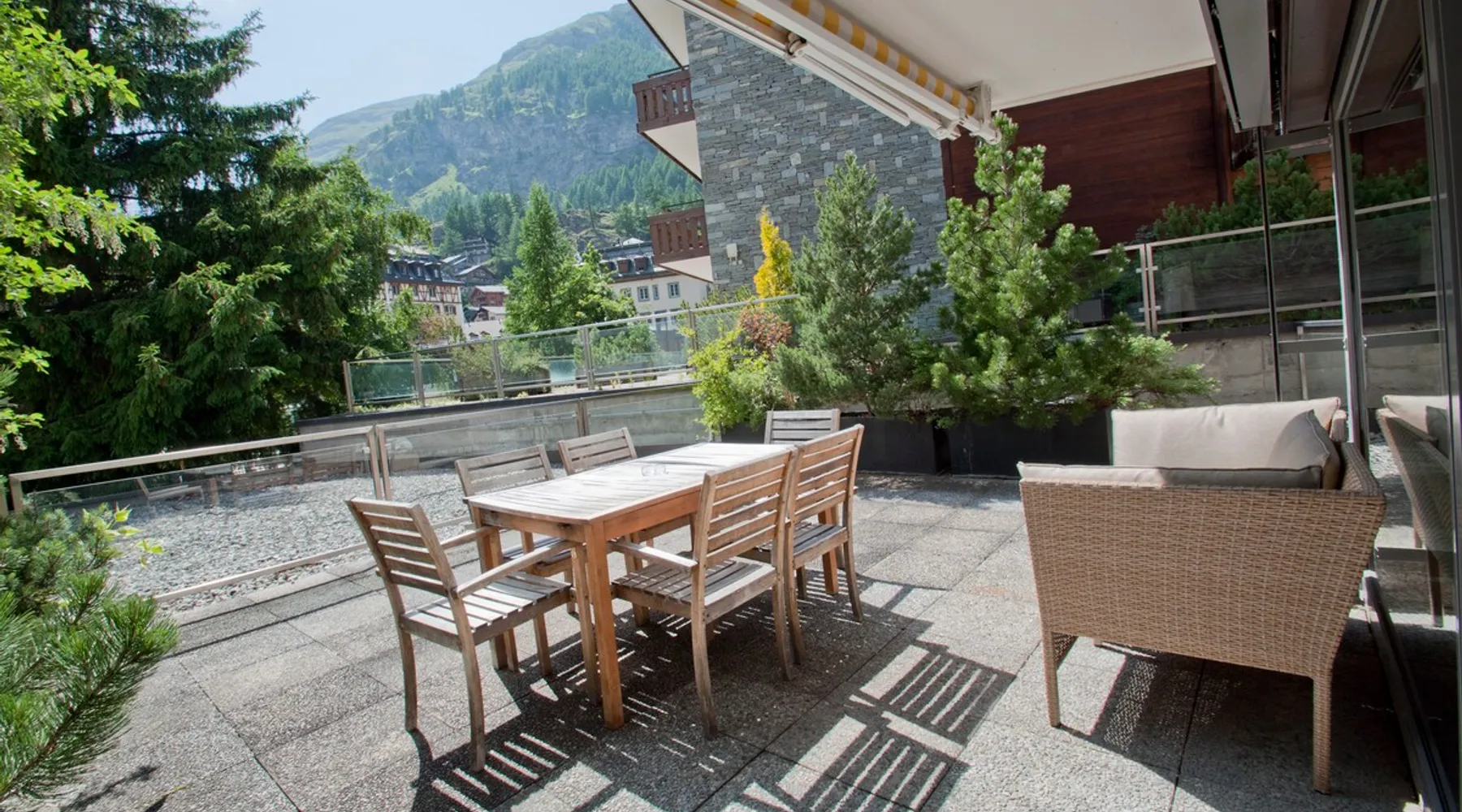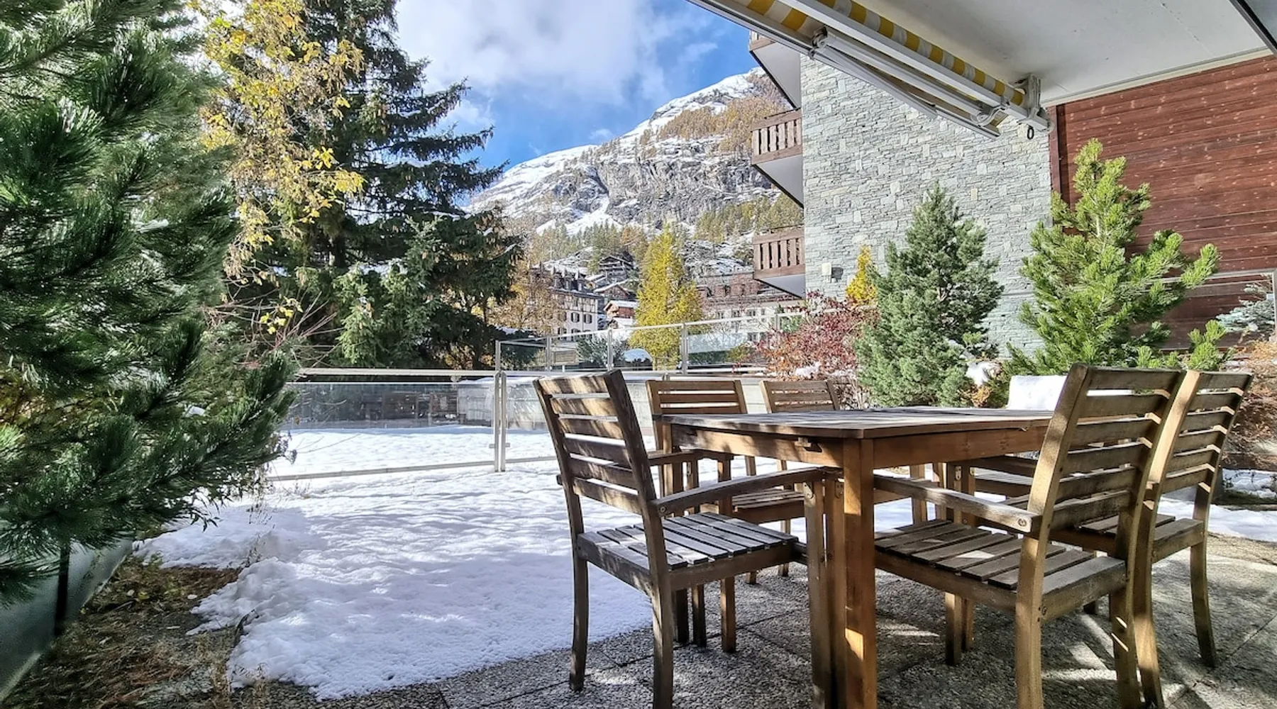 Apartment Emilie is a spacious apartment on the first floor of La Villa Emeline, located in the centre of Zermatt with exceptional Matterhorn views plus shops / restaurants on your doorstep. The apartment is very suitable for families, and the Obere Matten playgrounds are only 3 minutes of walking away. The space La Villa Emeline is located in the centre of the village just off the main street and about 150m from the Gornergrat Railway and Sunnegga valley station. The shops and restaurants are right on your doorstep! Apartment Emilie, accommodating up to 6 guests, is a spacious apartment on the 1st floor comprising 4 bedrooms, 2 bathrooms (bath/wc & shower/wc), spacious lounge / dining room with open wood-burning fireplace, fully-equipped kitchen, cable TV with English programmes and free WIFI connection and large south-facing terrace with exceptional Matterhorn views. Antique furniture and wooden floors throughout. Additional amenities include: Nespresso coffee maker, kitchen utilities provided, electric kettle, cot on request, elevator in building, bed linen and towels included. Free WiFi throughout the apartment. The Matterhorn Glacier Paradise Lift is a 15 minute walk or 5 minutes by bus away. Zermatt train station and the Gornergrat station is 350 meters away from the apartment. The Migros supermarket is next door to the apartment and the Matterhorn Museum can be reached in 5 minutes on foot. The nearest laundry facility is a minute of walking away from the apartment. Guest access The guests have full private use of the apartment. Contactless check-in / check-out is available. Other things to note • Check-in from 16:00 (4:00 PM), luggage drop off is possible on request. • The rates on this website include the final cleaning, bed linen, towels, free Wi-Fi, taxi on arrival and departure, and the local tourist taxes. • Please inform us prior to your arrival if you require a baby bed and / or high chair (available for a surcharge). A baby bed is available for children up to 3 years old, and a highchair for children up to 2 years old. • Pets are not allowed in this apartment. • The maximum allowed occupants is not to be exceeded unless agreed in writing prior to your arrival in Zermatt.