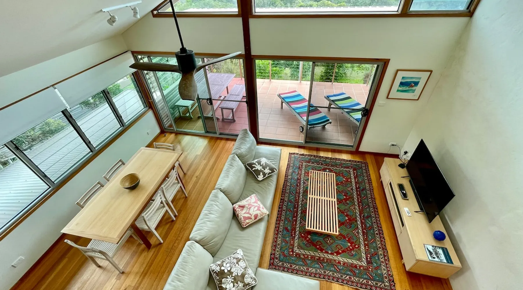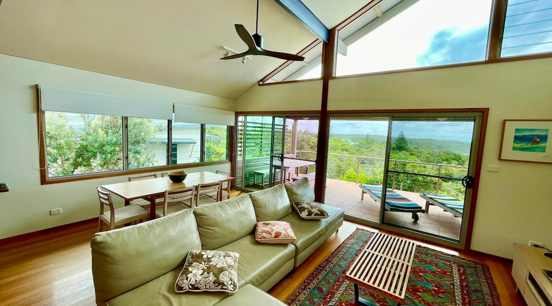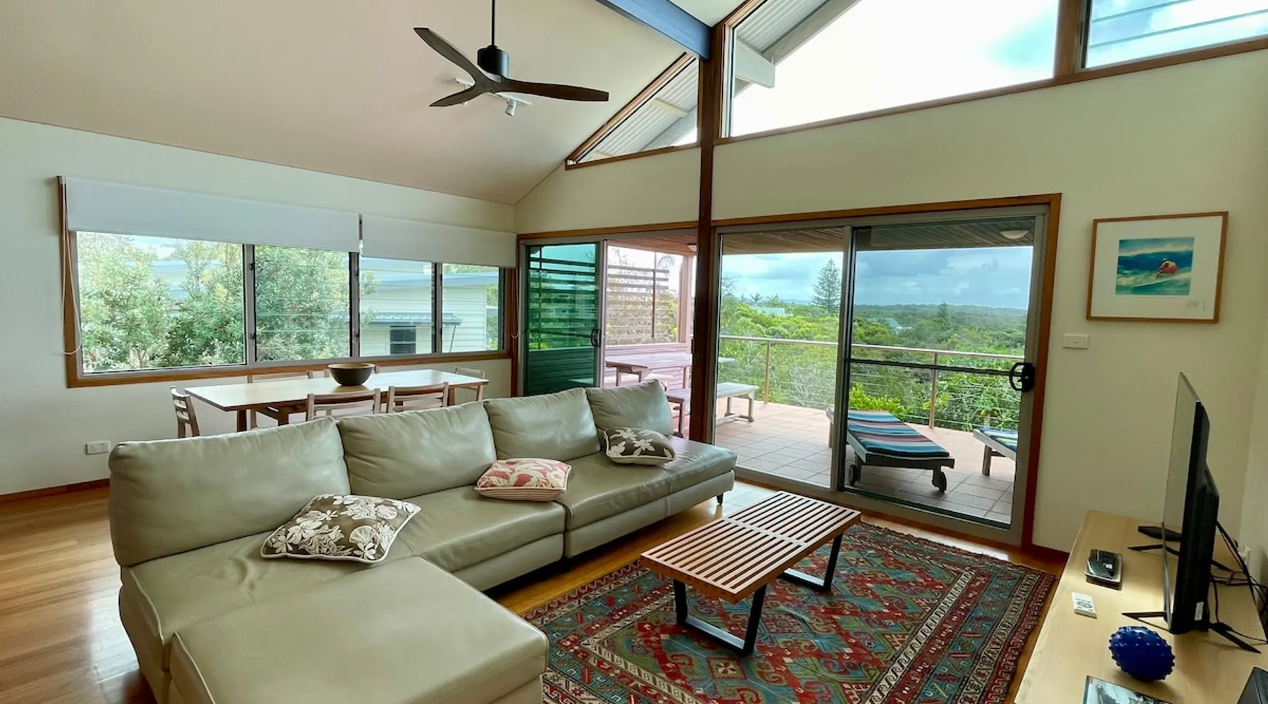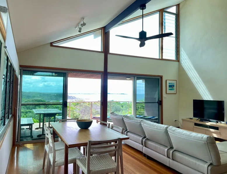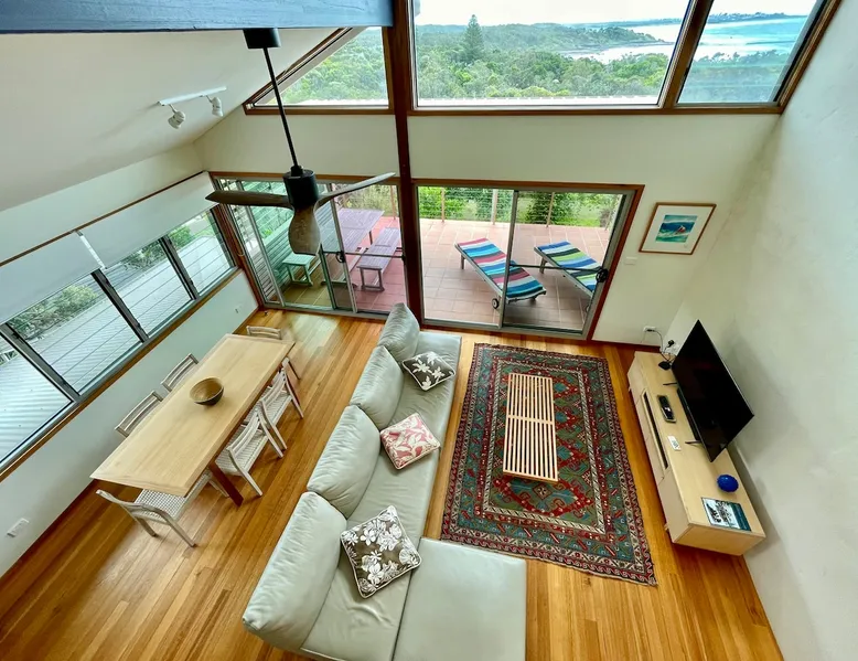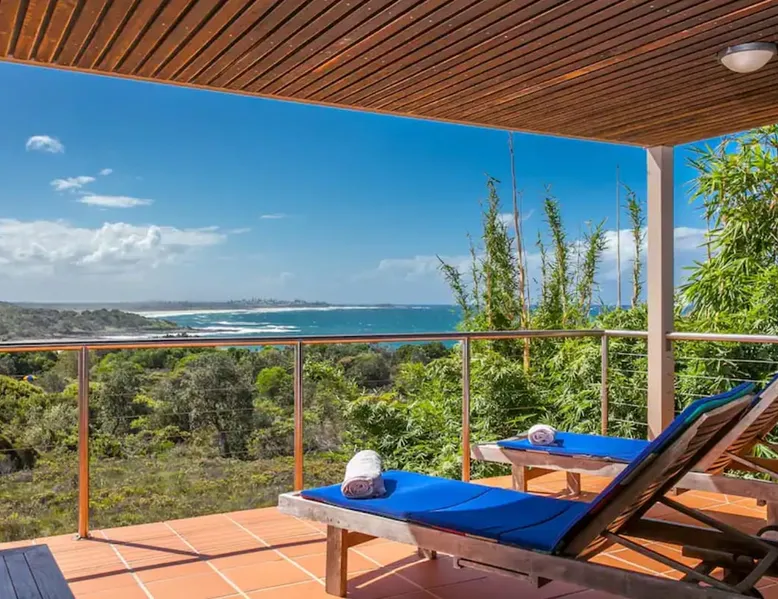 Enjoy your next holiday at Wavers Rest- the ideal Angourie Beach house. With breathtaking views over the National Park and the Pacific Ocean all the way to Yamba, you can check the surf without leaving your bed. With a fabulous deck perfect for alfresco dining, 3 beds, 2 baths, a contemporary kitchen, wifi and a comfortable lounge, Wavers Rest has all the ingredients to make your next North Coast holiday a dream. The space Welcome to Wavers Rest. This contemporary three story duplex has been designed by award winning architect Paul Witzig to take full advantage of the stunning views. An ideal position a short stroll from Angourie Point, Yuragai National Park, Spooky and Back Beaches, plus the local cafe- everything is on your doorstep! Downstairs the tranquil master suite features spectacular views over the natural bushland and ocean, a comfortable queen size bed, walk in robe and ensuite bathroom (with bathtub). Check the waves without your head leaving your pillow. There is also multiple windows for cross ventilation and a ceiling fan for your comfort. The second bedroom downstairs has more spectacular views and a queen size bed, ceiling fan, as well as direct access to the back balcony. The second bathroom is also on the ground floor and has a wonderful large shower and feature curved wall. Upstairs is the large deck, open plan kitchen, dining and living space- all with incredible northerly vistas. Kick back with a book on the sun lounge while you listen to the sound of birds and waves. Dine alfresco on the terrace or simply relax on the couch and watch the large flat screen smart TV. The modern kitchen has everything you need to cook up a holiday feast with a large fridge, coffee machine, oven, cooktop, microwave, toaster, kettle etc. The mezzanine level above the living space is the third bedroom. This room has a double bed and large desk with possibly the most spectacular views in the house! Wavers Rest also has plenty of off street parking as well as high speed NBN wifi so those needing to work from home have everything they need. You will love your next holiday at Wavers Rest. Guest access Guests have private access to the entire house. Registration Details PID-STRA-11115-1