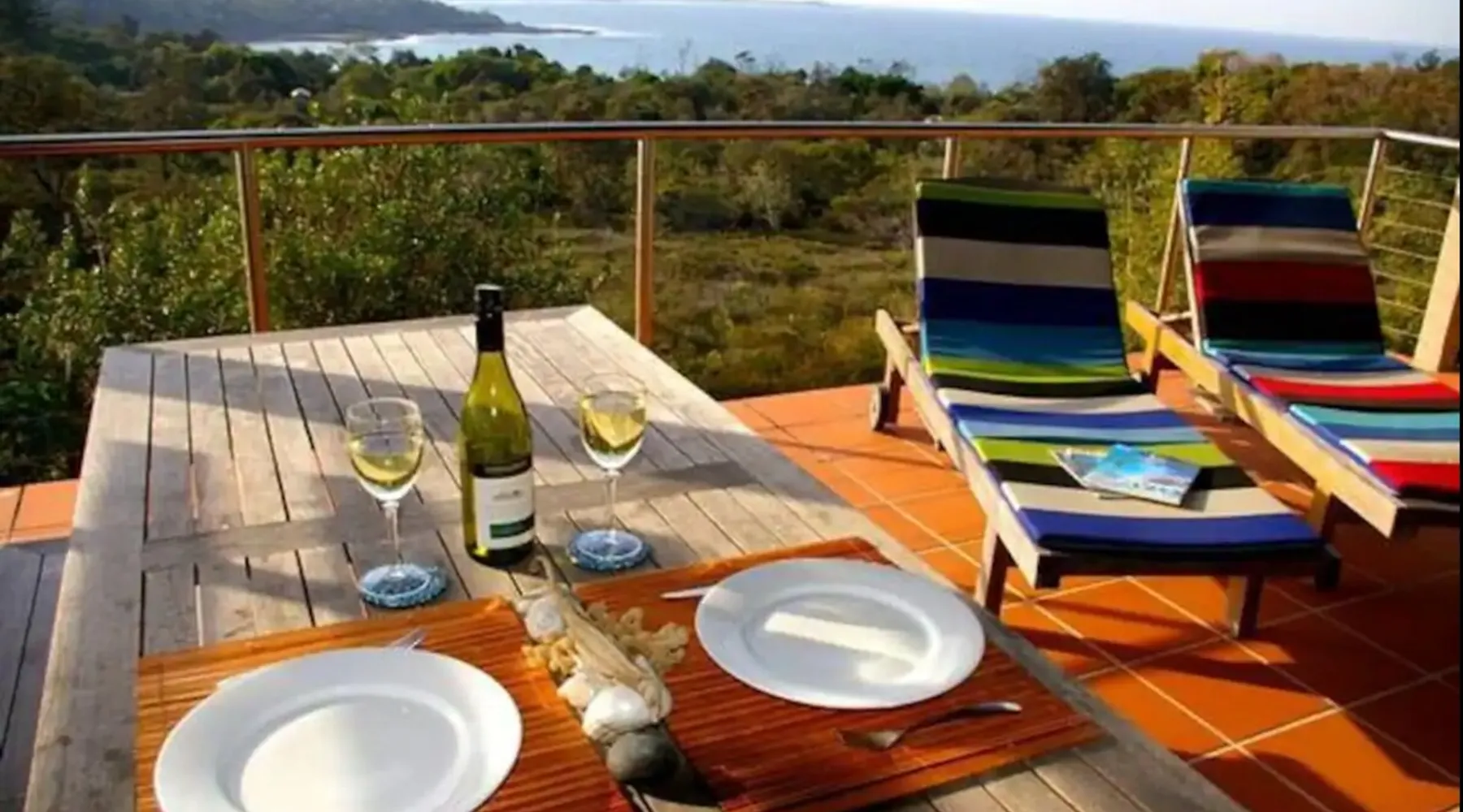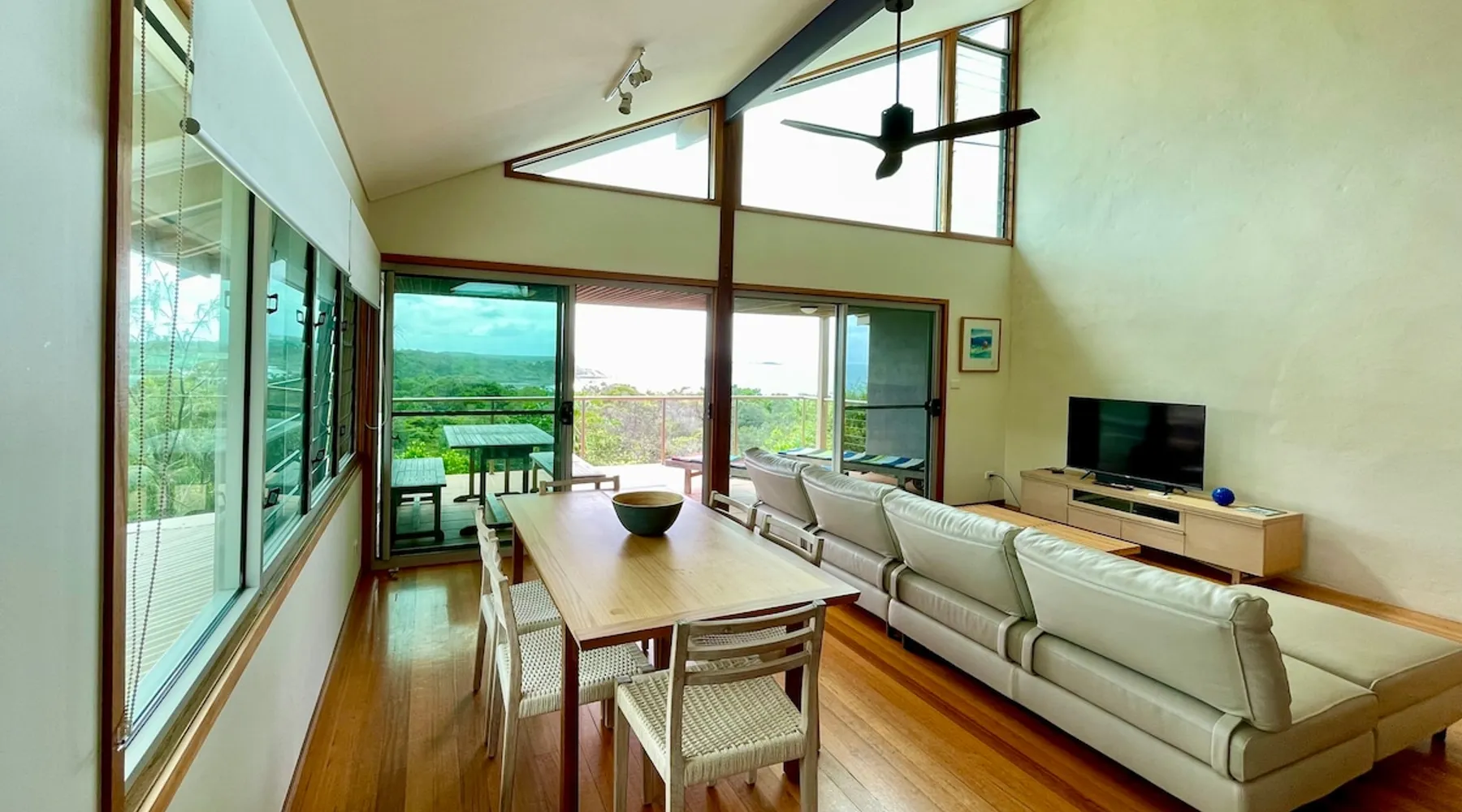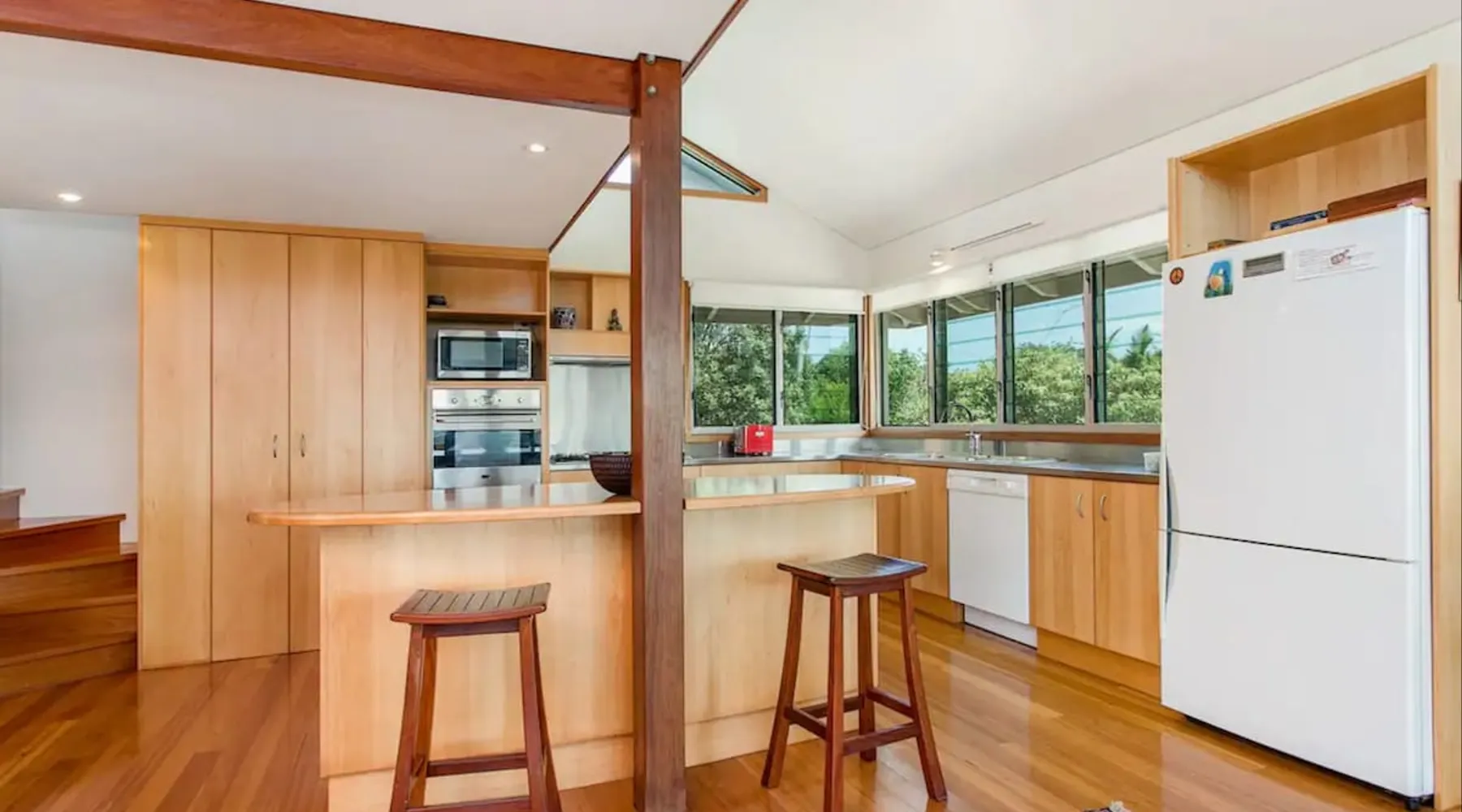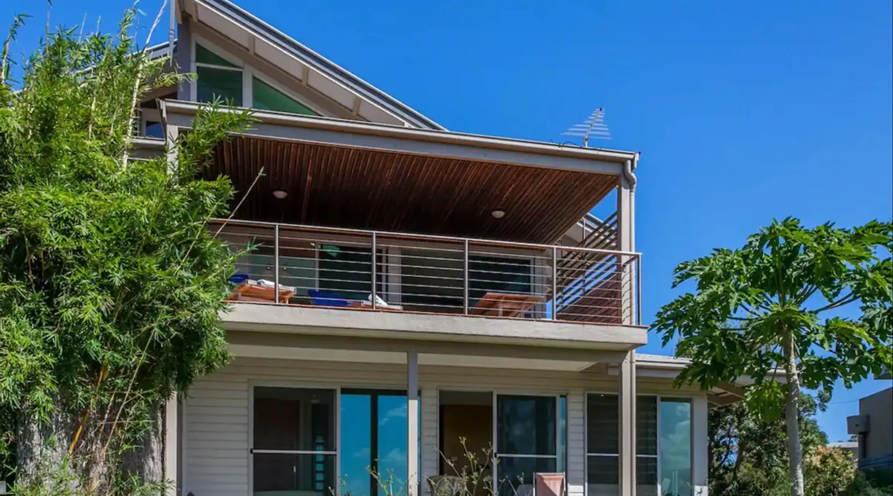 Enjoy your next holiday at Wavers Rest- the ideal Angourie Beach house. With breathtaking views over the National Park and the Pacific Ocean all the way to Yamba, you can check the surf without leaving your bed. With a fabulous deck perfect for alfresco dining, 3 beds, 2 baths, a contemporary kitchen, wifi and a comfortable lounge, Wavers Rest has all the ingredients to make your next North Coast holiday a dream. The space Welcome to Wavers Rest. This contemporary three story duplex has been designed by award winning architect Paul Witzig to take full advantage of the stunning views. An ideal position a short stroll from Angourie Point, Yuragai National Park, Spooky and Back Beaches, plus the local cafe- everything is on your doorstep! Downstairs the tranquil master suite features spectacular views over the natural bushland and ocean, a comfortable queen size bed, walk in robe and ensuite bathroom (with bathtub). Check the waves without your head leaving your pillow. There is also multiple windows for cross ventilation and a ceiling fan for your comfort. The second bedroom downstairs has more spectacular views and a queen size bed, ceiling fan, as well as direct access to the back balcony. The second bathroom is also on the ground floor and has a wonderful large shower and feature curved wall. Upstairs is the large deck, open plan kitchen, dining and living space- all with incredible northerly vistas. Kick back with a book on the sun lounge while you listen to the sound of birds and waves. Dine alfresco on the terrace or simply relax on the couch and watch the large flat screen smart TV. The modern kitchen has everything you need to cook up a holiday feast with a large fridge, coffee machine, oven, cooktop, microwave, toaster, kettle etc. The mezzanine level above the living space is the third bedroom. This room has a double bed and large desk with possibly the most spectacular views in the house! Wavers Rest also has plenty of off street parking as well as high speed NBN wifi so those needing to work from home have everything they need. You will love your next holiday at Wavers Rest. Guest access Guests have private access to the entire house. Registration Details PID-STRA-11115-1