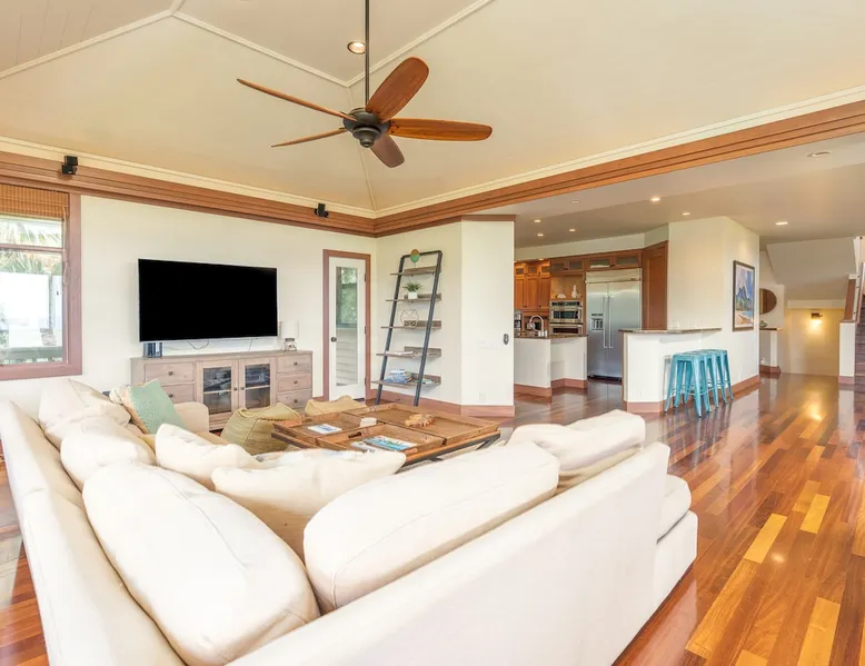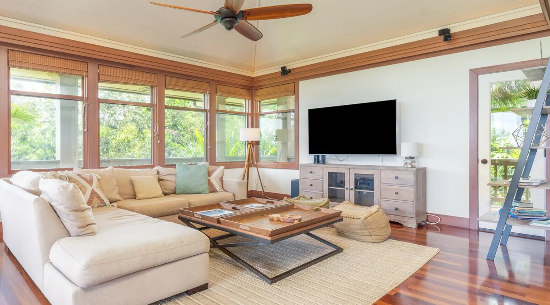 Hawaii Life Rentals presents Mauna Pua. Located on the majestic north shore of Kauai and just minutes away from some of the most beautiful white sand beaches in the world, we offer the luxury of a five star resort with the comforts and privacy of home Located on the majestic north shore of Kauai and just minutes away from some of the most beautiful white sand beaches in the world, Mauna Pua offers the luxury of a five star resort with the comforts and privacy of home. Style and elegance take center stage with panoramic views overlooking the lush green valley and azure blue Pacific. This stunning, two-level home is designed to accommodate families or large groups with an option to rent four to seven bedrooms. This home offers air conditioning in all the bedrooms & black out shades to keep you nice and cool during your stay! The grand master suite is located in the main house nestled among the trees with an expansive, romantic lanai, en-suite bath, sitting area, TV and lovely ocean views. The lower level boasts a spacious living room with a media center. Large glass doors open up to a welcoming lanai for friends and family to gather for festive barbecues, or relaxing with a tropical cocktail. The kitchen is a culinary artists’ delight with well appointed Kitchen Aid stainless steel appliances including a 6 burner gas stove, brand new refrigerator, large island and seated counter area. Serve up delicious island-inspired meals in the eight person dining area, with additional seating at the counter bar stools, if needed. Three guest rooms and bathroom are located just down the hall—two with queen beds and one bunk room with a double and twin bed. If more space is needed, please book Mauna Pua is available as 7 bedrooms. Please see Mauna Pua 2 for more information. Venture out on the Princeville bike bath with one of the accompanying three bikes and stroll down to the nearby St. Regis or Happy Talk Bar and Lounge for sunset pupus and refreshing beverage. Beach lovers will enjoy visiting one of the many popular nearby beaches including, Hideaways Beach, Anini, Kalihiwai and Hanalei Bay. Home is equipped with Spectrum gigabit internet, good internet for those that are working remotely. TA-018-337-0752-01 24hr island contact Maximum: 4 cars allowed Bedding Master: King Guest Room: Queen Guest Room: Queen Guest Room: Bunk (Double + Twin) **THIS IS NOT A PARTY HOME** Other things to note Parties are strictly prohibited and will result in immediate cancellation with no refund. Our neighbors are full-time residents and while they are respectful of common renters, a party will be reported immediately. We use a noise monitoring system to alert us if the noise is disruptive, located in kitchen. Hawaii Life Rentals is a locally owned, licensed real estate company with rentals on Kauai, Maui, Oahu, and Hawaii. We offer on-island personal assistance and Concierge services. Rates do not include taxes, cleaning and applicable fees. TMK TA-174-392-7808-01 There is a lockbox containing your house key We will email you the access codes prior to your arrival. Check in time is anytime after 3:00 PM Occasionally we accommodate checking in at other times, if you contact us Should you have any questions or concerns regarding your property please call your on island host. Each of our homes comes with a property manager. Should you need assistance please feel reach out to the home manager. Environmental Disclosure. Guest acknowledges that the State of Hawaii is exposed to environmental hazards including, but not limited to, tidal waves, hurricanes and floods. Please refer to the local phone book for information pertaining to evacuation procedures. In the event of an emergency, the State of Hawaii utilizes a warning alert system (emergency sirens are tested on the first working day of every month at 11:45 a.m.). Guest is responsible for using their best efforts to familiarize themselves with property, its location, and surroundings. Some of the properties are in a remote location. As such, what would be considered normal response time for public services in an urban area may not be available in this location, i.e., police, fire, and emergency services. Also, naturally dwelling animals, reptiles and fauna are different then might be encountered in an urban setting and some might be considered “pests” by some individuals, i.e., centipedes, geckos, roaches, spiders, rodents, termites, mosquitoes, chickens and coqui frogs. You should be prepared to accept such inconveniences or discomfort as a normal and necessary aspect of renting a home in an area with strong rural character. Also, Guest acknowledges this is a binding contract and cannot be released from the contractual obligations upon arrival. Construction and Neighborhood Disclosure The guest acknowledges homes may be located in a residential setting. Hawaii Life and Owner are not responsible for any inconvenience caused by construction or noise associated with the neighborhood, including but not limited to barking dogs, noisy neighbors, cars, music, construction, events, etc. Guest may call Hawaii Life to inquire as to the status of any neighboring construction or events. Any refunds due to a cancellation resulting from noise shall be subject to the Cancellation Policy. Disclosure and Indemnity. Guest acknowledges, if applicable to Property, the existence of dangers associated with, but not limited to, hot tubs, BBQs, pools, saunas, gym (workout facility) equipment, rivers, lakes, oceans, ponds, playgrounds, golf balls, lofts and ladders. In addition, Guest acknowledges the existence of certain inherent risks to persons and property located in the vicinity of the ocean, including, but not limited to, high surf conditions, dangerous riptides, coral reefs, hurricanes, tropical storms. Guest acknowledges that the Owner would not rent the Property unless Guest fully accepted the risks associated with the Property and its location. In light of the foregoing, Guest